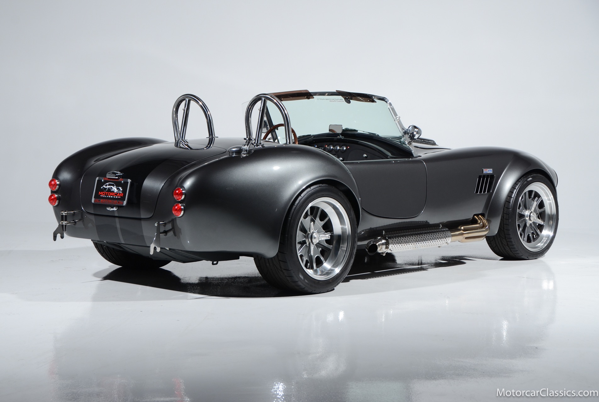 1965 Shelby Cobra Backdraft for sale! Motorcar Classics is pleased to offer this impressive 427 Cobra Backdraft tribute car presented in Grigio Silverstone with a black stripe and Black leather interior. This Cobra was just completed and is in excellent condition with only 152 miles. Options include side exhaust with shields, Dual roll bar, visor wind deflectors, wood trim steering wheel, leather interior, Iconic 427 Cobra engine,5 speed Tremec transmission, 4 point harness racing seat belts, knock off wheels and more! Your inspection is invited!