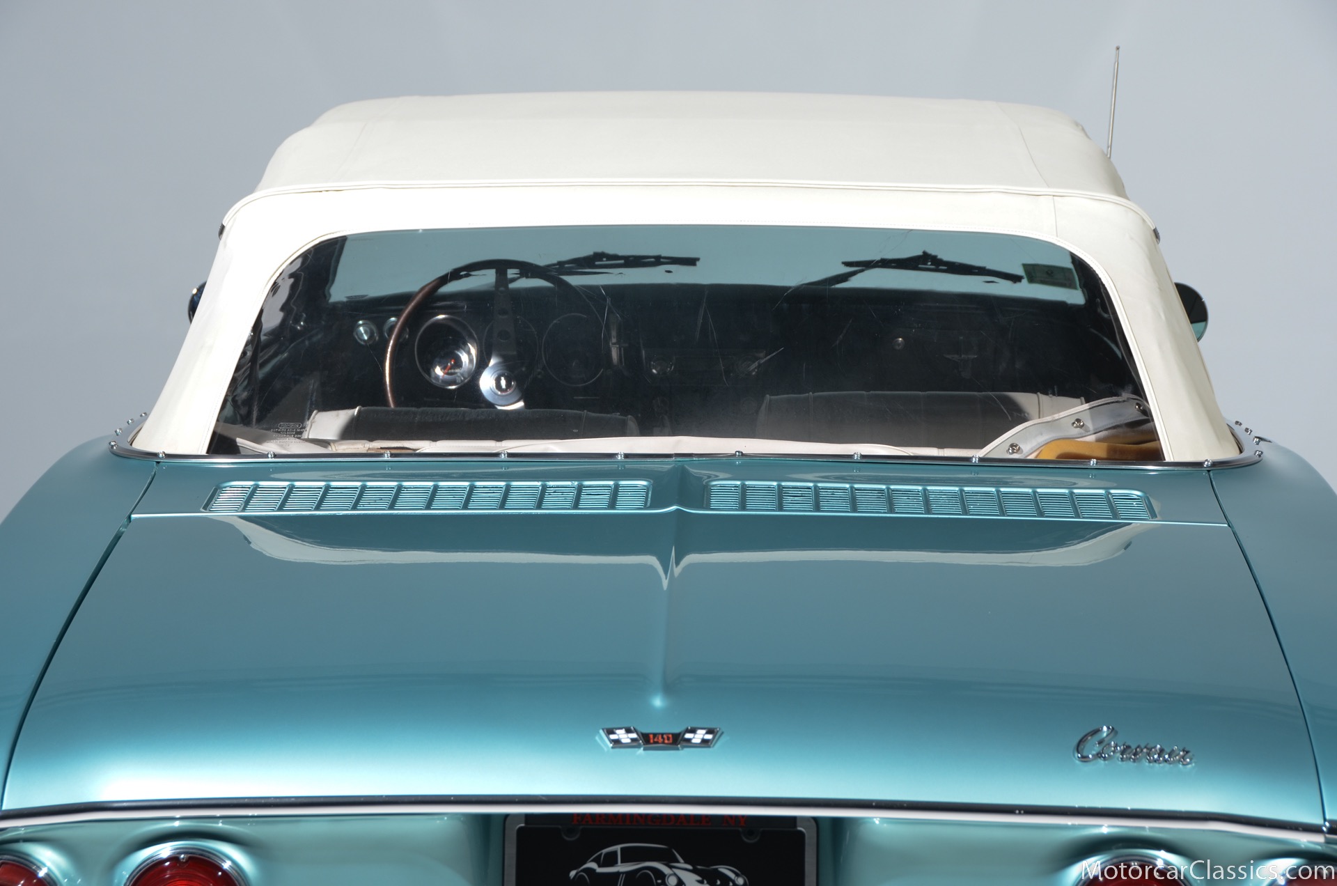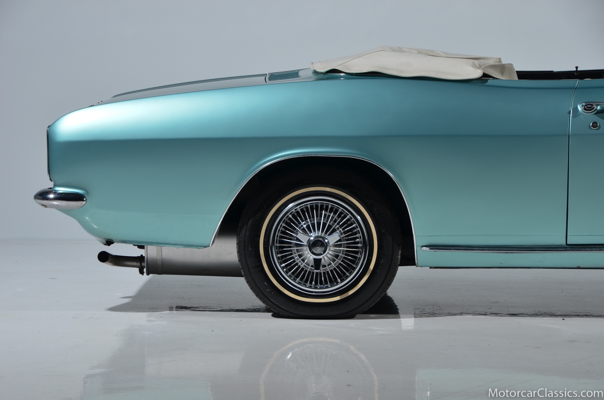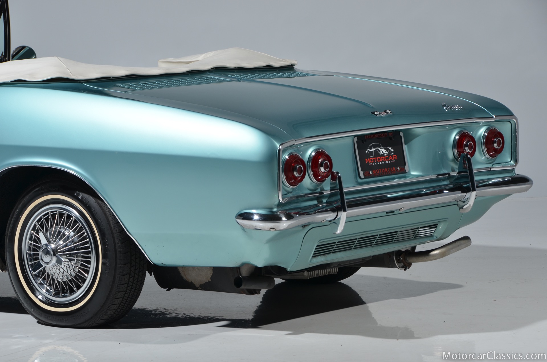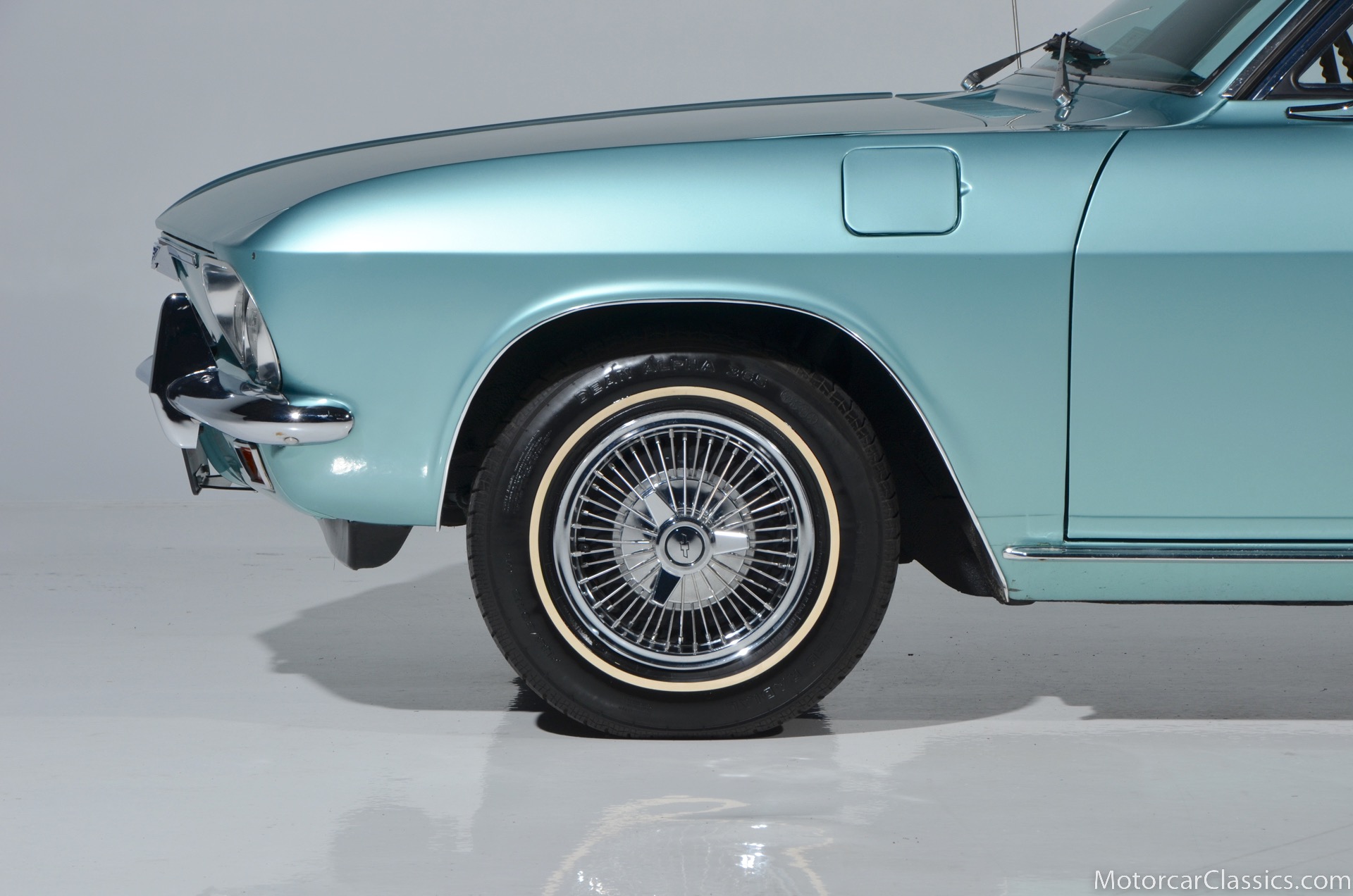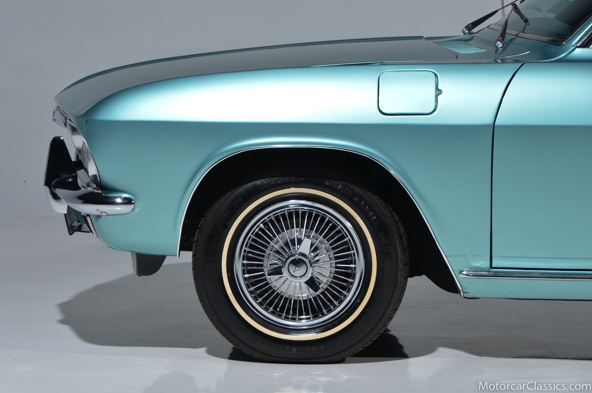 1966 Corvair Monza Convertible for sale! Motorcar Classics is proud to present this rare and stunning 1966 Chevrolet Corvair Monza convertible featured in Artesian Turquoise Metallic with white vinyl convertible top and matching white vinyl interior. This car has benefitted from a total restoration and it is reported that 36,050 miles shown are original. The Monza is the top of the Corvair range for 1966, with the highest rated 140HP, 2.4L, 4-carburetor flat 6-cylinder engine. Our car features the user-friendly Powerglide automatic transmission so everyone can enjoy driving it. As a collector car, the Corvair offers you a sporty convertible that can carry friends and family. Desirable options on this car include, Monza Wire Wheel Hubcaps, Electric Push button convertible top with boot, Original AM/FM Radio, and Twin Exhaust. Additional recent upgrades include: Kenwood KAC-M1824BTCompact 4-channel amplifier with Bluetooth connectivity, new passenger side exhaust pipes, muffler and hangers, new rear coil, springs and shock absorbers, new steel oil pan, white center console, front grill, and front and rear bumper guards from Clarks Corvair Parts. This is one of the nicest and best sorted Corvairs we have had the pleasure to offer. It is a delight to drive and you find few others that are its equal. Drive or show with pride.