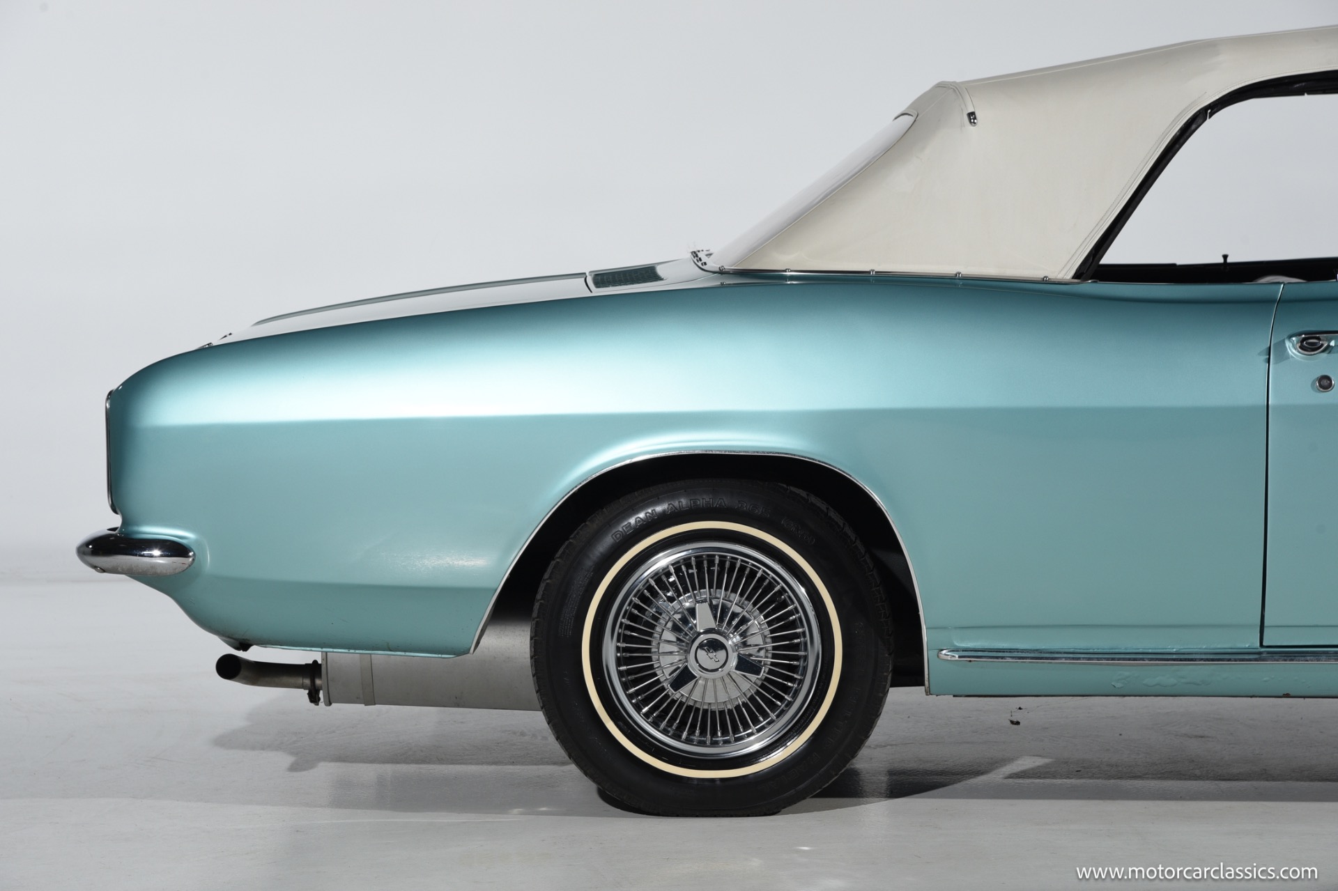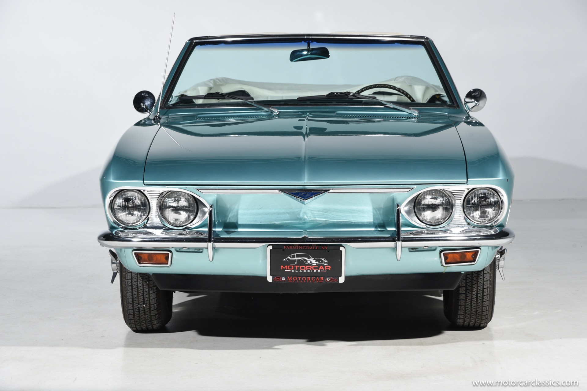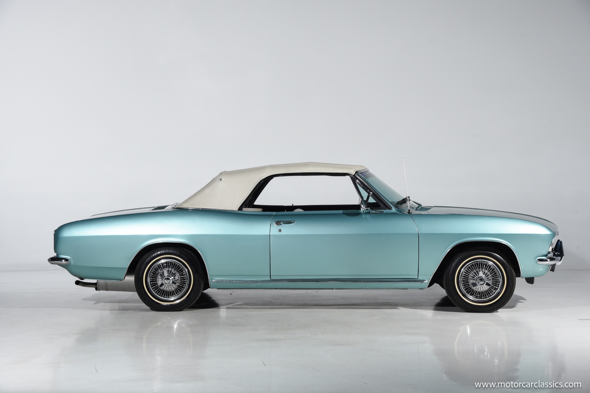 1966 Corvair Monza Convertible for sale! Motorcar Classics is proud to present this rare and stunning 1966 Chevrolet Corvair Monza convertible featured in Artesian Turquoise Metallic with white vinyl convertible top and matching white vinyl interior. This car has benefitted from a total restoration and it is reported that 36,087 miles shown are original. The Monza is the top of the Corvair range for 1966, with the highest rated 140HP, 2.4L, 4-carburetor flat 6-cylinder engine. Our car features the user-friendly Powerglide automatic transmission so everyone can enjoy driving it. As a collector car, the Corvair offers you a sporty convertible that can carry friends and family. Desirable options on this car include, Monza Wire Wheel Hubcaps, Electric Push button convertible top with boot, Original AM/FM Radio, and Twin Exhaust. Additional recent upgrades include: Kenwood KAC-M1824BTCompact 4-channel amplifier with Bluetooth connectivity, new passenger side exhaust pipes, muffler and hangers, new rear coil, springs and shock absorbers, new steel oil pan, white center console, front grill, and front and rear bumper guards from Clark?s Corvair Parts. This is one of the nicest and best sorted Corvairs we have had the pleasure to offer. It is a delight to drive and you find few others that are its equal. Drive or show with pride.