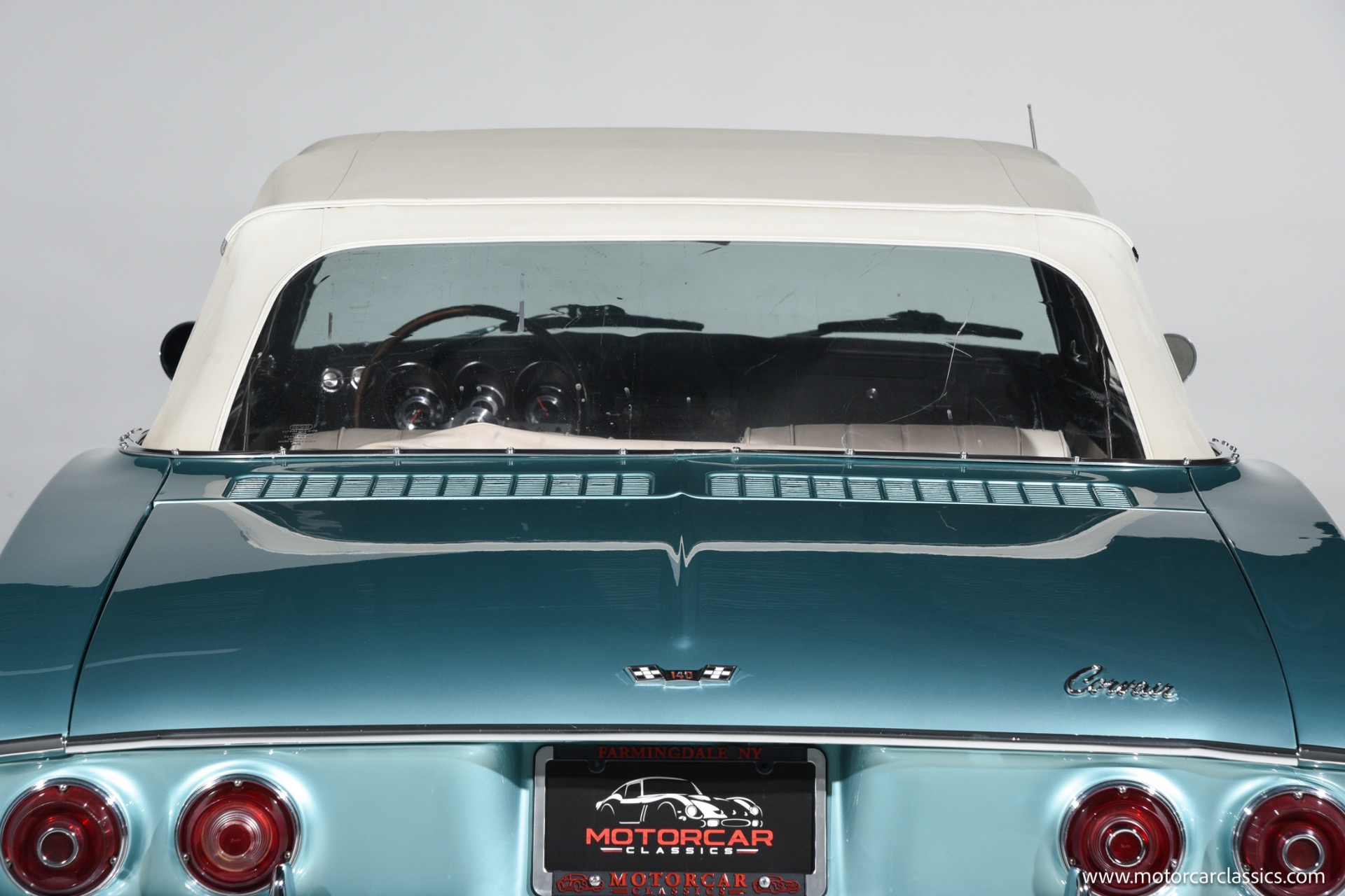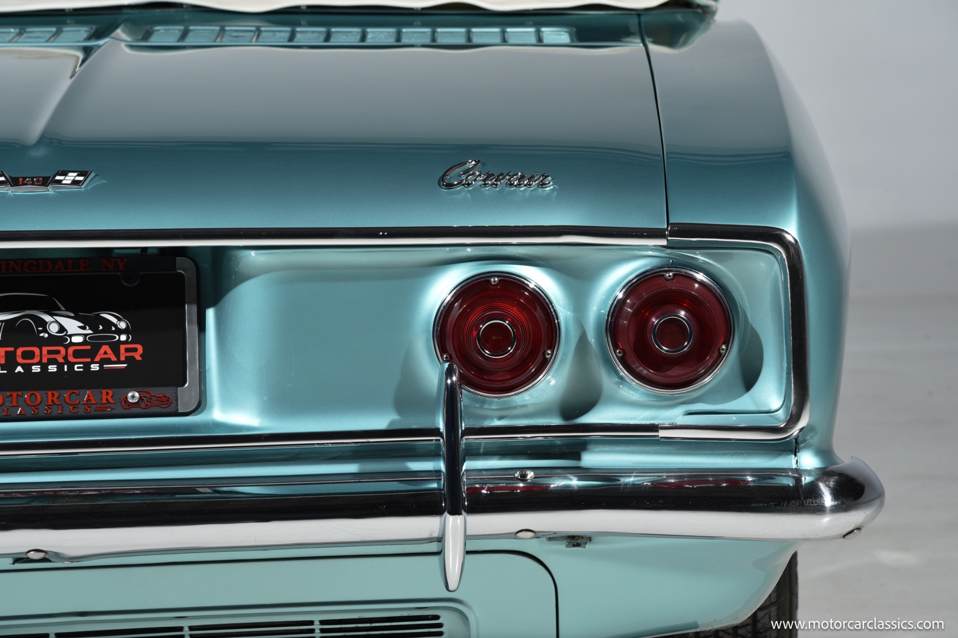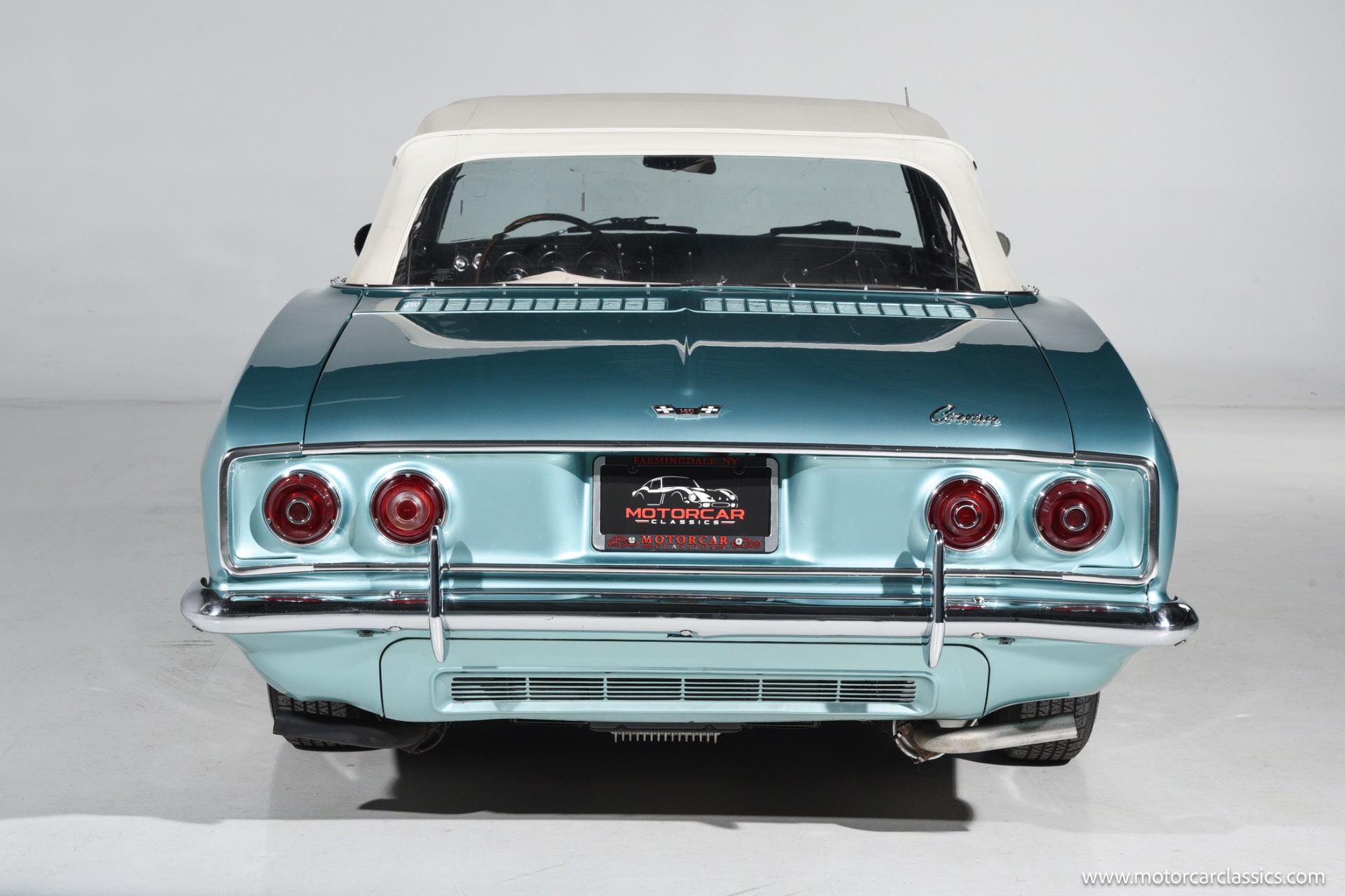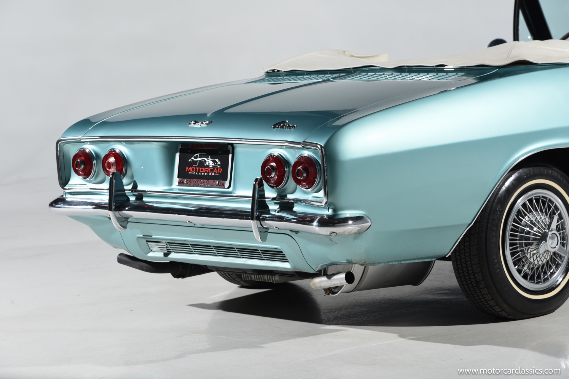 1966 Corvair Monza Convertible for sale! Motorcar Classics is proud to present this rare and stunning 1966 Chevrolet Corvair Monza convertible featured in Artesian Turquoise Metallic with white vinyl convertible top and matching white vinyl interior. This car has benefitted from a total restoration and it is reported that 36,087 miles shown are original. The Monza is the top of the Corvair range for 1966, with the highest rated 140HP, 2.4L, 4-carburetor flat 6-cylinder engine. Our car features the user-friendly Powerglide automatic transmission so everyone can enjoy driving it. As a collector car, the Corvair offers you a sporty convertible that can carry friends and family. Desirable options on this car include, Monza Wire Wheel Hubcaps, Electric Push button convertible top with boot, Original AM/FM Radio, and Twin Exhaust. Additional recent upgrades include: Kenwood KAC-M1824BTCompact 4-channel amplifier with Bluetooth connectivity, new passenger side exhaust pipes, muffler and hangers, new rear coil, springs and shock absorbers, new steel oil pan, white center console, front grill, and front and rear bumper guards from Clark?s Corvair Parts. This is one of the nicest and best sorted Corvairs we have had the pleasure to offer. It is a delight to drive and you find few others that are its equal. Drive or show with pride.