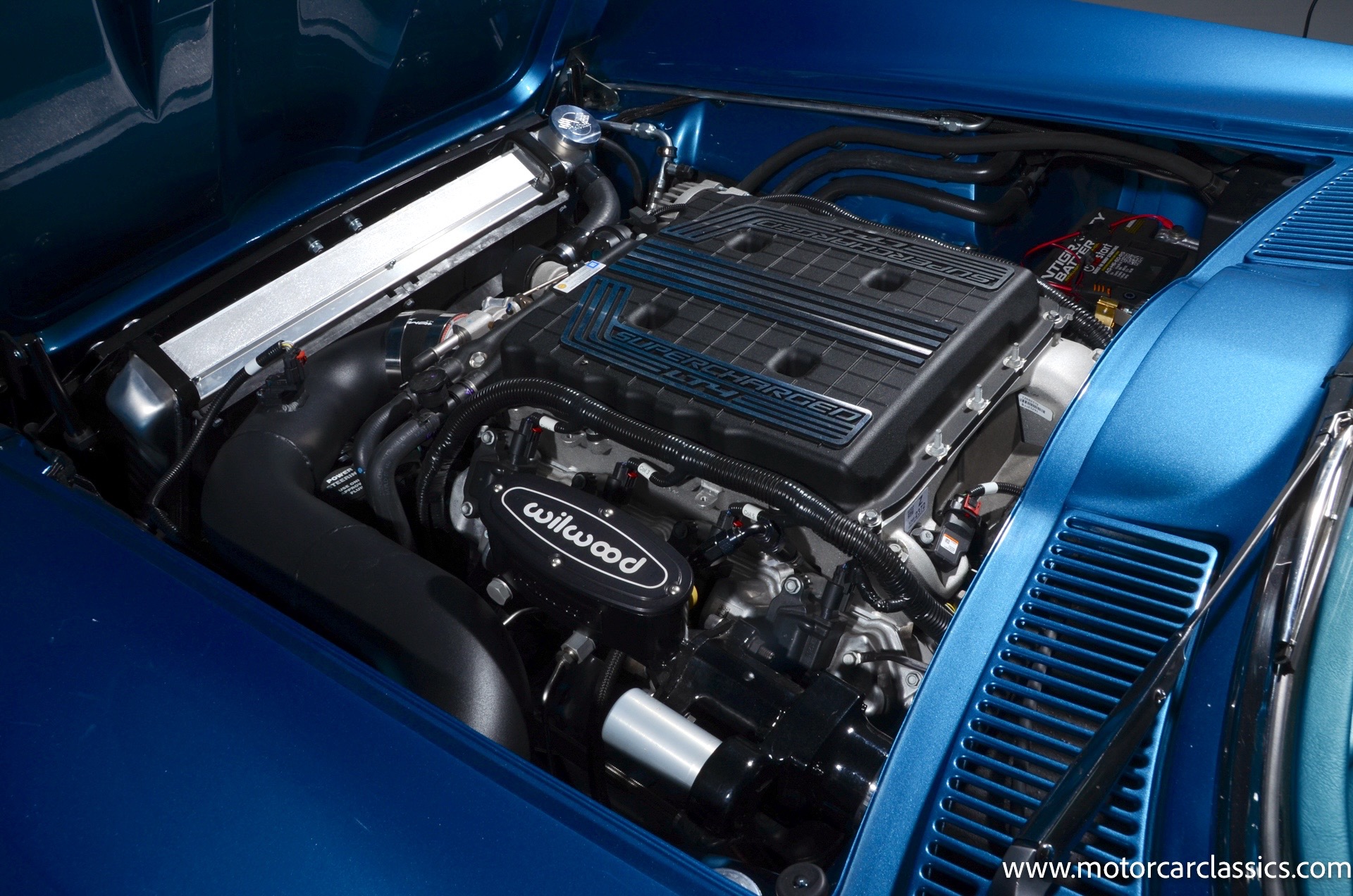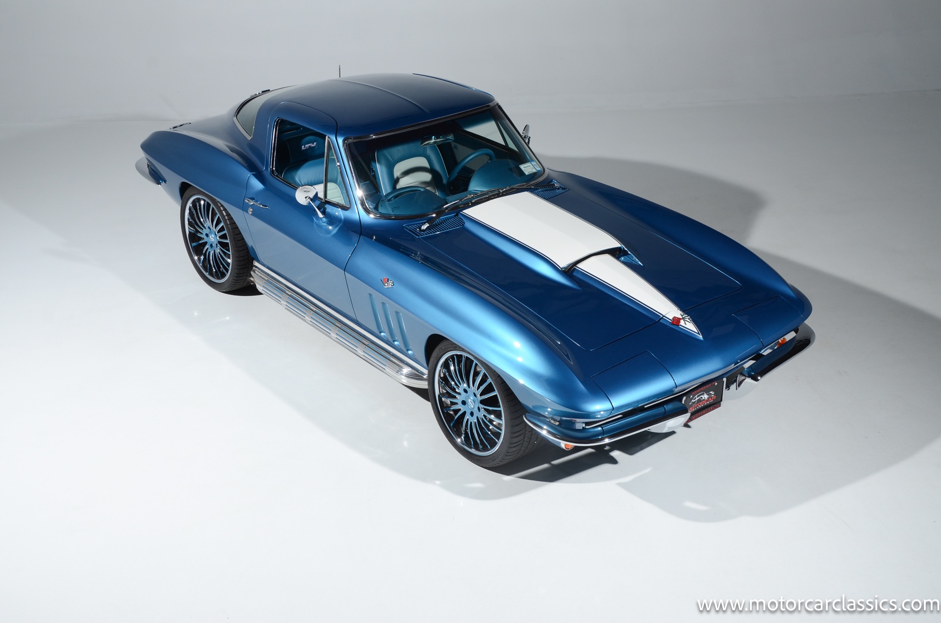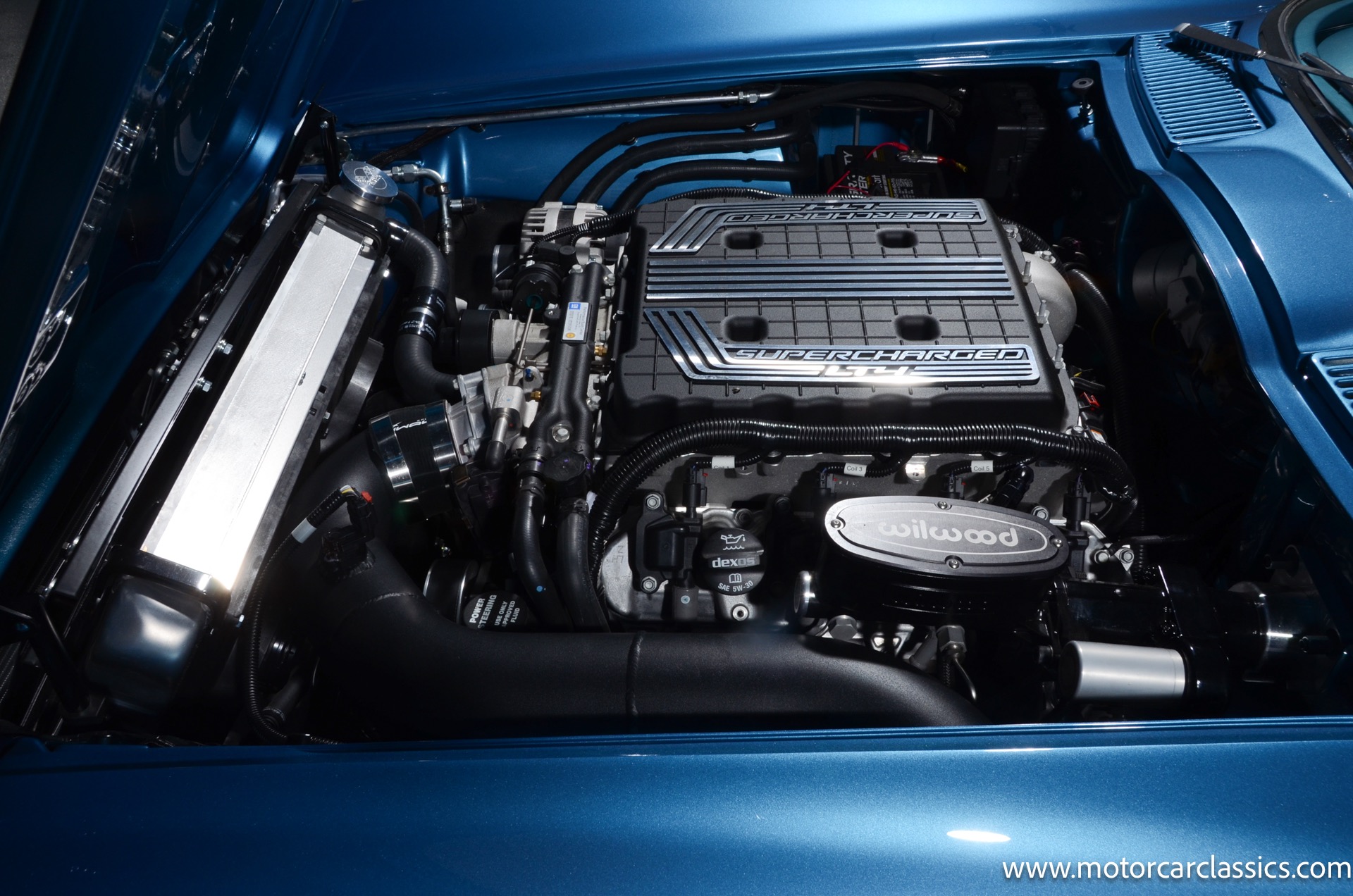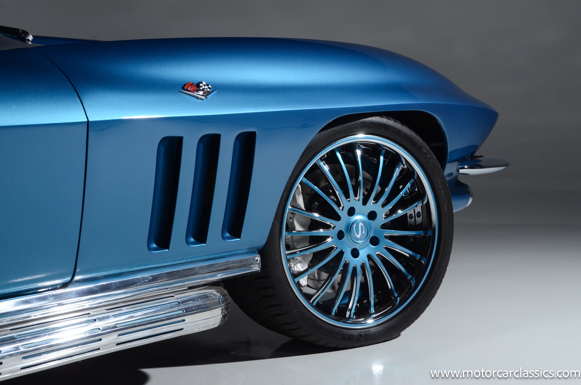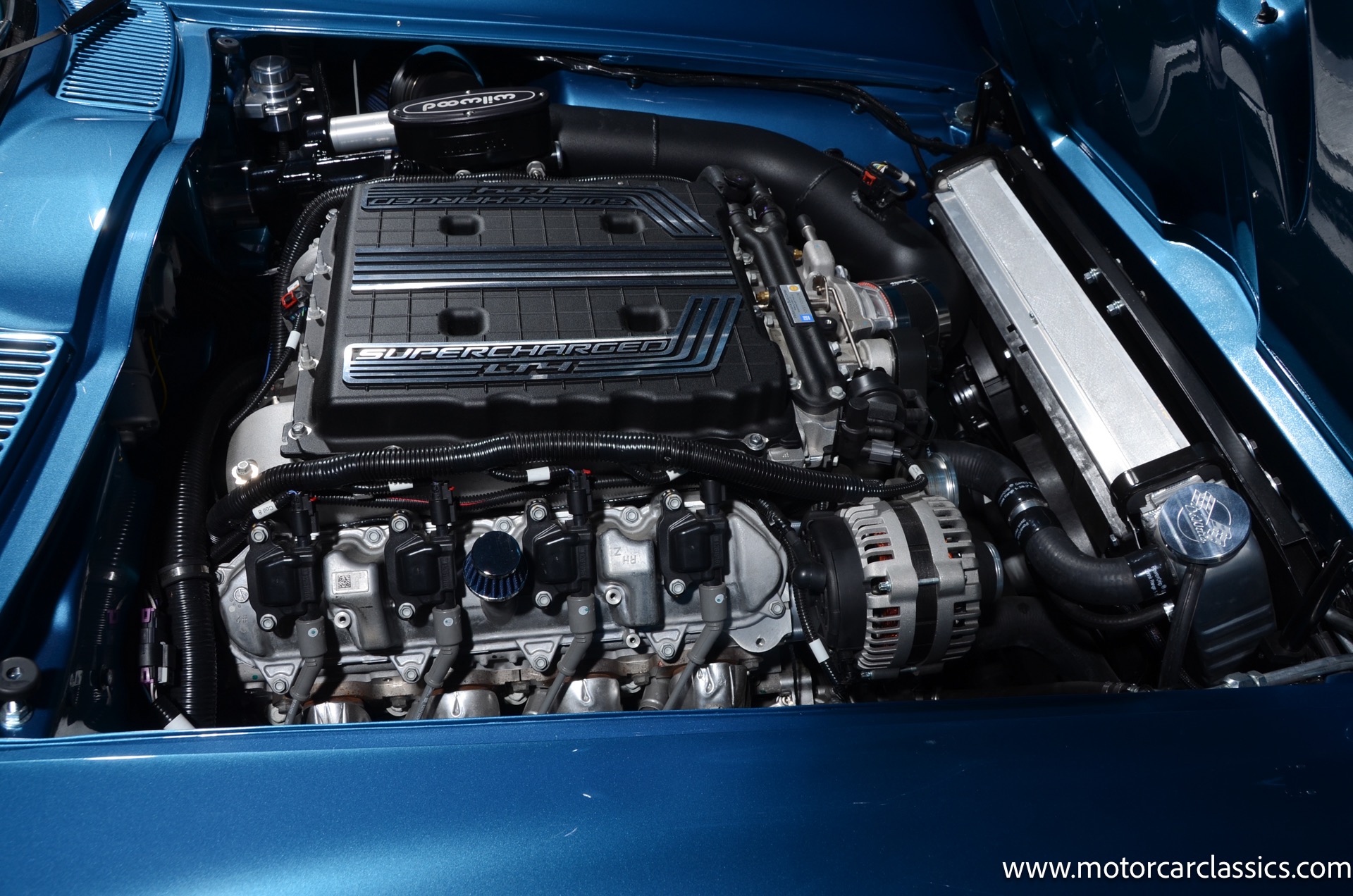 1966 Chevrolet Corvette LT4 for sale! Motorcar Classics is proud to present this one off 1966 Corvette Resto-Mod, finished in the desired Marina Blue pearl with a full custom leather Blue and White interior. This vehicle sits on a Tray Waldon Street Chop C-7 chassis with adjustable coil overs. Under the hood is the incredible 6.2L LT-4 Supercharged engine making 650HP attached to a Tremec 5 speed manual transmission with a 3.36 rear axle ratio. Traveling only 178 break in miles, this vehicle is essentially a new C-7 Z06 with a vintage body. Options include: Hypro Boost brake system with 6 piston Wilwood front calipers and 4 piston Wilwood rear calipers,Rack and Pinion Steering, Vintage Air A/C, Custom 2 pc Forged Savini rims, 19x10 Front and 20x12 Rear, Flaming River Tilt Steering wheel, Electric E- Brake, VAIS Technology alarm system, Push Button Start, Classic Industries Gauges and Clock, Power windows, Bluetooth radio, back up camera and much more. Your Inspection is invited!