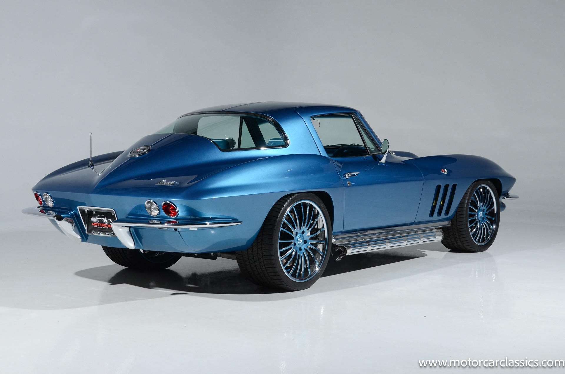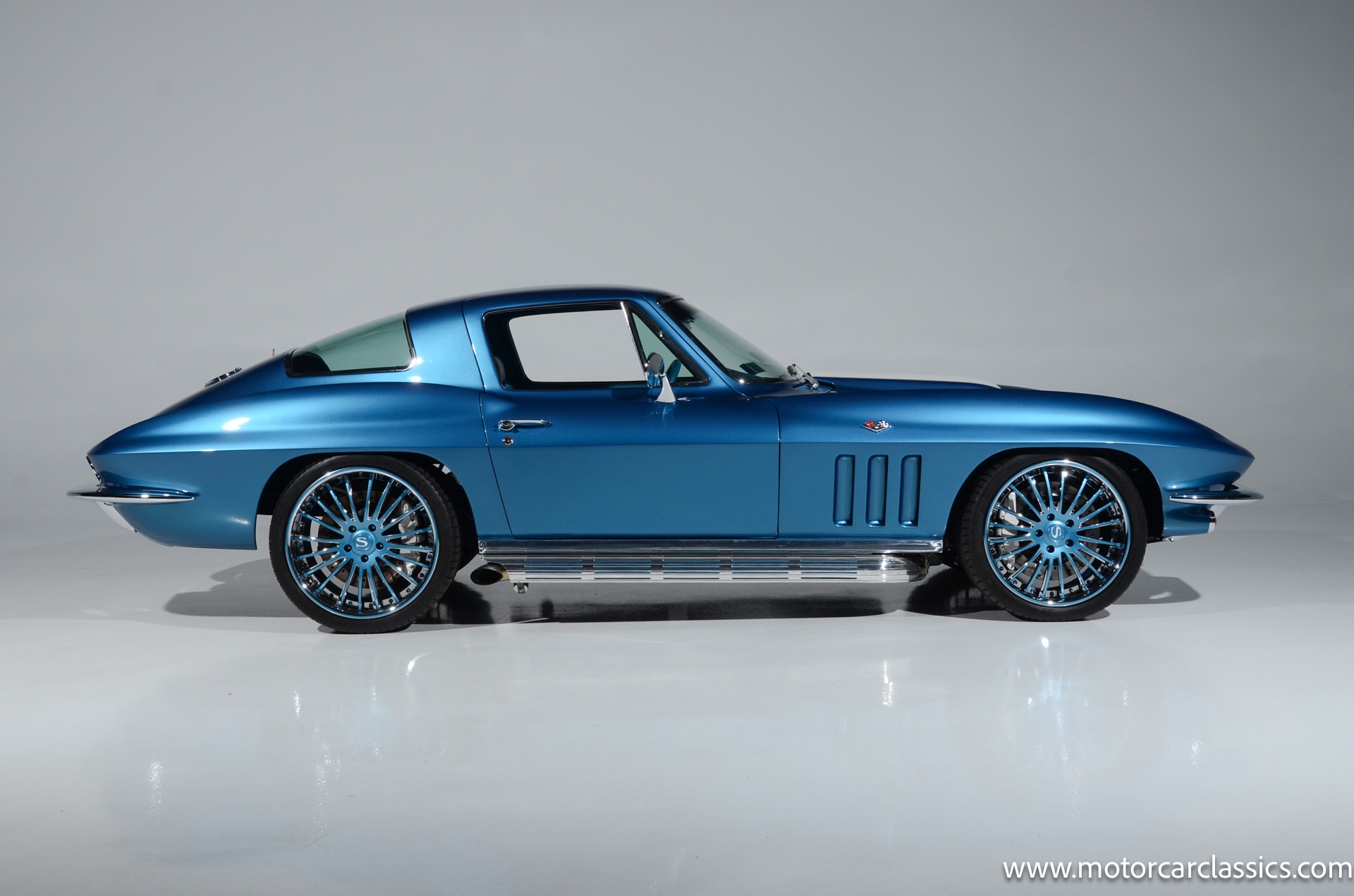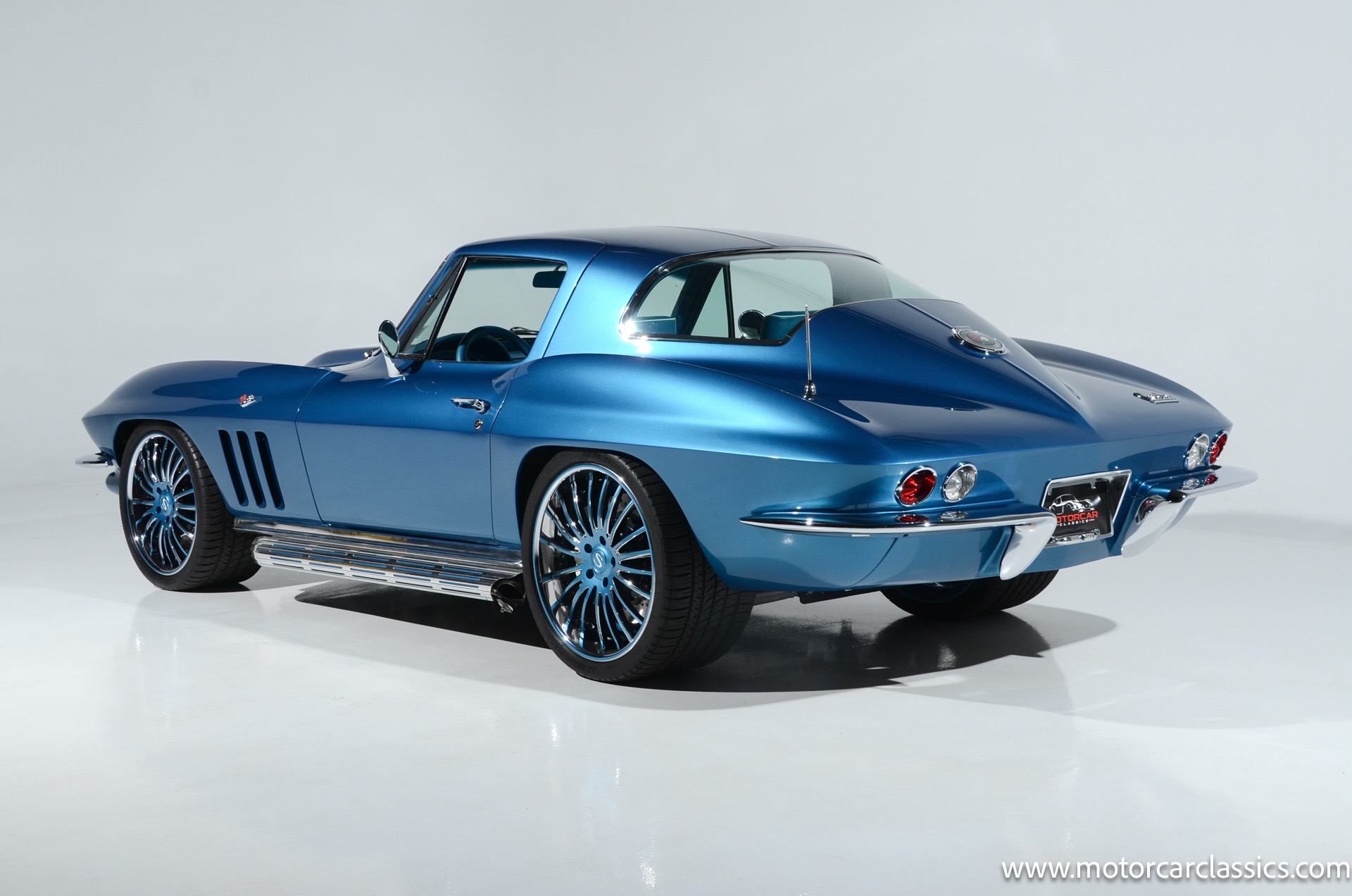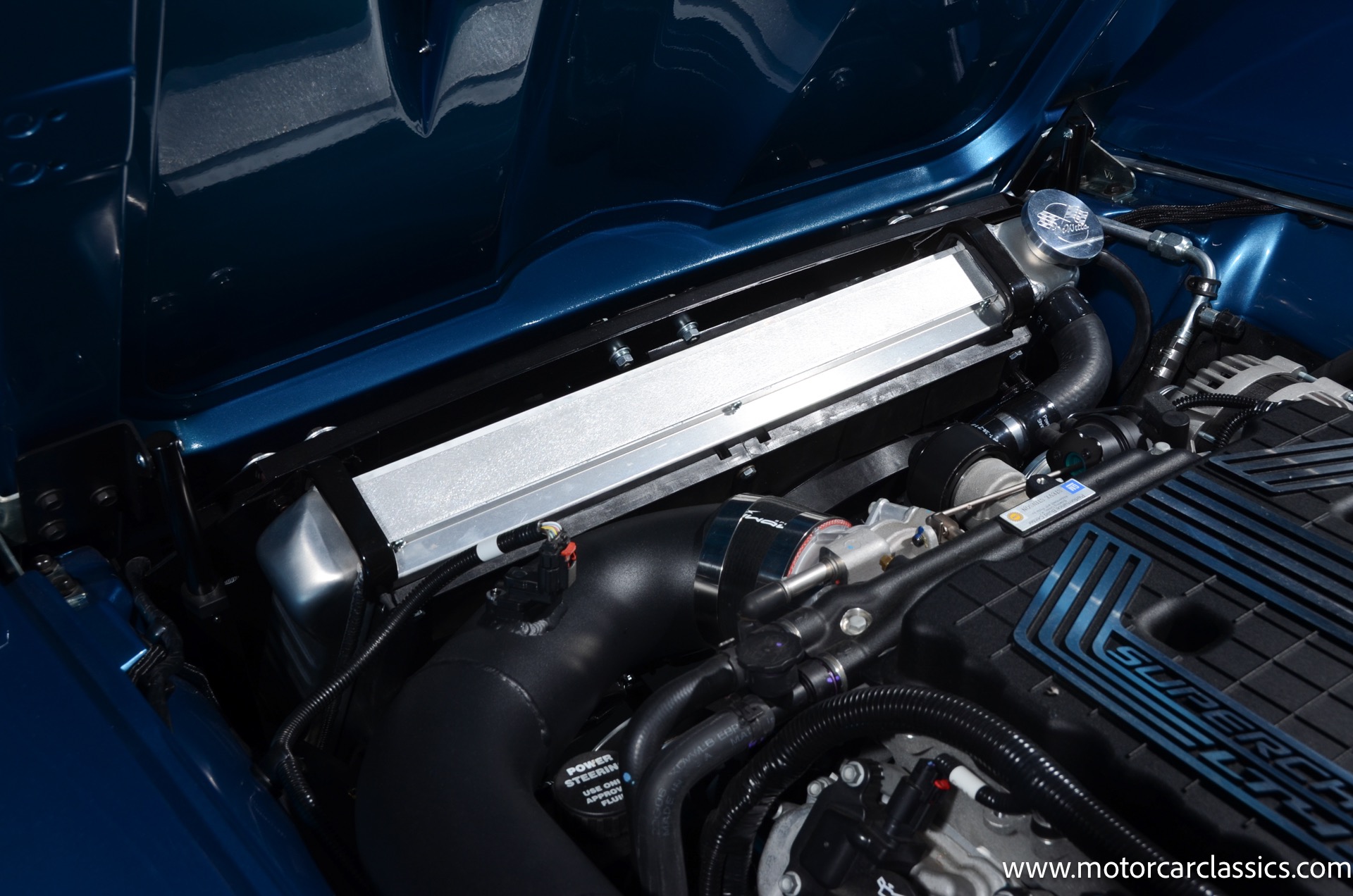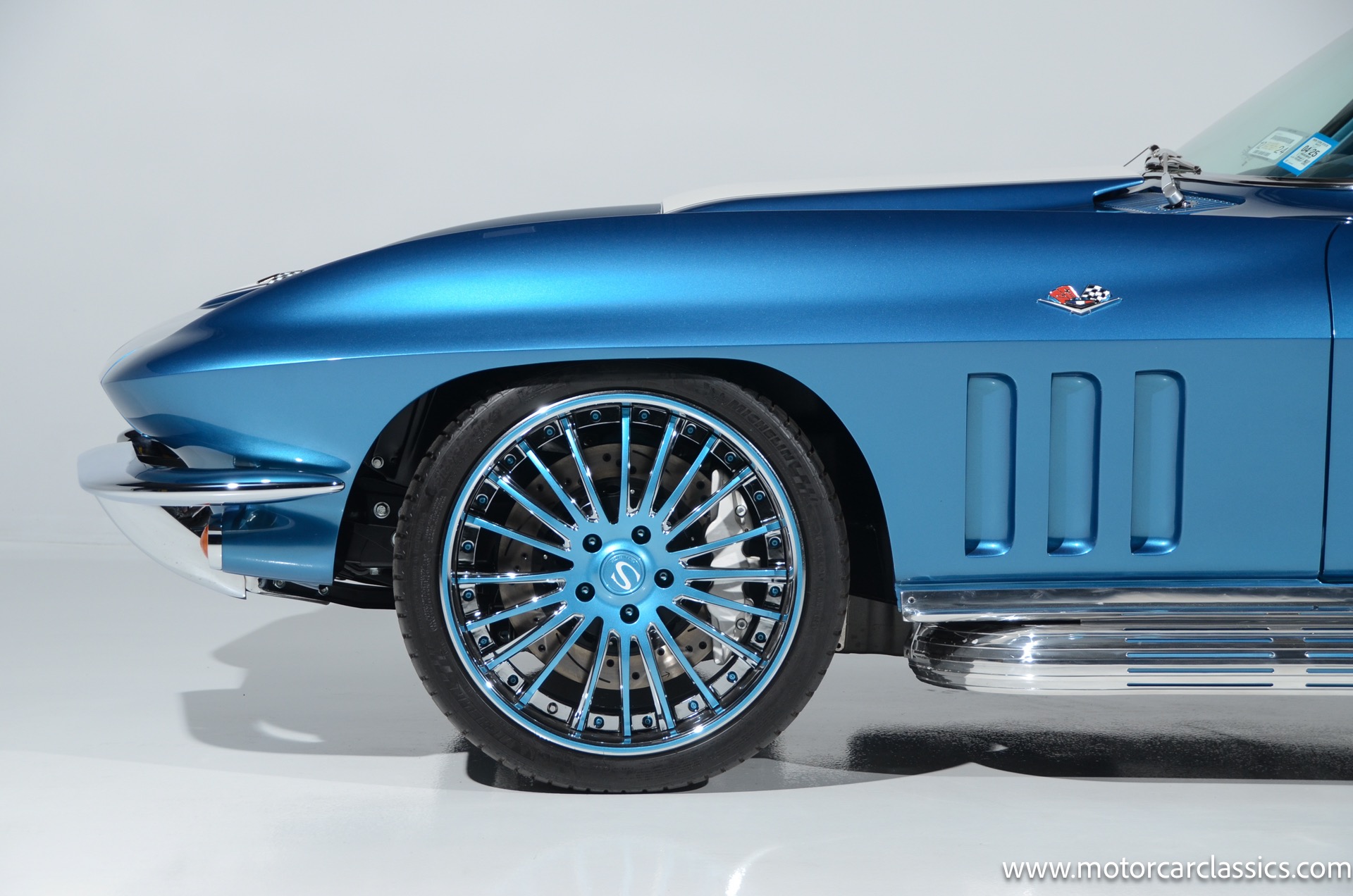 1966 Chevrolet Corvette LT4 for sale! Motorcar Classics is proud to present this one off 1966 Corvette Resto-Mod, finished in the desired Marina Blue pearl with a full custom leather Blue and White interior. This vehicle sits on a Tray Waldon Street Chop C-7 chassis with adjustable coil overs. Under the hood is the incredible 6.2L LT-4 Supercharged engine making 650HP attached to a Tremec 5 speed manual transmission with a 3.36 rear axle ratio. Traveling only 178 break in miles, this vehicle is essentially a new C-7 Z06 with a vintage body. Options include: Hypro Boost brake system with 6 piston Wilwood front calipers and 4 piston Wilwood rear calipers,Rack and Pinion Steering, Vintage Air A/C, Custom 2 pc Forged Savini rims, 19x10 Front and 20x12 Rear, Flaming River Tilt Steering wheel, Electric E- Brake, VAIS Technology alarm system, Push Button Start, Classic Industries Gauges and Clock, Power windows, Bluetooth radio, back up camera and much more. Your Inspection is invited!