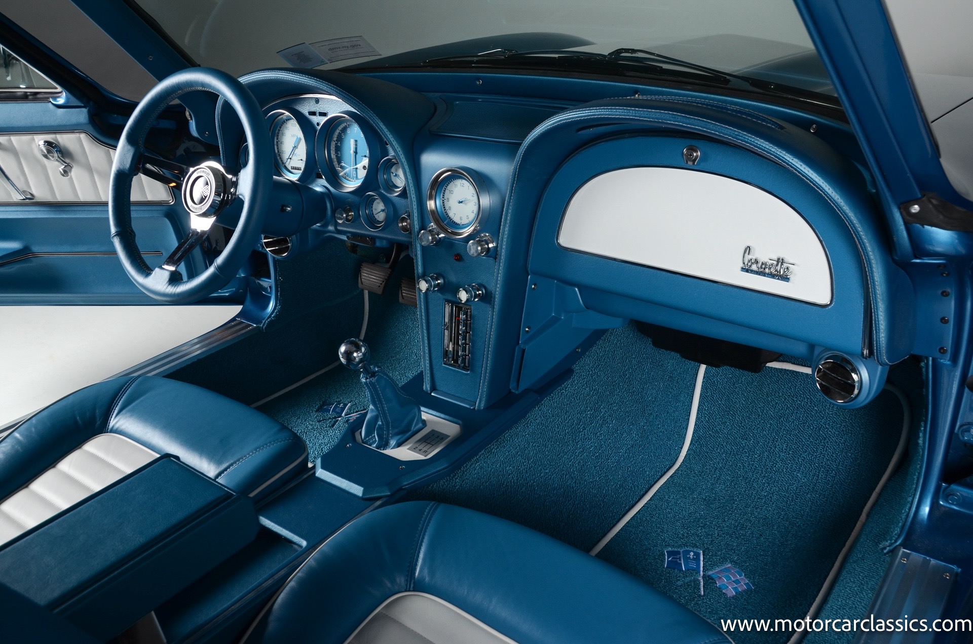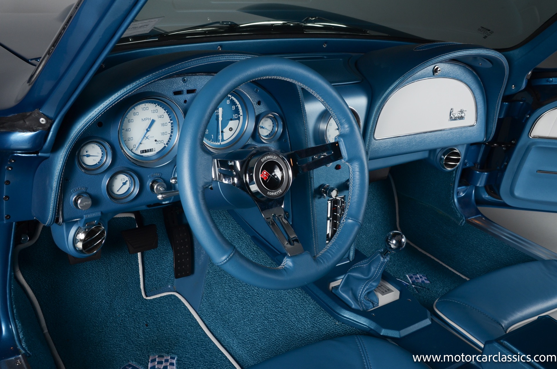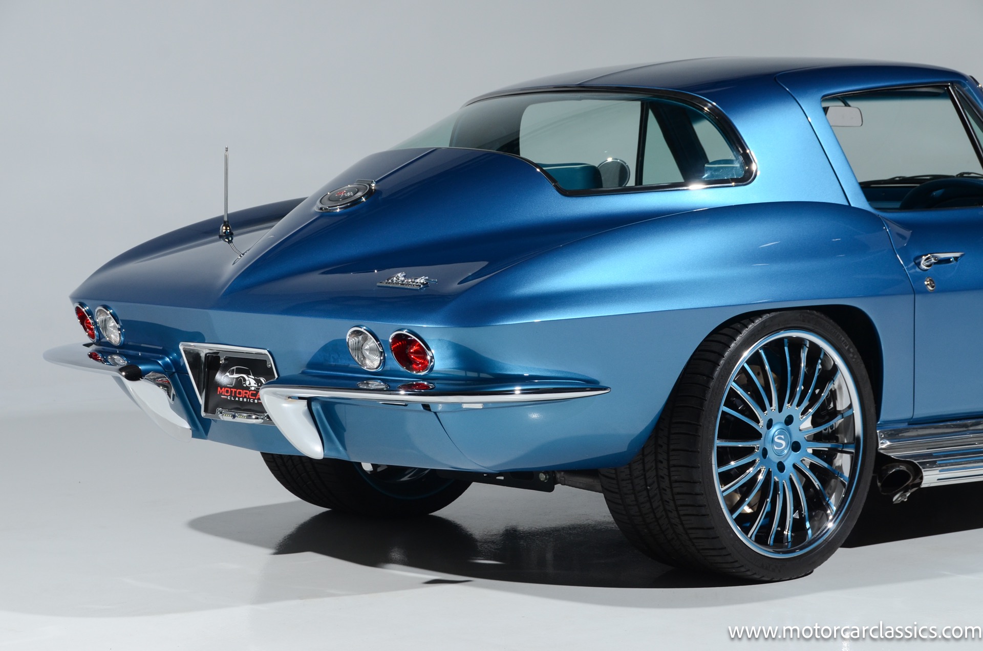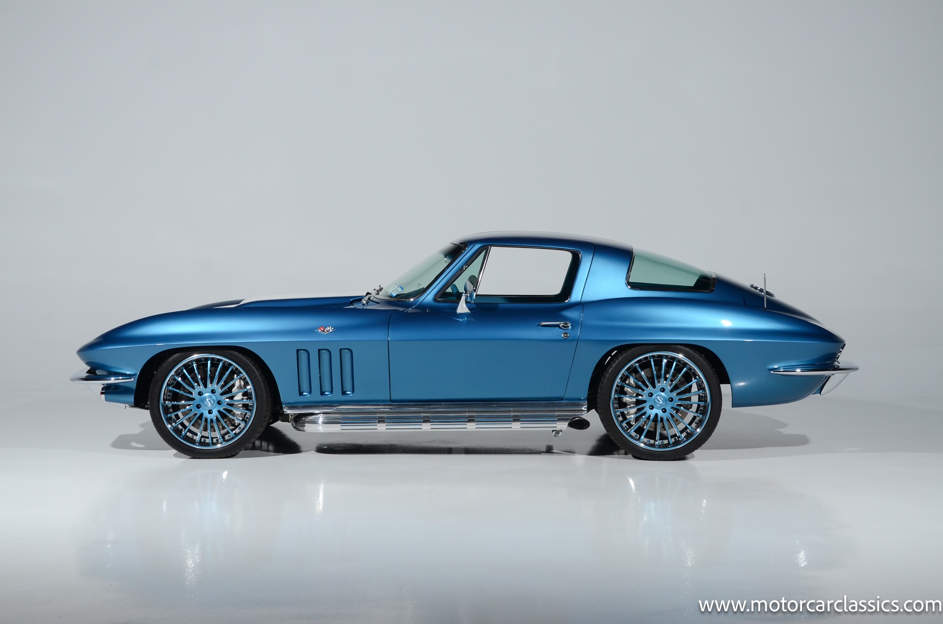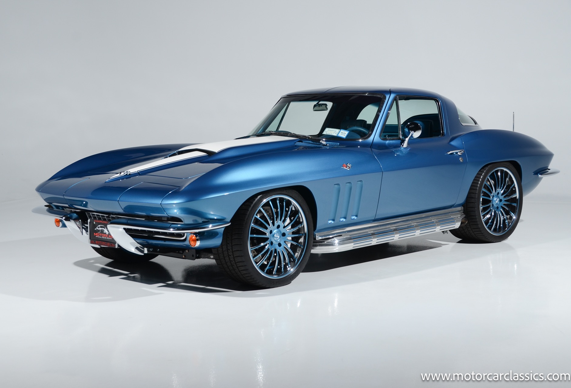 1966 Chevrolet Corvette LT4 for sale! Motorcar Classics is proud to present this one off 1966 Corvette Resto-Mod, finished in the desired Marina Blue pearl with a full custom leather Blue and White interior. This vehicle sits on a Tray Waldon Street Chop C-7 chassis with adjustable coil overs. Under the hood is the incredible 6.2L LT-4 Supercharged engine making 650HP attached to a Tremec 5 speed manual transmission with a 3.36 rear axle ratio. Traveling only 178 break in miles, this vehicle is essentially a new C-7 Z06 with a vintage body. Options include: Hypro Boost brake system with 6 piston Wilwood front calipers and 4 piston Wilwood rear calipers,Rack and Pinion Steering, Vintage Air A/C, Custom 2 pc Forged Savini rims, 19x10 Front and 20x12 Rear, Flaming River Tilt Steering wheel, Electric E- Brake, VAIS Technology alarm system, Push Button Start, Classic Industries Gauges and Clock, Power windows, Bluetooth radio, back up camera and much more. Your Inspection is invited!