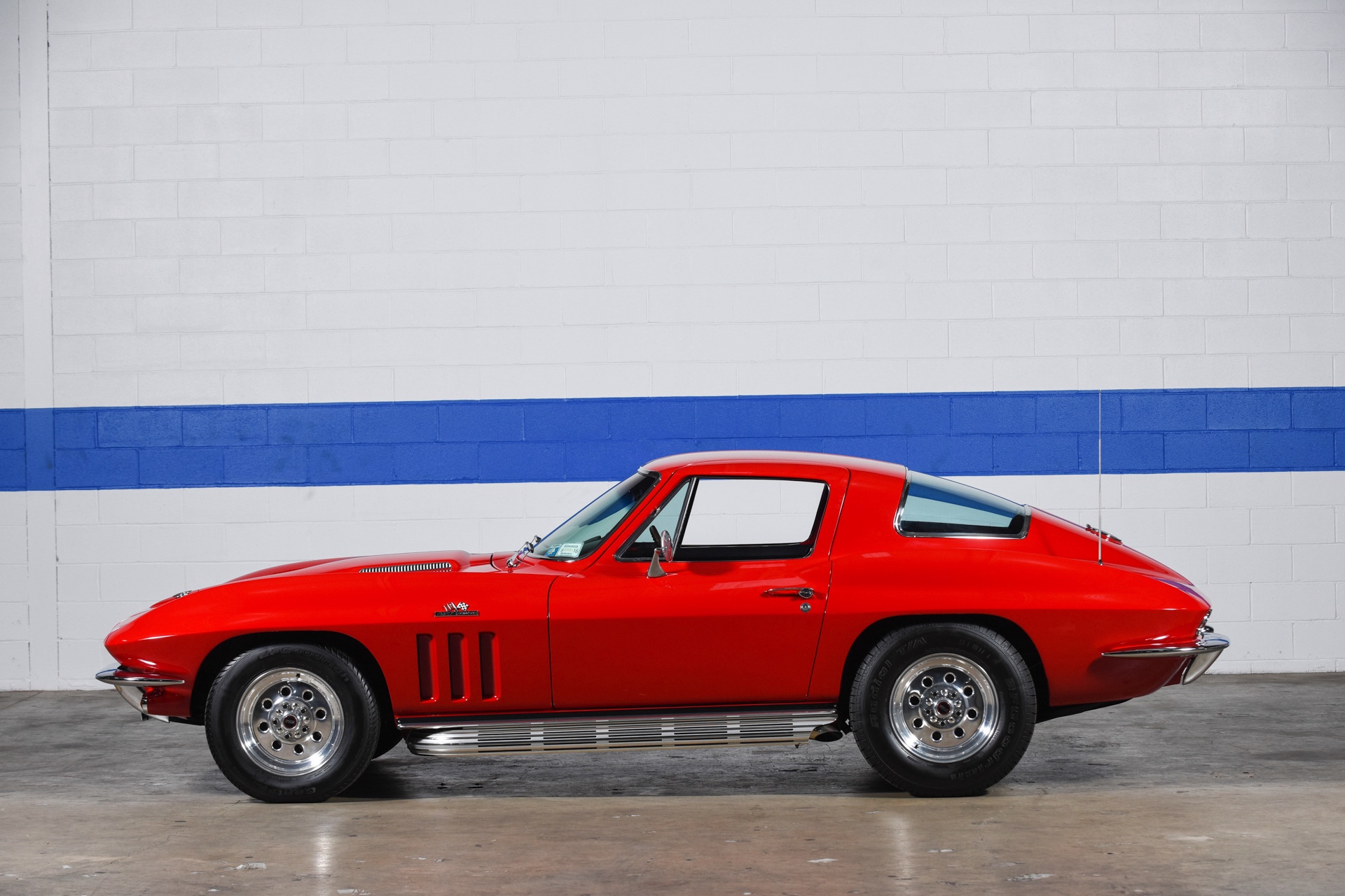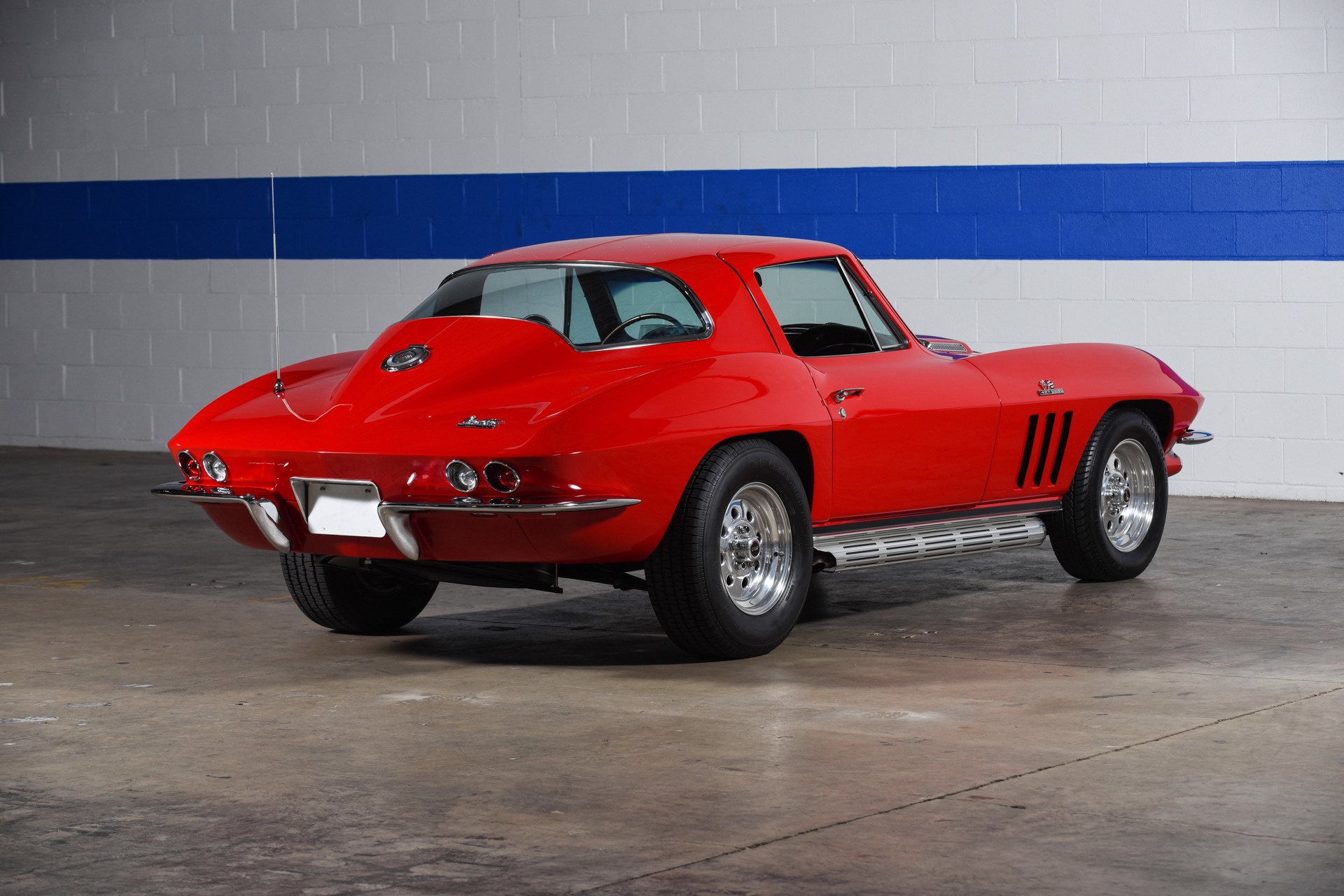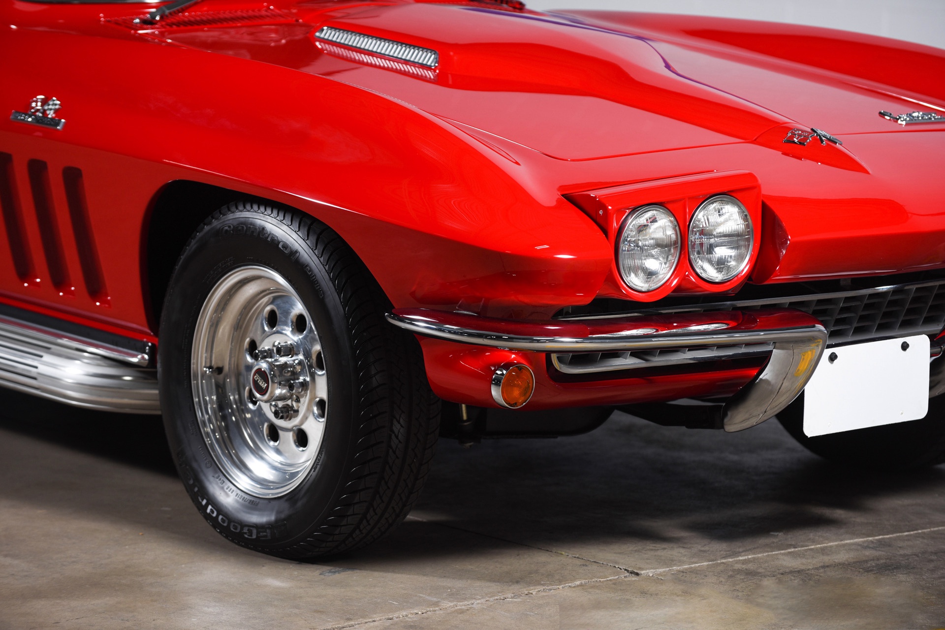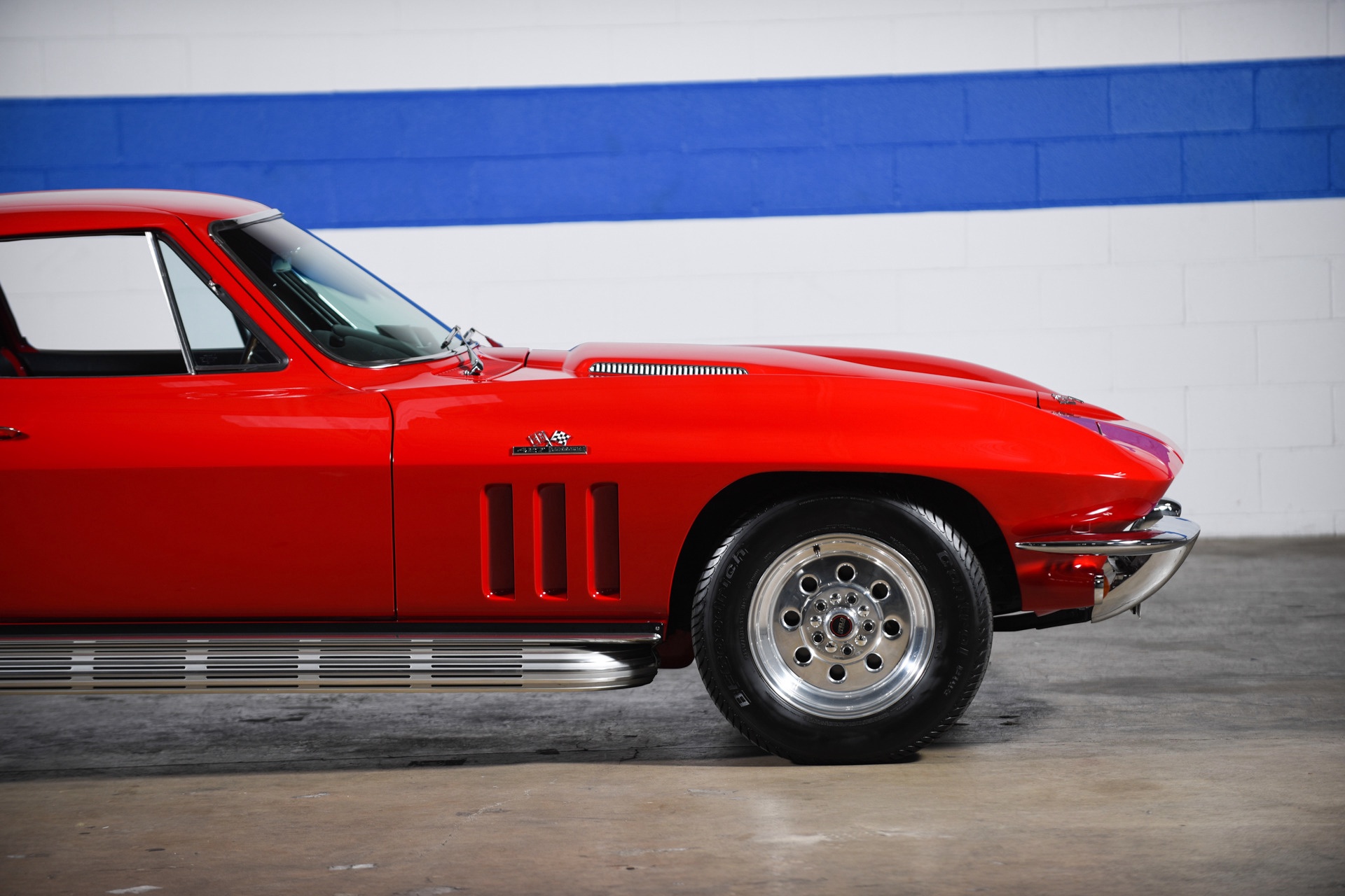 1966 CHEVROLET CORVETTE COUPE for sale. Motorcar Classics proudly presents this beautiful 1966 Chevrolet Corvette Coupe finished in Rally Red with a Black vinyl interior. This car benefits from a body-off nut & bolt restoration and is in excellent condition throughout. It is an original big block car, but it currently has a 454 CI LS6 crate motor, with M-22 Rock-Crusher 4 speed transmission, and external exhaust. The car rides on Weld Racing wheels with new BF Goodrich tires, 205/70R15 front, and 235/70R15 rear. It has Power Brakes, Power Antenna, and the original AM/FM radio.This handsome Corvette coupe is meticulously detailed all around with an immaculate undercarriage. The next owner will seriously enjoy driving this Corvette everywhere. It is loud and fast! Whether you're driving around or going to cruise nights, this Corvette will get plenty of compliments wherever you go.