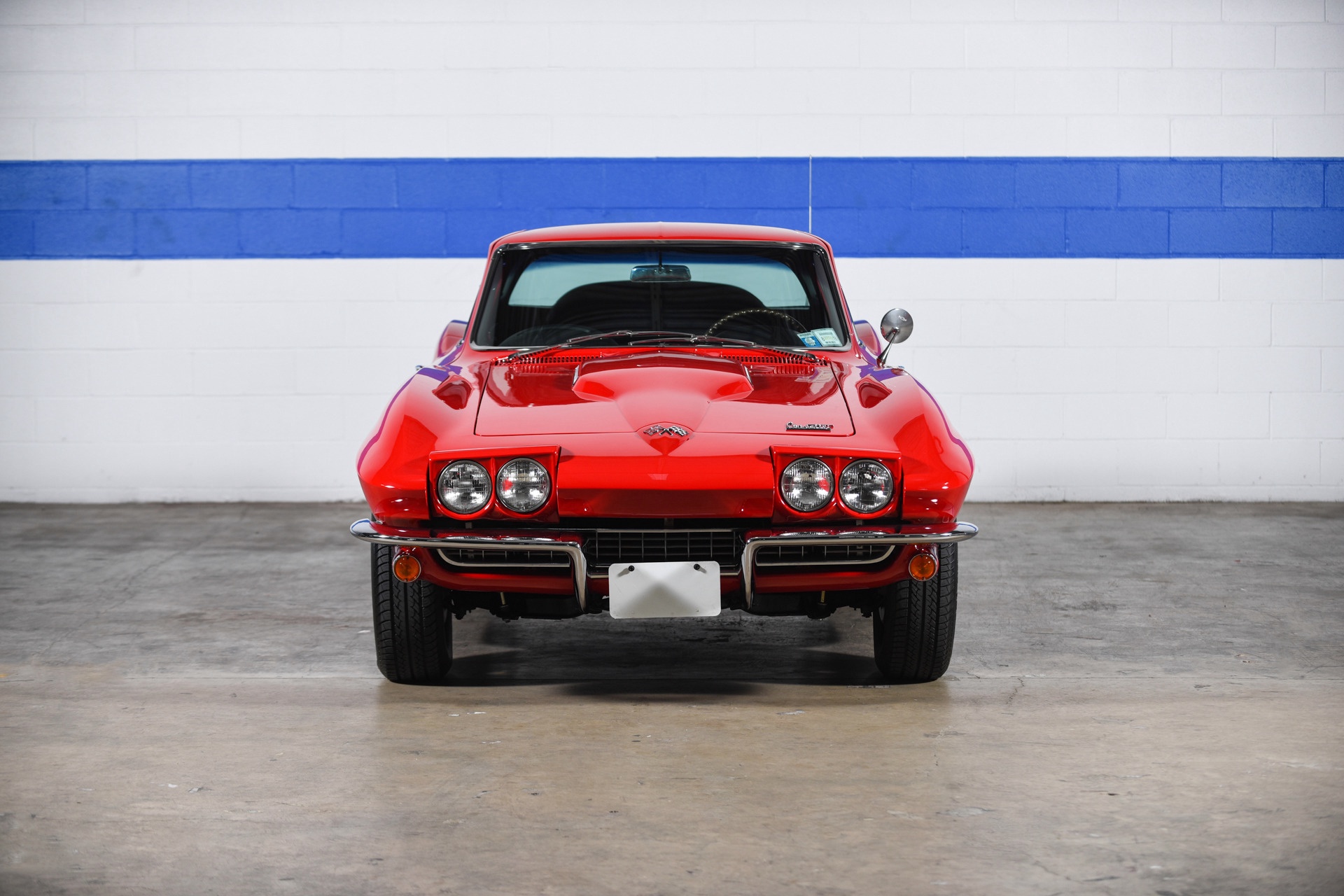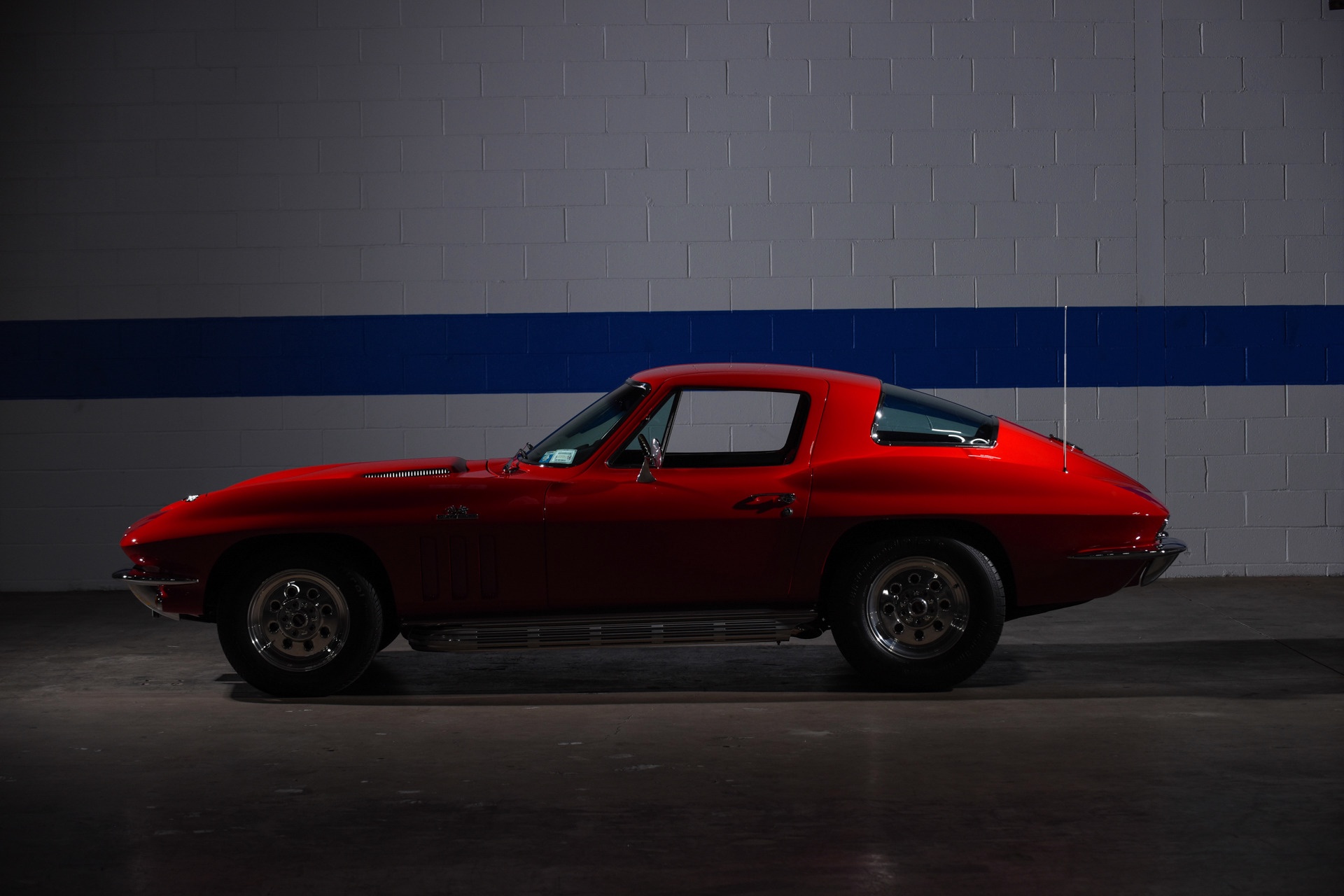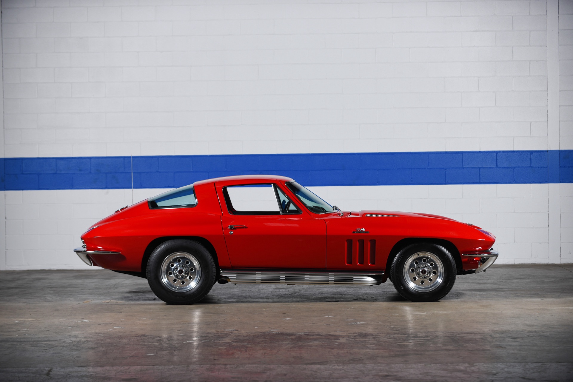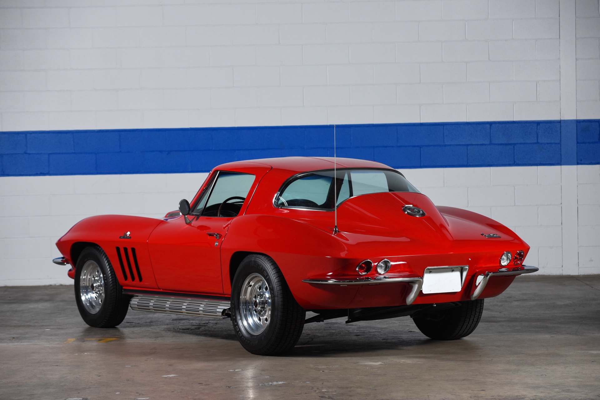 1966 CHEVROLET CORVETTE COUPE for sale. Motorcar Classics proudly presents this beautiful 1966 Chevrolet Corvette Coupe finished in Rally Red with a Black vinyl interior. This car benefits from a body-off nut & bolt restoration and is in excellent condition throughout. It is an original big block car, but it currently has a 454 CI LS6 crate motor, with M-22 Rock-Crusher 4 speed transmission, and external exhaust. The car rides on Weld Racing wheels with new BF Goodrich tires, 205/70R15 front, and 235/70R15 rear. It has Power Brakes, Power Antenna, and the original AM/FM radio.This handsome Corvette coupe is meticulously detailed all around with an immaculate undercarriage. The next owner will seriously enjoy driving this Corvette everywhere. It is loud and fast! Whether you're driving around or going to cruise nights, this Corvette will get plenty of compliments wherever you go.