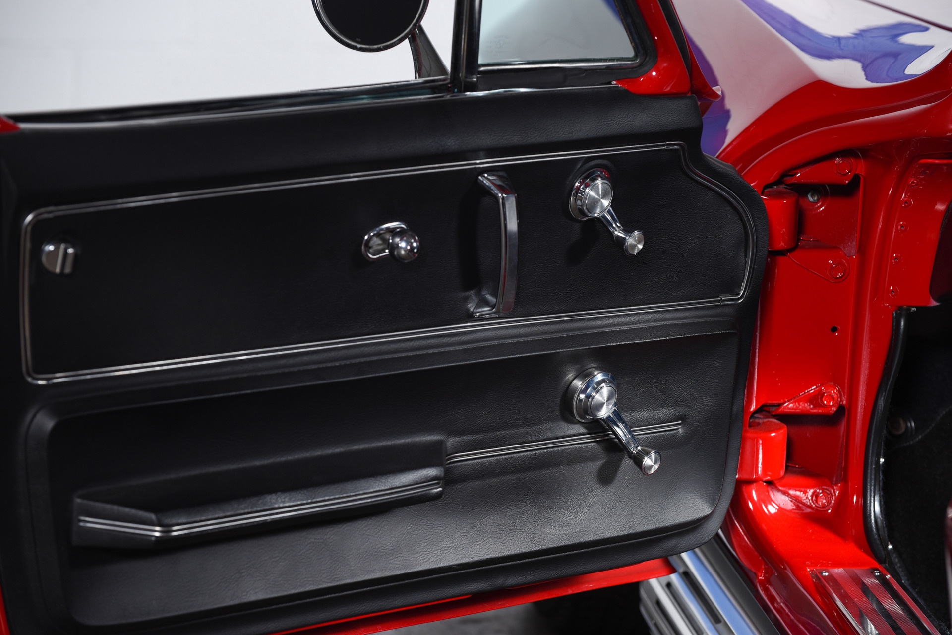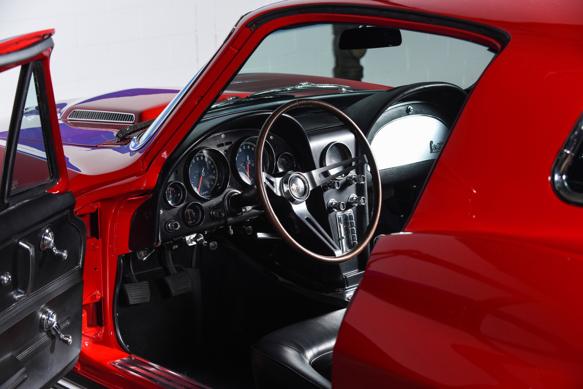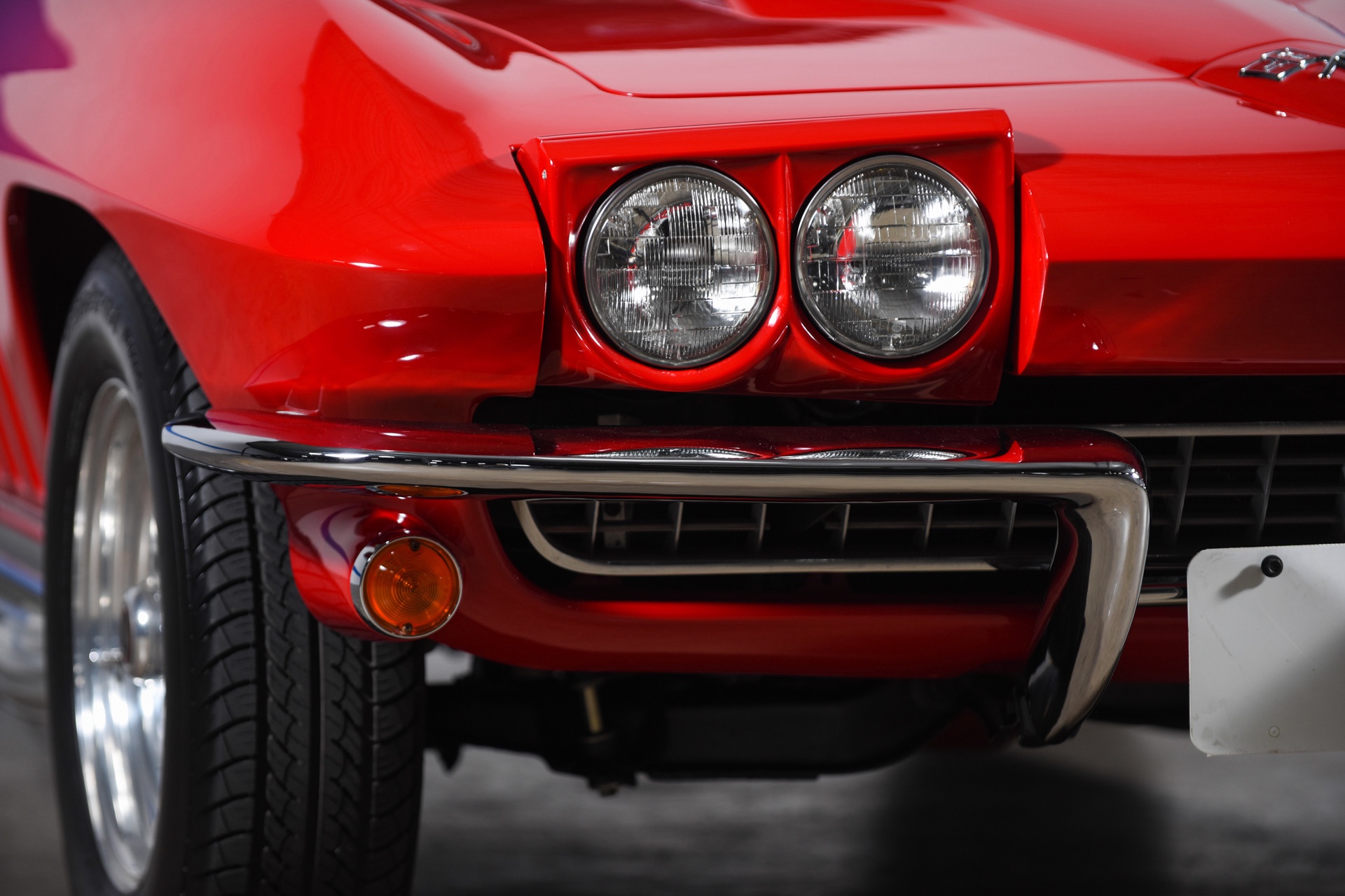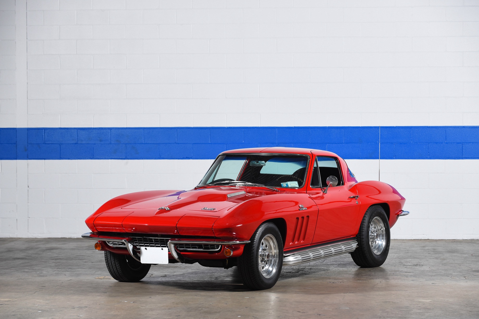 1966 CHEVROLET CORVETTE COUPE for sale. Motorcar Classics proudly presents this beautiful 1966 Chevrolet Corvette Coupe finished in Rally Red with a Black vinyl interior. This car benefits from a body-off nut & bolt restoration and is in excellent condition throughout. It is an original big block car, but it currently has a 454 CI LS6 crate motor, with M-22 Rock-Crusher 4 speed transmission, and external exhaust. The car rides on Weld Racing wheels with new BF Goodrich tires, 205/70R15 front, and 235/70R15 rear. It has Power Brakes, Power Antenna, and the original AM/FM radio.This handsome Corvette coupe is meticulously detailed all around with an immaculate undercarriage. The next owner will seriously enjoy driving this Corvette everywhere. It is loud and fast! Whether you're driving around or going to cruise nights, this Corvette will get plenty of compliments wherever you go.