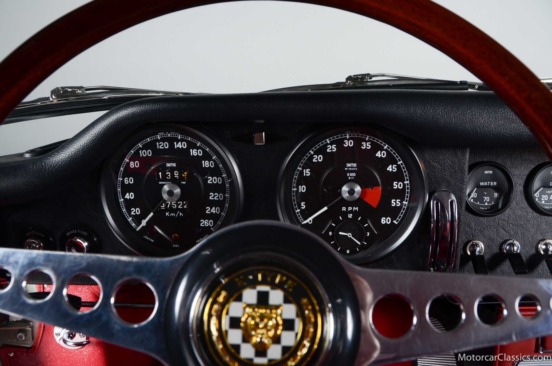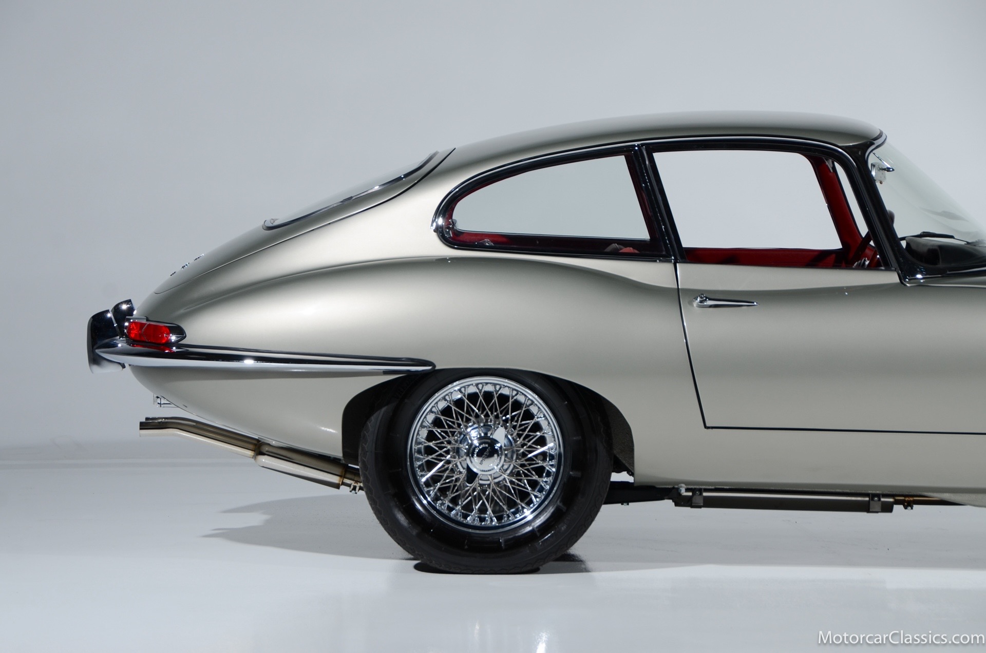 1966 Jaguar E-Type XKE FHC (Fixed Head Coupe) 4.2L for sale! Motorcar Classics is pleased to offer this stunning Jaguar E-Type presented in Opalescent Silver Gray with Red interior. This 1966 Series 1 has undergone a complete restoration to return it to original factory condition. Every effort has been made to ensure accuracy and authenticity for its year. As such, the car operates perfectly and is a joy to drive. Originally a French Export vehicle, the speedometer tracks distance in kilometers not miles and the gauge reads in Km/h. This vehicle has been restored to the exacting condition it would have been when it left Coventry. For example, the vehicle would have received yellow headlight bulbs and Pirelli tires once it was processed in France but since the restoration was being done to factory standard, these elements were kept as they would have left England. Little is known of the car's history after its first owner but the vehicle was purchased in 1980 where it remained with the same owner until the restoration. Mileage is noted to be accurate as the vehicle was disassembled in the 80's and shelved for the majority of the last 40 years.