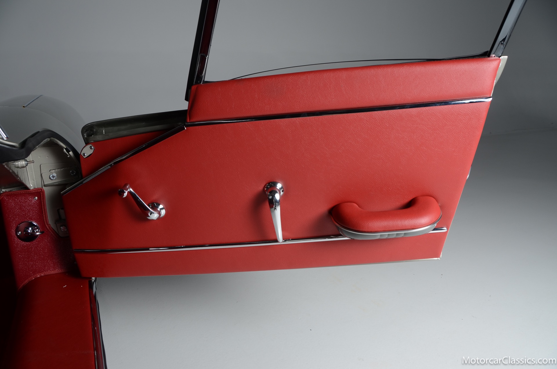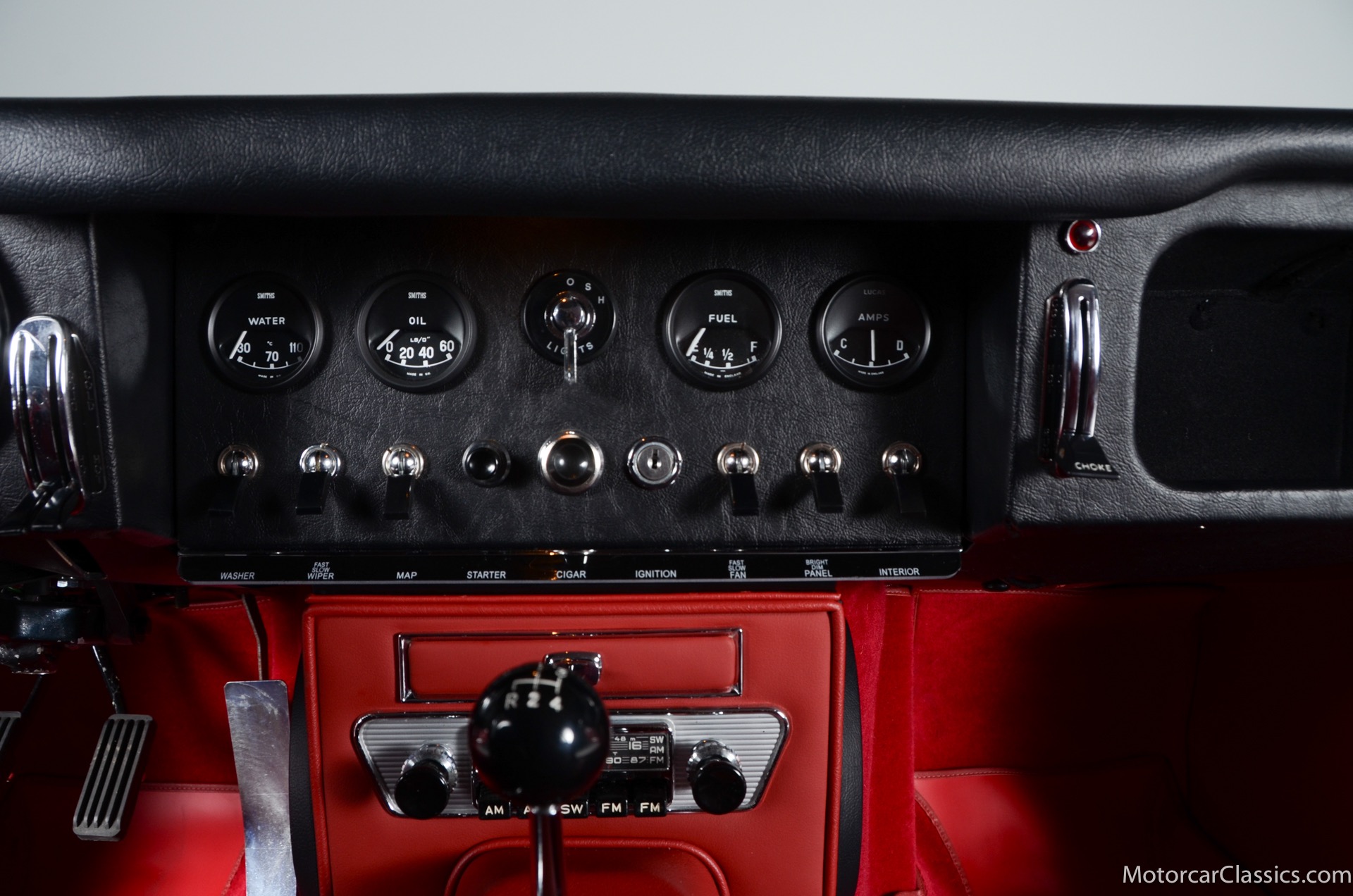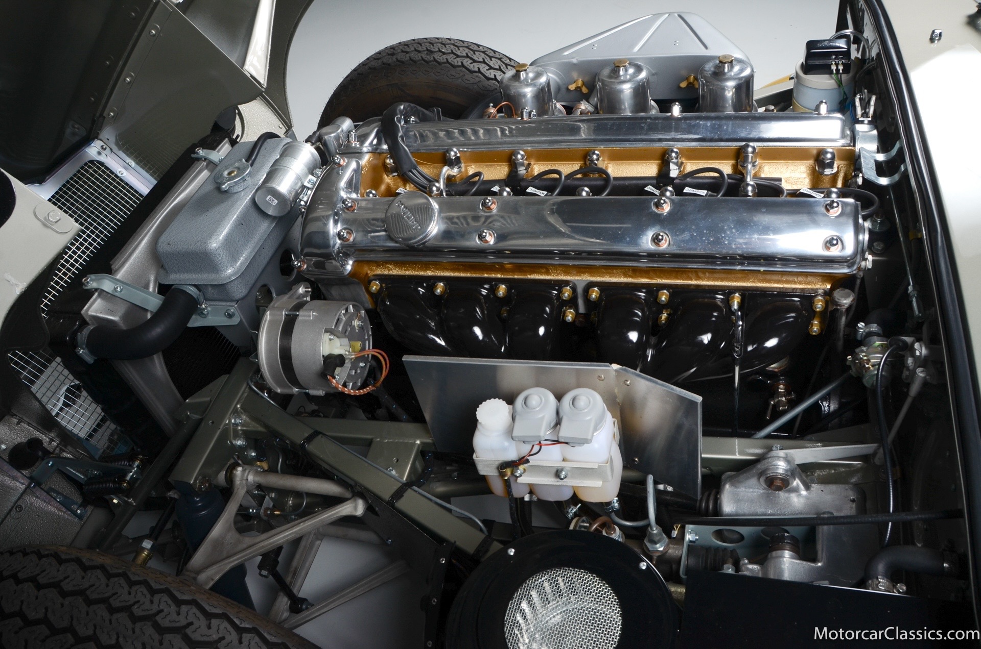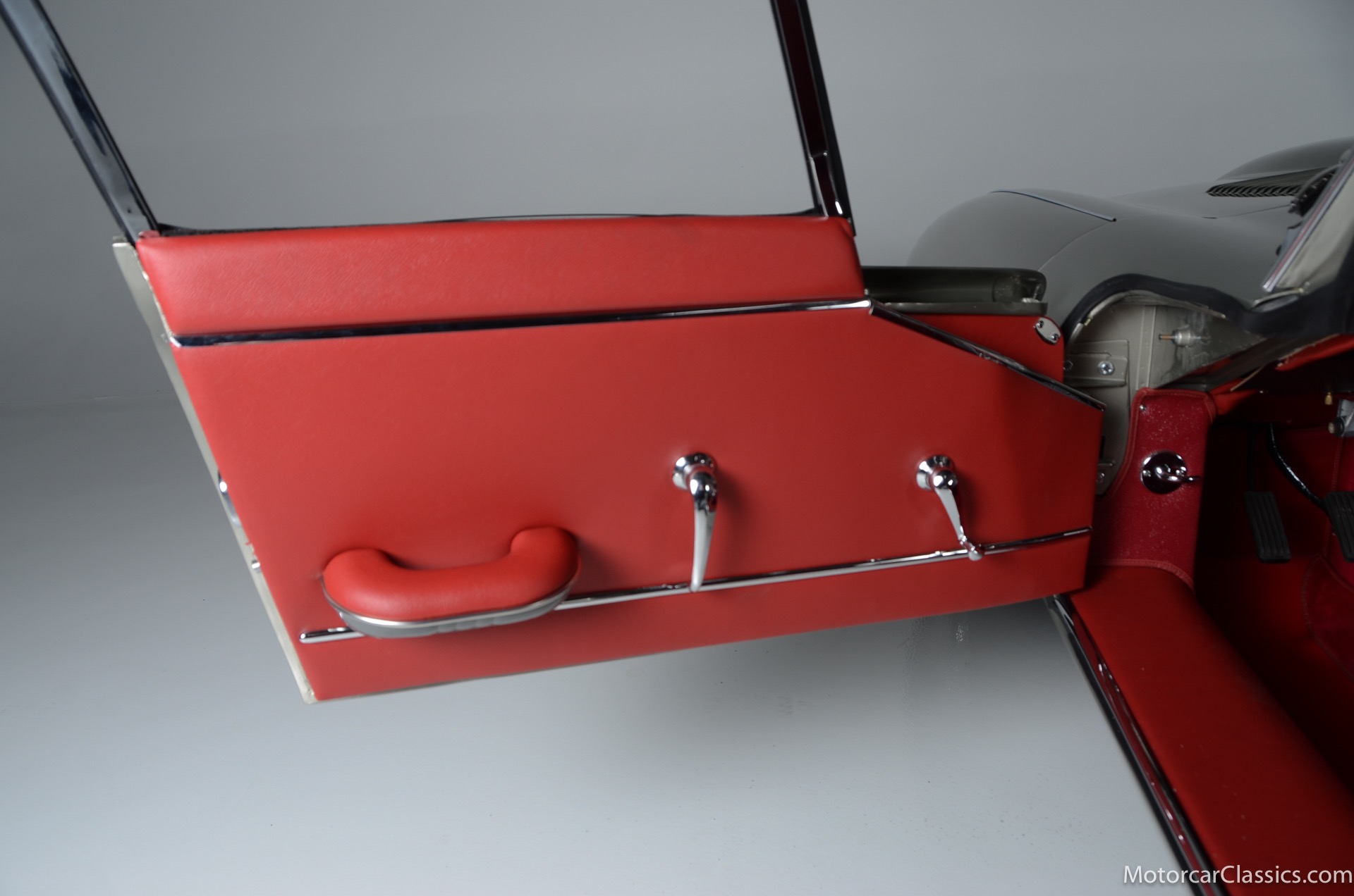 This example is fully numbers matching with rare color combo Opalescent Silver Gray with Red Interior. What we would consider a Concours level restoration which has been meticulously completed on this vehicle. Included with this car is the French Import Data Tag removed from the engine bay firewall but kept with the vehicle for historic purposes, original warranty card noting the first owner and the Delacroix dealer information, all Tri-Plex glass, perfectly matched battleship-gray/green paint on radiator support rails. We would consider this XKE concours ready and it has all necessary accessories required for showing including: Complete tool kit, factory jack, factory hammer, front license plate mounting kit (needs to be shown with car since front plate is not mounted) and the original owner's manual and parts catalog all included with vehicle. Do not miss this opportunity to own a piece of jaguar history!