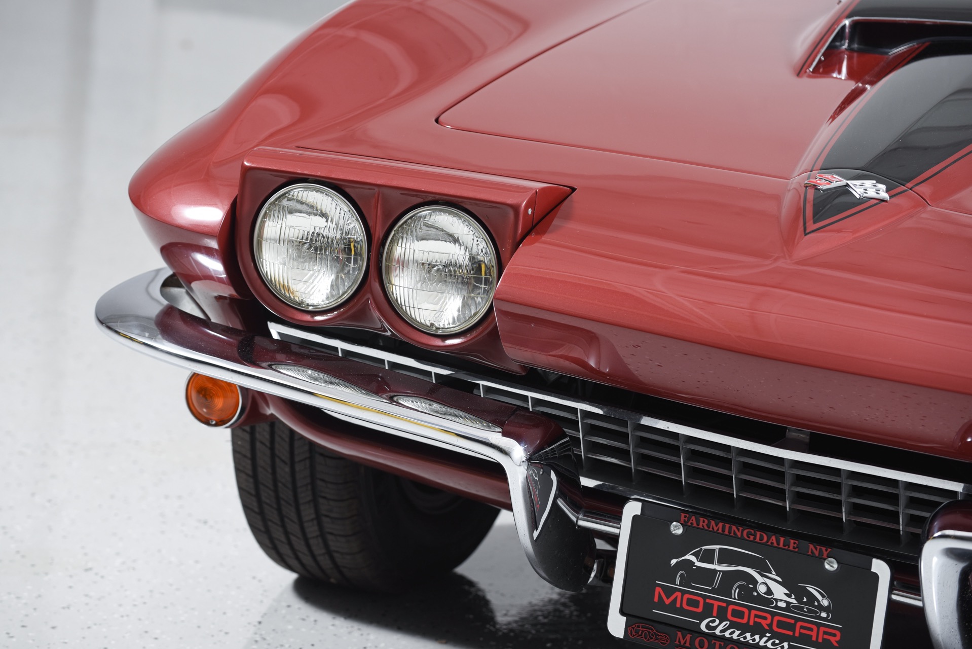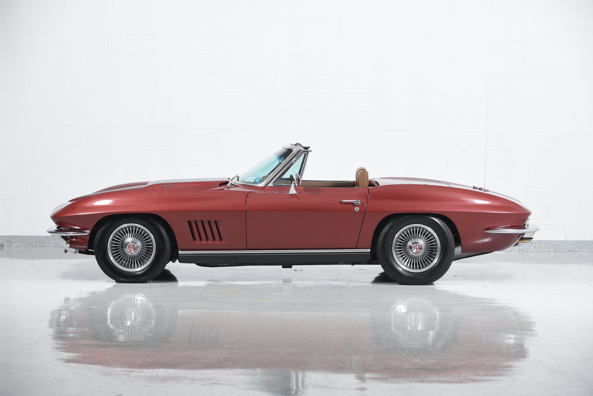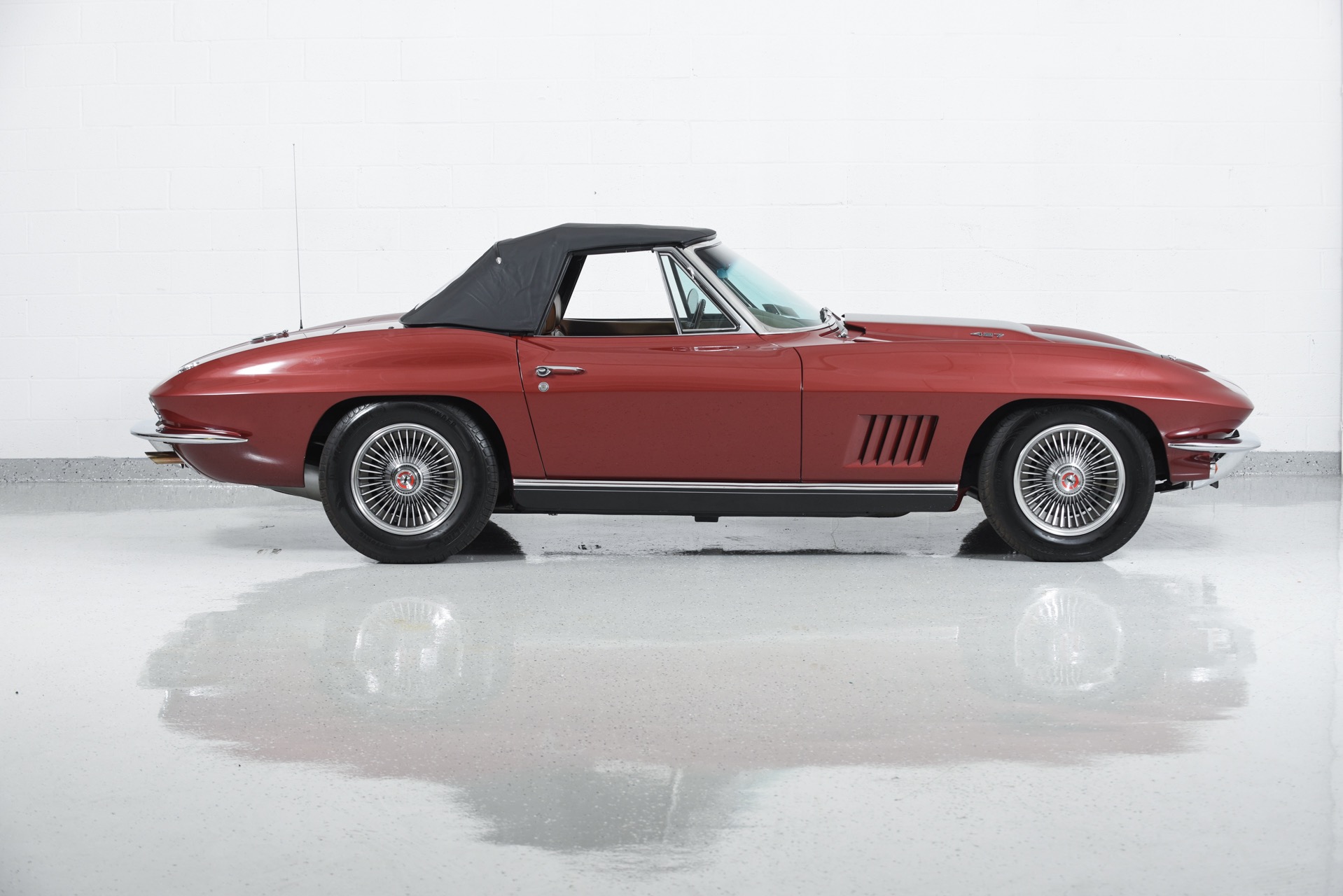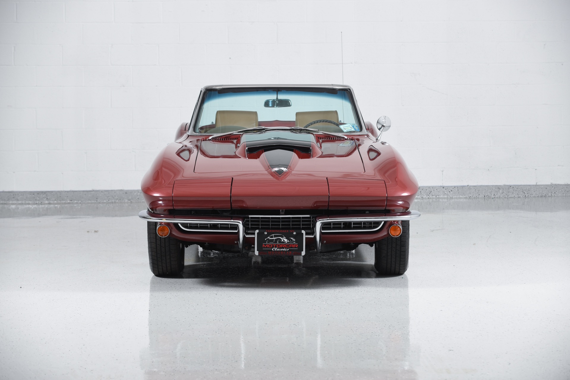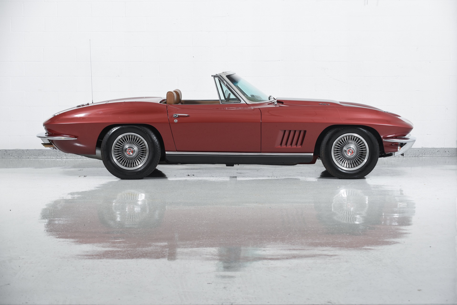 1967 CHEVROLET CORVETTE ROADSTER for sale. Motorcar Classics is proud to present this magnificent 1967 Chevrolet Corvette Roadster featured in Marlboro maroon with Saddle interior. This car has a meticulous nut & bolt frame-off restoration. It is powered by the L71 427CI/435HP V8 with 4-speed manual gearbox. Options include leather seats, cast aluminum bolt-on wheels, AM/FM RADIO and rare headrests. It has a Black convertible top and Black stinger hood. This is a matching numbers car with all original mechanical components and a body that has never been hit or damaged. It is a superb big-block example from arguably the most desirable model year.