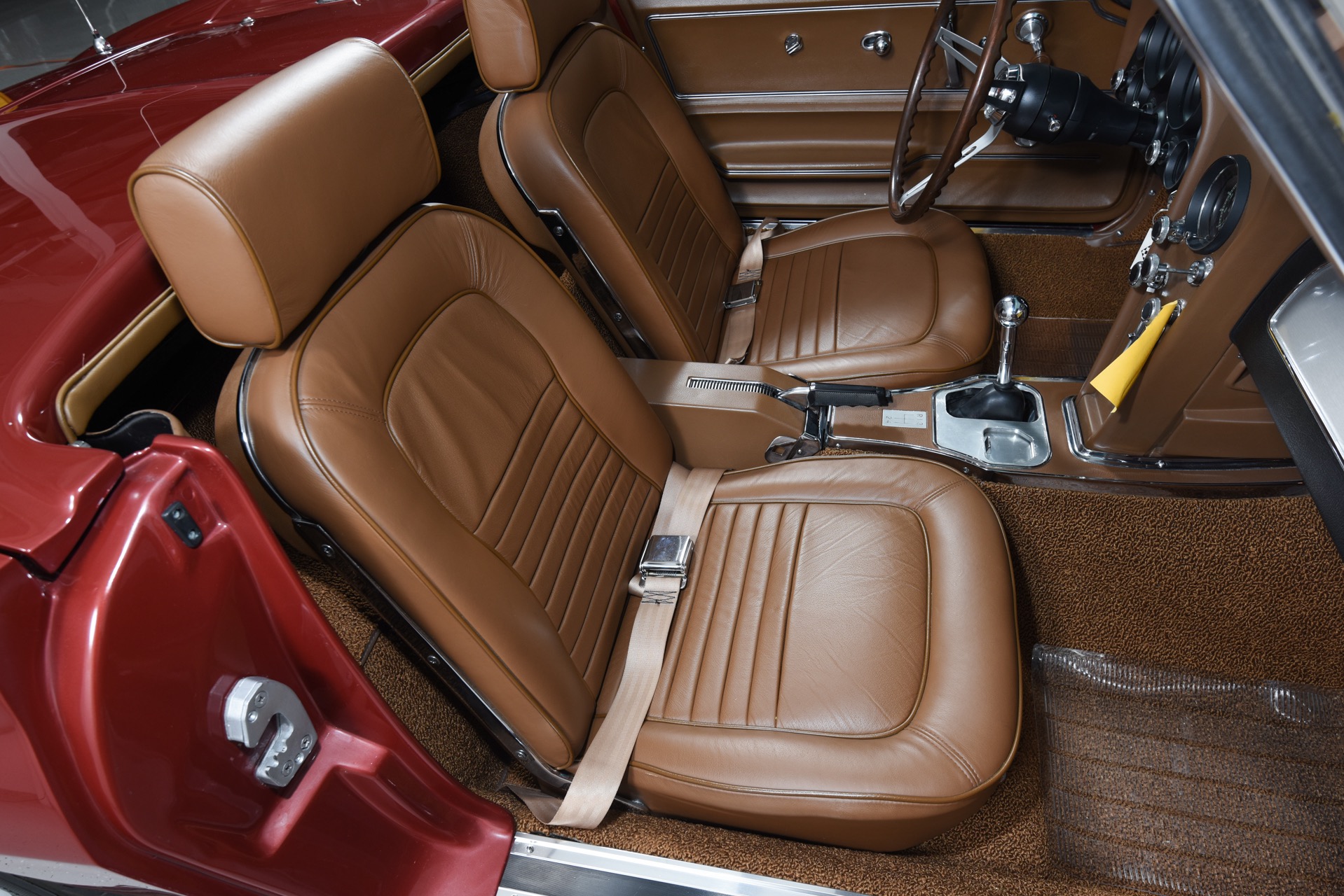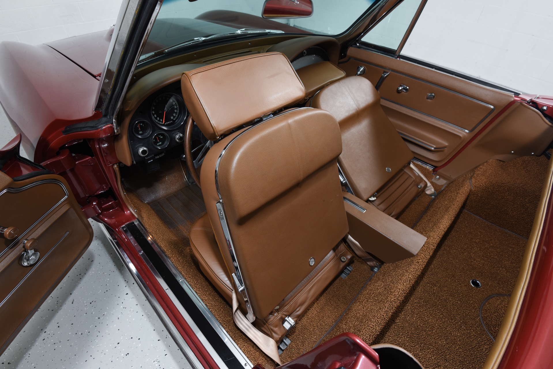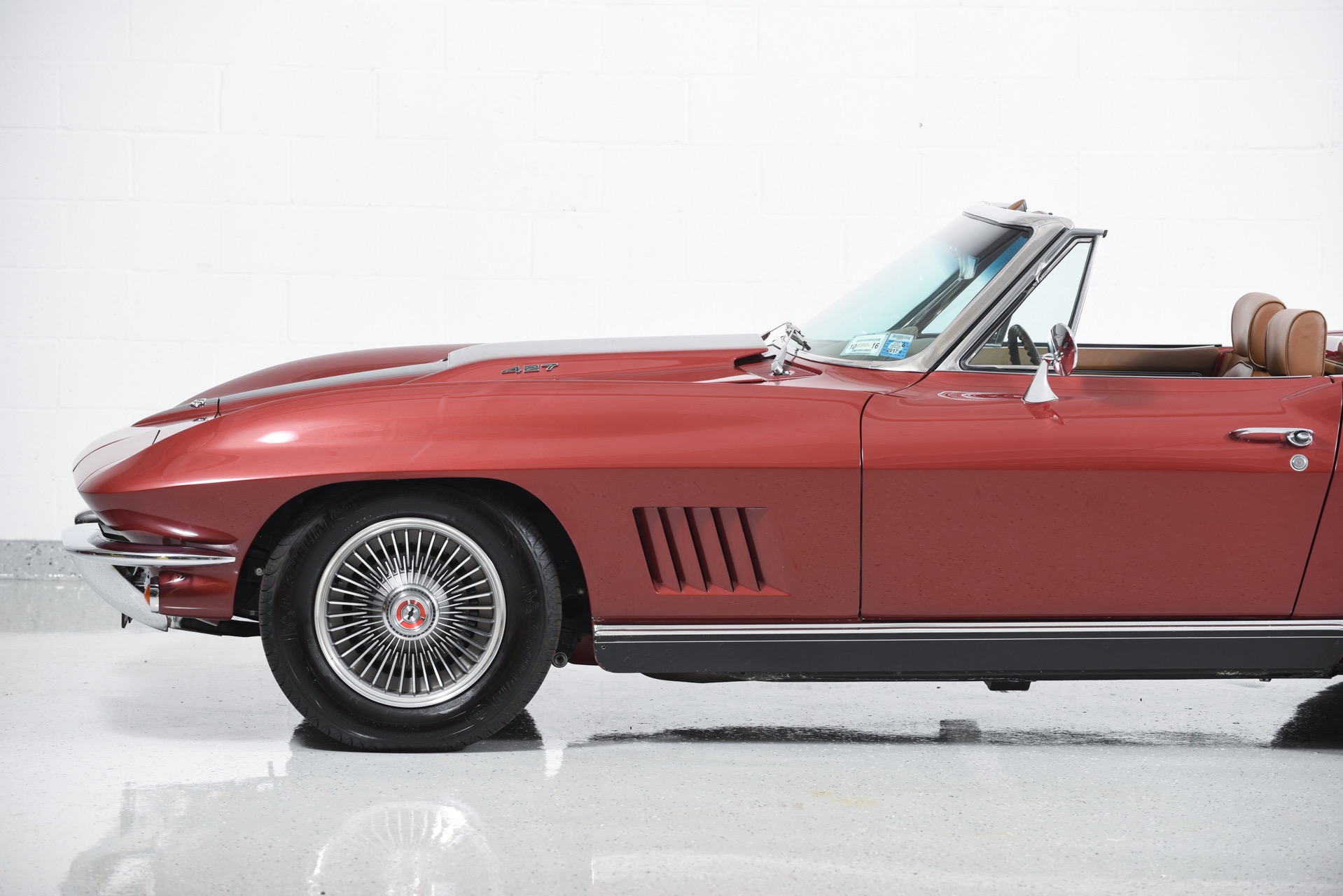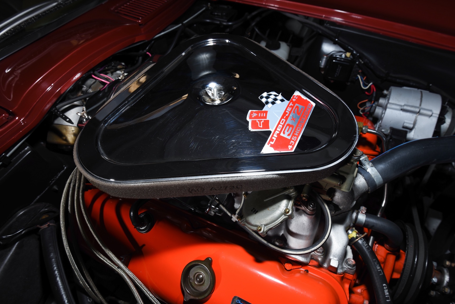 1967 CHEVROLET CORVETTE ROADSTER for sale. Motorcar Classics is proud to present this magnificent 1967 Chevrolet Corvette Roadster featured in Marlboro maroon with Saddle interior. This car has a meticulous nut & bolt frame-off restoration. It is powered by the L71 427CI/435HP V8 with 4-speed manual gearbox. Options include leather seats, cast aluminum bolt-on wheels, AM/FM RADIO and rare headrests. It has a Black convertible top and Black stinger hood. This is a matching numbers car with all original mechanical components and a body that has never been hit or damaged. It is a superb big-block example from arguably the most desirable model year.