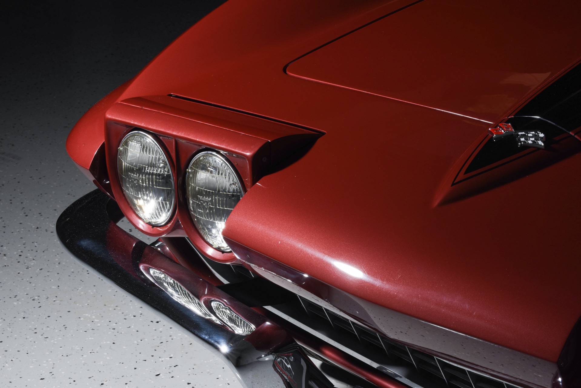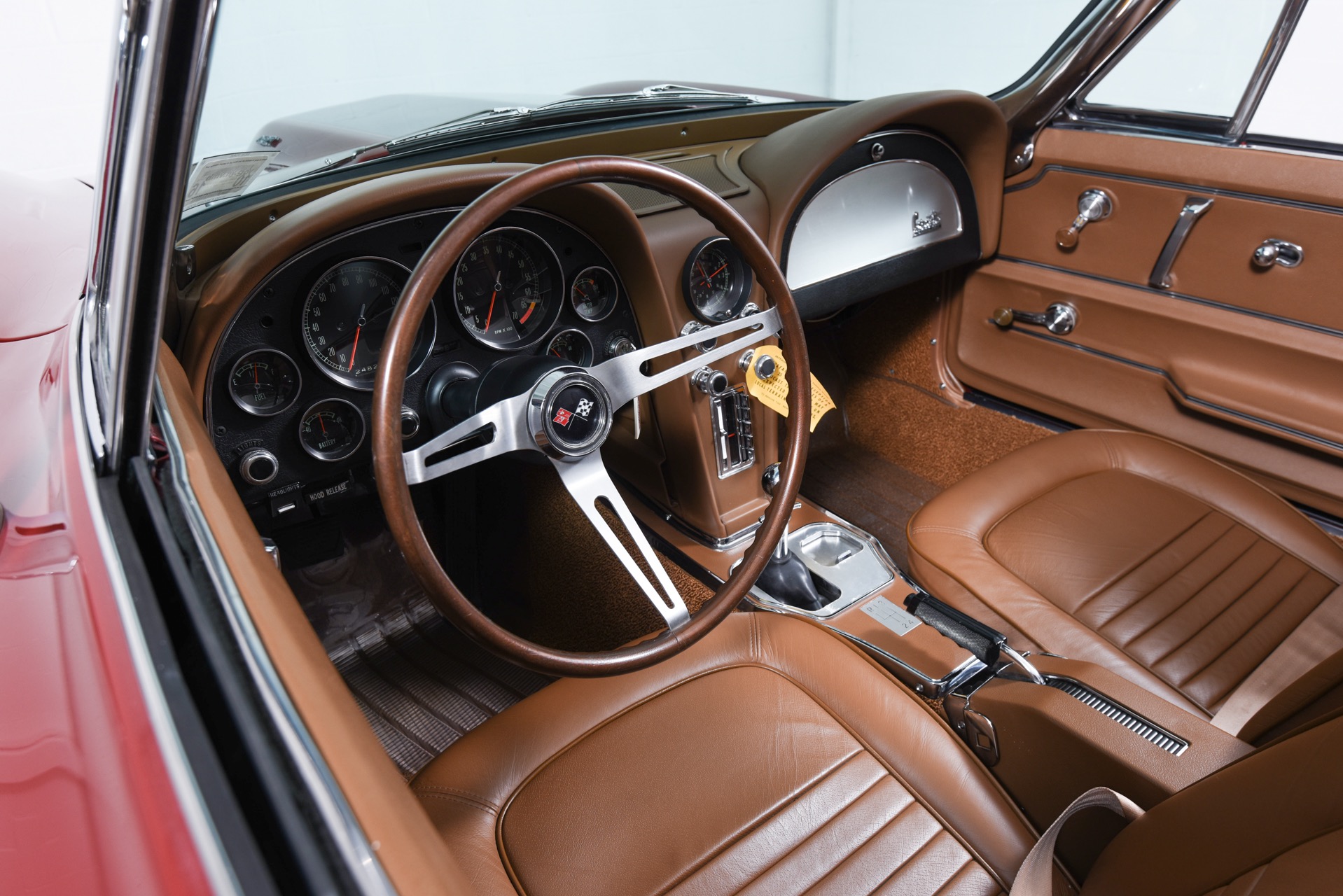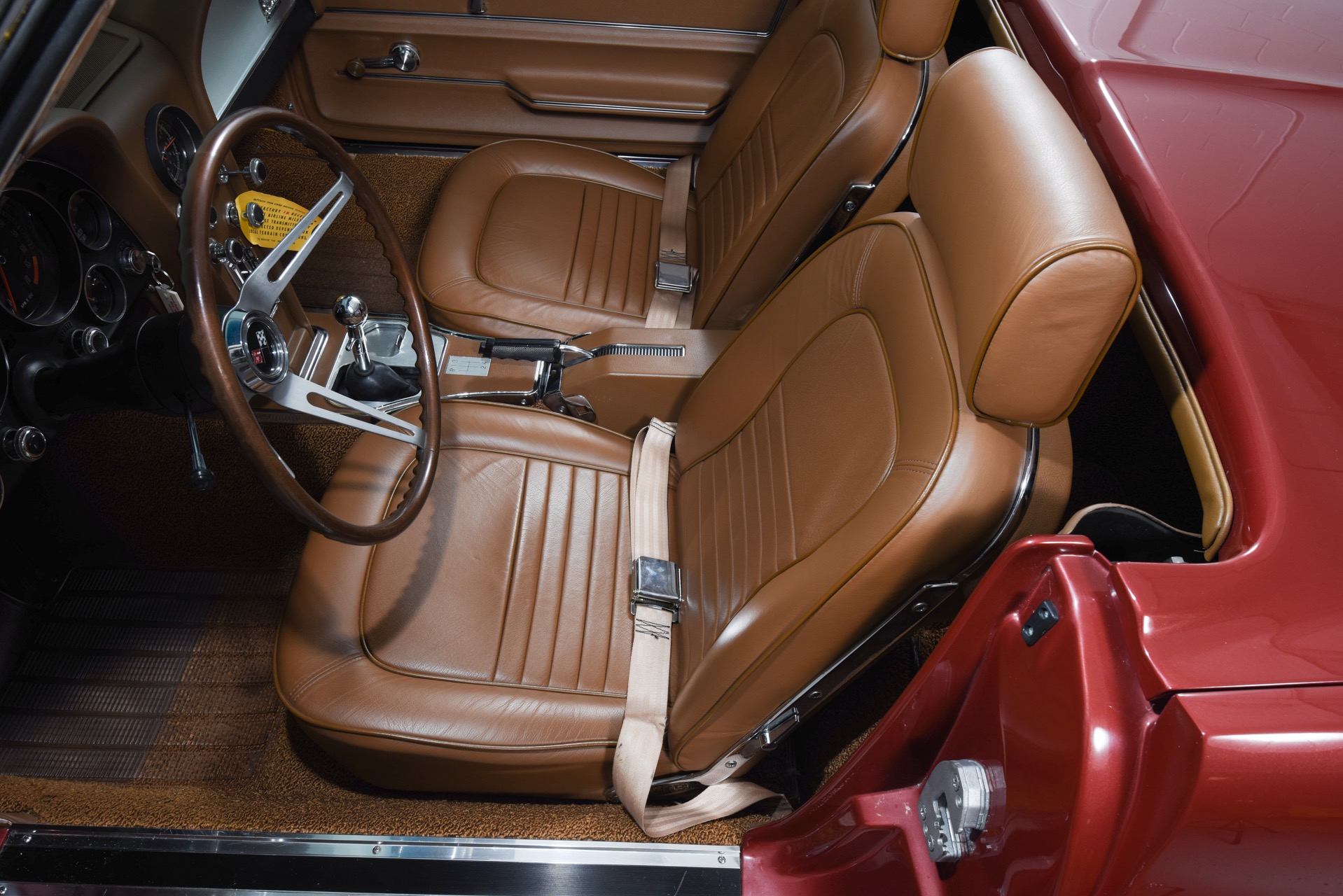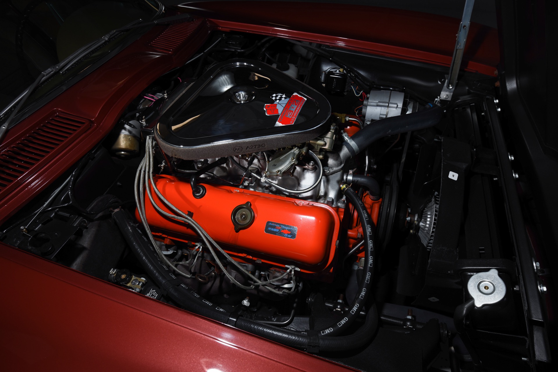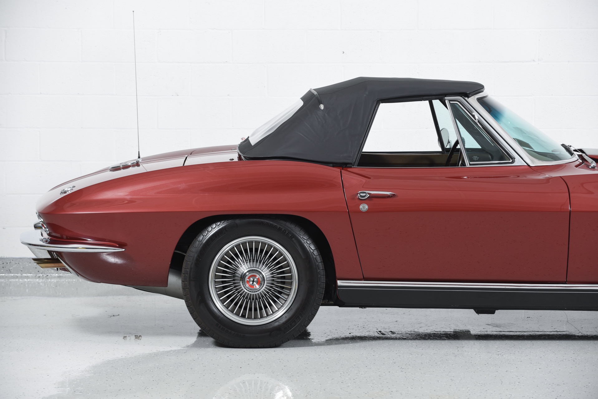 1967 CHEVROLET CORVETTE ROADSTER for sale. Motorcar Classics is proud to present this magnificent 1967 Chevrolet Corvette Roadster featured in Marlboro maroon with Saddle interior. This car has a meticulous nut & bolt frame-off restoration. It is powered by the L71 427CI/435HP V8 with 4-speed manual gearbox. Options include leather seats, cast aluminum bolt-on wheels, AM/FM RADIO and rare headrests. It has a Black convertible top and Black stinger hood. This is a matching numbers car with all original mechanical components and a body that has never been hit or damaged. It is a superb big-block example from arguably the most desirable model year.