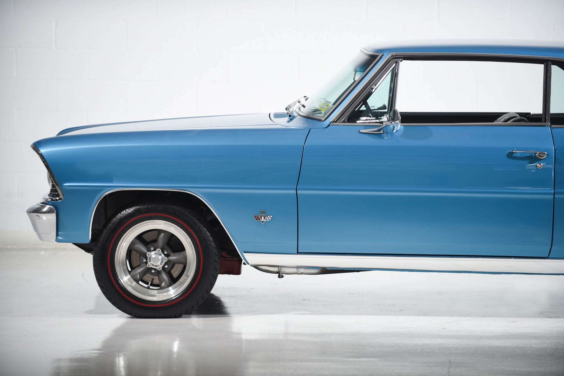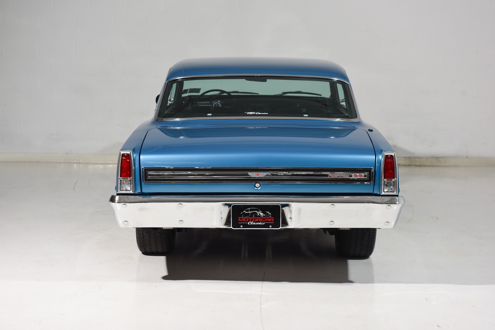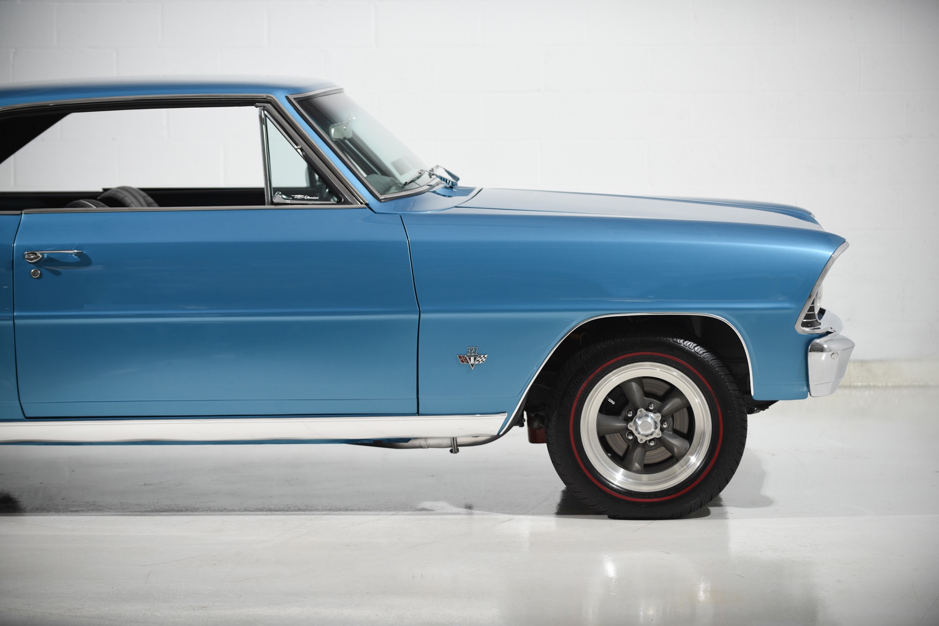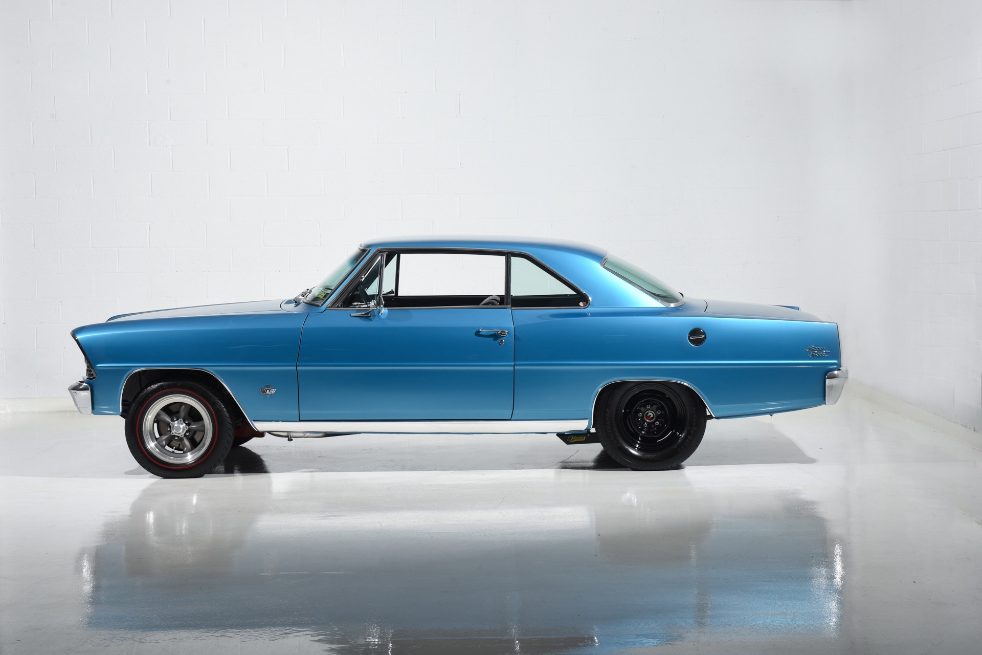 1967 CHEVROLET NOVA RESTOMOD for sale. Motorcar Classics is proud to present this 1967 Nova SS that is professionally-built to an incredibly high standard. Featured in Marina Blue with black interior, this is a real SS that has a photo-documented rotisserie restoration with a complete file of accompanying receipts to detail the bill of materials of all components. This car is running a period correct 327CI V8 that has been rebuilt, balanced and blueprinted including SA Gear roller timing set, Liberty Performance stainless roller rockers, Performer RPM manifold, and Comp Cams hydraulic roller cam and lifters. The car has a 4-speed Muncie gearbox with Hurst shifter and 3.73 rear. Our handsome Box Nova has all new sheetmetal, glass, chrome, interior and carpeting. The bill of materials shows that virtually everything is new and upgraded, including the radiator, suspension, fenderwell headers and exhaust, gas tank, wiring, wheels and tires. The car has won numerous awards in show, and it has covered less than 250 miles since completion. Here is an example of a car that has been built right and could not be duplicated for anywhere near its price. It is highly recommended.