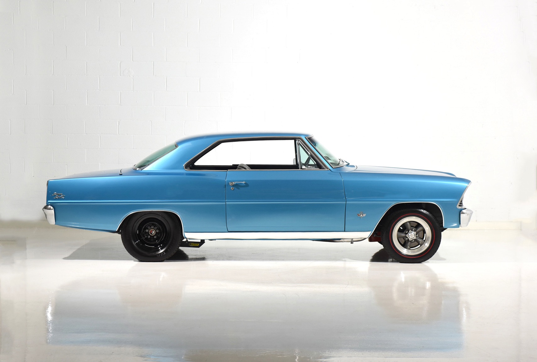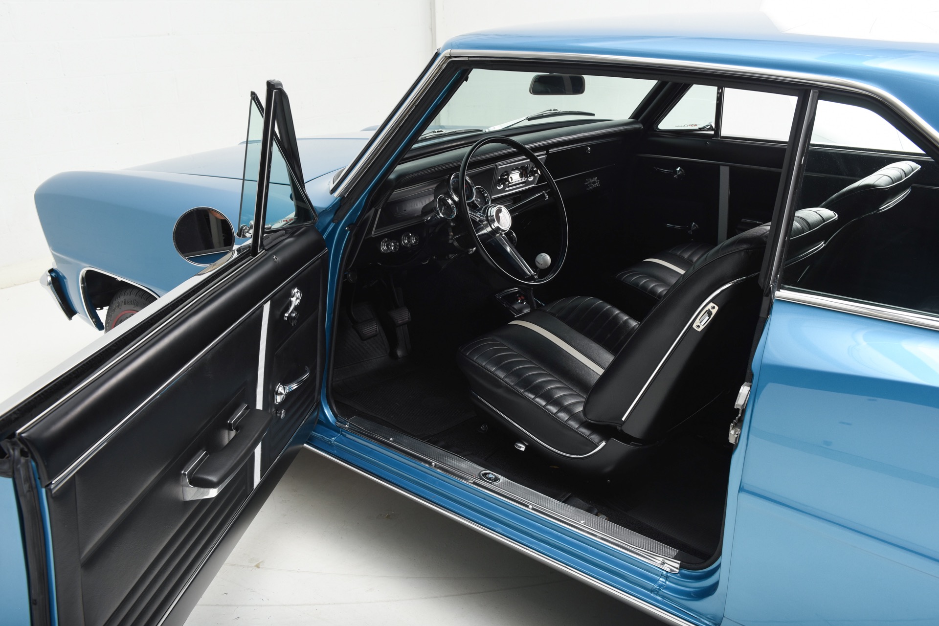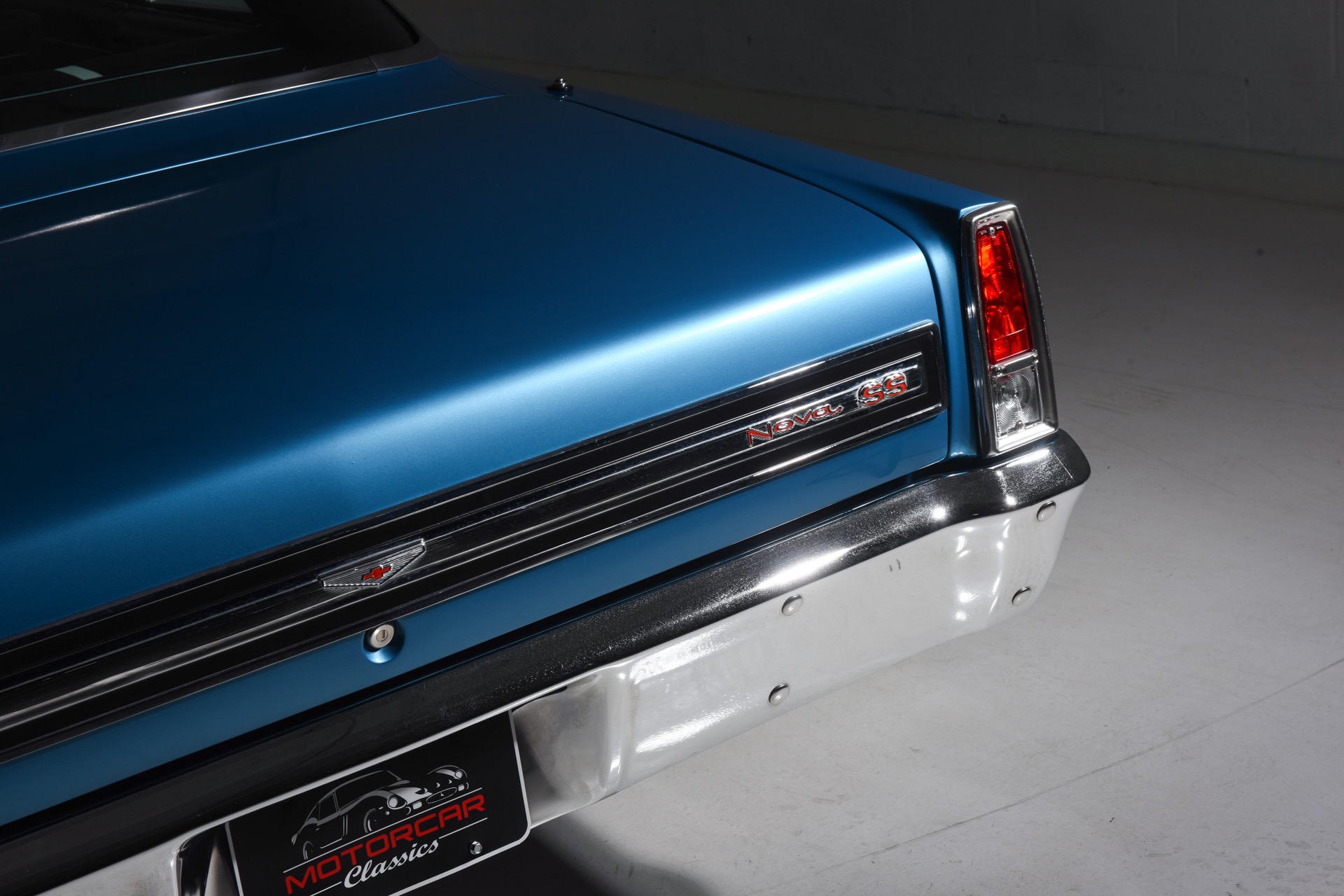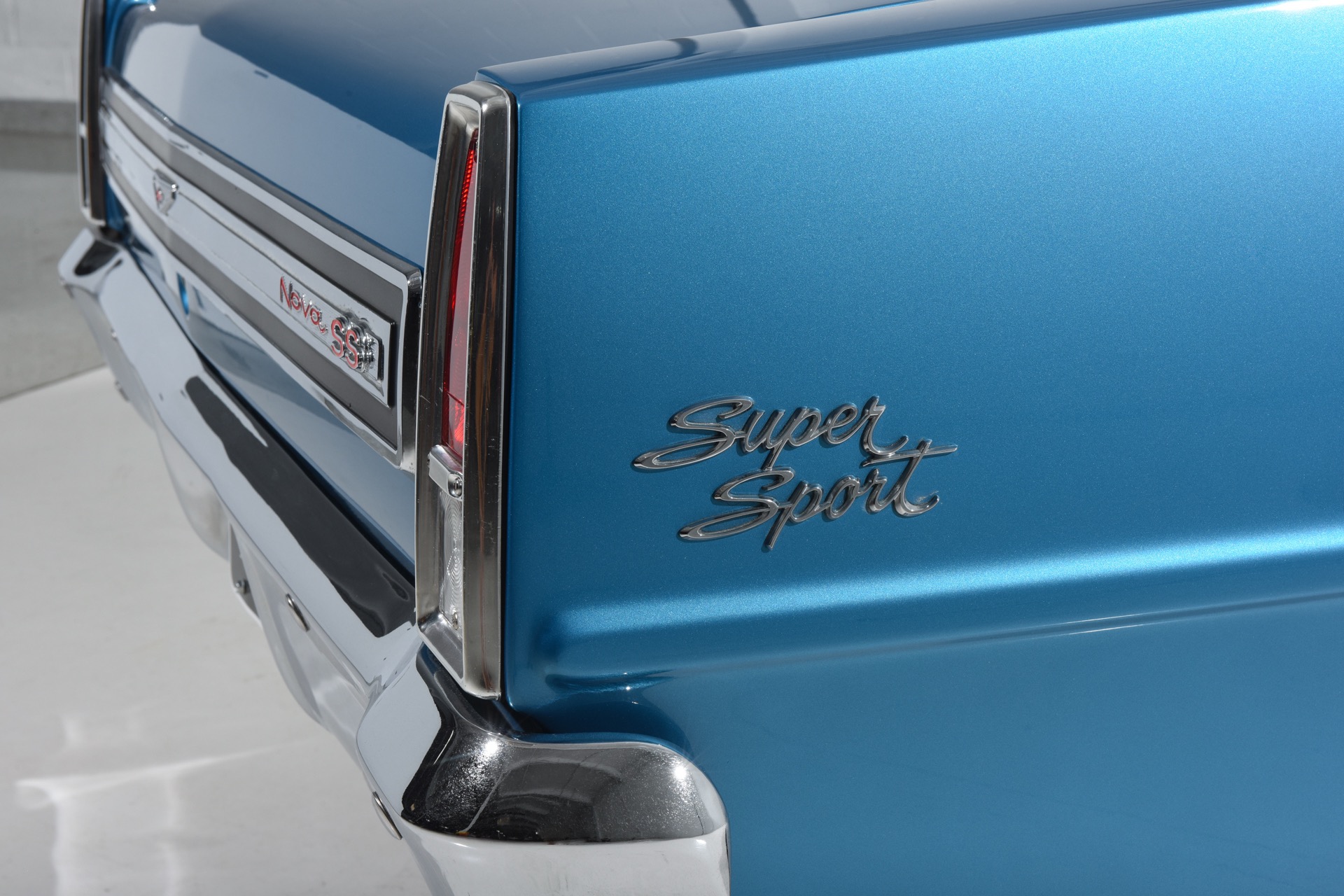 1967 CHEVROLET NOVA RESTOMOD for sale. Motorcar Classics is proud to present this 1967 Nova SS that is professionally-built to an incredibly high standard. Featured in Marina Blue with black interior, this is a real SS that has a photo-documented rotisserie restoration with a complete file of accompanying receipts to detail the bill of materials of all components. This car is running a period correct 327CI V8 that has been rebuilt, balanced and blueprinted including SA Gear roller timing set, Liberty Performance stainless roller rockers, Performer RPM manifold, and Comp Cams hydraulic roller cam and lifters. The car has a 4-speed Muncie gearbox with Hurst shifter and 3.73 rear. Our handsome Box Nova has all new sheetmetal, glass, chrome, interior and carpeting. The bill of materials shows that virtually everything is new and upgraded, including the radiator, suspension, fenderwell headers and exhaust, gas tank, wiring, wheels and tires. The car has won numerous awards in show, and it has covered less than 250 miles since completion. Here is an example of a car that has been built right and could not be duplicated for anywhere near its price. It is highly recommended.