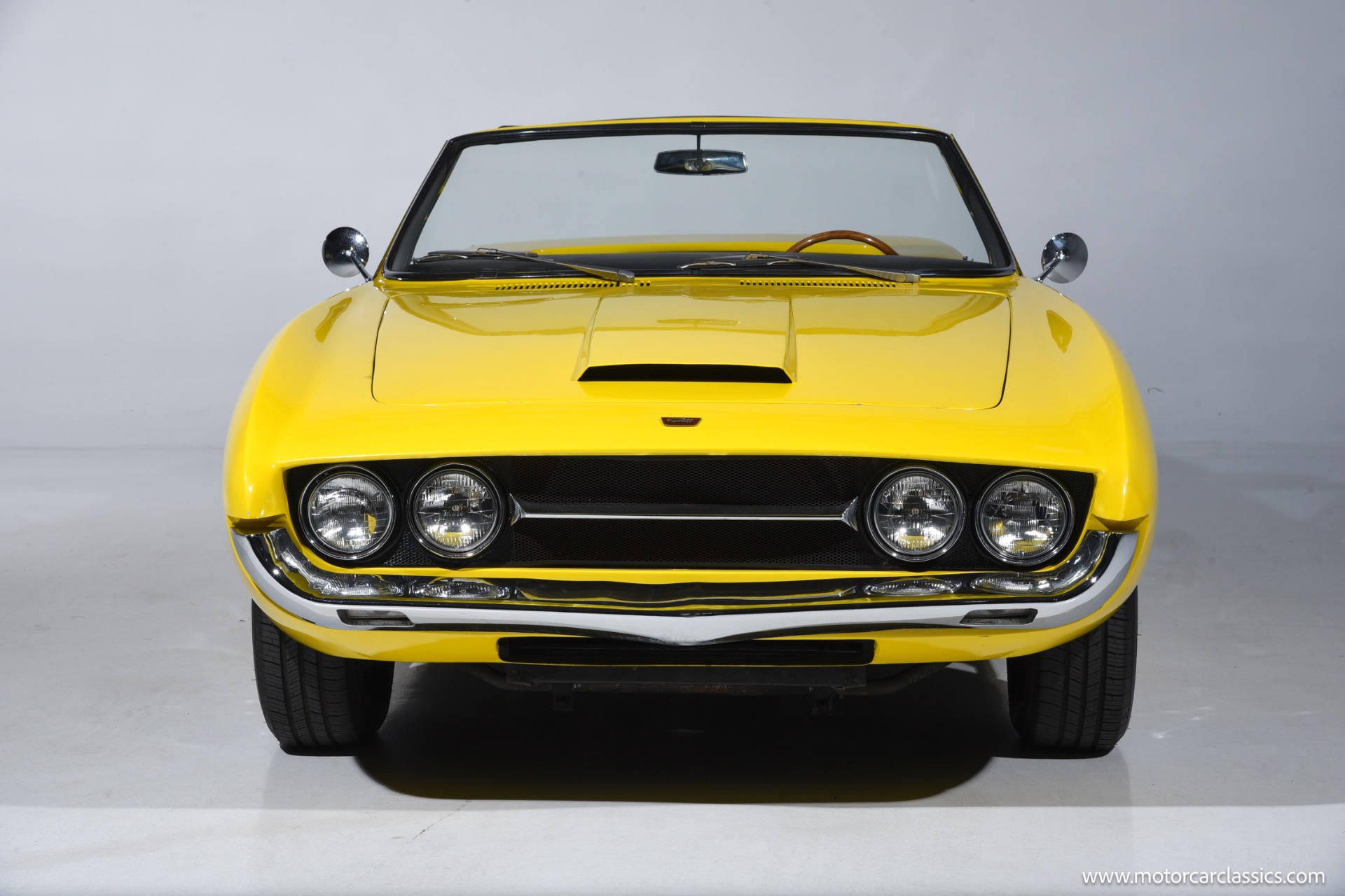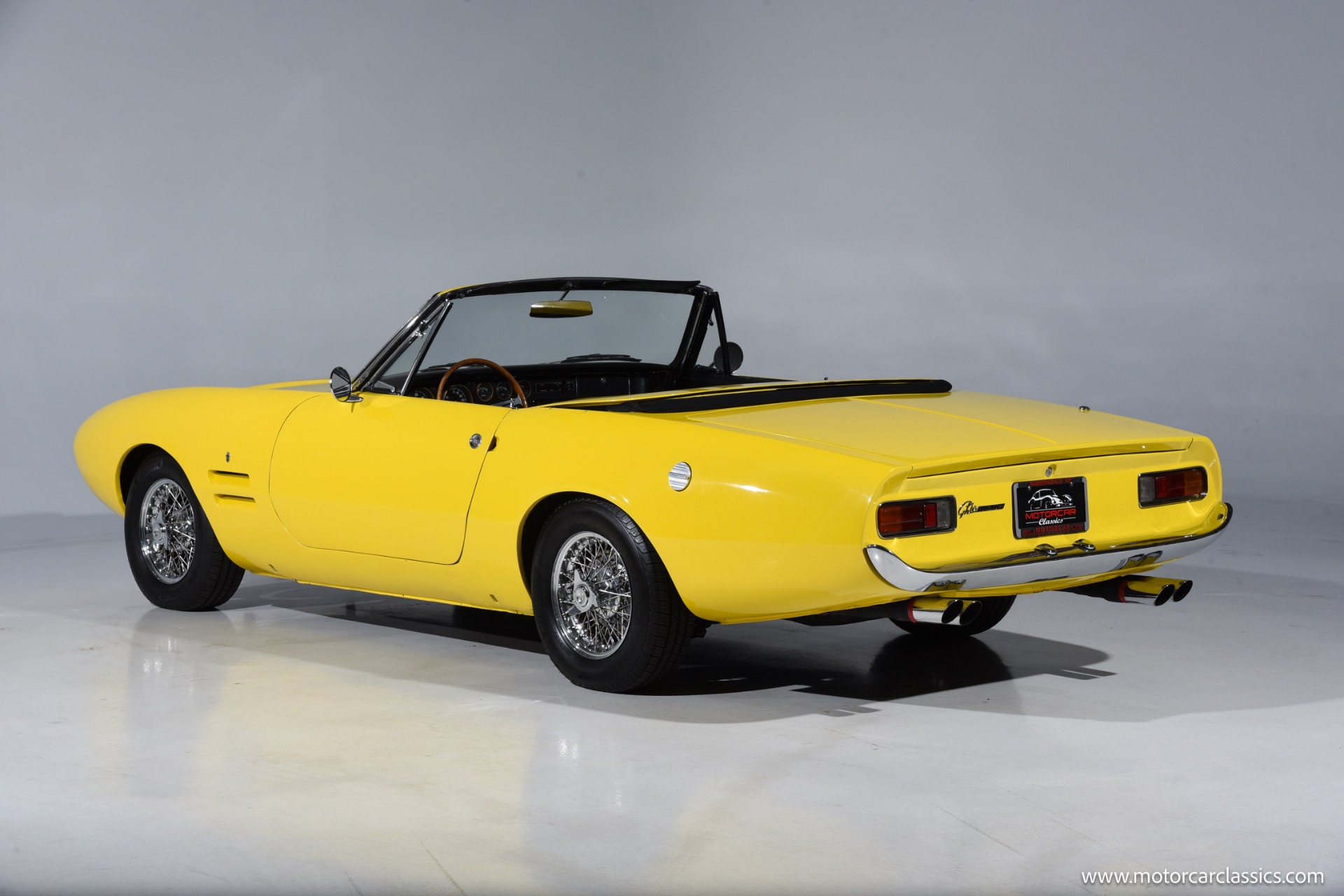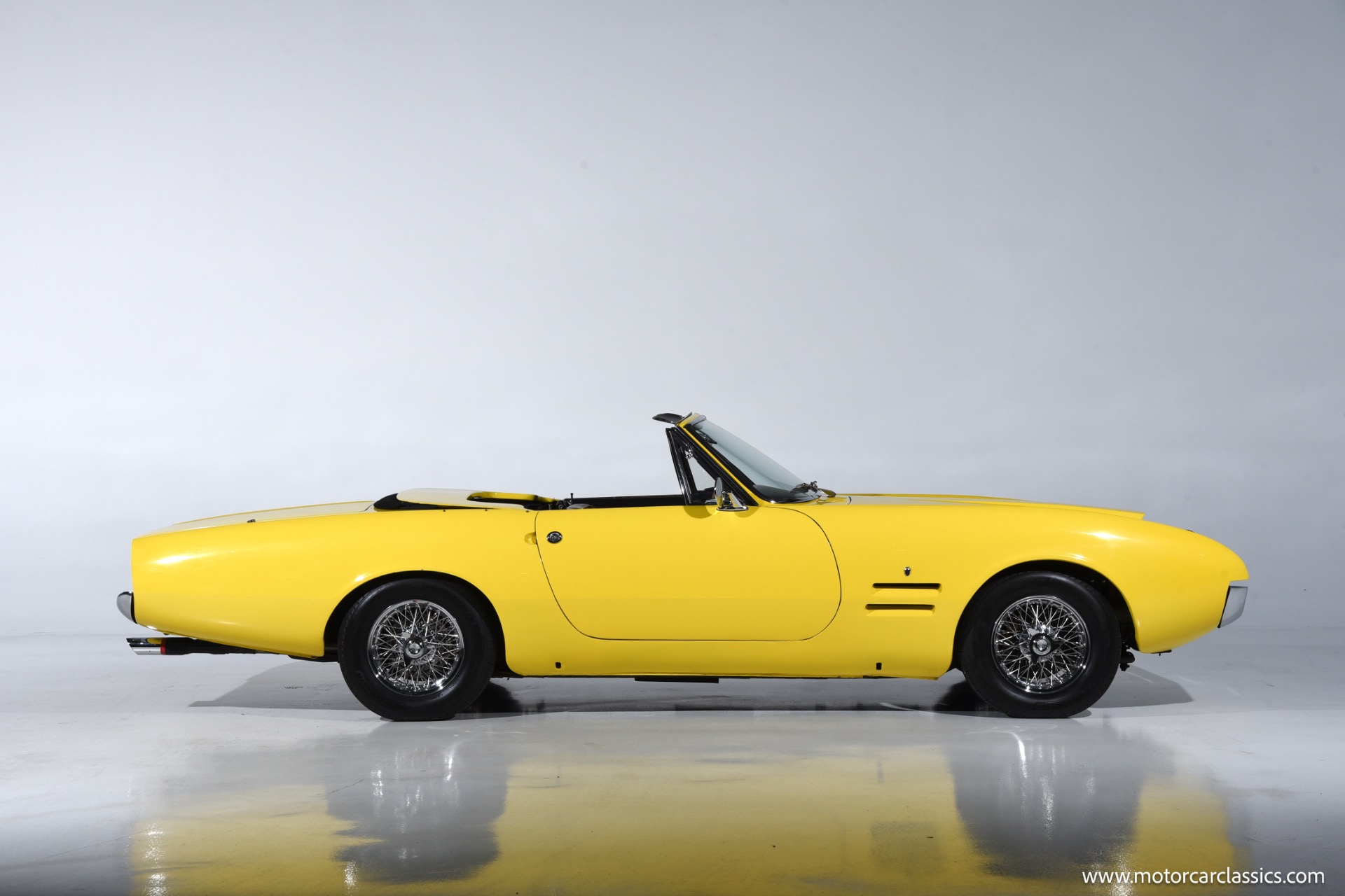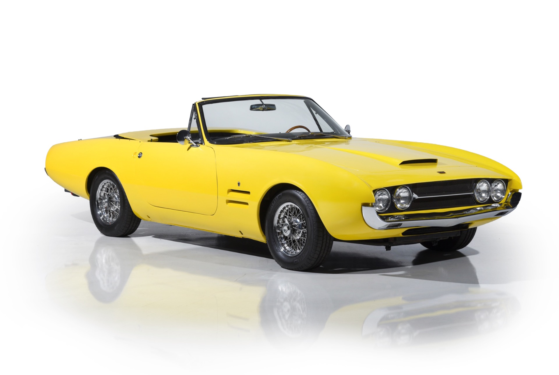 1967 Ghia 450 SS for sale! Motorcar Classics is proud to present this 1967 Ghia 450SS, VIN 4016, an exceptionally rare Italian-American grand touring convertible, one of roughly 52 hand-built examples combining Giorgetto Giugiaro's dramatic Ghia styling with Chrysler's 273 cubic inch Commando LA-series V8 and a 3-speed TorqueFlite automatic transmission that was factory rated at approximately 235 horsepower and 280 lb-ft of torque through a single Carter four-barrel carburetor. The Mopar drivetrain sits on Plymouth Barracuda Formula S underpinnings with torsion-bar independent front suspension, a live rear axle, and power-assisted front disc/rear drum brakes, giving the 450SS the dependable road manners and braking performance of its American donor clothed in hand-formed Italian steel. Power steering, Kelsey-Hayes rear hardware, and a dual exhaust system with Borla mufflers further support relaxed high-speed touring, while the car rolls on 14-inch Borrani wire wheels that complement its bespoke character.