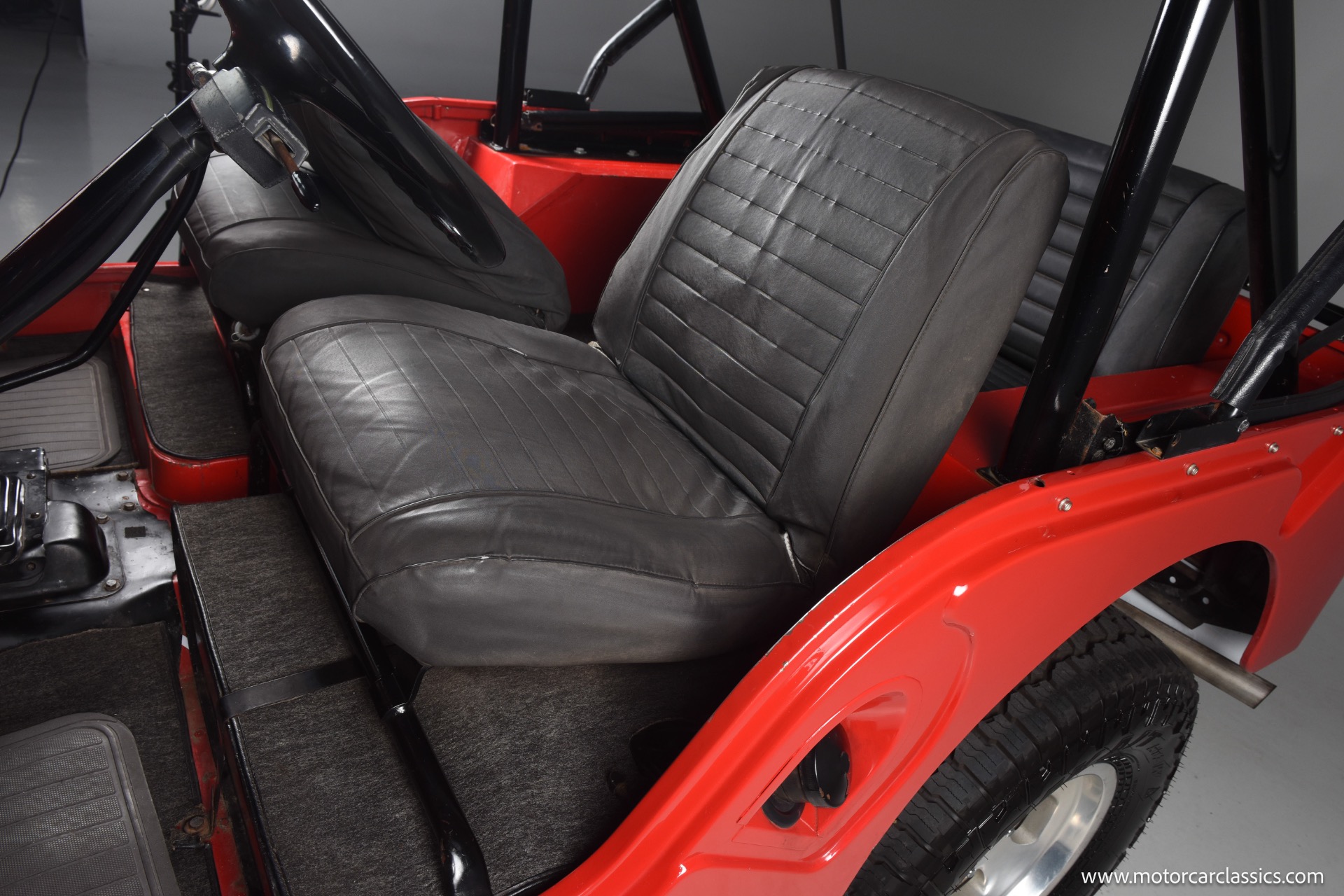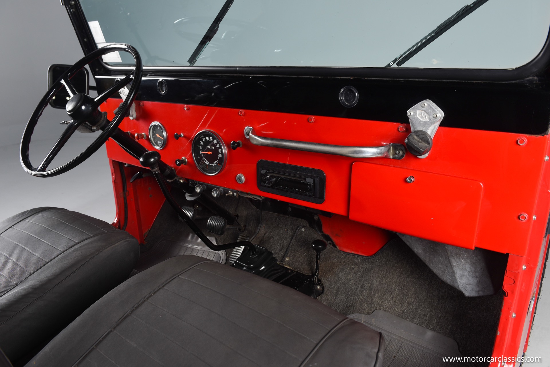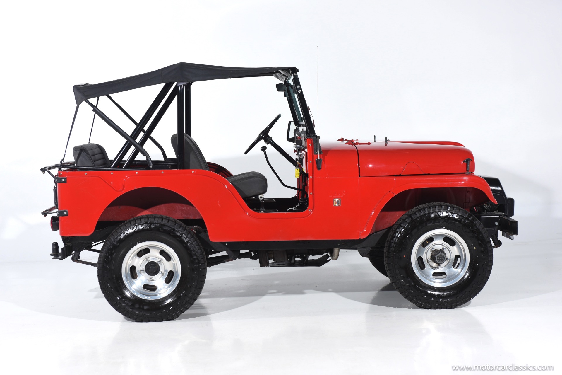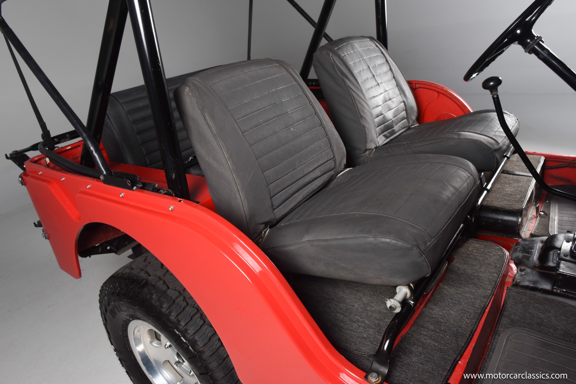 1967 Jeep CJ-5 for sale! Motorcar Classics is pleased to present this 1967 Jeep CJ-5 that embodies the spirit of adventure and off-road capability. Finished in vibrant red with a sleek black bikini top, it's a stunning vehicle that turns heads wherever it goes. With its robust design and timeless appeal, it's perfect for both collectors and enthusiasts looking for a reliable companion on rugged terrains. The Jeep is powered by the powerful Dauntless V6 engine, delivering up to 160 horsepower and 235 lb-ft of torque. This potent engine is paired with a 3-speed manual transmission, providing a hands-on driving experience that's both exhilarating and engaging. The 4WD system ensures that you can tackle any terrain with confidence, making it ideal for both on-road cruising and off-road adventures.