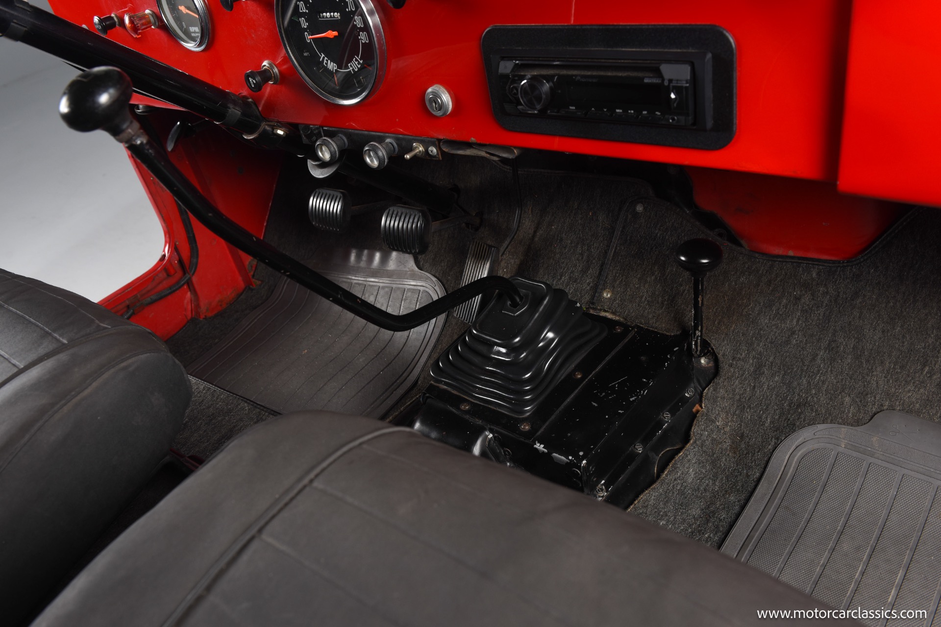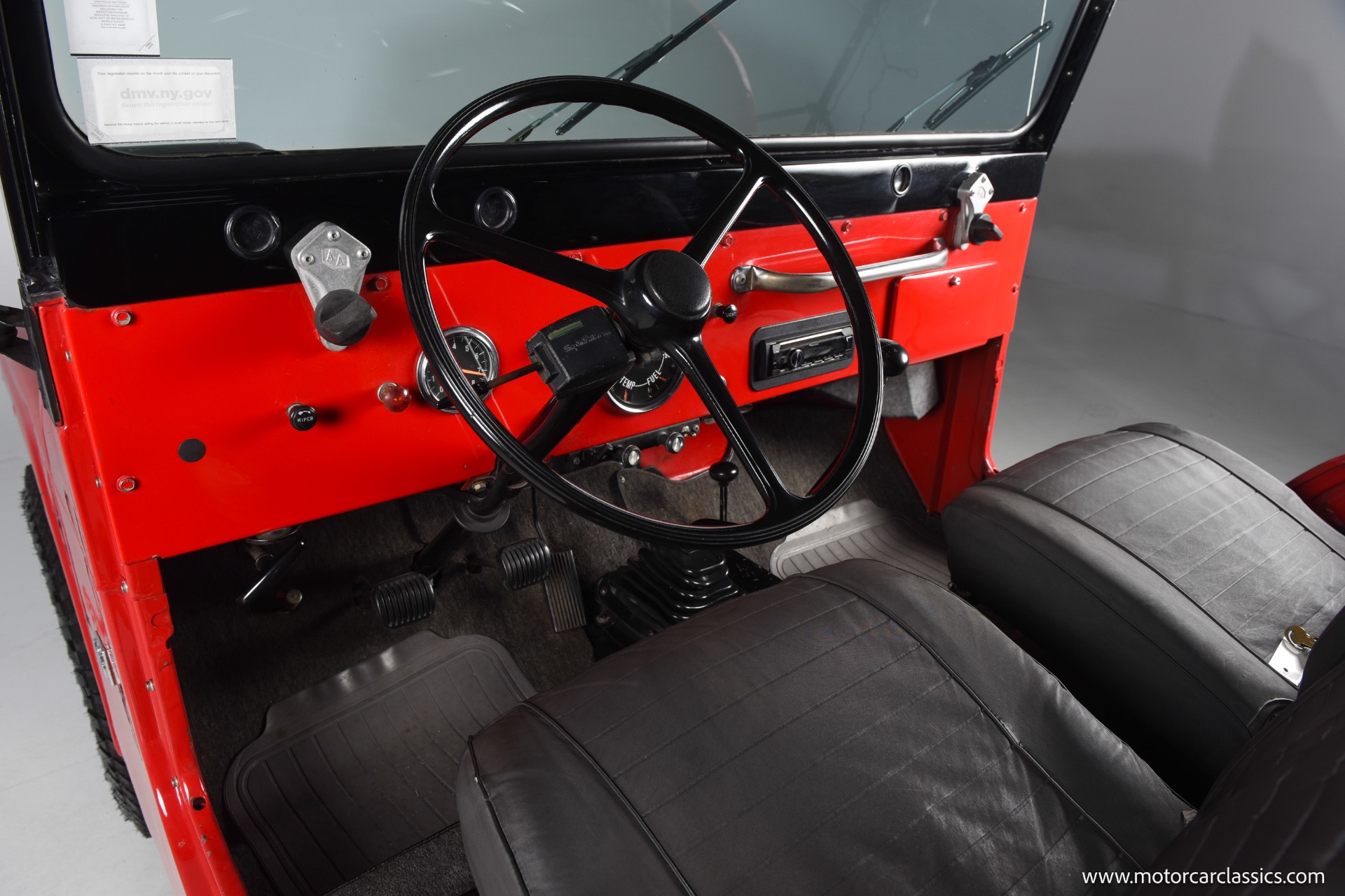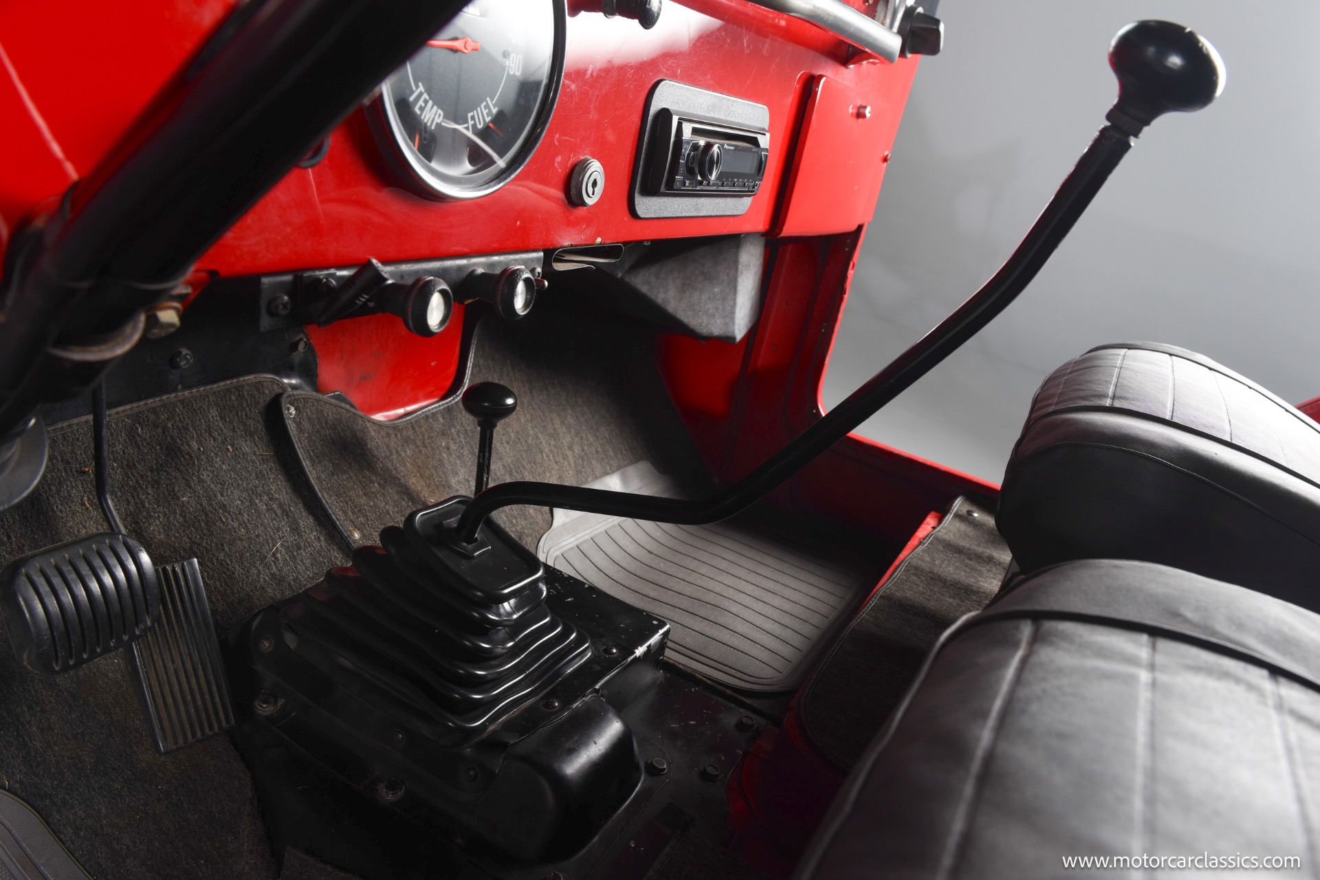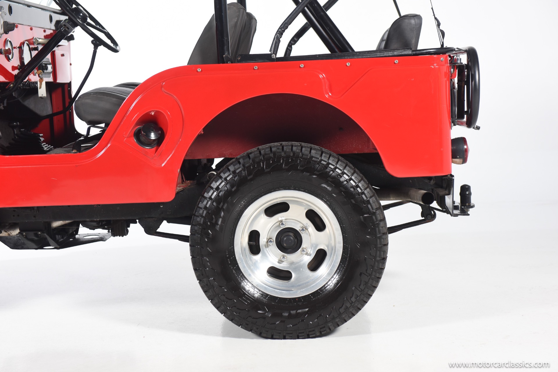 1967 Jeep CJ-5 for sale! Motorcar Classics is pleased to present this 1967 Jeep CJ-5 that embodies the spirit of adventure and off-road capability. Finished in vibrant red with a sleek black bikini top, it's a stunning vehicle that turns heads wherever it goes. With its robust design and timeless appeal, it's perfect for both collectors and enthusiasts looking for a reliable companion on rugged terrains. The Jeep is powered by the powerful Dauntless V6 engine, delivering up to 160 horsepower and 235 lb-ft of torque. This potent engine is paired with a 3-speed manual transmission, providing a hands-on driving experience that's both exhilarating and engaging. The 4WD system ensures that you can tackle any terrain with confidence, making it ideal for both on-road cruising and off-road adventures.