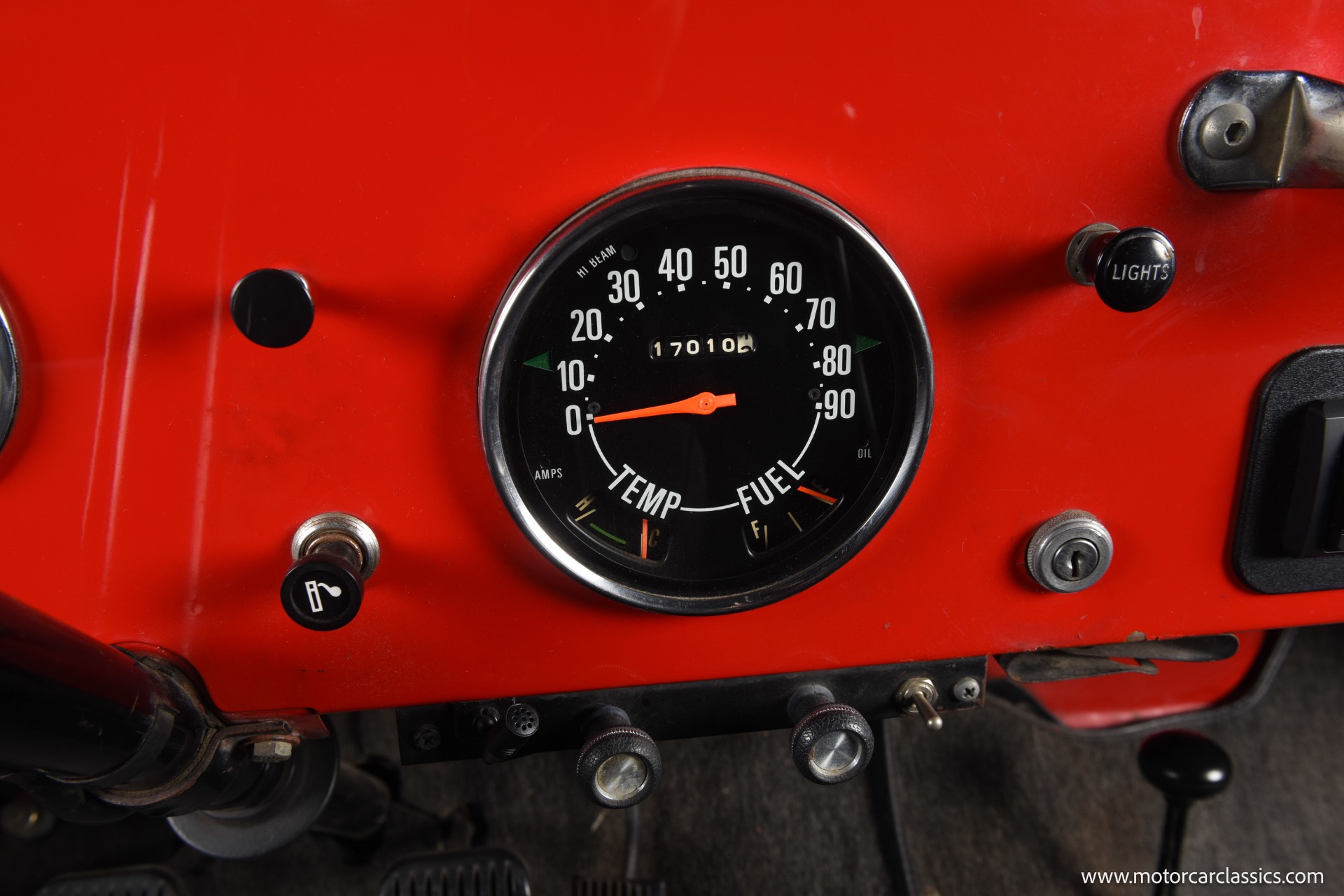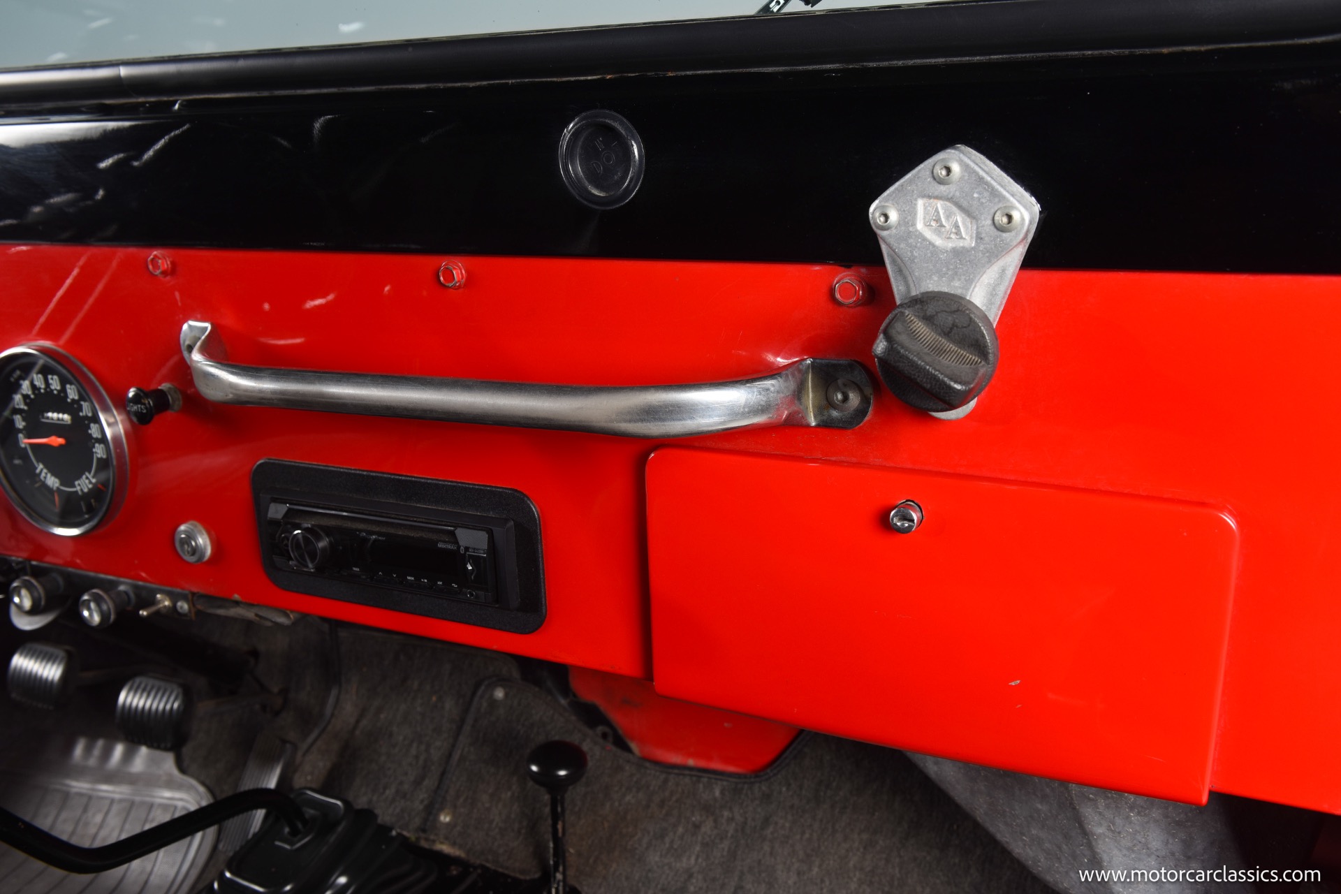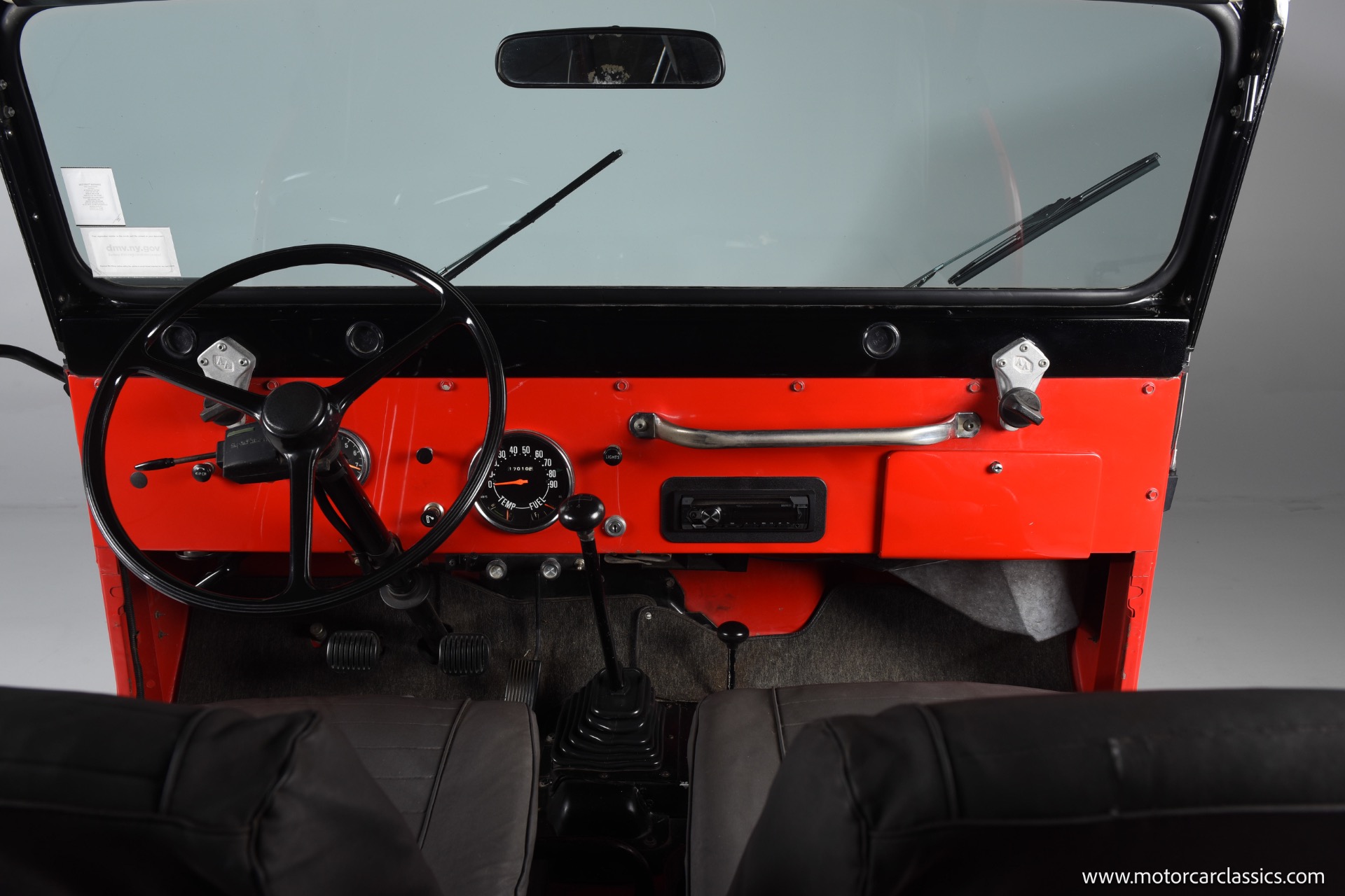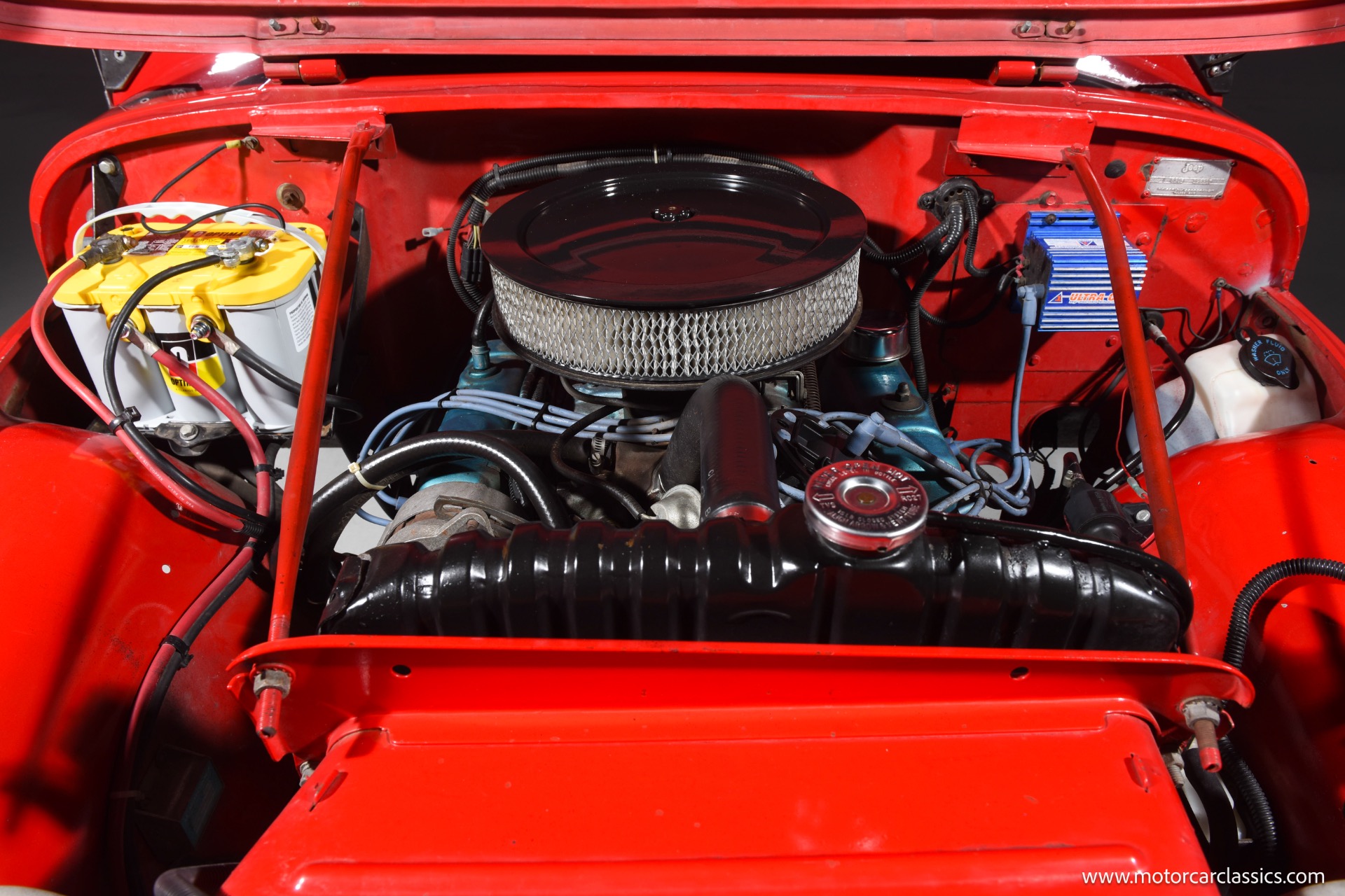 1967 Jeep CJ-5 for sale! Motorcar Classics is pleased to present this 1967 Jeep CJ-5 that embodies the spirit of adventure and off-road capability. Finished in vibrant red with a sleek black bikini top, it's a stunning vehicle that turns heads wherever it goes. With its robust design and timeless appeal, it's perfect for both collectors and enthusiasts looking for a reliable companion on rugged terrains. The Jeep is powered by the powerful Dauntless V6 engine, delivering up to 160 horsepower and 235 lb-ft of torque. This potent engine is paired with a 3-speed manual transmission, providing a hands-on driving experience that's both exhilarating and engaging. The 4WD system ensures that you can tackle any terrain with confidence, making it ideal for both on-road cruising and off-road adventures.