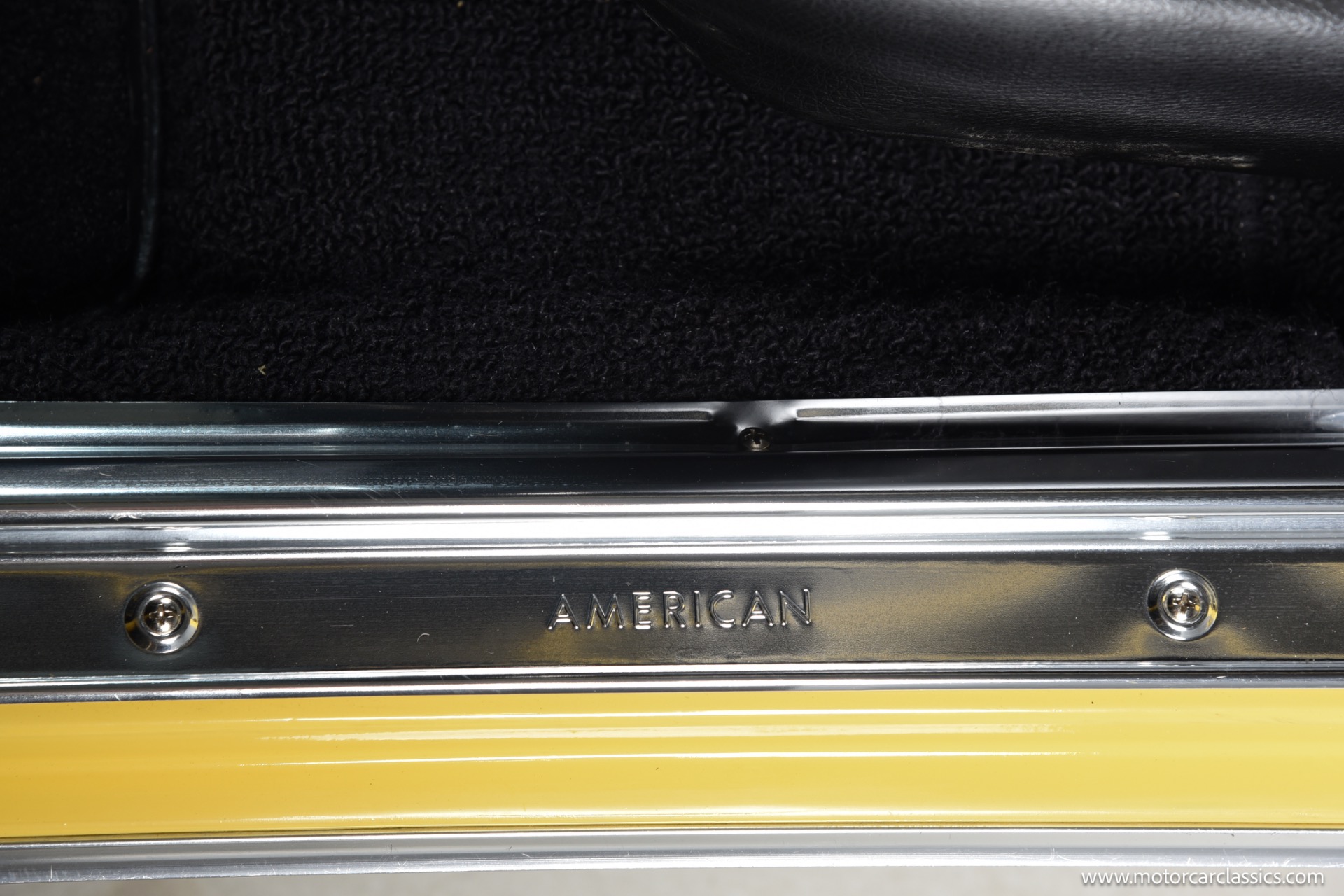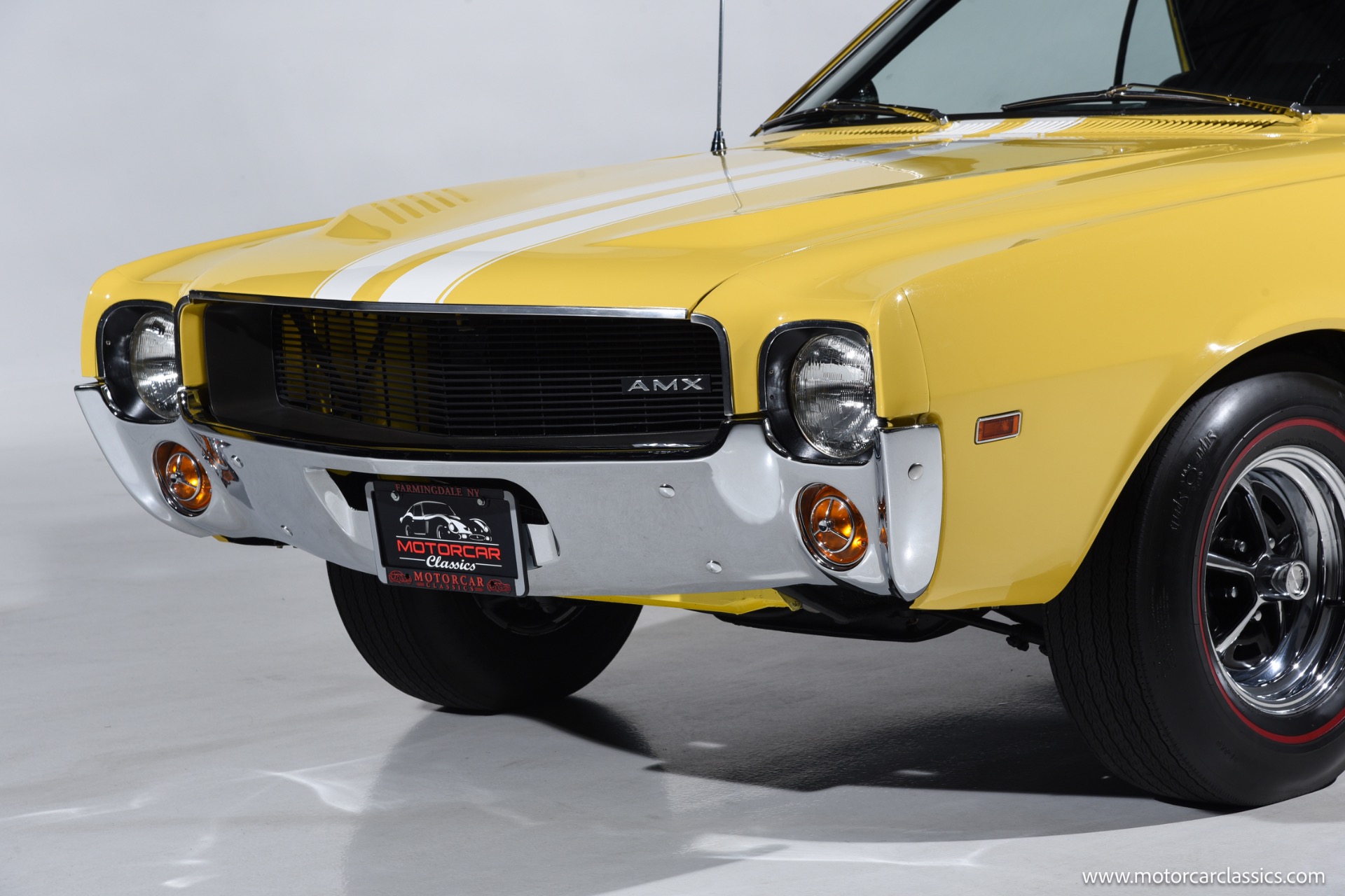 1968 AMC AMX for sale! Motorcar Classics is pleased to offer this AMX presented in yellow with white stripes and black vinyl interior. 35,252 believed to be original miles but true mileage is unknown. This car was subject to a highend full restoration back in 2018 however there is no paperwork. Restoration work included: paint (original color), brakes, engine, clutch, glass, weather stripping, all the rubbers and more. The car still has all its original metal quarter panels, trunk pan, floors, doors, all new interior etc. The motor is the original stock 390. The transmission is a Borg Warner T 10 four speed manual transmission. There are tons of service receipts for this AMX dating back to the 1970's! Your inspection is invited.