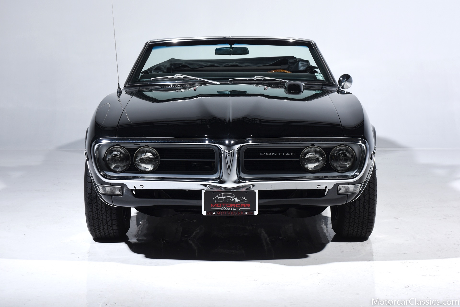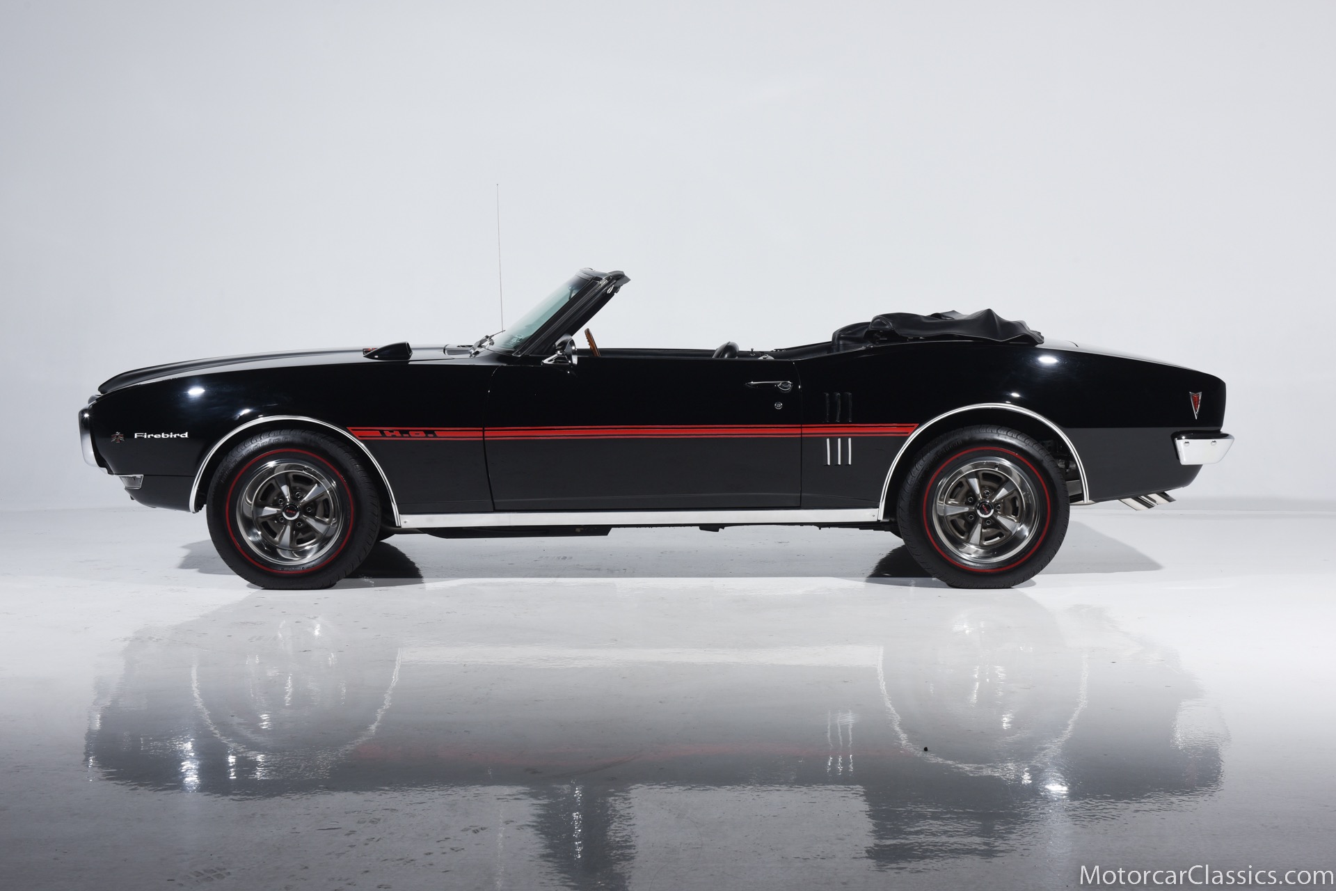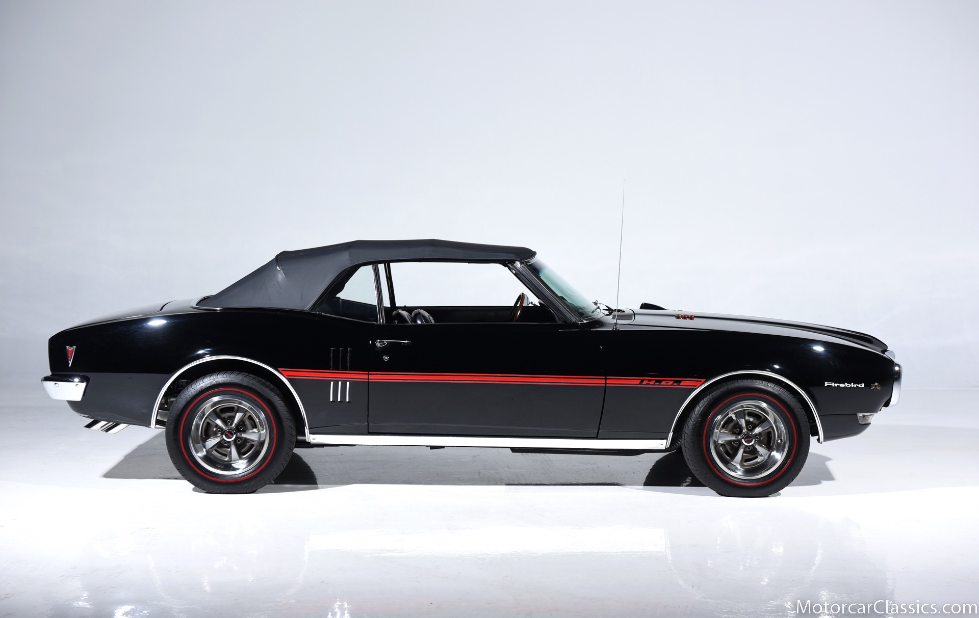 1968 Pontiac Firebird HO for sale! Motorcar Classics is proud to present this rare, triple-black 1968 Pontiac Firebird 350 HO convertible. This handsome Firebird has been the subject of a nut & bolt rotisserie restoration to its original and authentic configuration with the original motor and transmission. The car includes PHS Documentation and the window sticker. This car features the 350 CI engine rated at 320 HP mated to a 4-speed manual transmission. Fewer than 500 Firebird 350 HO convertibles were built in 1968, and fewer than 200 had the 4-speed manual. With the similarly rare triple-black color combination, you will find very few others like this. Additional factory options include: power front disc brakes, power steering. hood mounted tachometer, and HO side stripes, and more. Restoration upgrades include stainless steel brake and fuel lines, gas tank and dual stainless steel exhaust system. The car is beautifully detailed and the stance is just right. This is a rare Firebird that you can drive or show with pride.