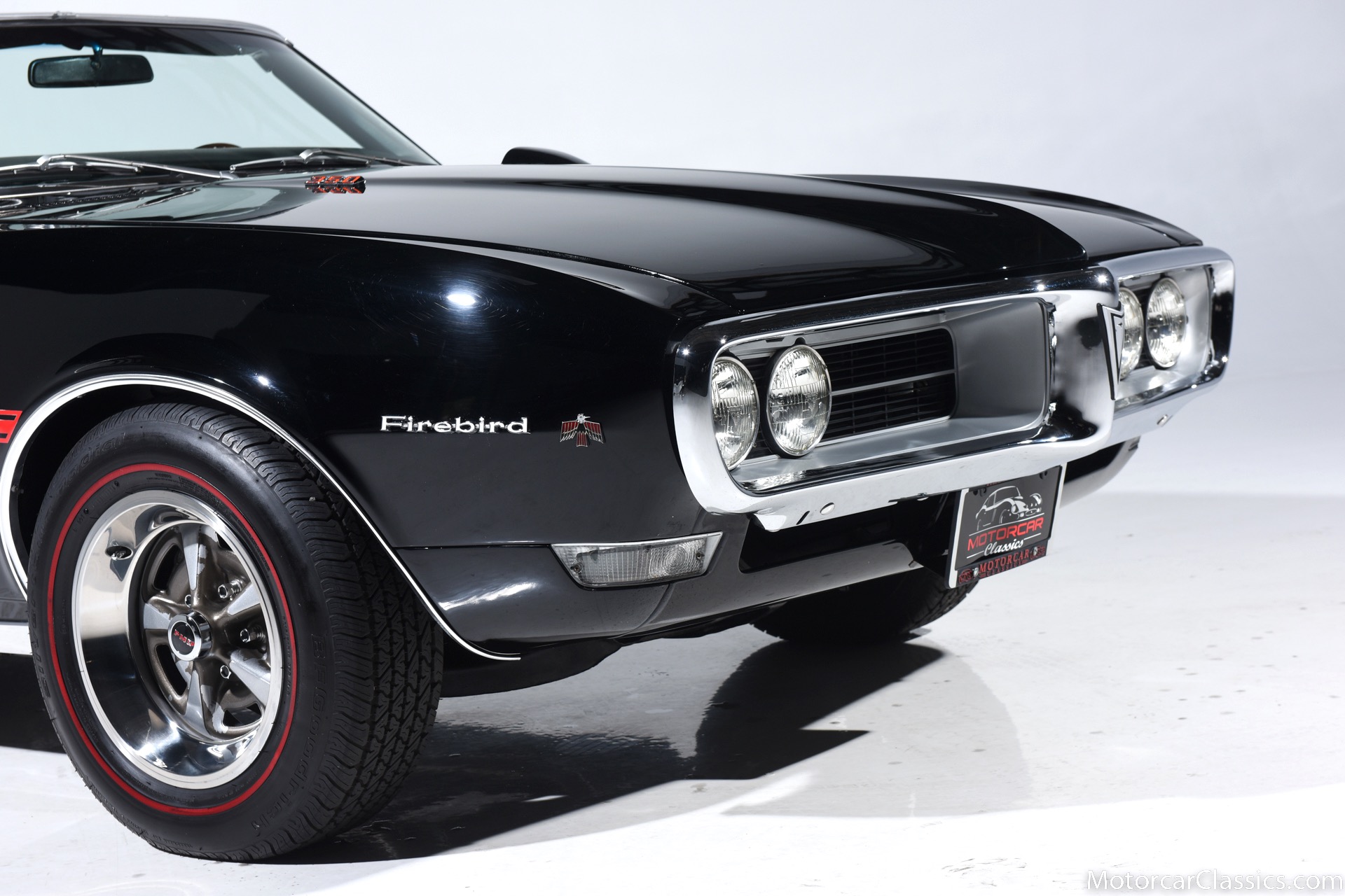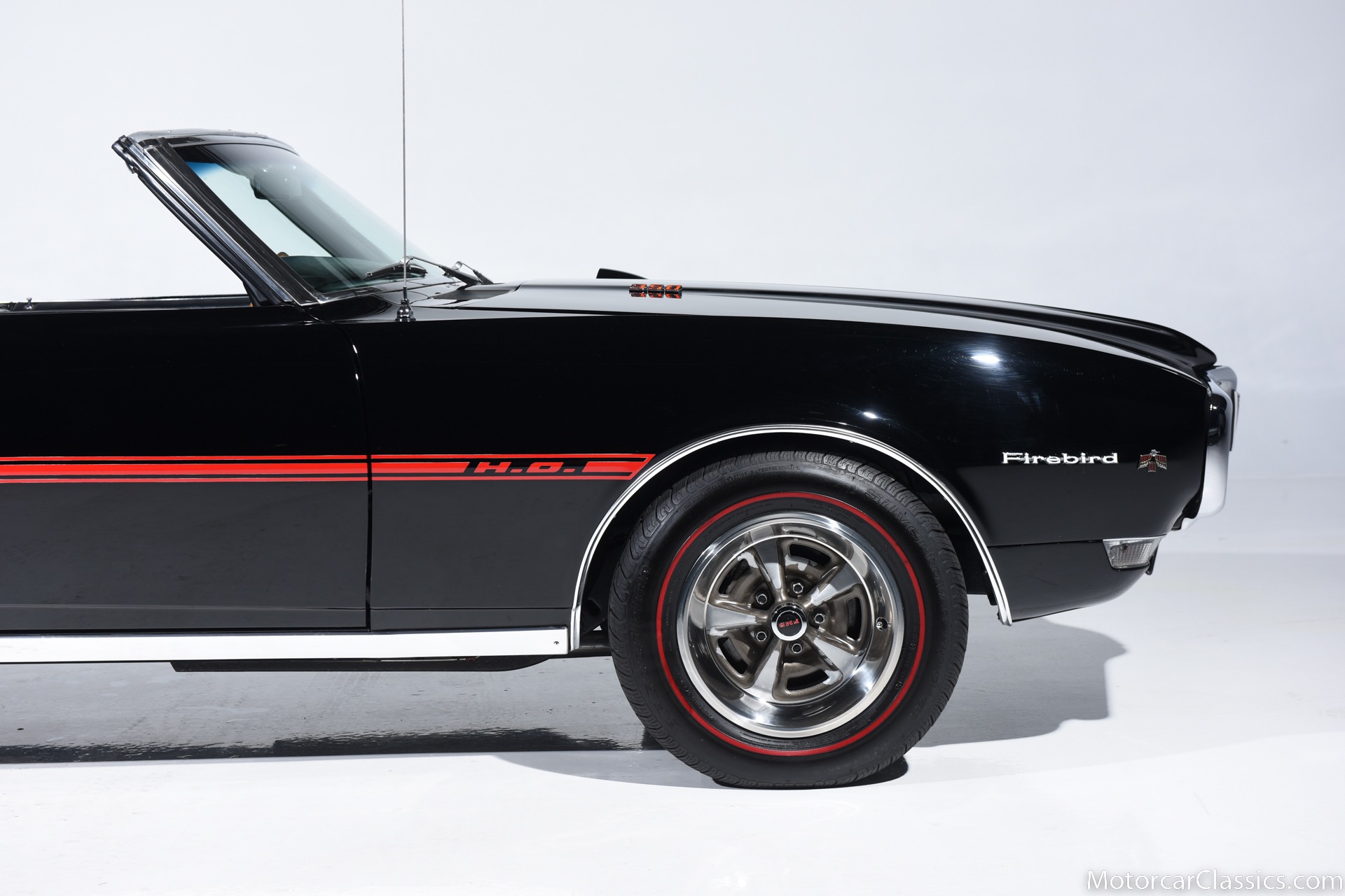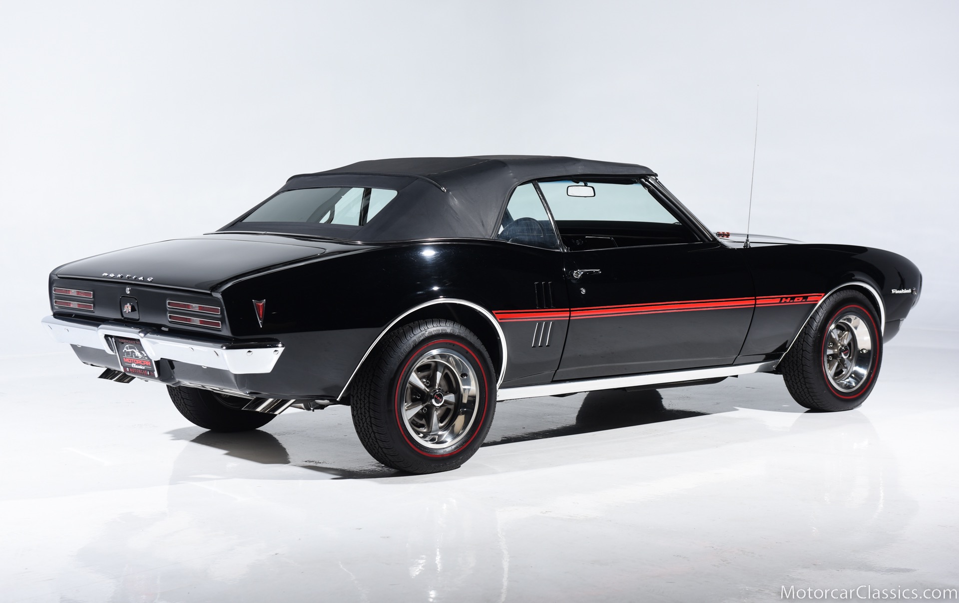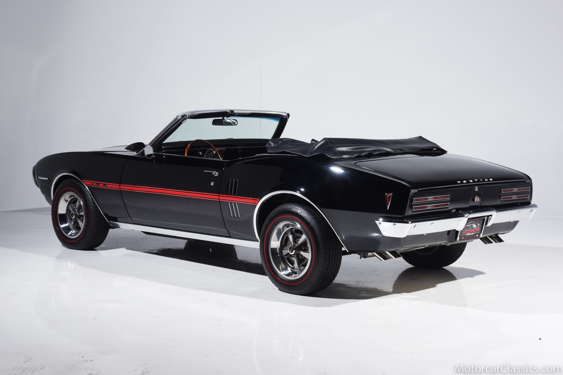 1968 Pontiac Firebird HO for sale! Motorcar Classics is proud to present this rare, triple-black 1968 Pontiac Firebird 350 HO convertible. This handsome Firebird has been the subject of a nut & bolt rotisserie restoration to its original and authentic configuration with the original motor and transmission. The car includes PHS Documentation and the window sticker. This car features the 350 CI engine rated at 320 HP mated to a 4-speed manual transmission. Fewer than 500 Firebird 350 HO convertibles were built in 1968, and fewer than 200 had the 4-speed manual. With the similarly rare triple-black color combination, you will find very few others like this. Additional factory options include: power front disc brakes, power steering. hood mounted tachometer, and HO side stripes, and more. Restoration upgrades include stainless steel brake and fuel lines, gas tank and dual stainless steel exhaust system. The car is beautifully detailed and the stance is just right. This is a rare Firebird that you can drive or show with pride.