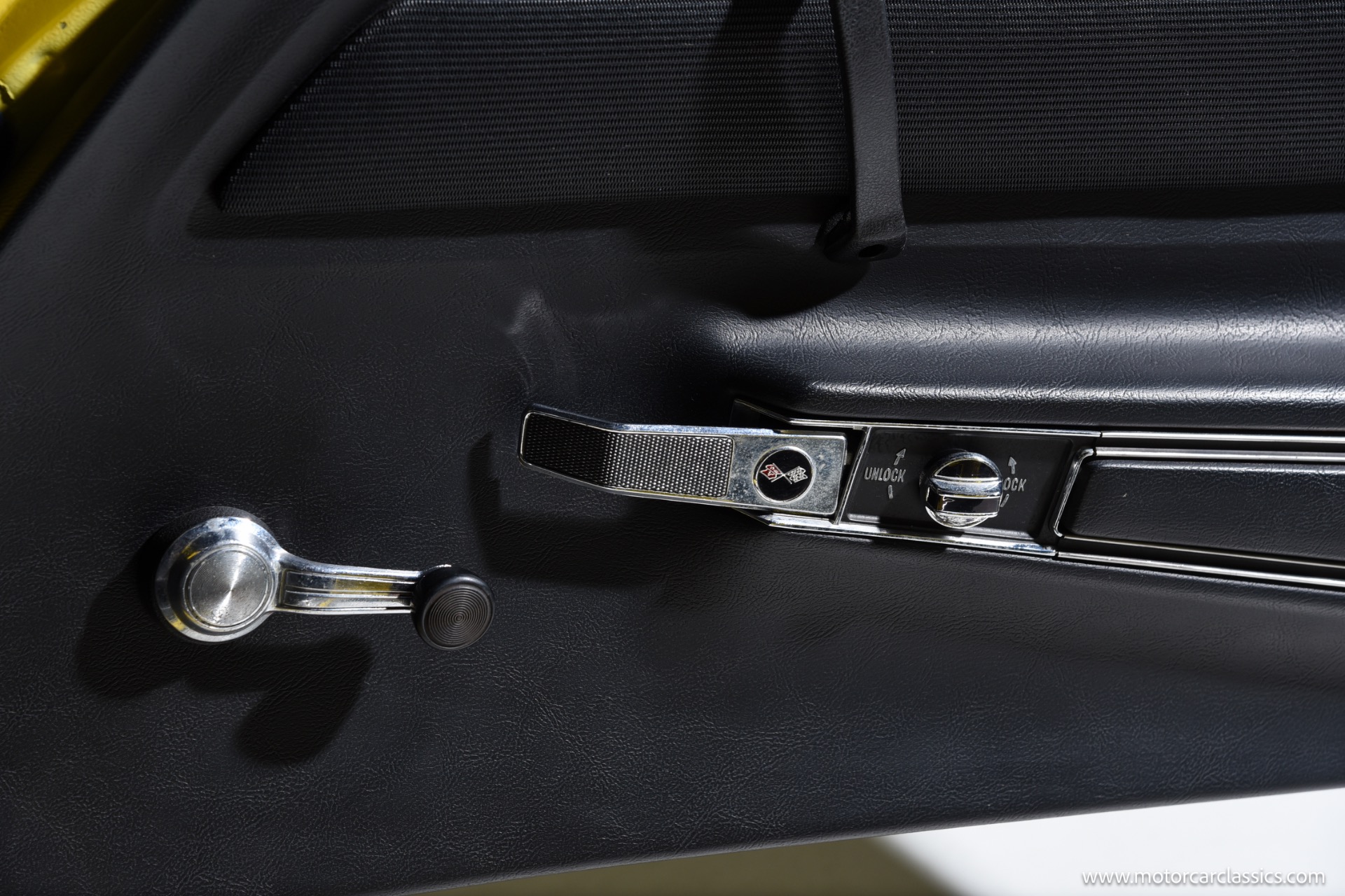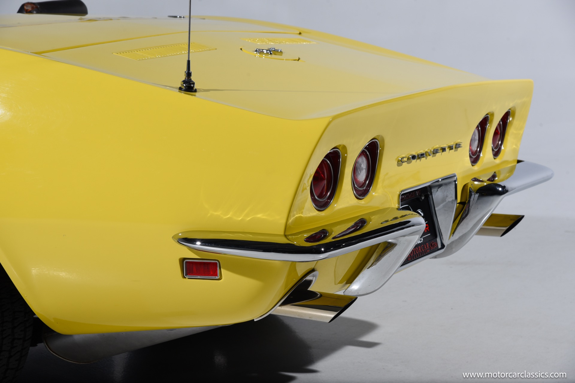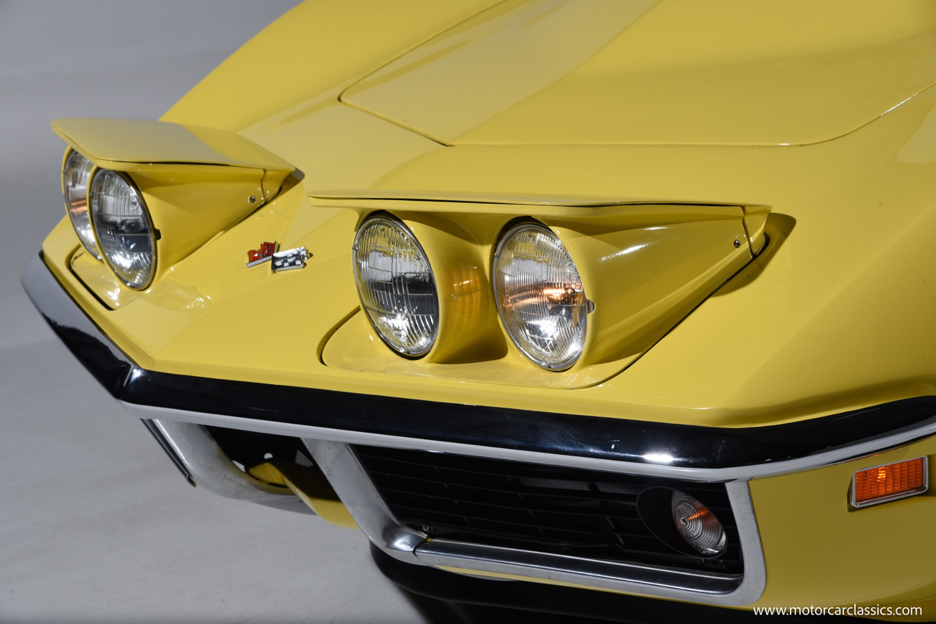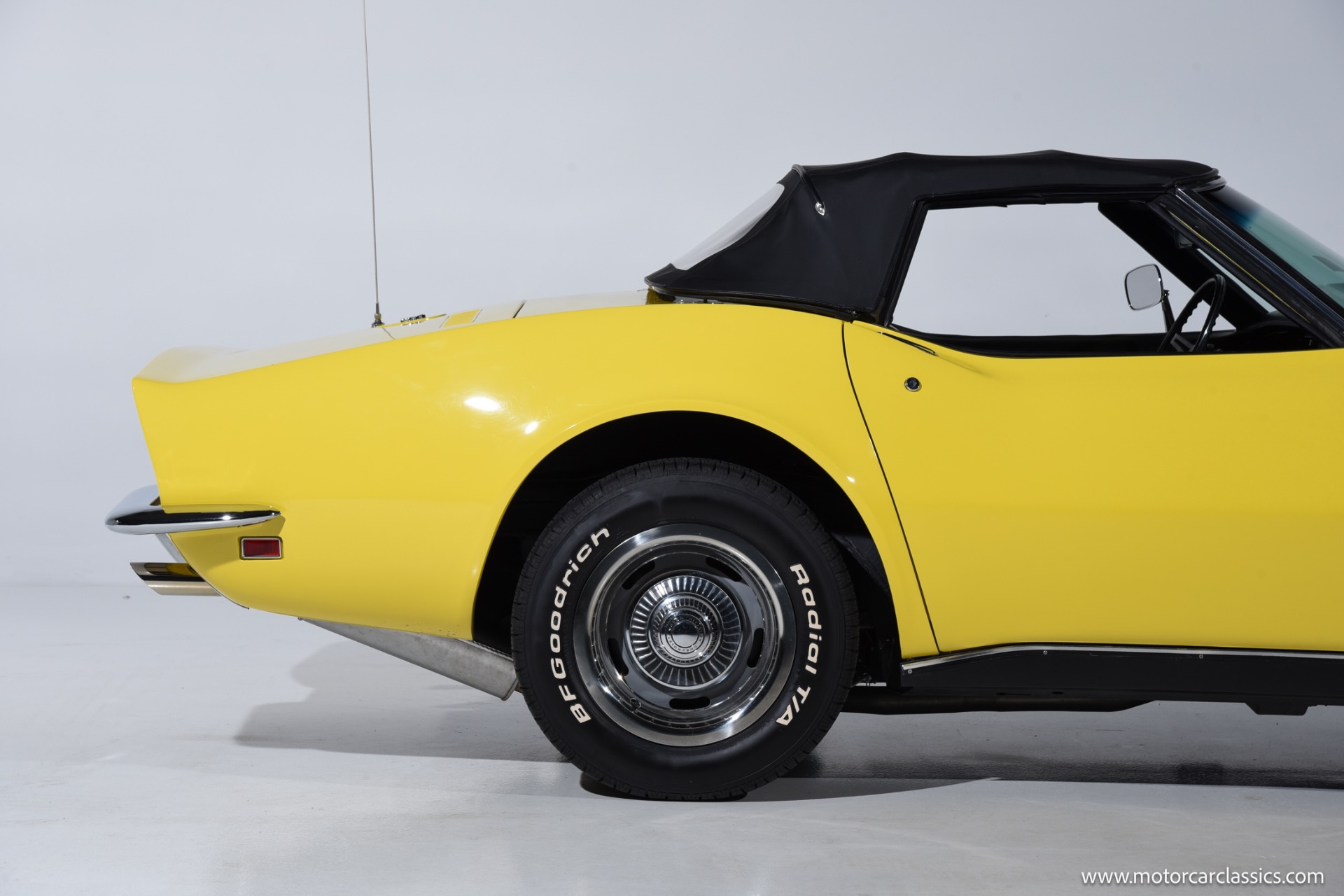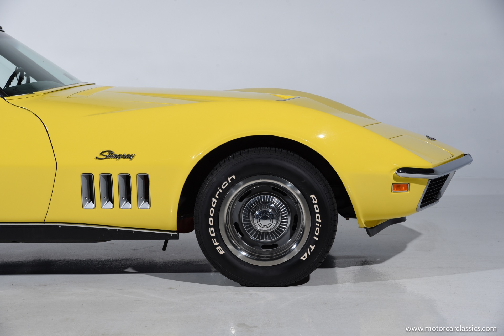 1969 Corvette 427 for sale! Motorcar Classics is pleased to present this restored 1969 Chevrolet Corvette convertible combining classic styling with big-block power, featuring a 427 CI engine rated at 390 horsepower paired with a 4-speed transmission for an authentic muscle car driving experience. While not a numbers matching engine, this Corvette retains its appeal with strong performance and desirable options including power brakes. Finished in bold Daytona Yellow with a contrasting black interior and black convertible top, it captures the true late-'60s Corvette look. A striking example of Chevrolet's iconic big-block convertible, ready to be driven and enjoyed. Your inspection is invited!