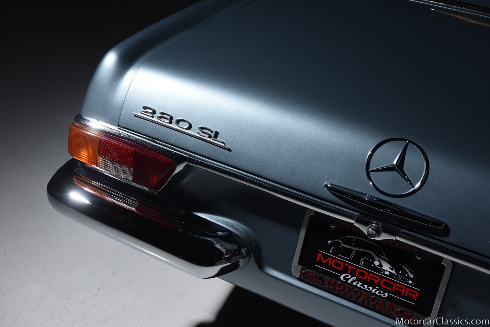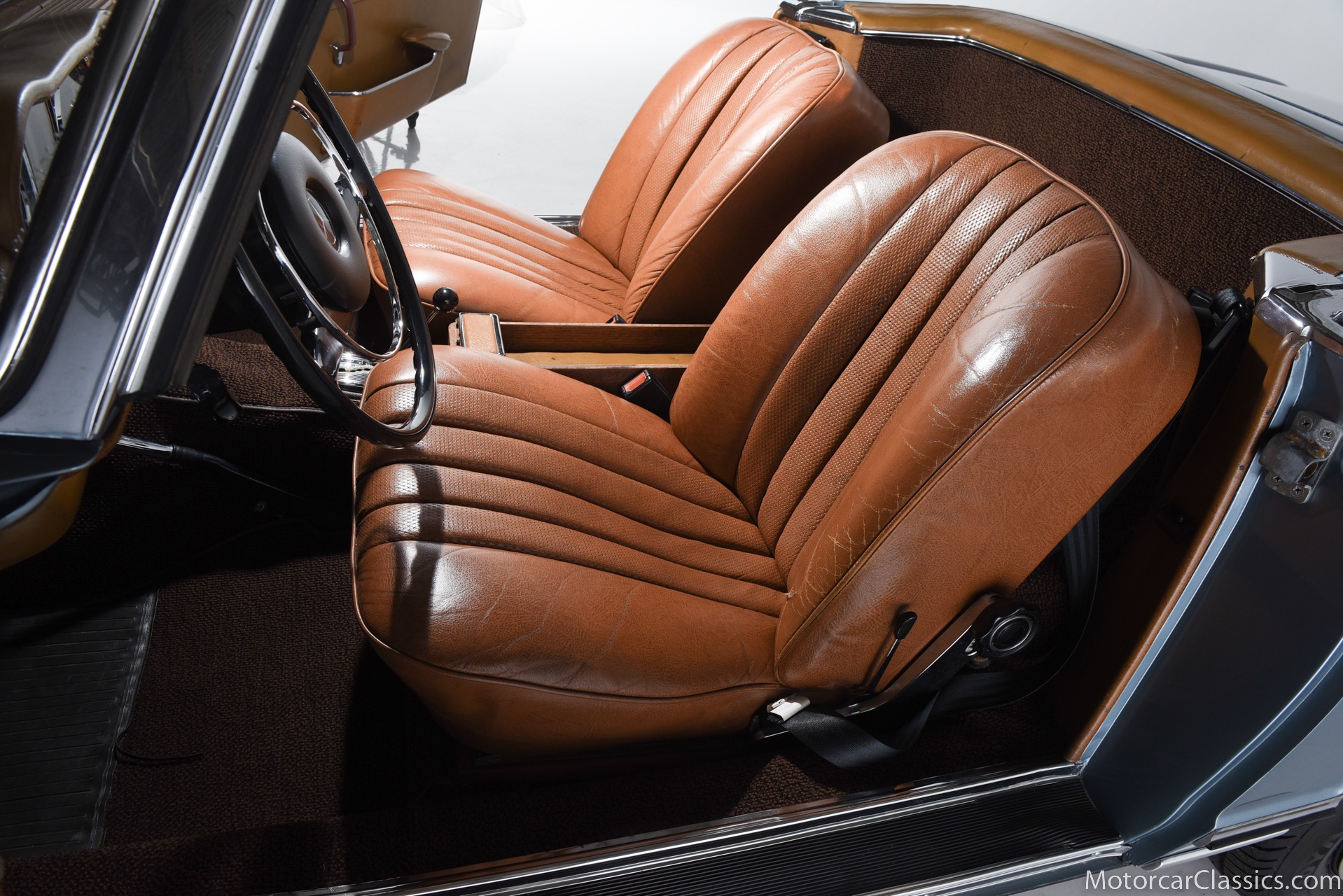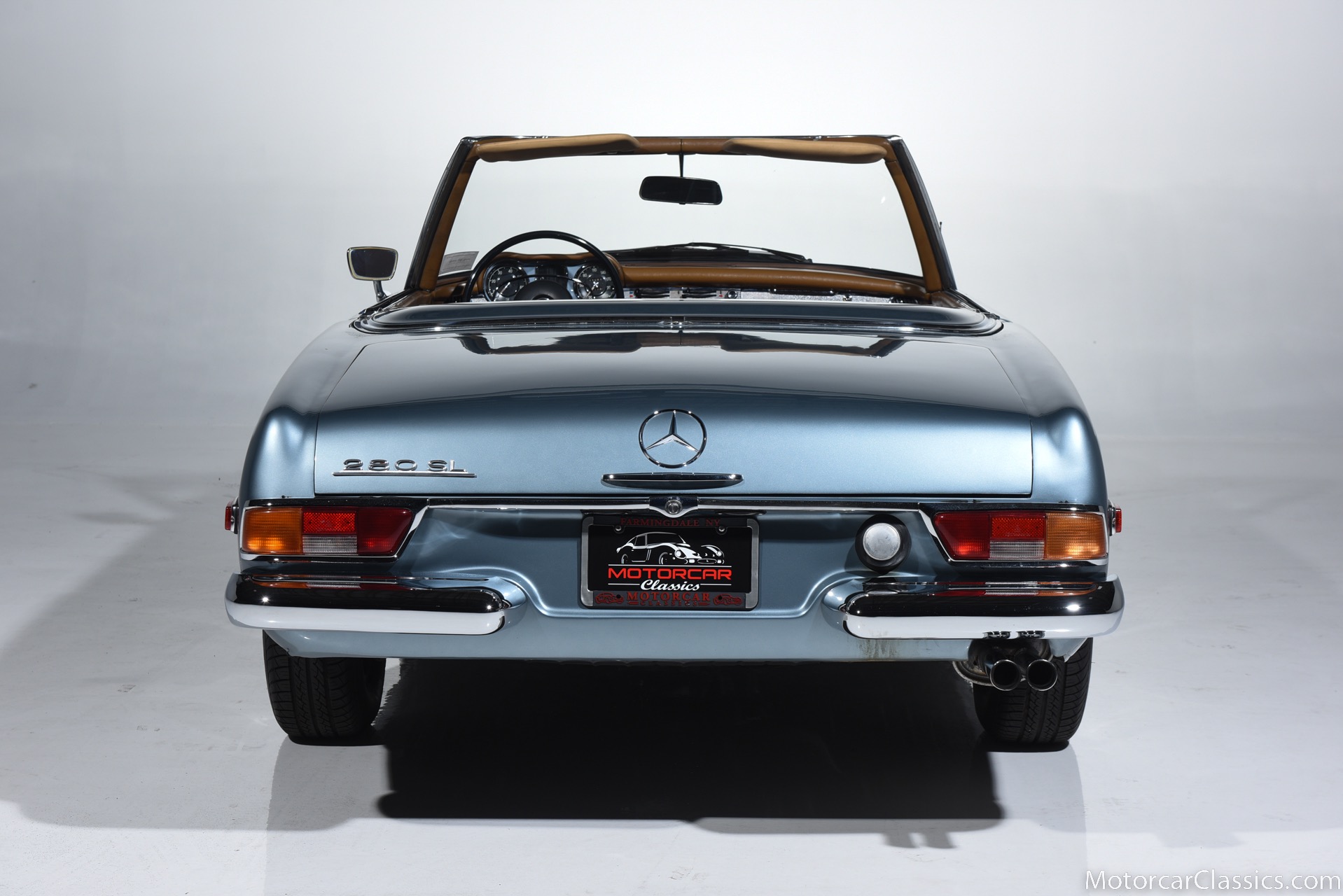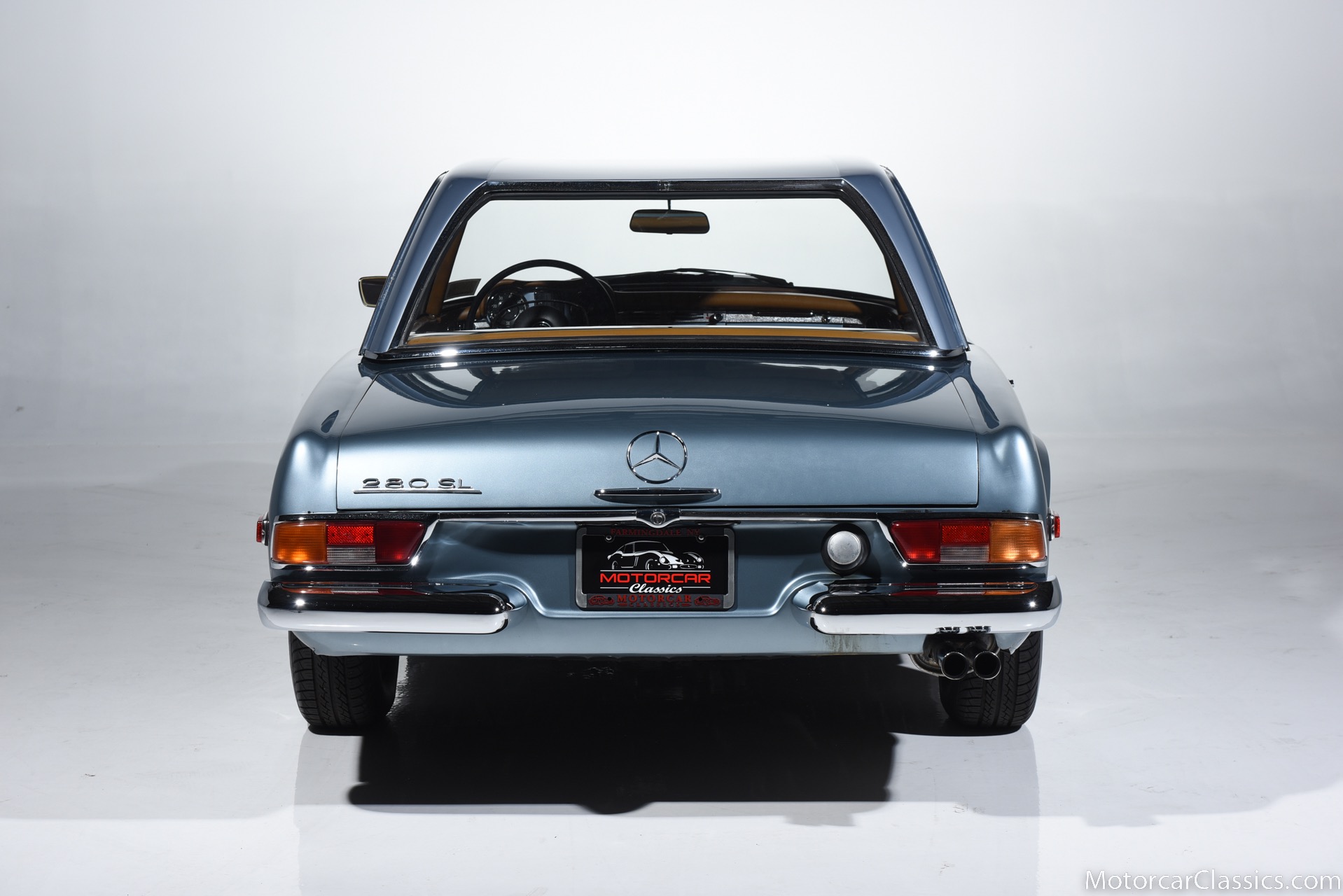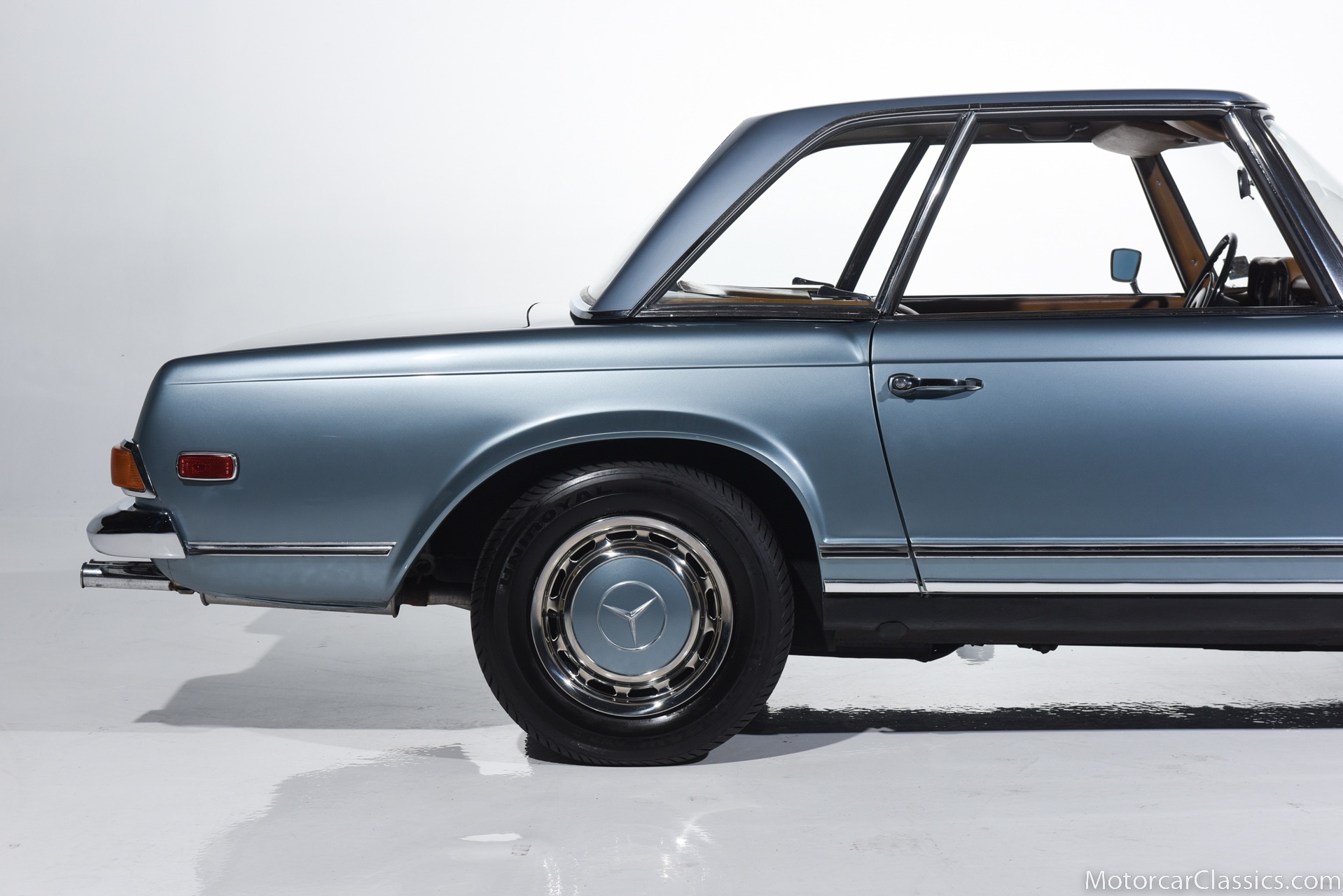 1969 MERCEDES-BENZ 280SL for sale. Motorcar Classics is proud to present this 1969 Mercedes 280SL featured in Metallic Grey Blue (#906) with Tan MB Tex and Navy Blue convertible top. This car includes a matching Grey Blue hardtop. The car has one high-quality respray. The interior is original. The original engine is rebuilt with all OEM Mercedes parts. The factory Becker Europa radio is still in place. Our 280SL is in great cosmetic and mechanical condition and a delight to drive with Mercedes 4-speed automatic gearbox. True mileage is believed to be 109,587. This fine 280SL was purchased new in 1969 in Paris, France. The second owner purchased it in the early 1980s and imported it to the US, where it resided in his hands until entering our inventory. The car retains its valuable and desirable European headlamps. This is a car you can drive or show with pride.