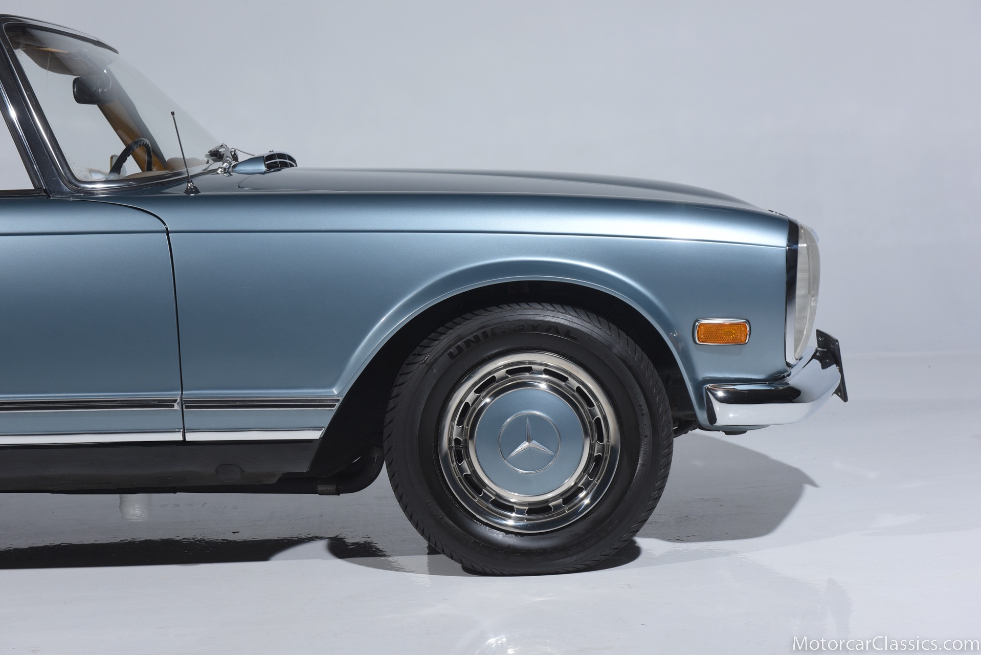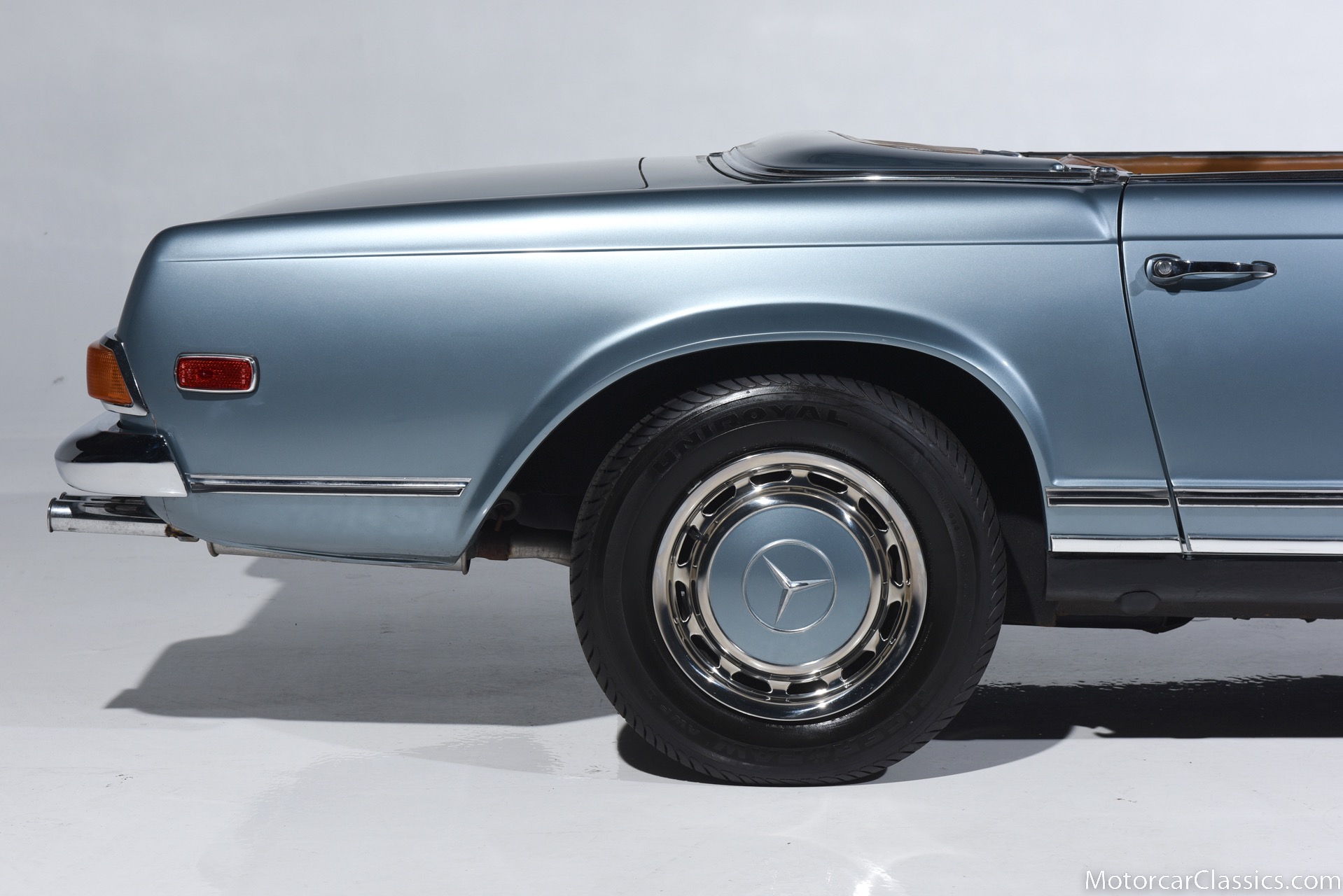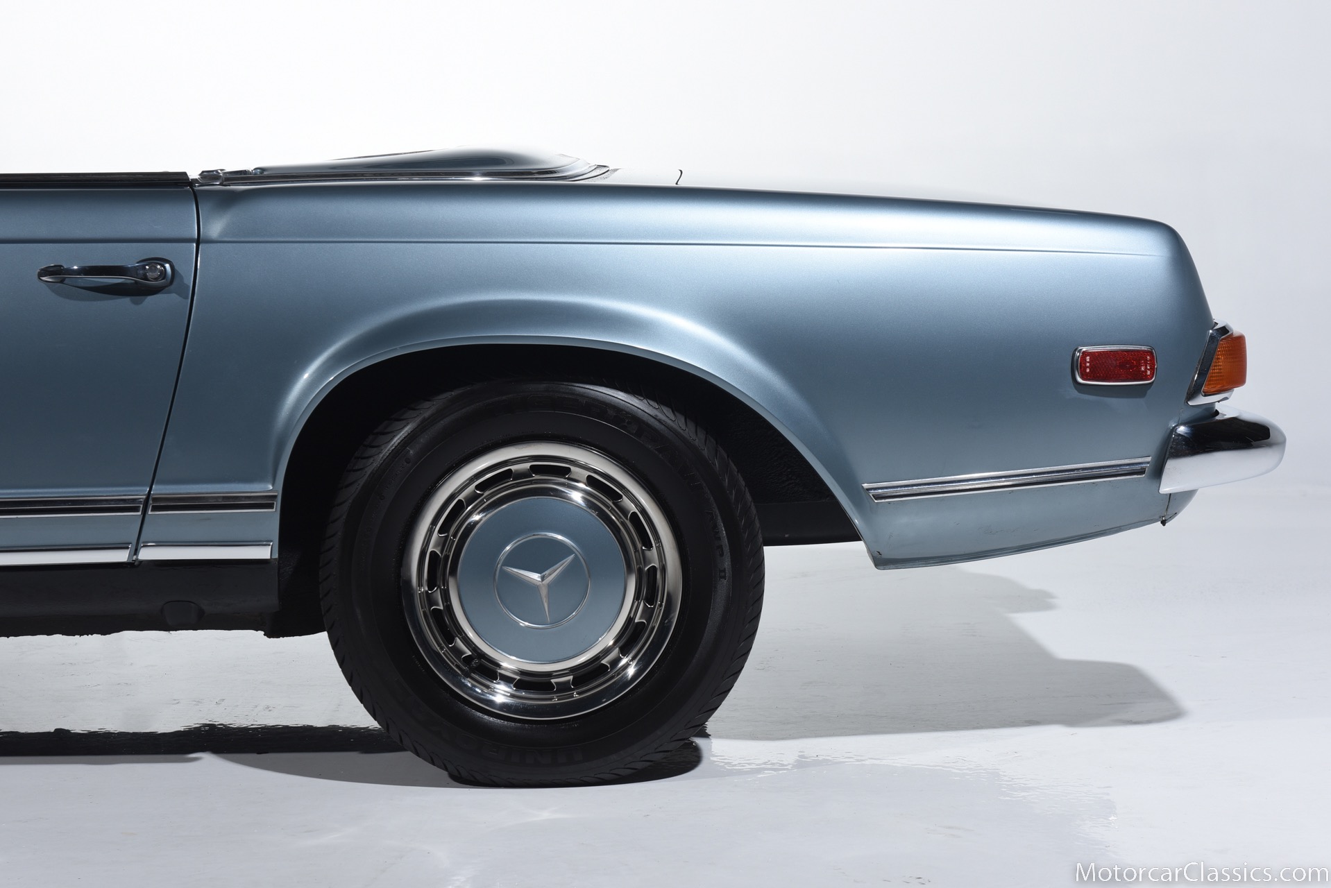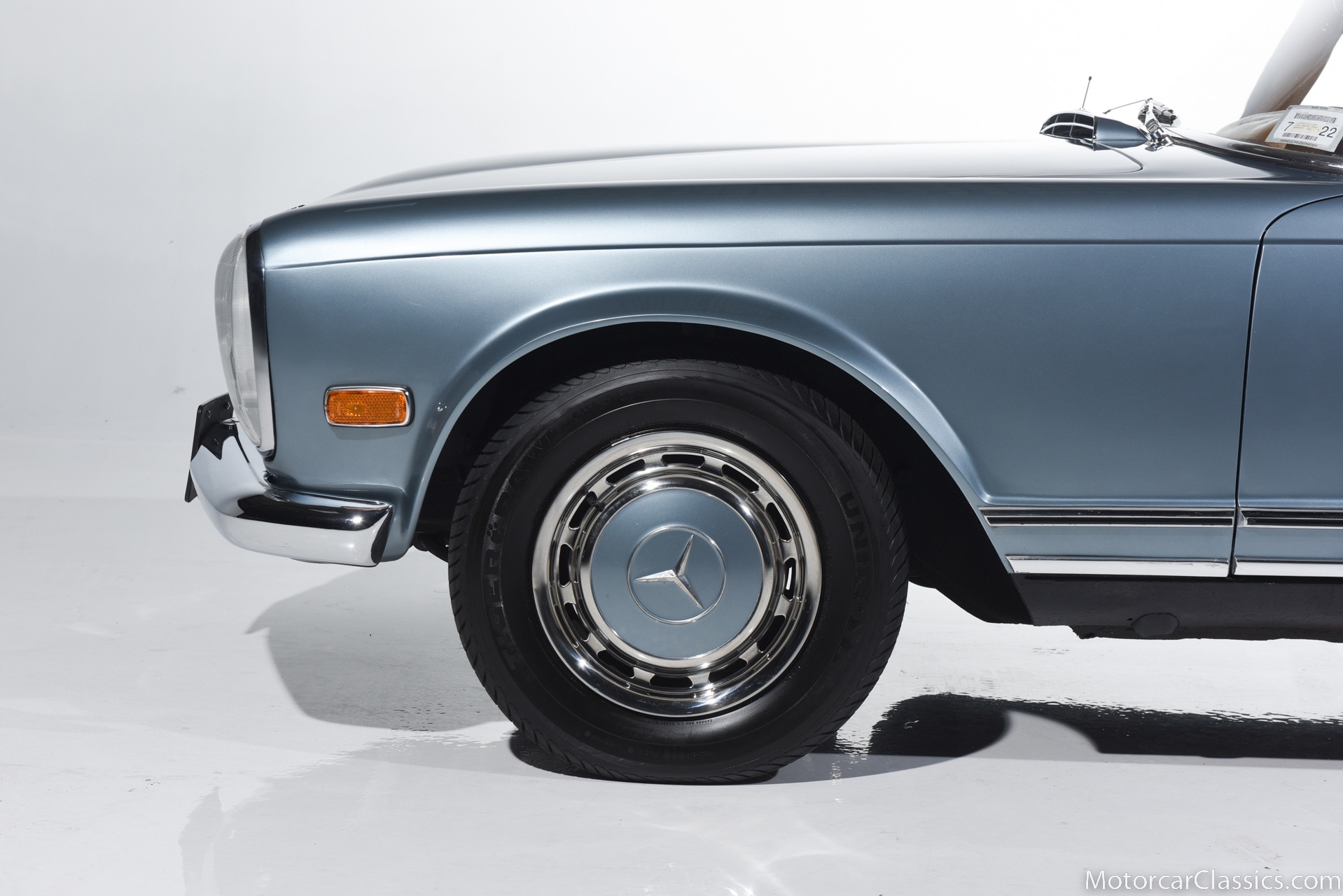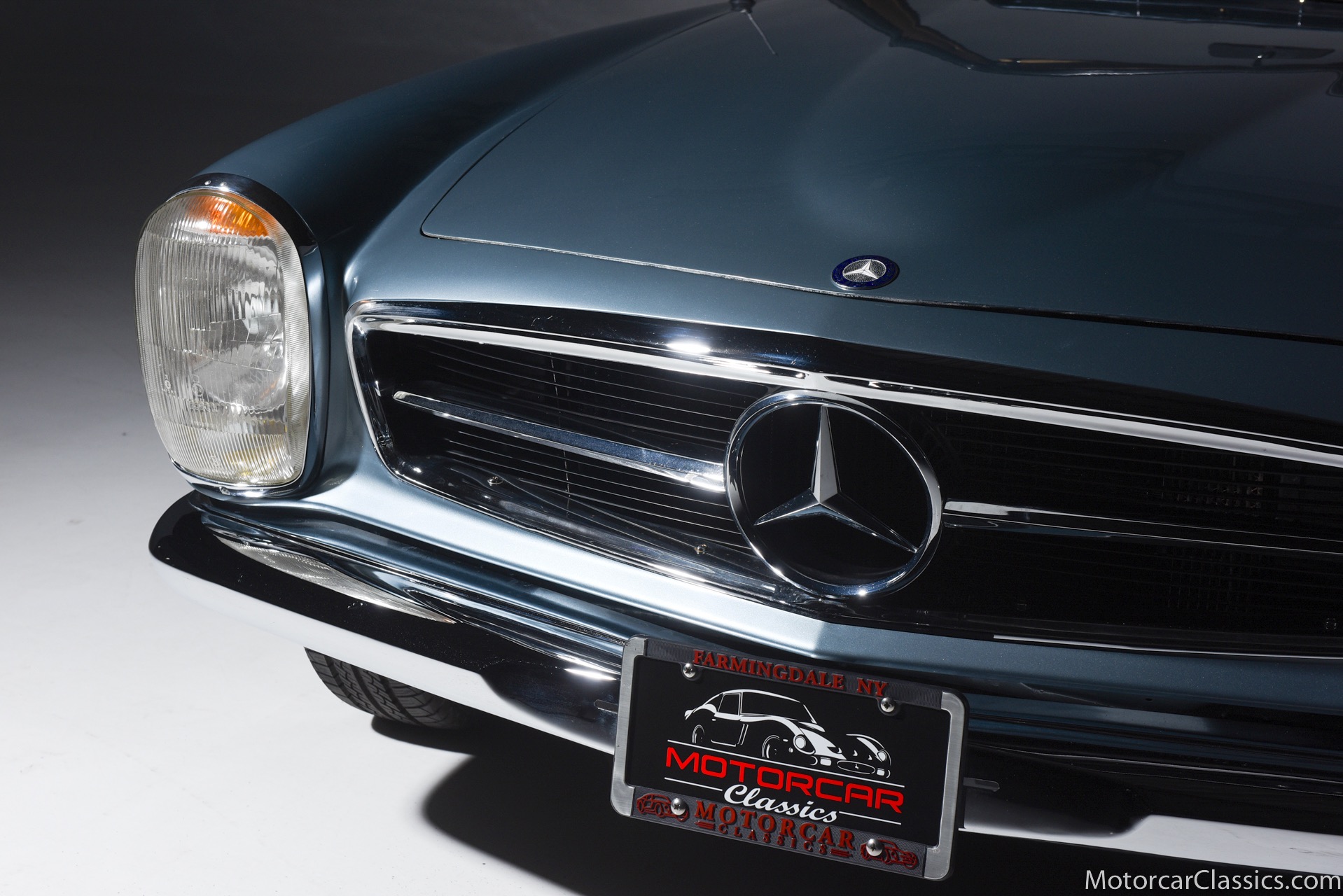 1969 MERCEDES-BENZ 280SL for sale. Motorcar Classics is proud to present this 1969 Mercedes 280SL featured in Metallic Grey Blue (#906) with Tan MB Tex and Navy Blue convertible top. This car includes a matching Grey Blue hardtop. The car has one high-quality respray. The interior is original. The original engine is rebuilt with all OEM Mercedes parts. The factory Becker Europa radio is still in place. Our 280SL is in great cosmetic and mechanical condition and a delight to drive with Mercedes 4-speed automatic gearbox. True mileage is believed to be 109,587. This fine 280SL was purchased new in 1969 in Paris, France. The second owner purchased it in the early 1980s and imported it to the US, where it resided in his hands until entering our inventory. The car retains its valuable and desirable European headlamps. This is a car you can drive or show with pride.