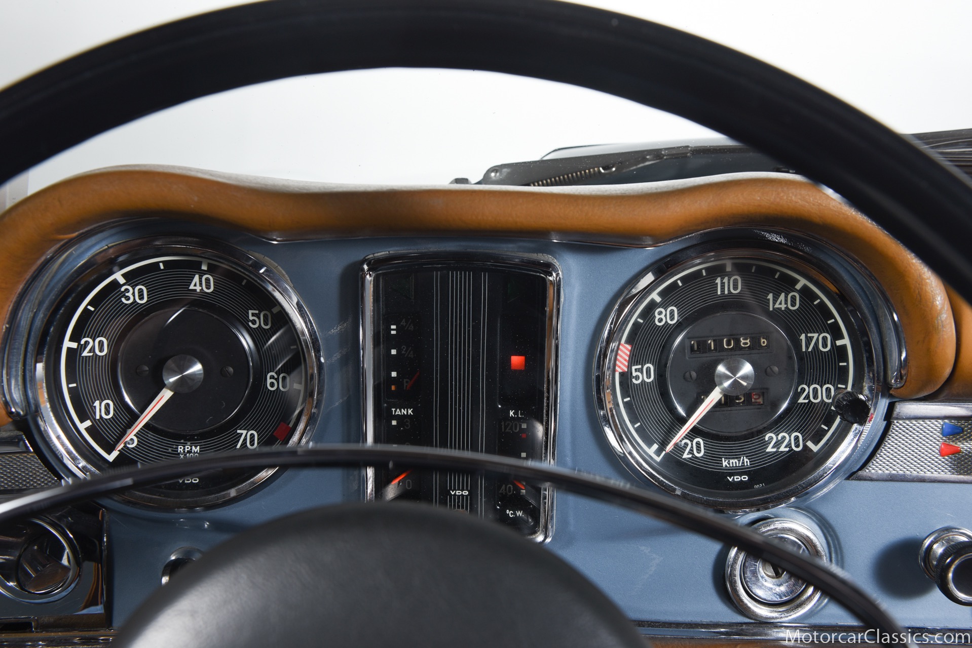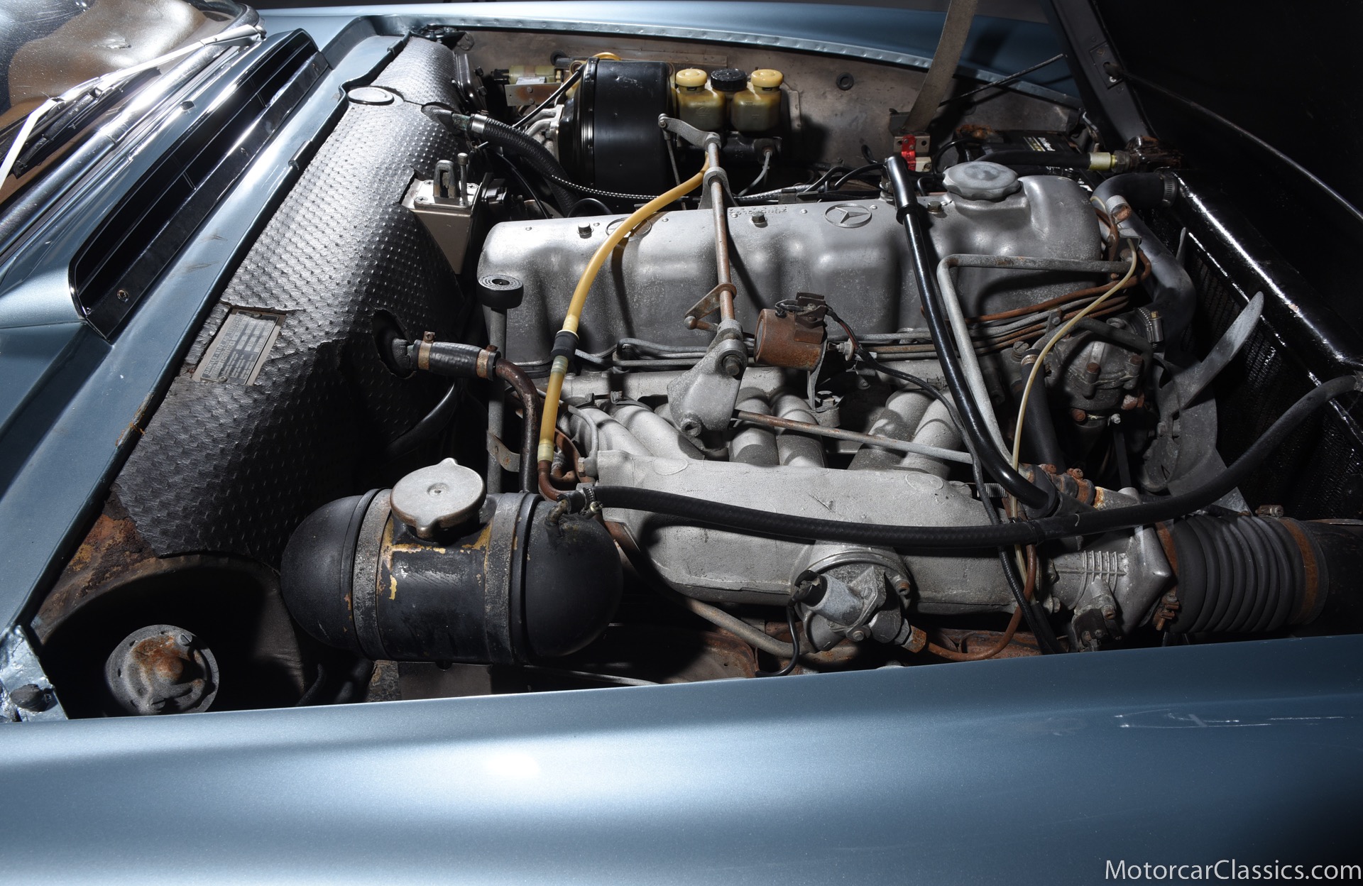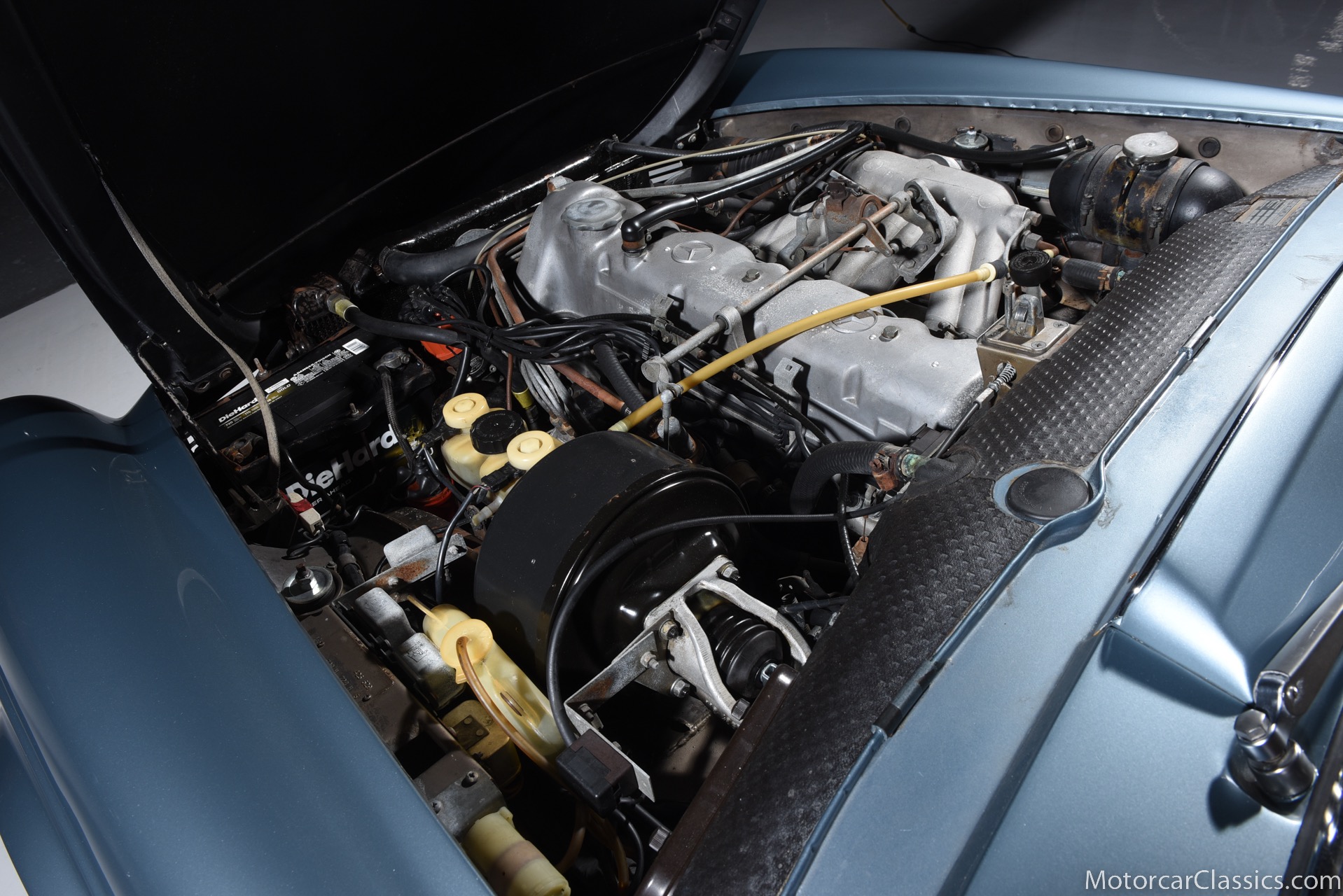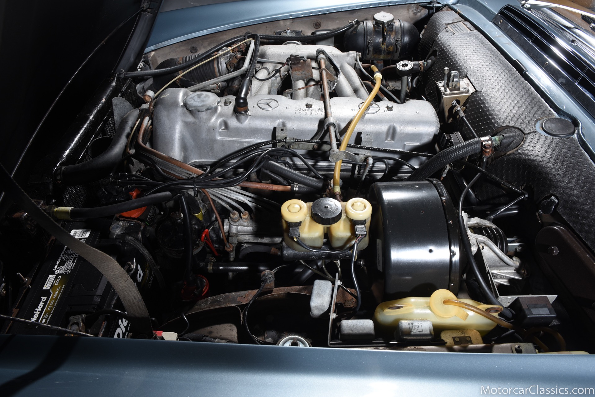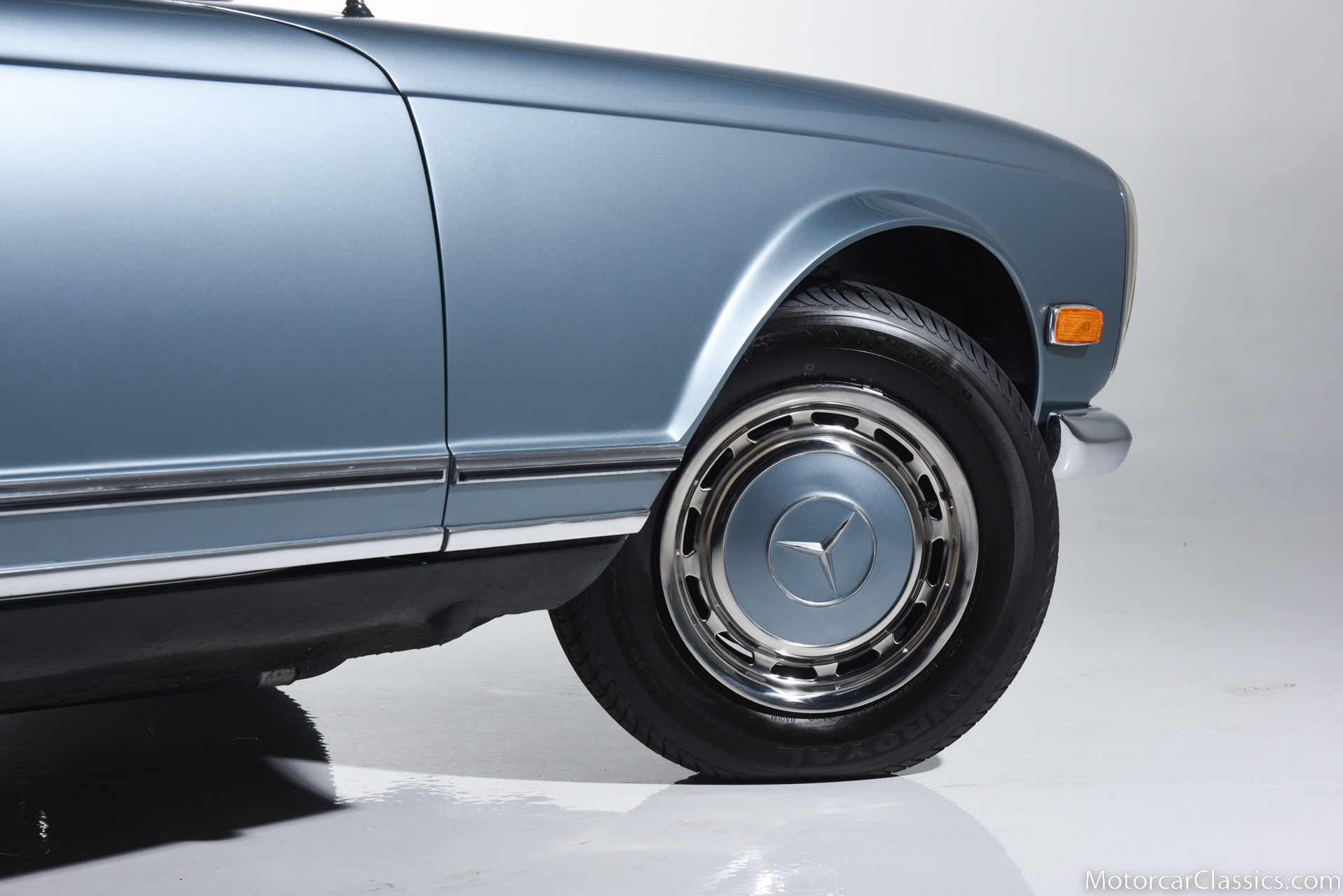1969 MERCEDES-BENZ 280SL for sale. Motorcar Classics is proud to present this 1969 Mercedes 280SL featured in Metallic Grey Blue (#906) with Tan MB Tex and Navy Blue convertible top. This car includes a matching Grey Blue hardtop. The car has one high-quality respray. The interior is original. The original engine is rebuilt with all OEM Mercedes parts. The factory Becker Europa radio is still in place. Our 280SL is in great cosmetic and mechanical condition and a delight to drive with Mercedes 4-speed automatic gearbox. True mileage is believed to be 109,587. This fine 280SL was purchased new in 1969 in Paris, France. The second owner purchased it in the early 1980s and imported it to the US, where it resided in his hands until entering our inventory. The car retains its valuable and desirable European headlamps. This is a car you can drive or show with pride.
