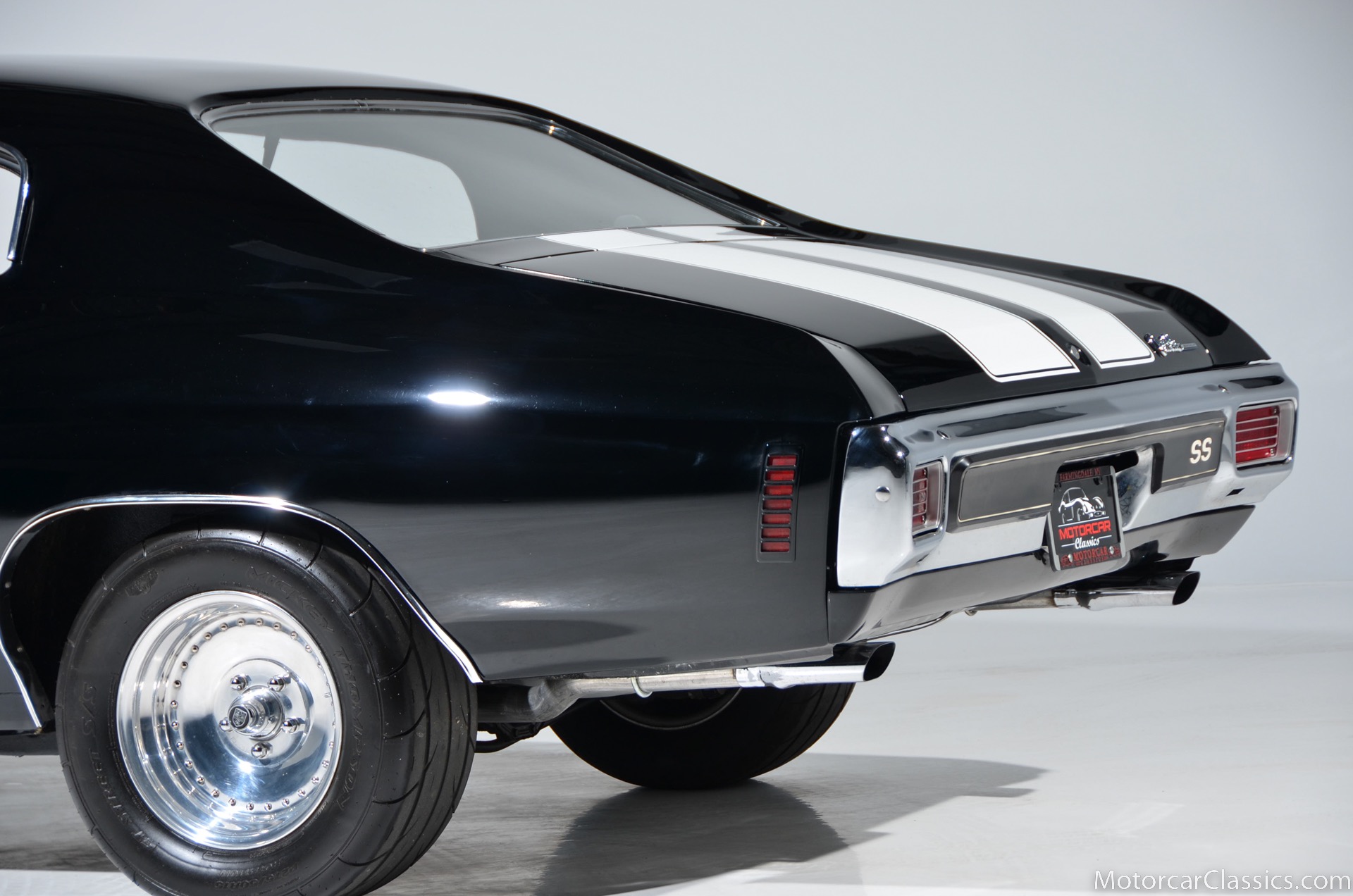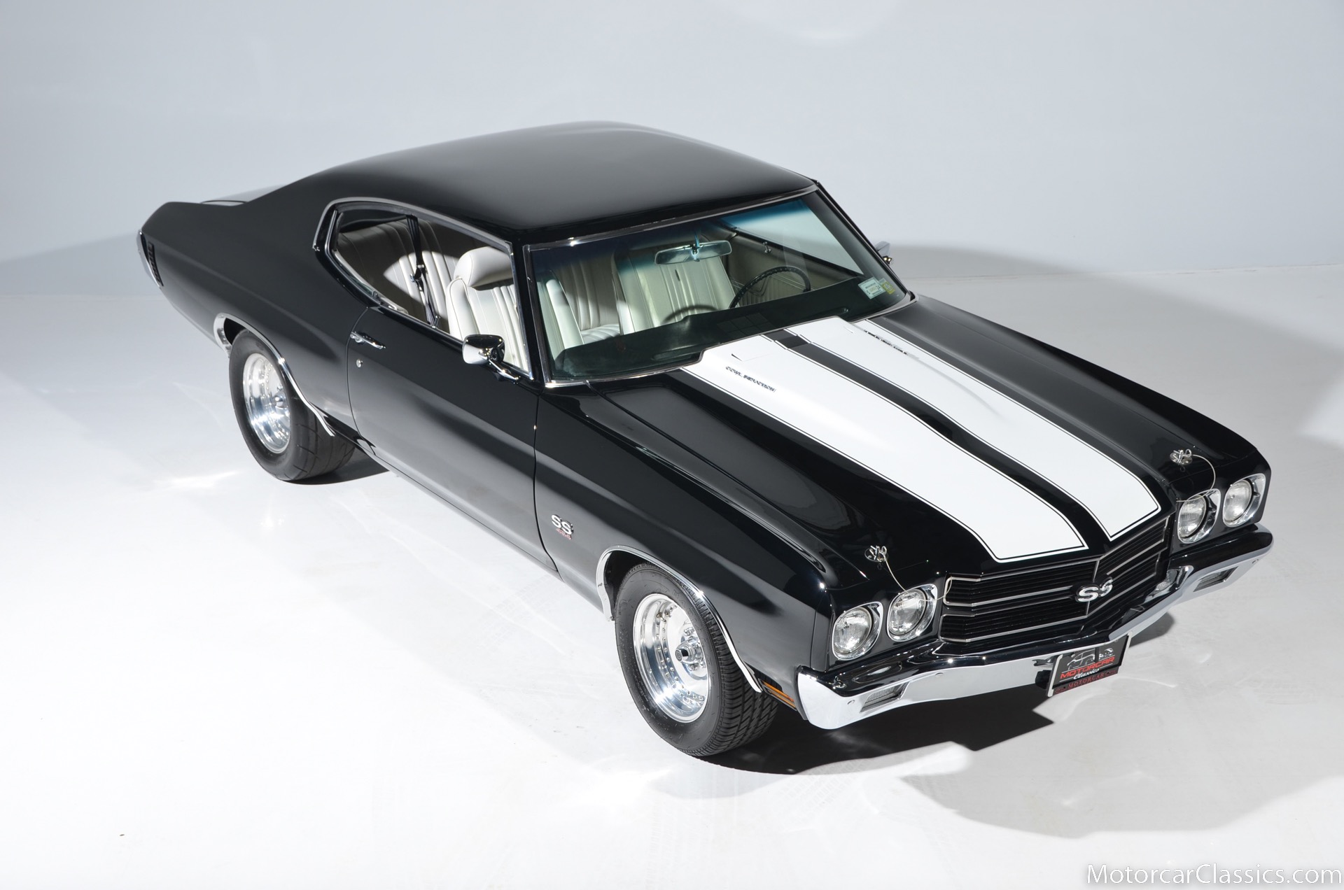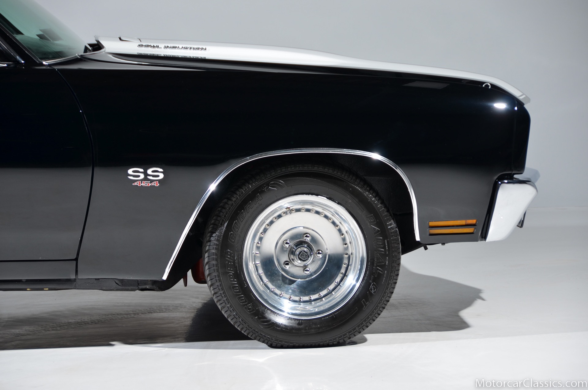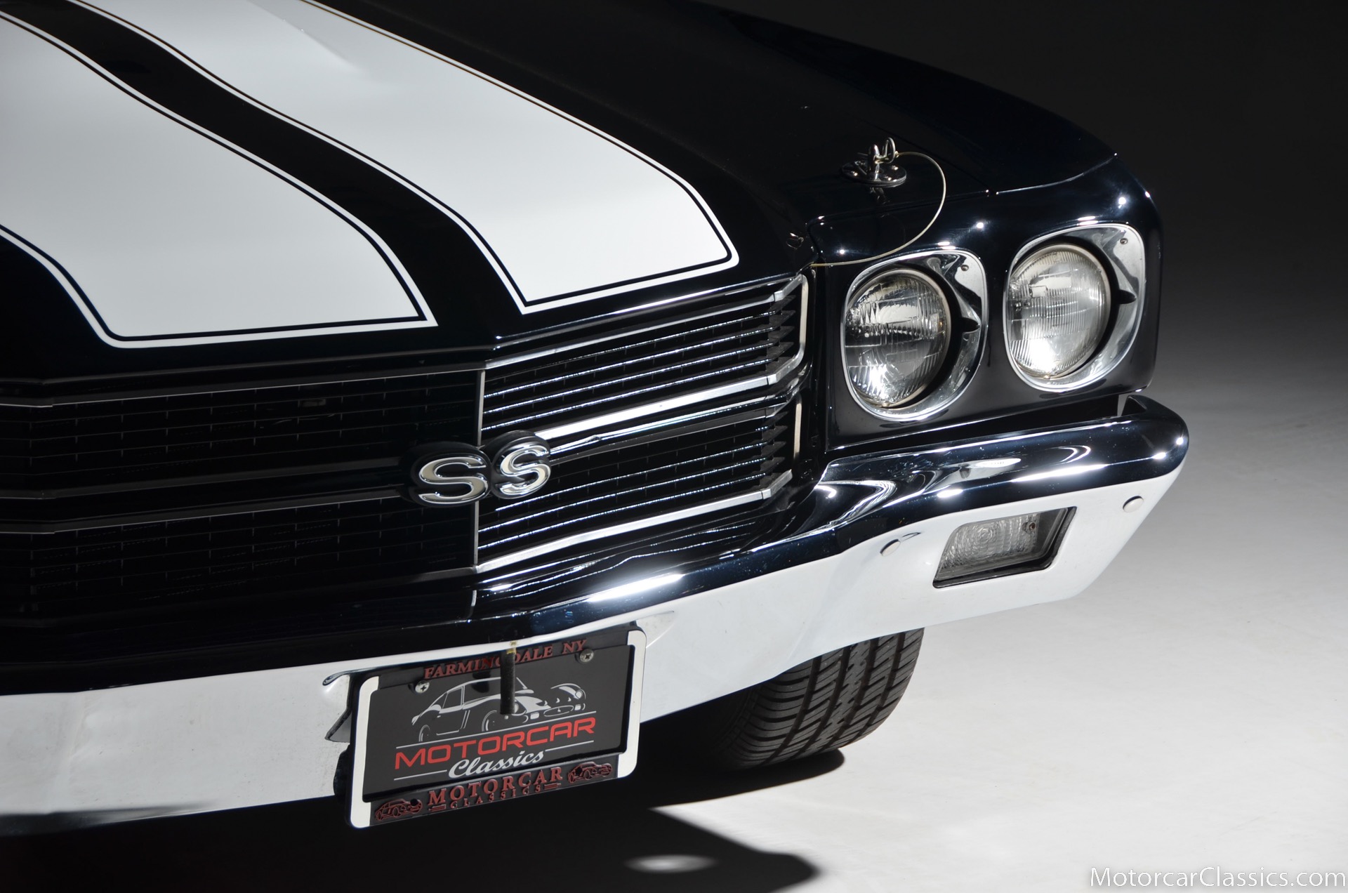 1970 Chevelle SS 454 Tribute for sale! Motorcar Classics is pleased to present this stunning 1970 Chevrolet Chevelle SS454 Tribute car featured in Tuxedo Black with white stripes and white sport bucket seat interior with console. This fine Chevelle has been beautifully restored and upgraded to SS454 spec complete with a 454 engine with Holley Sniper EFI fuel system, 4-Speed manual gearbox, and 3.31 rear. The car has a new dashboard with all new LED lighting gauges, a new radio with four speakers, new wiper motor, wipers, heater core, heater hoses, sun visors, fuel tank, manifold & exhaust system, three-point seat belts, LED rear taillights. This Chevelle is meticulously built and well-sorted. The 1970 Chevelle is the most popular muscle car of this period, and this color combination is the one that everyone wants. This one is ready for your immediate show or touring enjoyment.