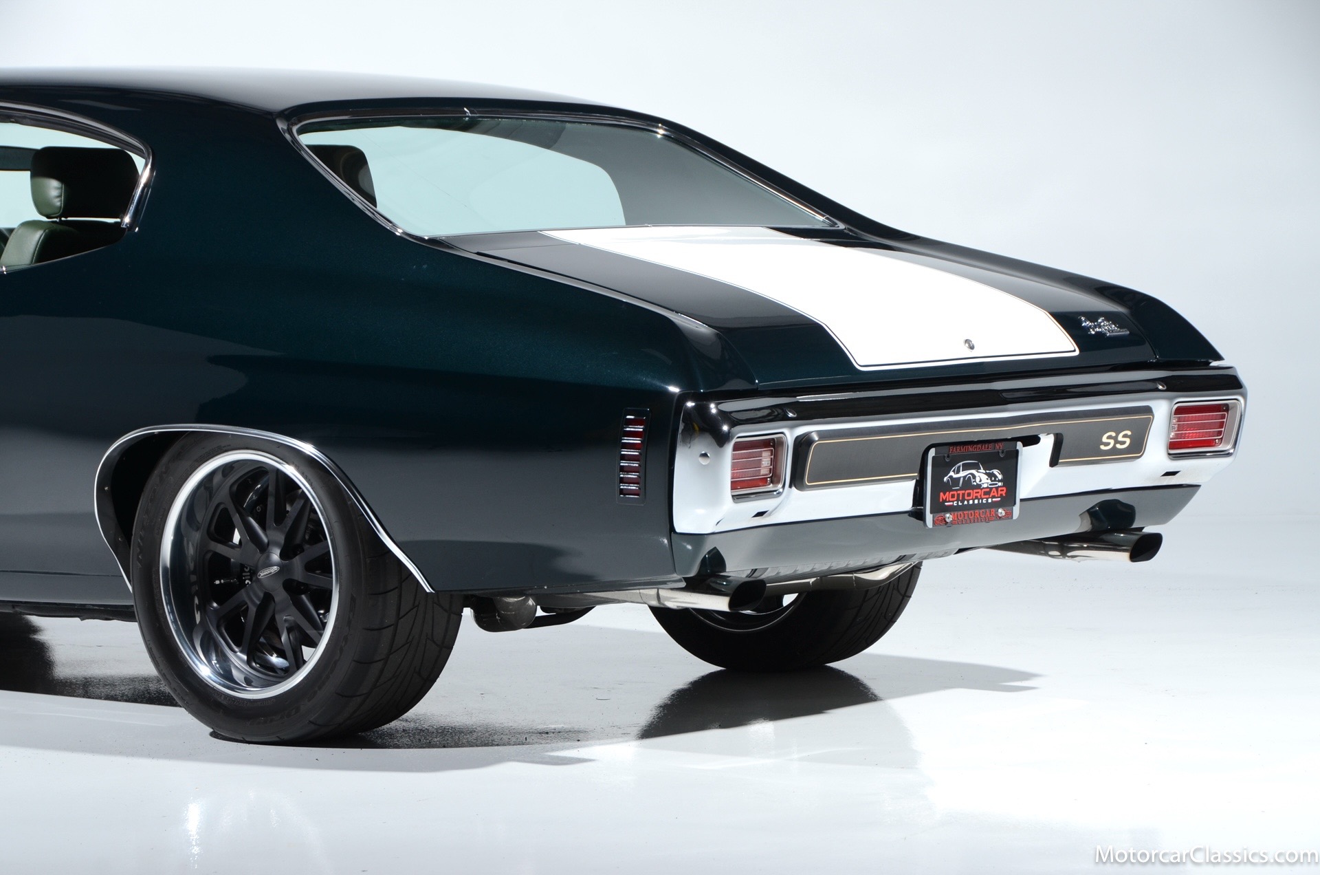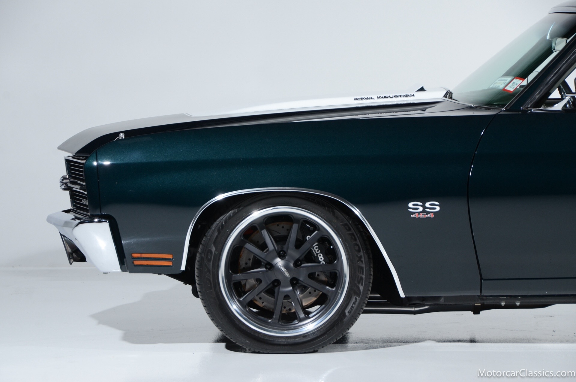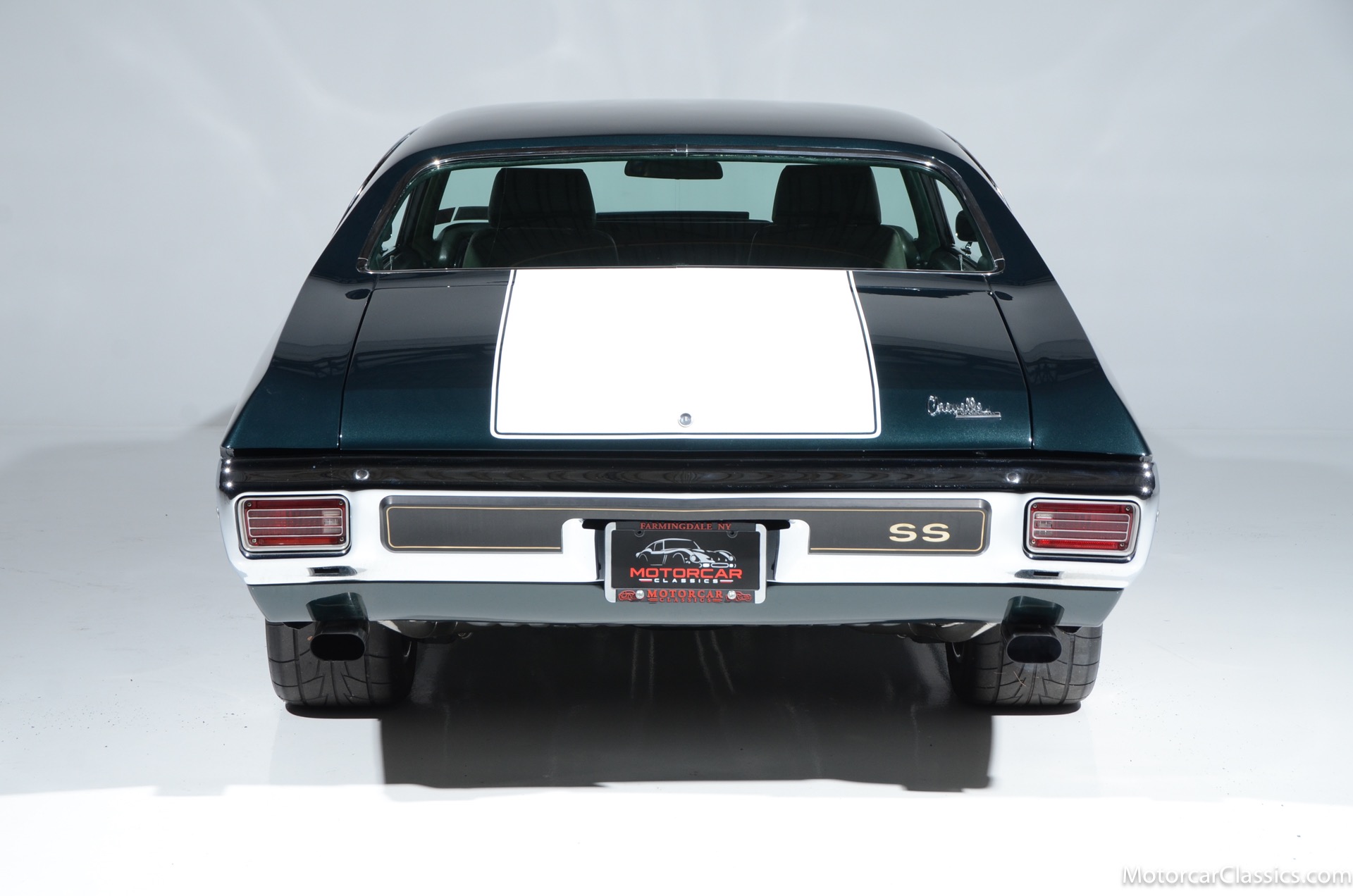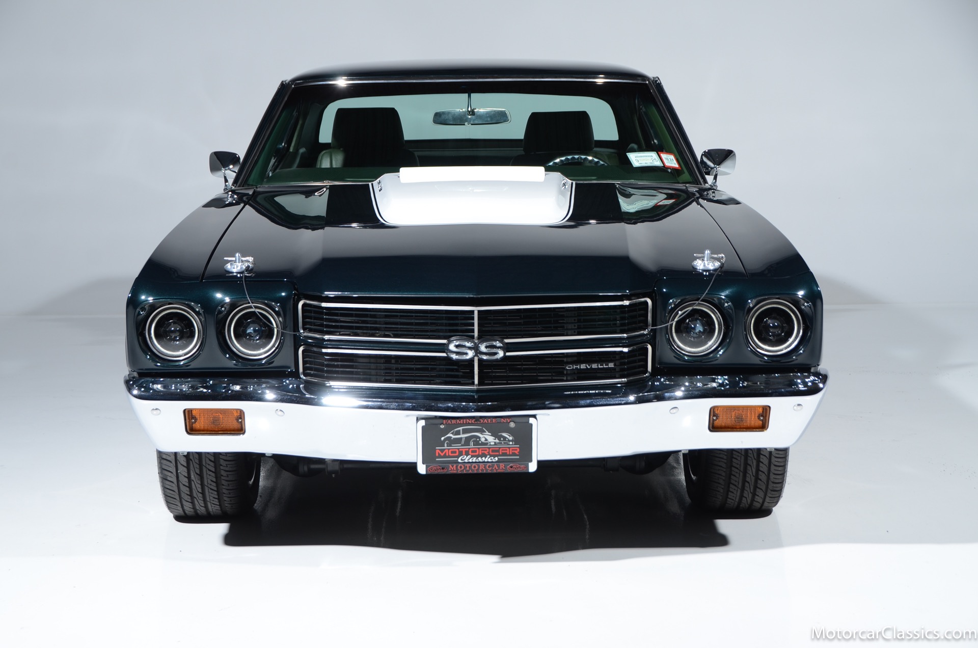 1970 Chevrolet Chevelle SS for sale! Motorcar Classics is proud to present this awesome 1970 Chevelle Big Block Restomod featured in Deep Forest Green Metallic with a stunning green custom interior. The 1970 Chevelle two-door hardtop is arguably the most popular of this era's muscle cars, and this professionally-built restomod has all the right stuff for performance and style. The car was subjected to a documented body-off nut & bolt restoration with all of the finest upgrades. Features include: Fuel injection, Quick-ratio steering gear box, 540CI 675hp Balanced & Blueprinted BBC, Wilwood 14* big brakes with drilled & slotted rotors and six piston calipers, Hooker Black Heart Long Tube Headers ceramic coated with X-Pipe and Stainless Borla exhaust, Hydroboost braking system, Billet Specialties polished aluminum Serpentine system with 150A Alternator, Custom Budnik wheels, Tremec TK0-600, Classic Auto A/C, American Powertrain AutoX Crossmember, Custom aluminum 4-core radiator, Custom driveline loop, Custom radiator plumbing, GM 12-bolt 3.73 Eaton Tru-Trac Posi, Dual SPAL Ultra fans, RideTech coil-over suspension, RideTech musclebar front & rear, Flaming River steering column & knuckle, ChassisWorks Billet drop spindles, Budnik custom steering wheel, Custom interior, AutoMeter electronic gauges & cluster, S/S EF baffled Gas Tank, Custom Plumbing: Fuel, PS & Brakes, Custom billet cowl vents, Functional Cowl Induction hood, Ring Brothers hood & trunk hinges, Ring Brothers hood tie-downs, LED projector headlights with DRL ring, and incredible custom paint. The car comes with a huge build book and it is fully-sorted and ready for immediate enjoyment. The performance is thrilling, the sound is spectacular, and the car will attract attention at any show.