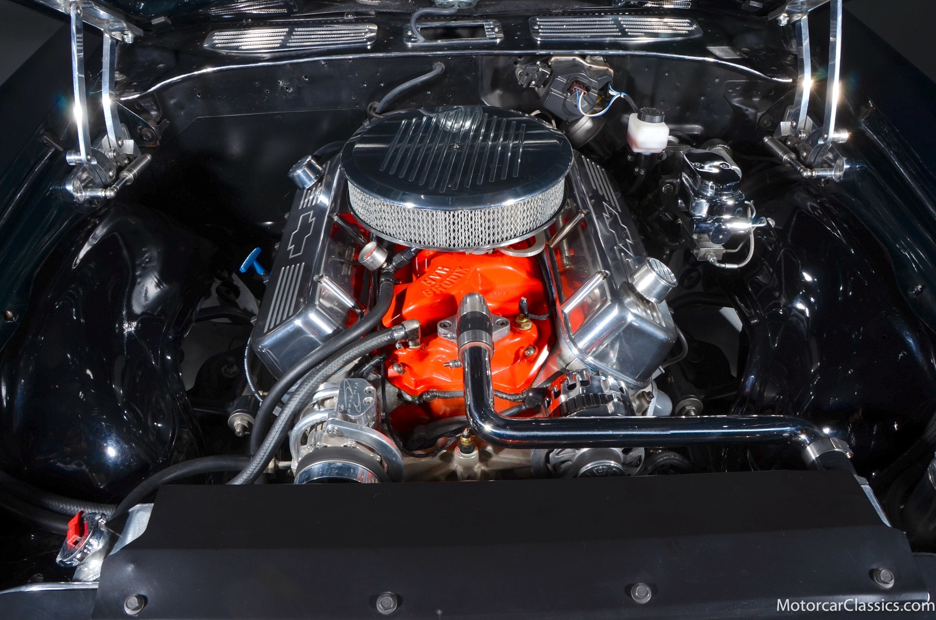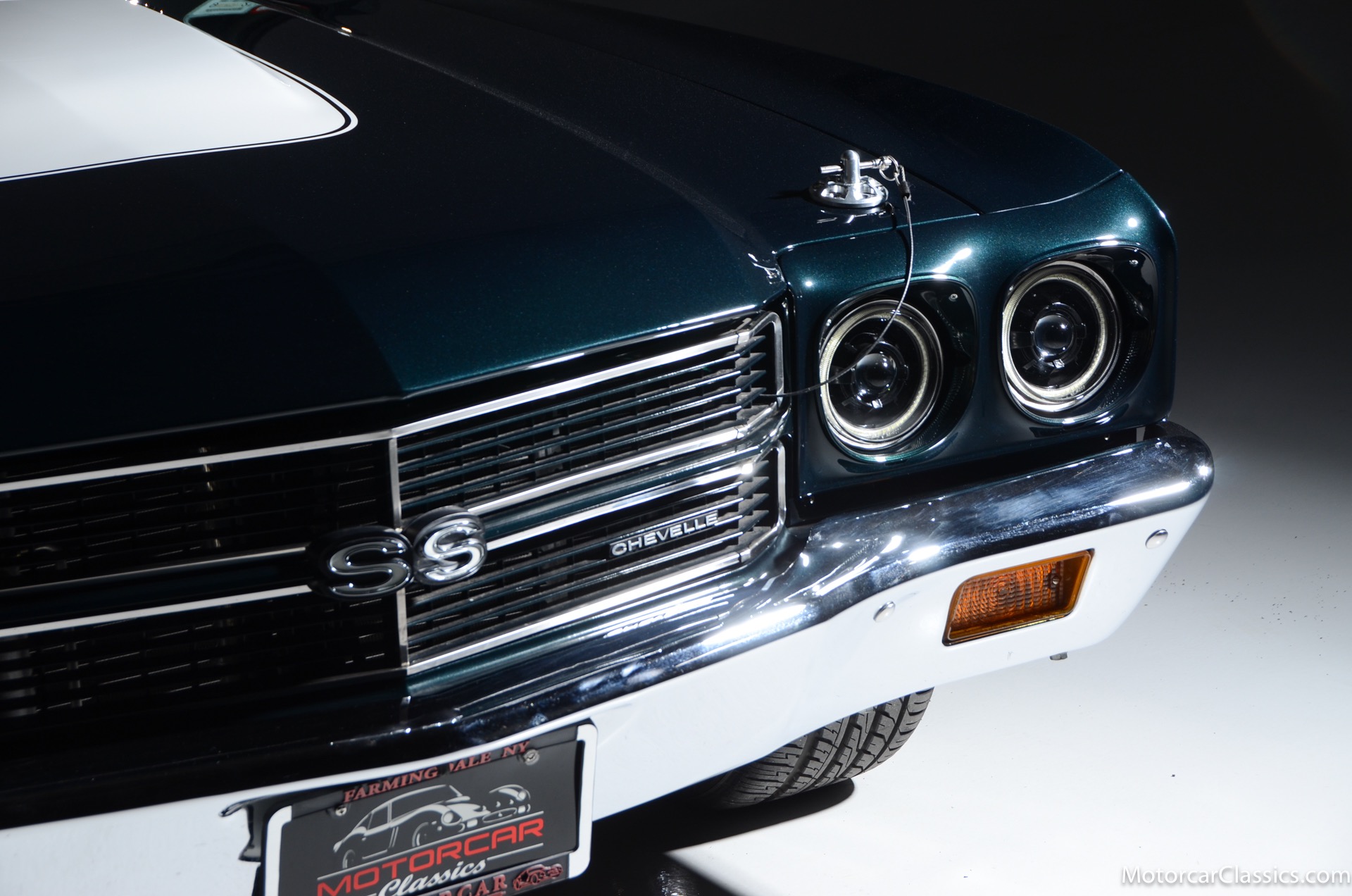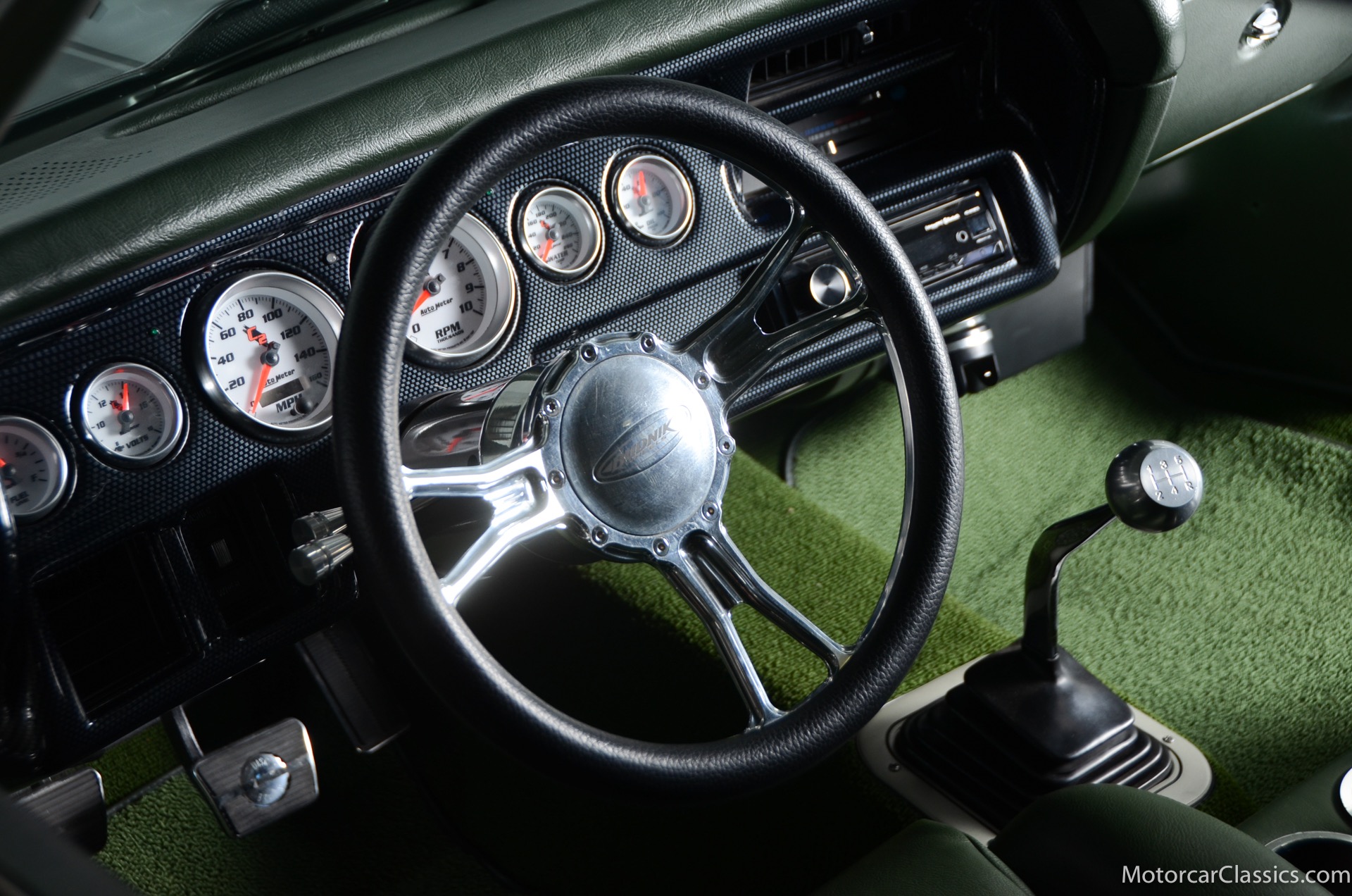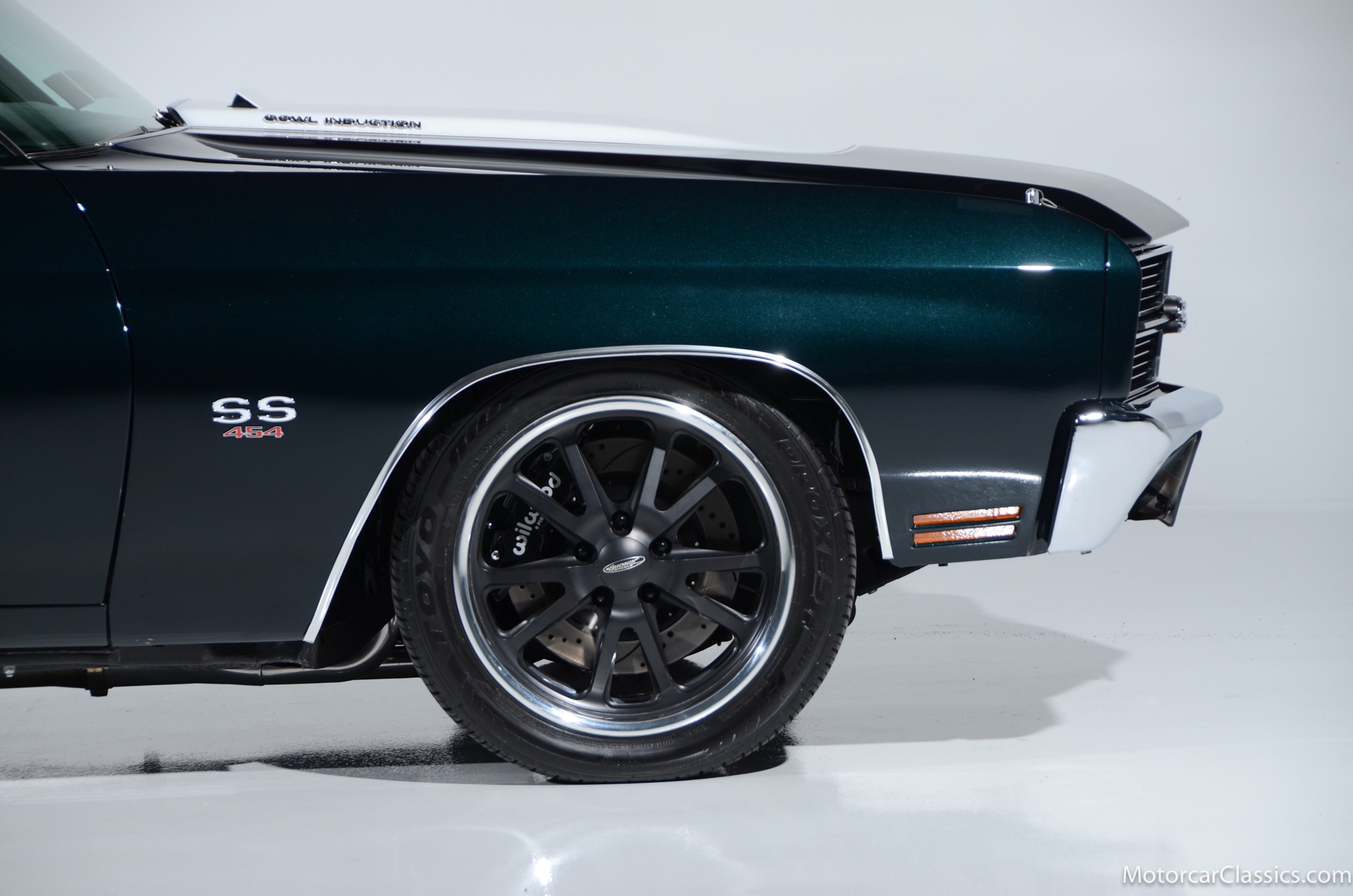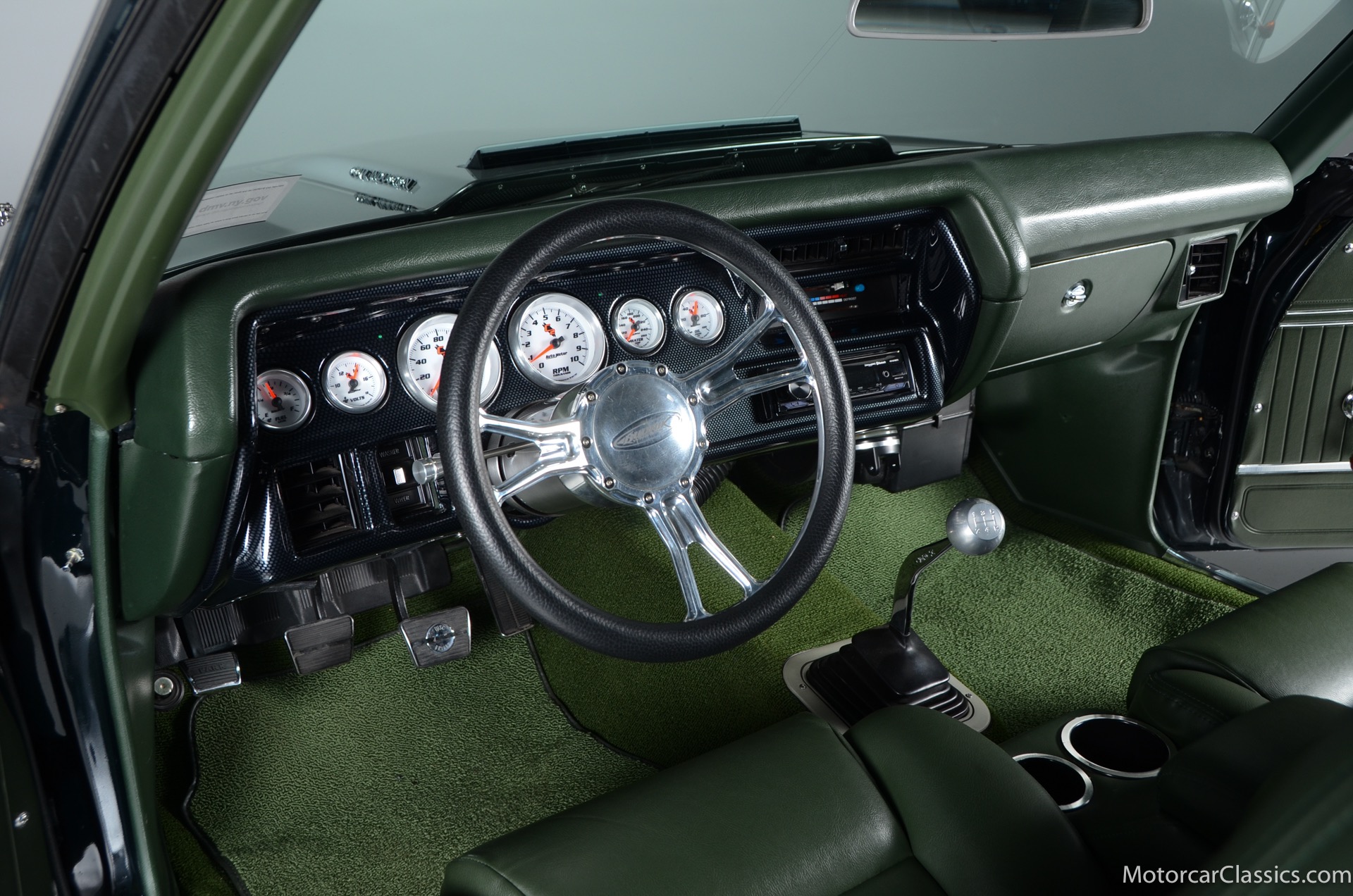 1970 Chevrolet Chevelle SS for sale! Motorcar Classics is proud to present this awesome 1970 Chevelle Big Block Restomod featured in Deep Forest Green Metallic with a stunning green custom interior. The 1970 Chevelle two-door hardtop is arguably the most popular of this era's muscle cars, and this professionally-built restomod has all the right stuff for performance and style. The car was subjected to a documented body-off nut & bolt restoration with all of the finest upgrades. Features include: Fuel injection, Quick-ratio steering gear box, 540CI 675hp Balanced & Blueprinted BBC, Wilwood 14* big brakes with drilled & slotted rotors and six piston calipers, Hooker Black Heart Long Tube Headers ceramic coated with X-Pipe and Stainless Borla exhaust, Hydroboost braking system, Billet Specialties polished aluminum Serpentine system with 150A Alternator, Custom Budnik wheels, Tremec TK0-600, Classic Auto A/C, American Powertrain AutoX Crossmember, Custom aluminum 4-core radiator, Custom driveline loop, Custom radiator plumbing, GM 12-bolt 3.73 Eaton Tru-Trac Posi, Dual SPAL Ultra fans, RideTech coil-over suspension, RideTech musclebar front & rear, Flaming River steering column & knuckle, ChassisWorks Billet drop spindles, Budnik custom steering wheel, Custom interior, AutoMeter electronic gauges & cluster, S/S EF baffled Gas Tank, Custom Plumbing: Fuel, PS & Brakes, Custom billet cowl vents, Functional Cowl Induction hood, Ring Brothers hood & trunk hinges, Ring Brothers hood tie-downs, LED projector headlights with DRL ring, and incredible custom paint. The car comes with a huge build book and it is fully-sorted and ready for immediate enjoyment. The performance is thrilling, the sound is spectacular, and the car will attract attention at any show.