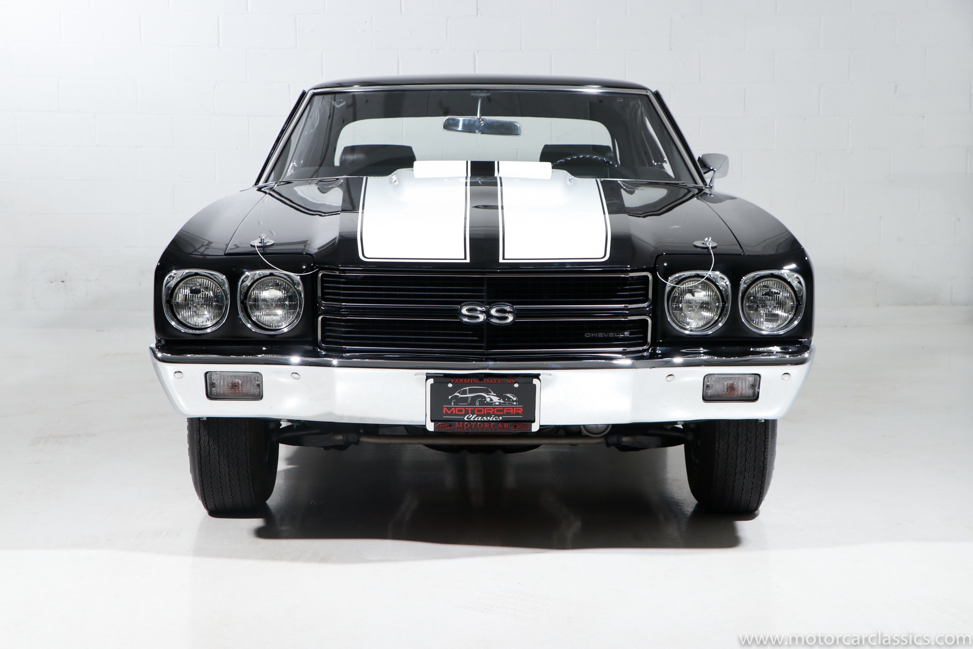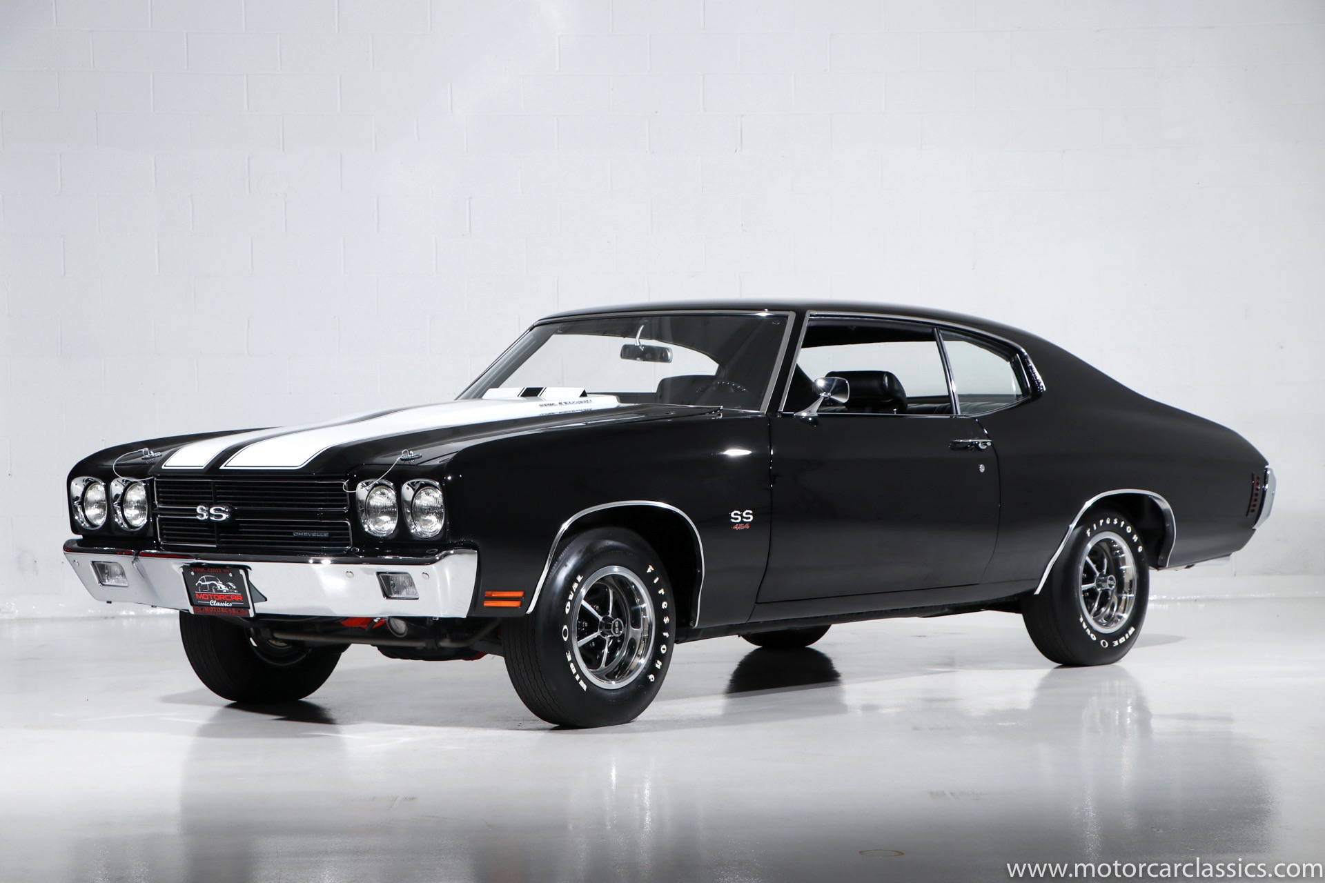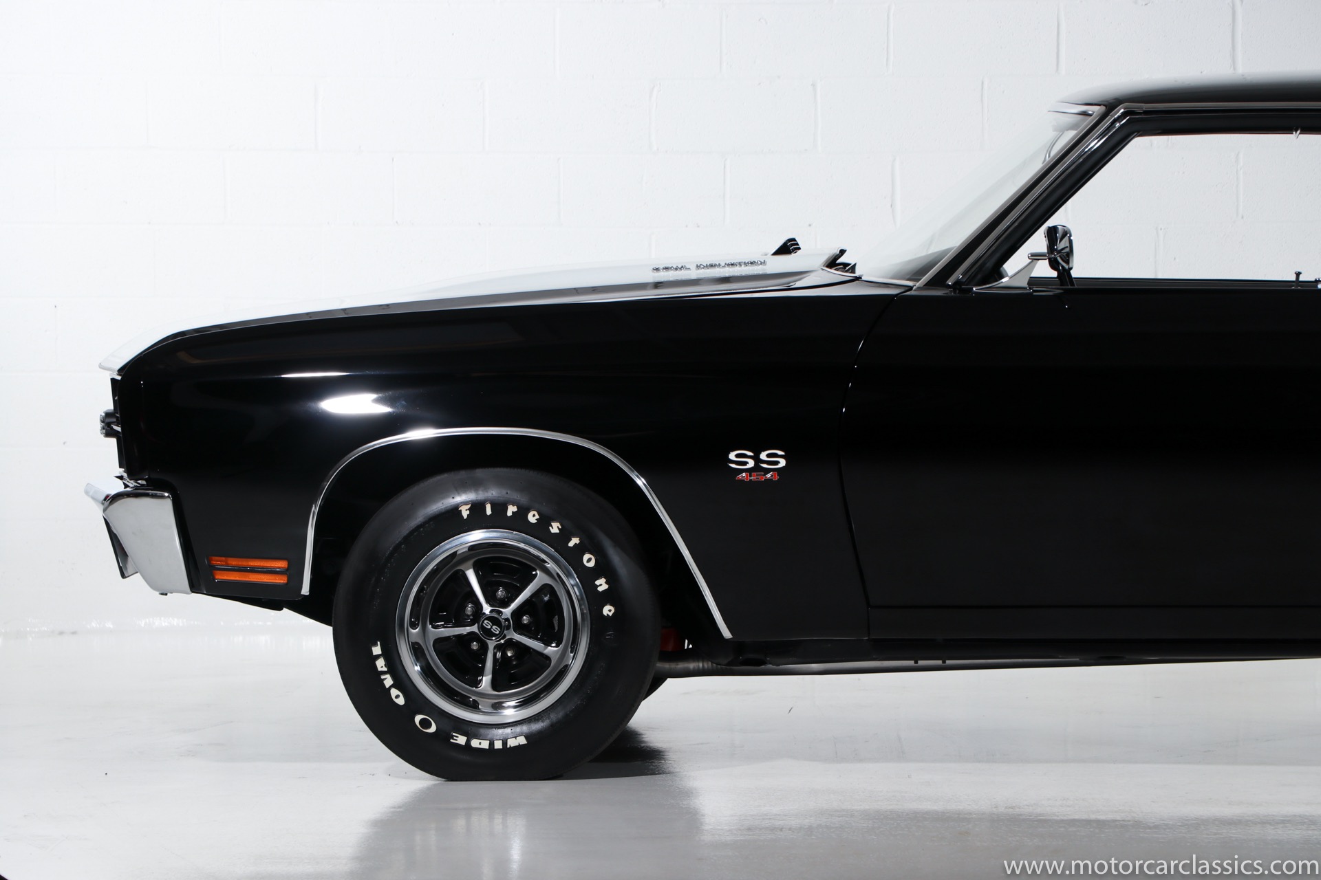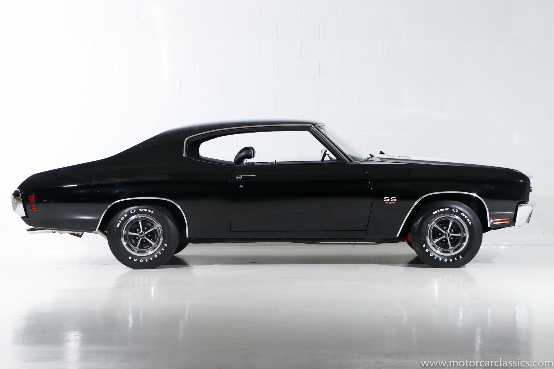 1970 Chevrolet Chevelle SS for sale! Motorcar Classics is pleased to offer this stunning rare LS6 real Super Sport Chevelle with original build sheet. This Chevelle is equipped with the original 454 LS6 V8 450HP, correct F41 heavy duty suspension, correct Tuxedo black paint with classic white stripes, Muncie M20 4-speed transmission, factory power steering, black interior, correct 12 bolt rear end thats complete with correct 4.10 gears, power front disc brakes and rear drum. This Chevelle was subject to a fresh frame off restoration and now has a solid chassis, smooth floorpans, 100% new vinyl interior, fully restored trunk and aluminized exhaust true dual system which runs from the cars cast iron manifolds to great sounding mufflers. 55,556 original miles this Chevelle overall is 100% investment grade A-body total package car. With its king-of-the-mountain LS6, legendary Muncie 4-speed and every option that allowed these cars to develop such stellar reputations, this was a bragging rights car in its day and perhaps even more so now. Dont miss this chance to own a SS 454!