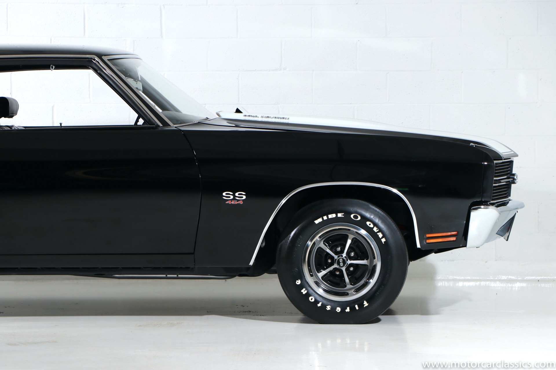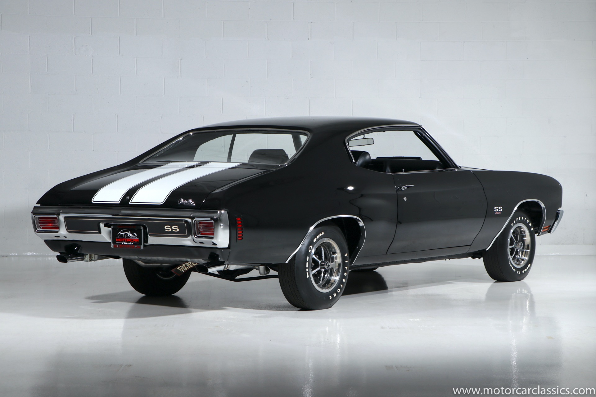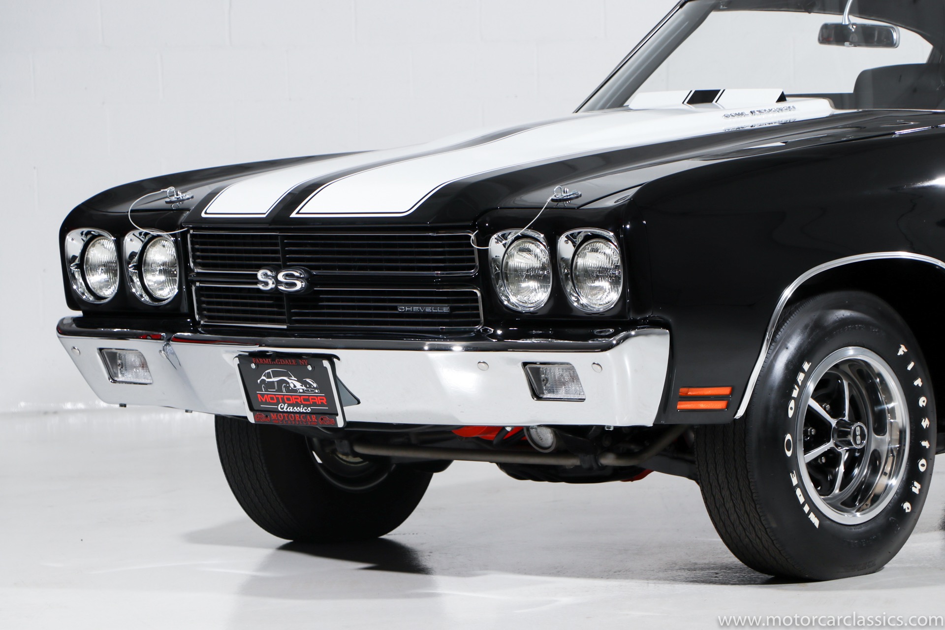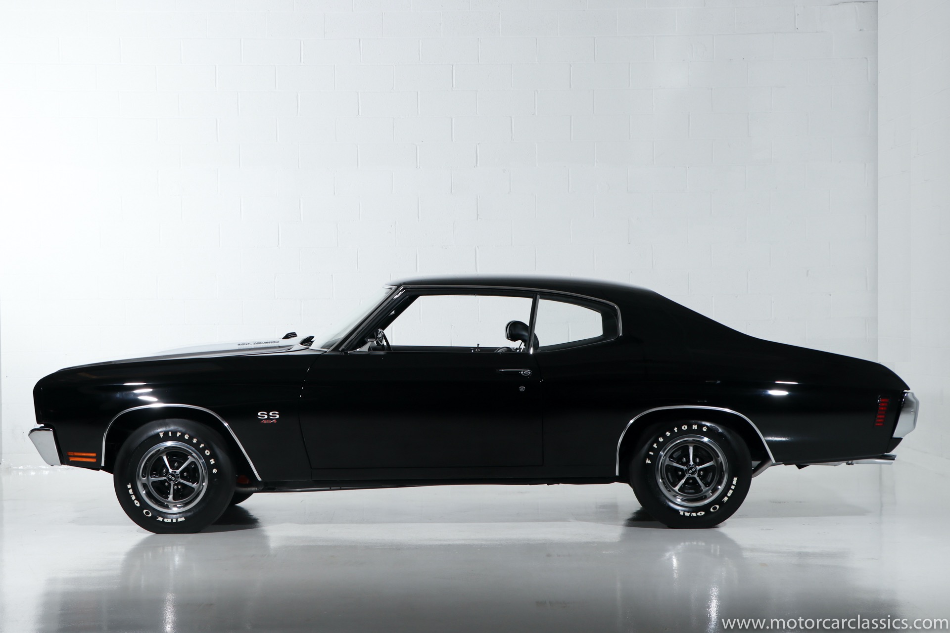 1970 Chevrolet Chevelle SS for sale! Motorcar Classics is pleased to offer this stunning rare LS6 real Super Sport Chevelle with original build sheet. This Chevelle is equipped with the original 454 LS6 V8 450HP, correct F41 heavy duty suspension, correct Tuxedo black paint with classic white stripes, Muncie M20 4-speed transmission, factory power steering, black interior, correct 12 bolt rear end thats complete with correct 4.10 gears, power front disc brakes and rear drum. This Chevelle was subject to a fresh frame off restoration and now has a solid chassis, smooth floorpans, 100% new vinyl interior, fully restored trunk and aluminized exhaust true dual system which runs from the cars cast iron manifolds to great sounding mufflers. 55,556 original miles this Chevelle overall is 100% investment grade A-body total package car. With its king-of-the-mountain LS6, legendary Muncie 4-speed and every option that allowed these cars to develop such stellar reputations, this was a bragging rights car in its day and perhaps even more so now. Dont miss this chance to own a SS 454!