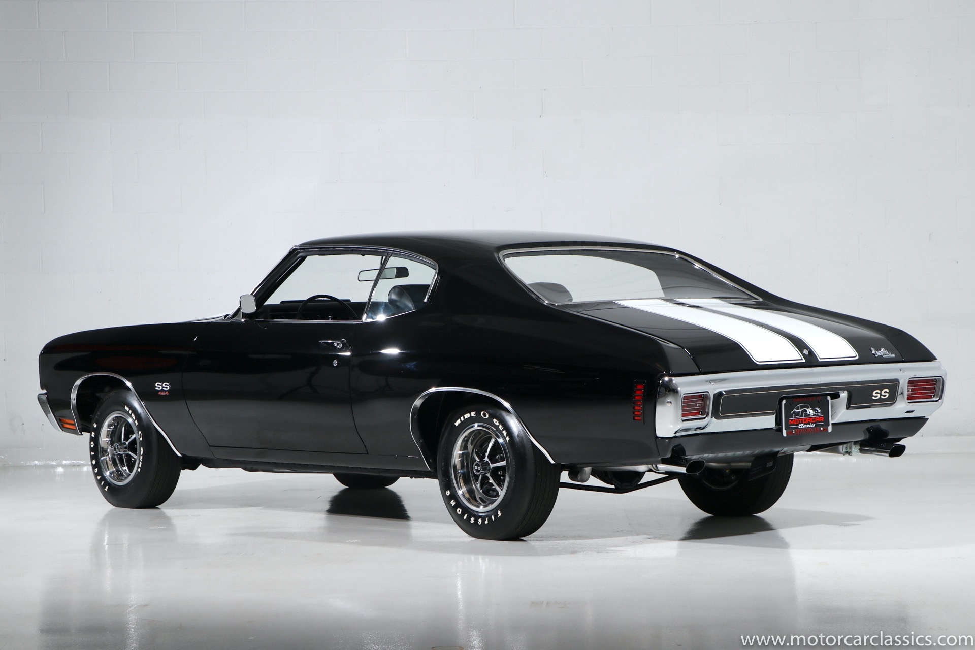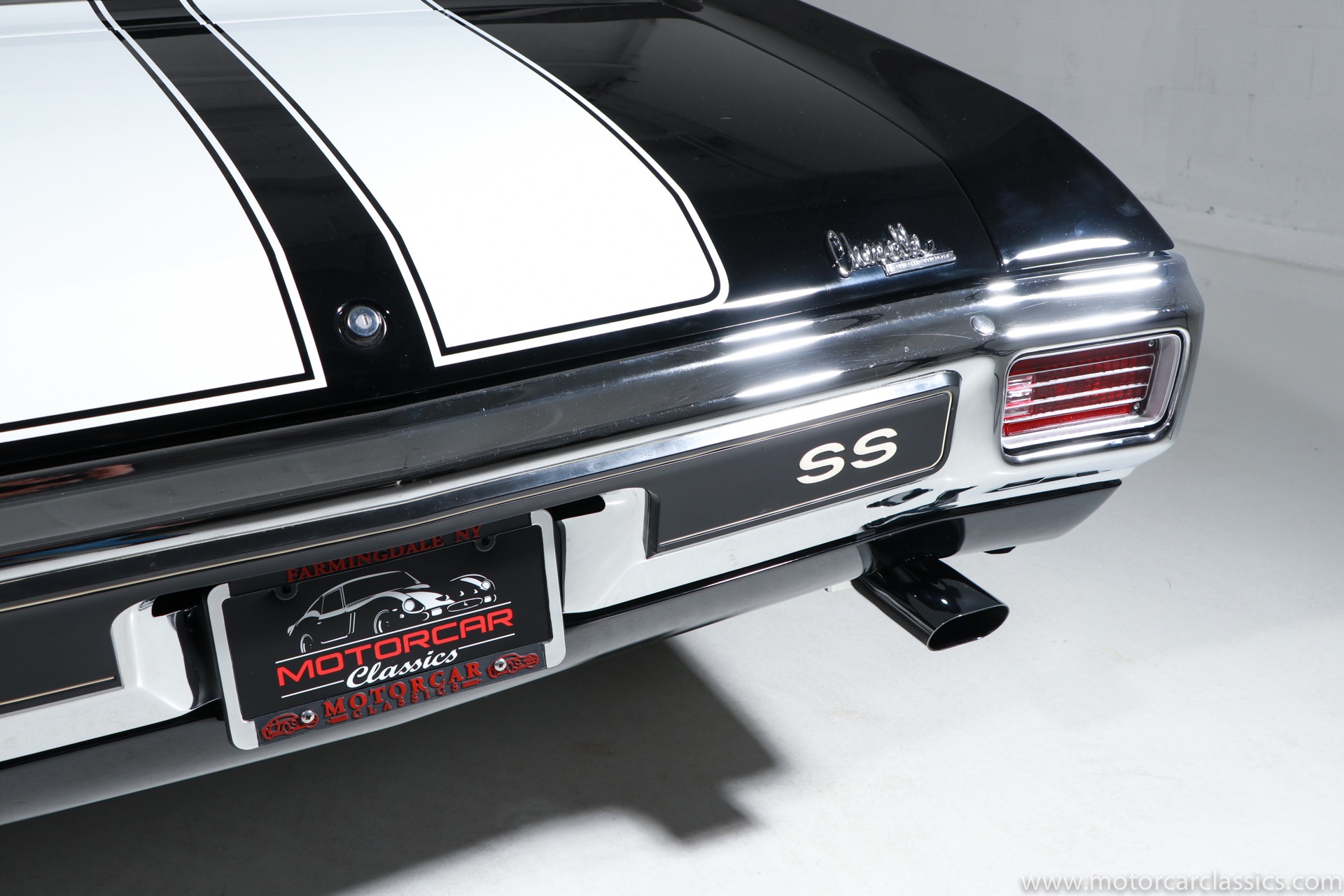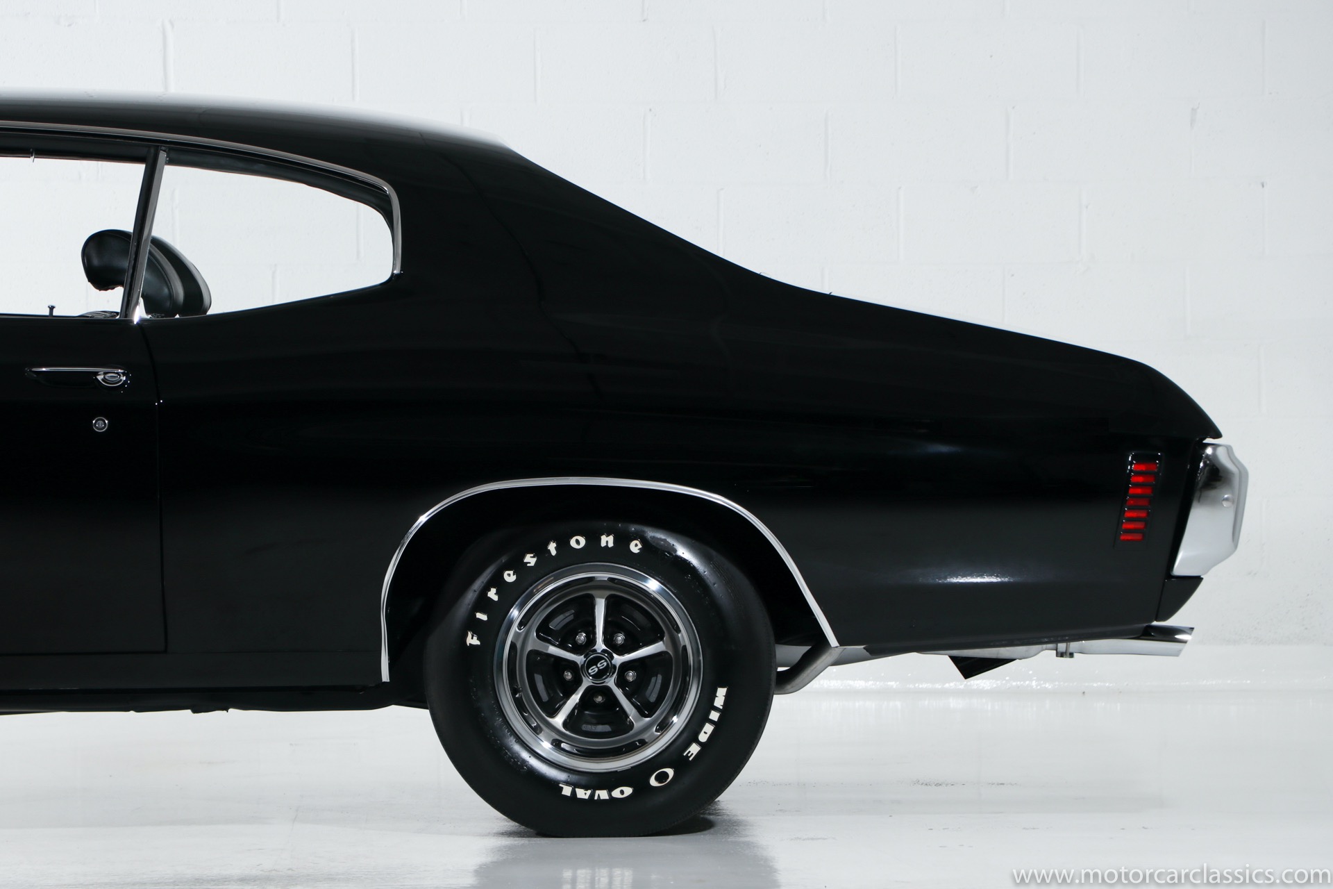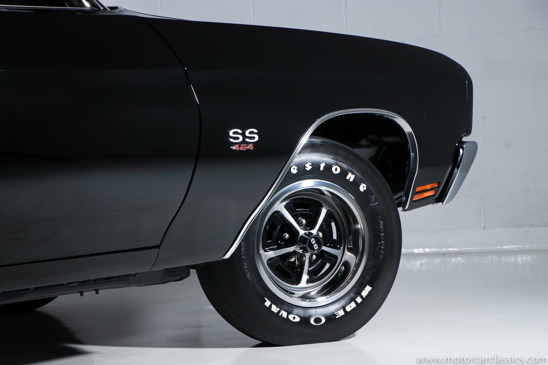 1970 Chevrolet Chevelle SS for sale! Motorcar Classics is pleased to offer this stunning rare LS6 real Super Sport Chevelle with original build sheet. This Chevelle is equipped with the original 454 LS6 V8 450HP, correct F41 heavy duty suspension, correct Tuxedo black paint with classic white stripes, Muncie M20 4-speed transmission, factory power steering, black interior, correct 12 bolt rear end thats complete with correct 4.10 gears, power front disc brakes and rear drum. This Chevelle was subject to a fresh frame off restoration and now has a solid chassis, smooth floorpans, 100% new vinyl interior, fully restored trunk and aluminized exhaust true dual system which runs from the cars cast iron manifolds to great sounding mufflers. 55,556 original miles this Chevelle overall is 100% investment grade A-body total package car. With its king-of-the-mountain LS6, legendary Muncie 4-speed and every option that allowed these cars to develop such stellar reputations, this was a bragging rights car in its day and perhaps even more so now. Dont miss this chance to own a SS 454!