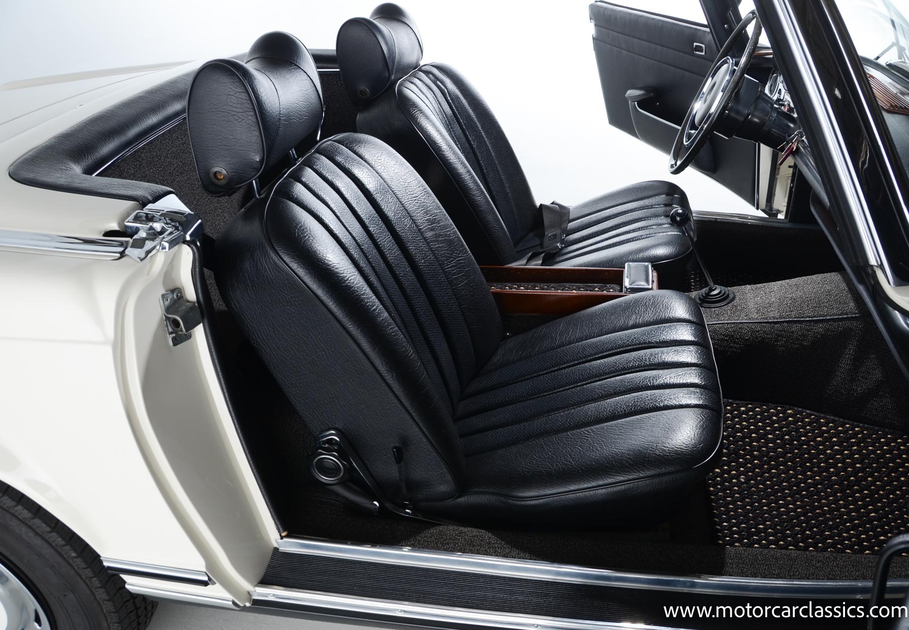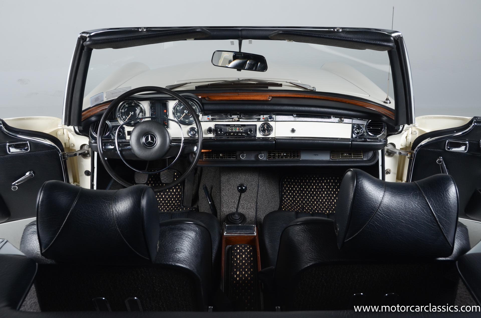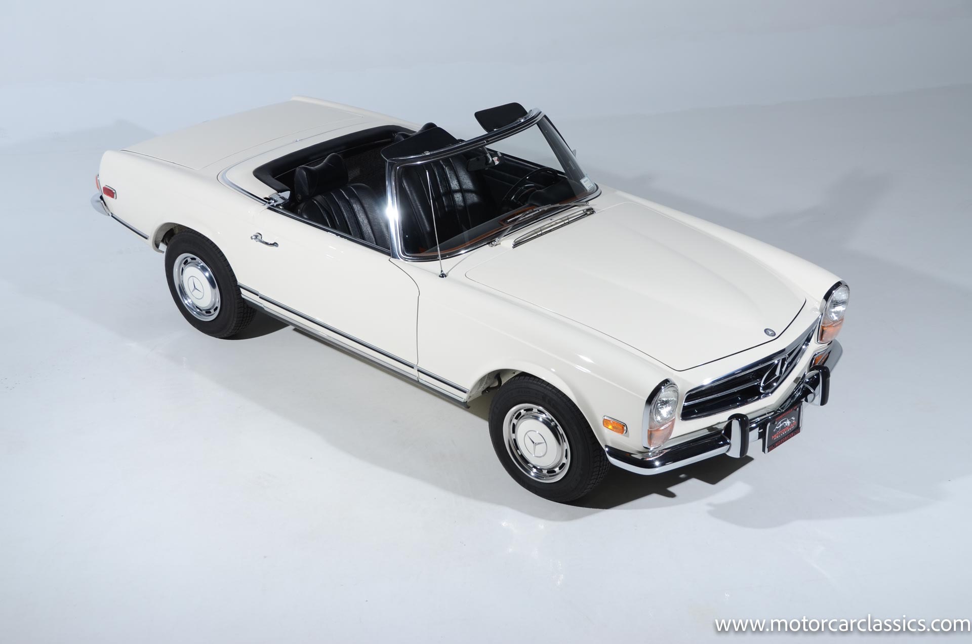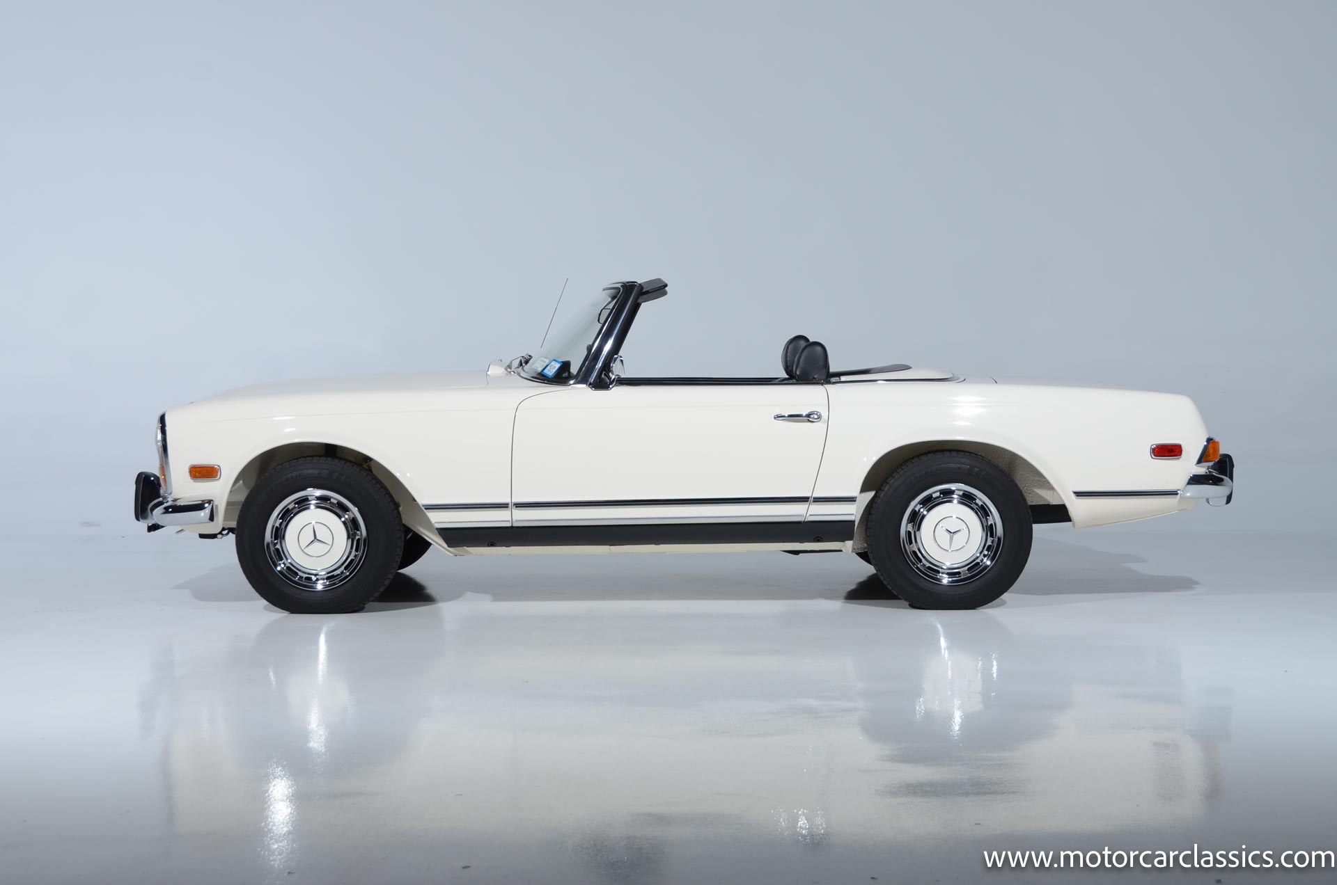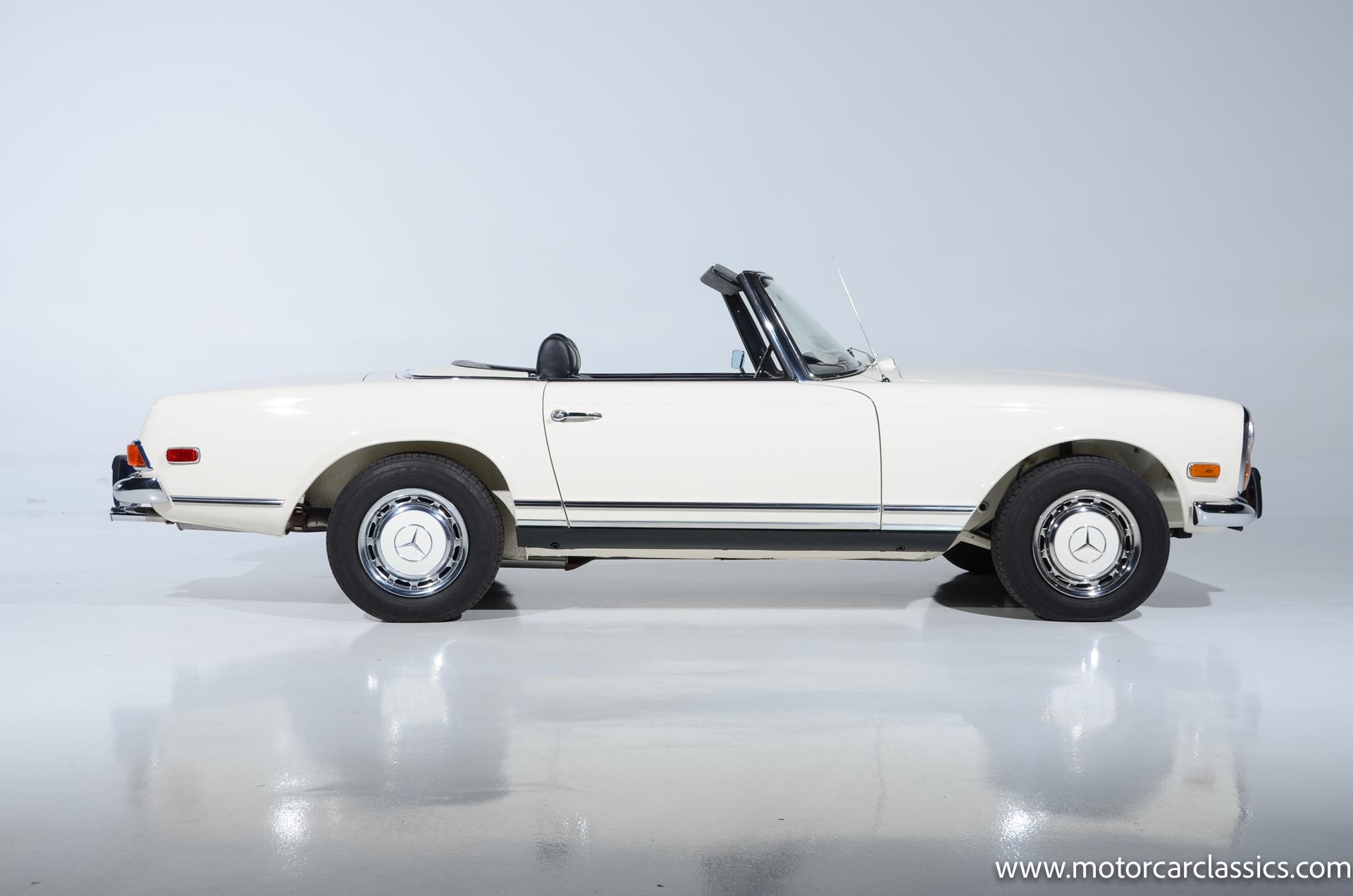 1970 Mercedes-Benz 280SL for sale! Motorcar Classics is pleased to present this stunning 280SL presented in refinished White (DB 050) with Black MB-Tex vinyl and matching carpets. This Mercedes was refurbished by Gus Kidonakis of Beverly Hill Motors in Houston, Texas prior to the seller's acquisition in a process that involved the body being stripped to bare metal, repaired and straightened, and epoxy-primed prior to being refinished in white with clear coat. The underside, engine compartment, and wheel wells were cleaned, repaired, and stone-guarded prior to painting and the rocker panels were painted black. The token spot welds are retained as well as the notches inside both front fenders. The air-conditioning drain was redirected to exit behind the front passenger tire.