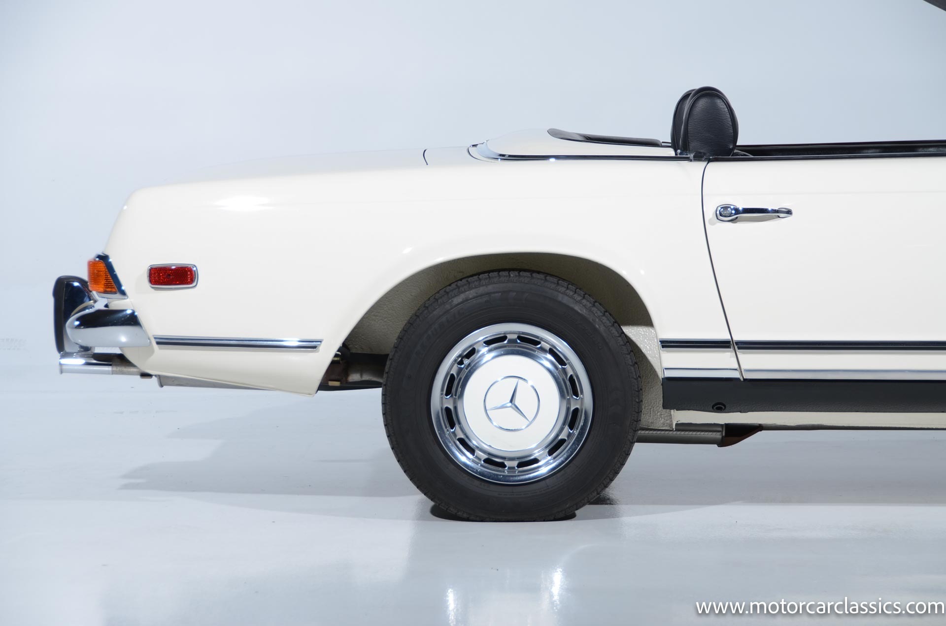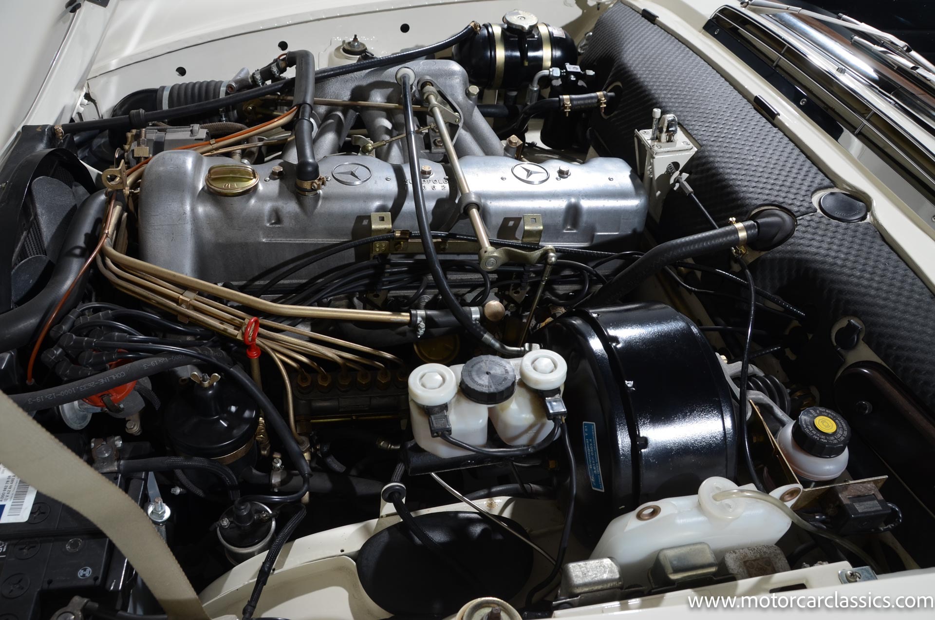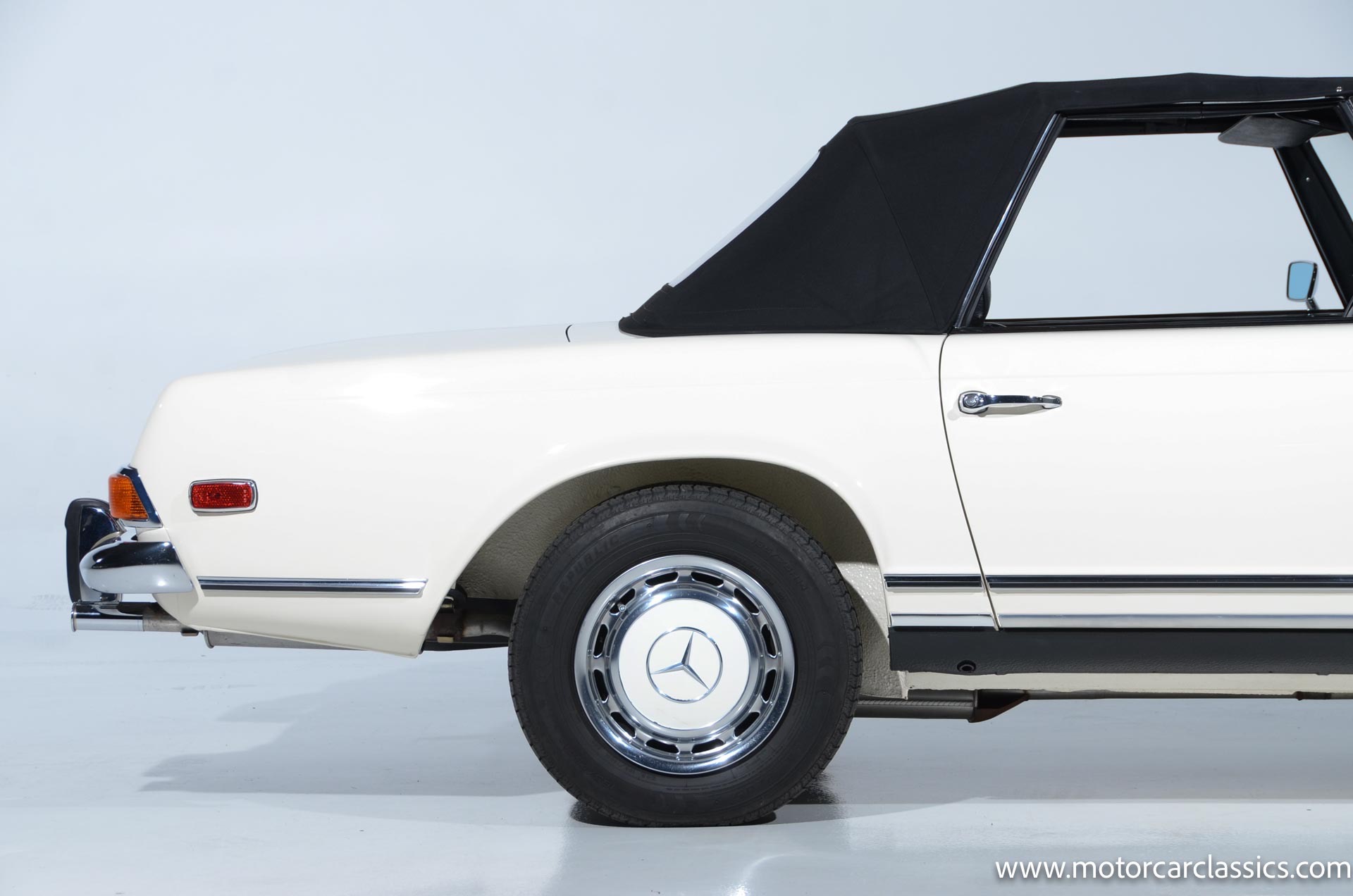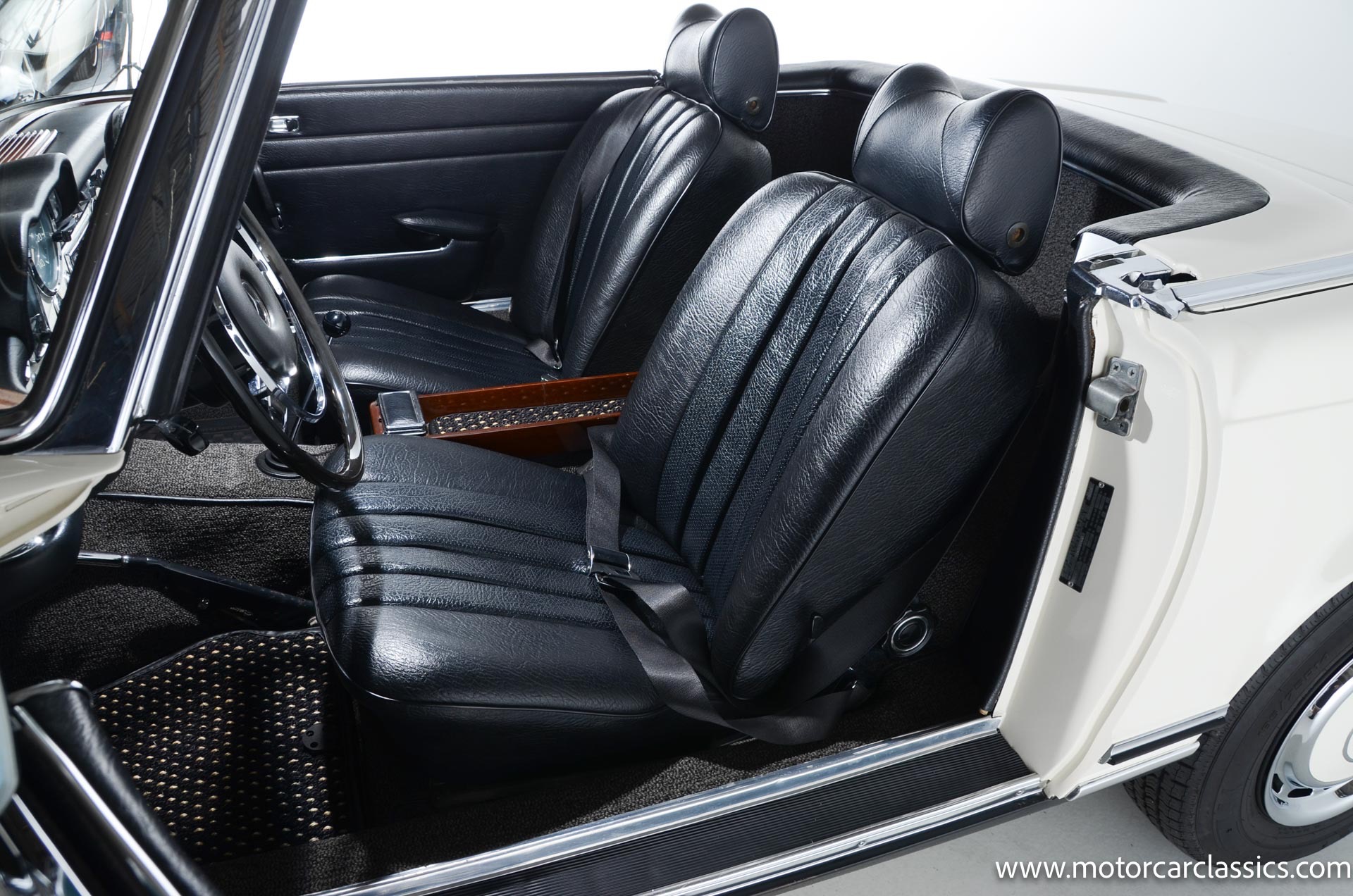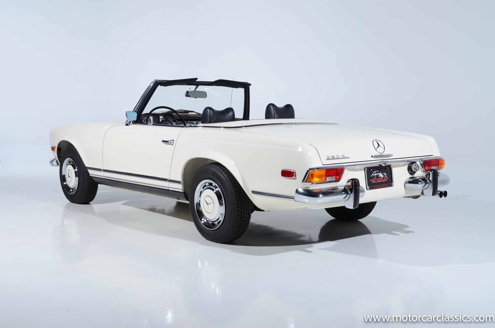 1970 Mercedes-Benz 280SL for sale! Motorcar Classics is pleased to present this stunning 280SL presented in refinished White (DB 050) with Black MB-Tex vinyl and matching carpets. This Mercedes was refurbished by Gus Kidonakis of Beverly Hill Motors in Houston, Texas prior to the seller's acquisition in a process that involved the body being stripped to bare metal, repaired and straightened, and epoxy-primed prior to being refinished in white with clear coat. The underside, engine compartment, and wheel wells were cleaned, repaired, and stone-guarded prior to painting and the rocker panels were painted black. The token spot welds are retained as well as the notches inside both front fenders. The air-conditioning drain was redirected to exit behind the front passenger tire.