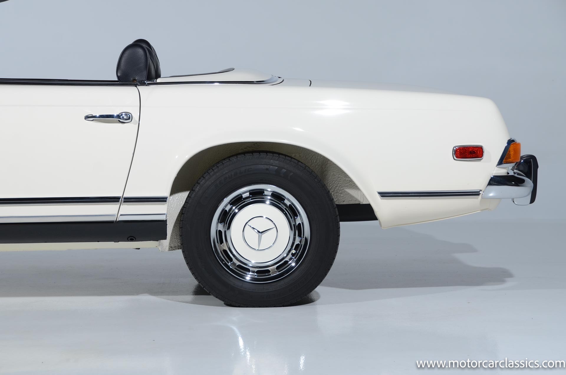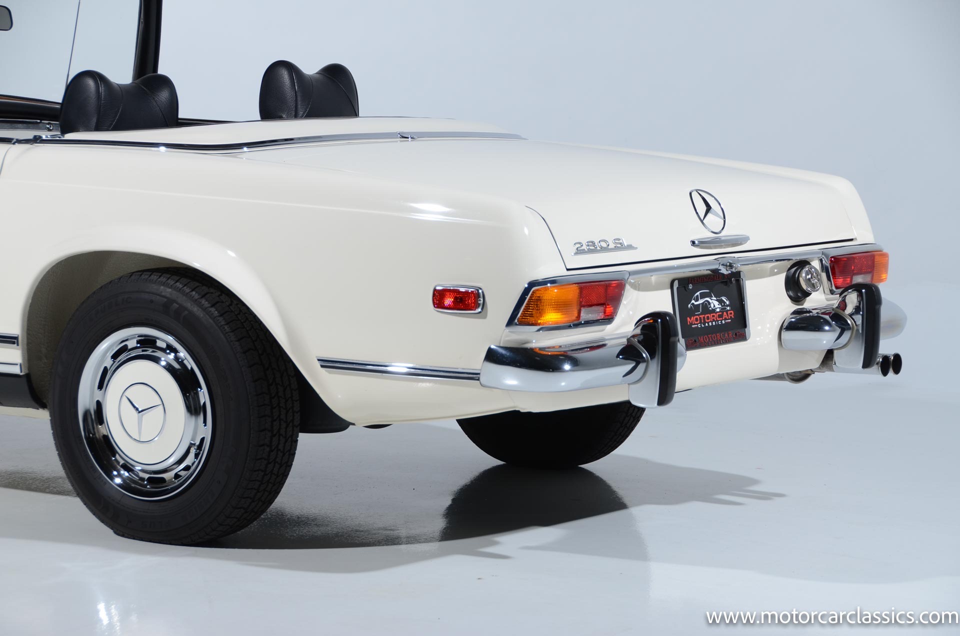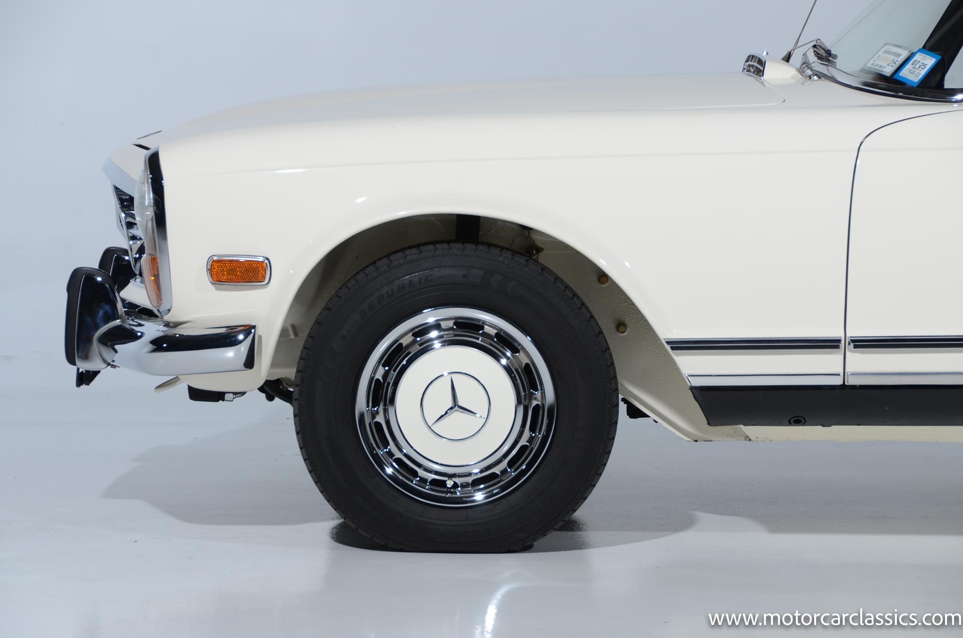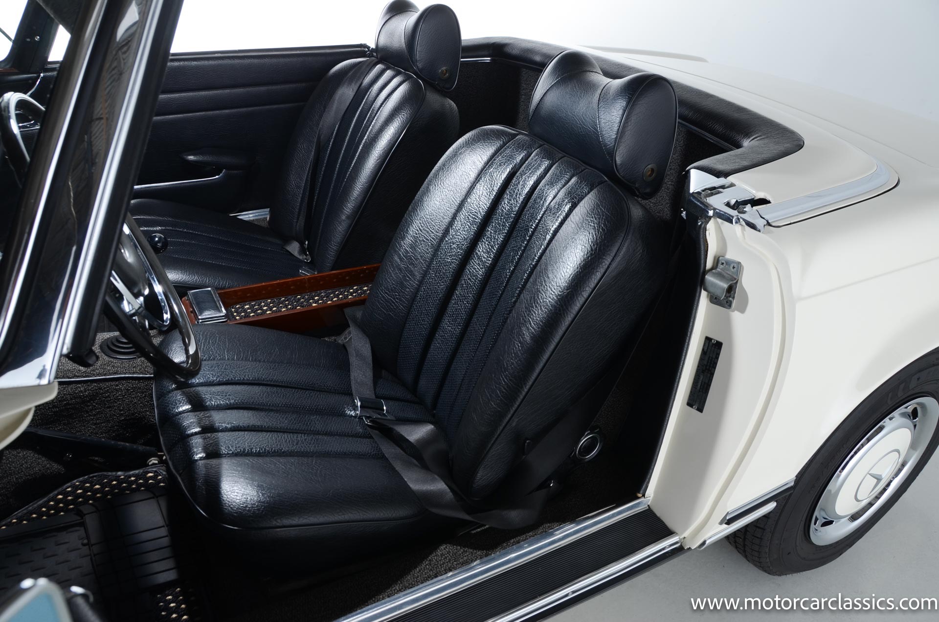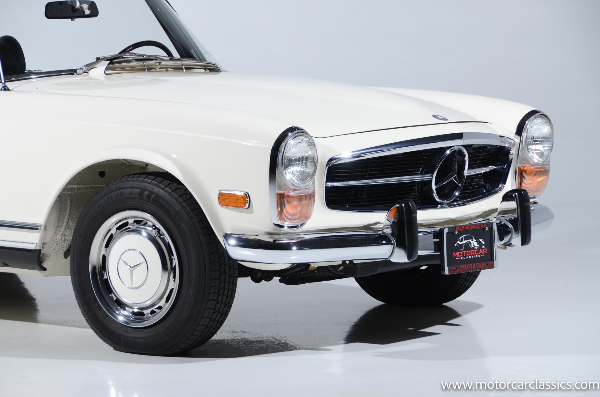 1970 Mercedes-Benz 280SL for sale! Motorcar Classics is pleased to present this stunning 280SL presented in refinished White (DB 050) with Black MB-Tex vinyl and matching carpets. This Mercedes was refurbished by Gus Kidonakis of Beverly Hill Motors in Houston, Texas prior to the seller's acquisition in a process that involved the body being stripped to bare metal, repaired and straightened, and epoxy-primed prior to being refinished in white with clear coat. The underside, engine compartment, and wheel wells were cleaned, repaired, and stone-guarded prior to painting and the rocker panels were painted black. The token spot welds are retained as well as the notches inside both front fenders. The air-conditioning drain was redirected to exit behind the front passenger tire.