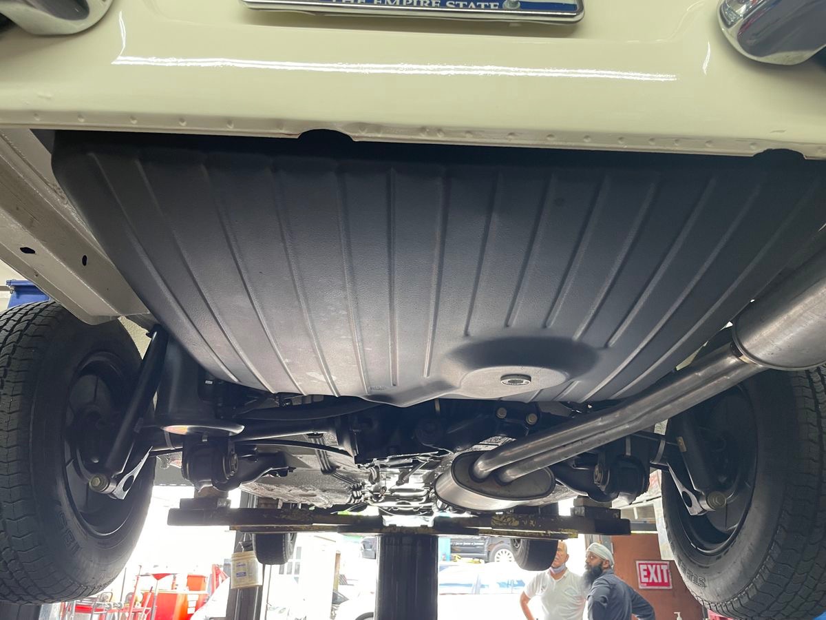 Power is sent to the rear wheels through a four-speed manual transmission. The driveshaft was rebuilt and balanced after the U-joints and center support were replaced. A stainless-steel exhaust system was installed, and the exhaust manifolds were ceramic coated. The original 3.92:1 axle was replaced with a rebuilt 3.27:1 unit to reduce RPMs at higher speeds. Manufacturer?s literature, a copy of the data card, and other documentation will accompany the car along with a blue California license plate last registered in 2004.