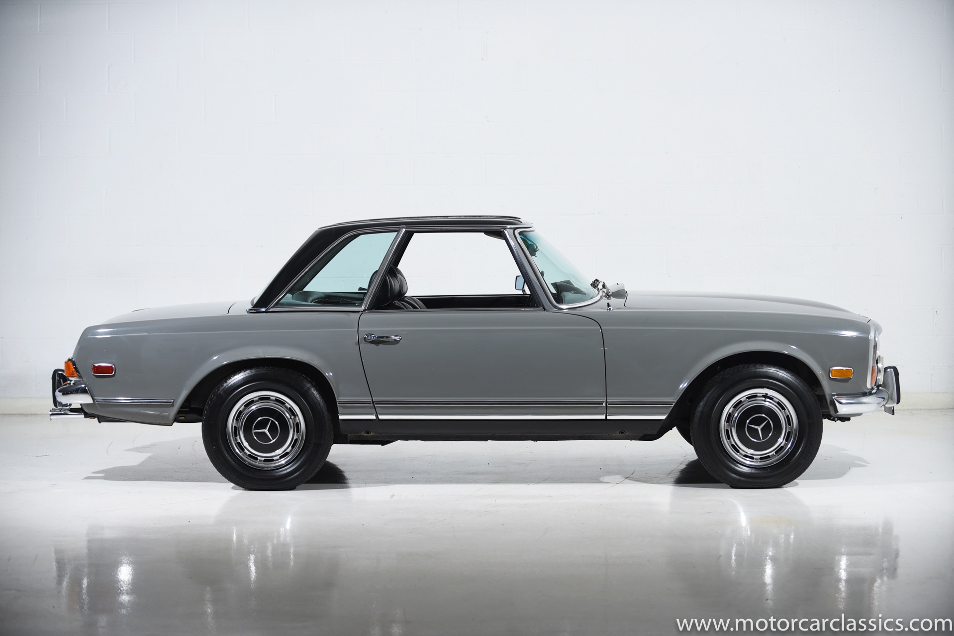 1971 Mercedes-Benz 280SL Roadster for sale. Motorcar Classics is proud to present this most impressive US-spec 1970 Mercedes 280SL Roadster featured in Graphite Grey with black MB Tex interior. It includes a Black factory hard top and canvas soft top. It retains the original Becker AM-FM radio. Our car has the desirable Mercedes 4-speed manual gearbox. Recently the car was sent to Mercedes Benz Classic Center where over $20,000 was spent in sorting and refreshing the car to make it drive as it did in 1970. It is arguably among the best sorted and best driving 280SL models that we have had the pleasure to offer. It is truly a delight to drive. This is the kind of car you want to own and it is ready to to take pride of place in your garage.