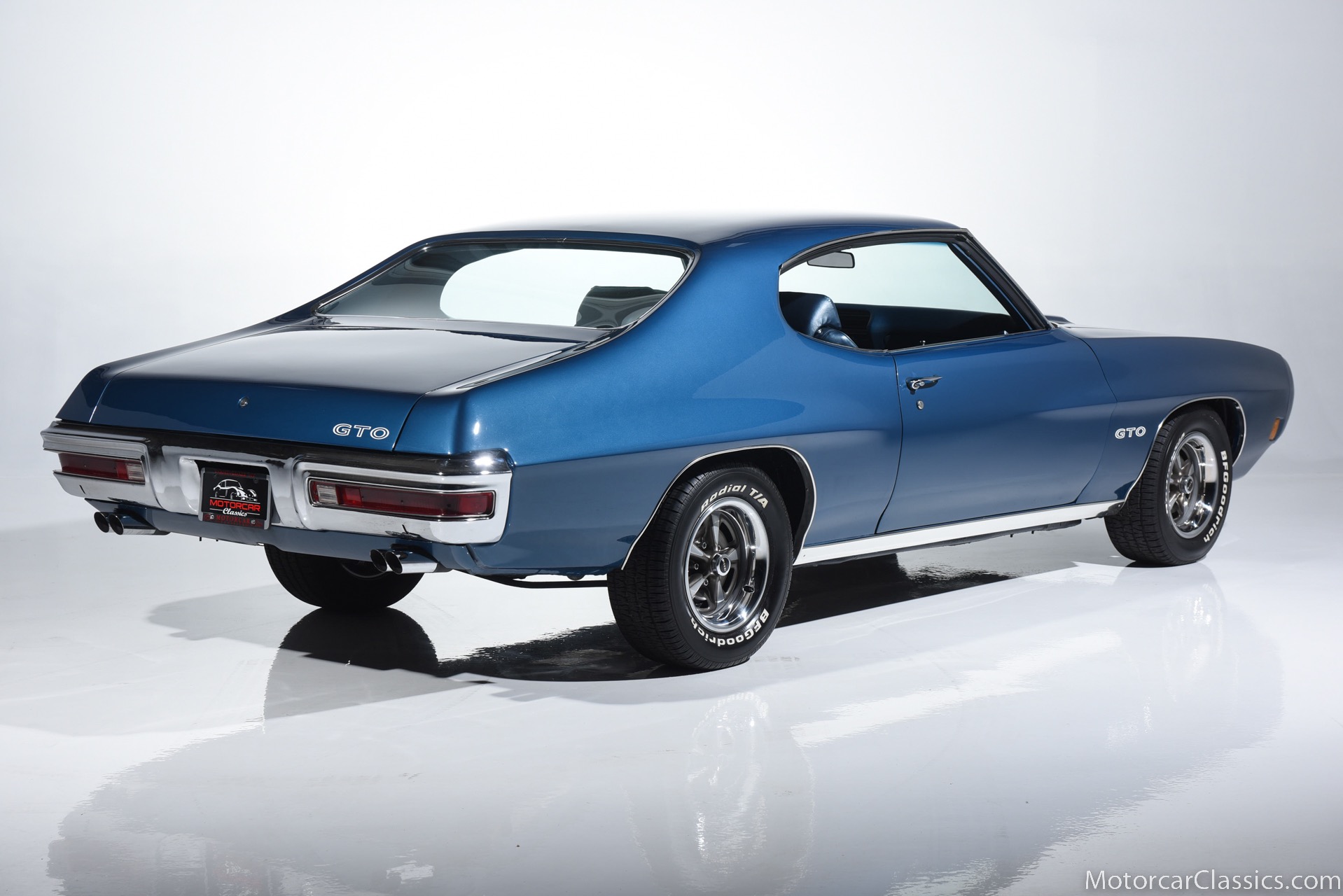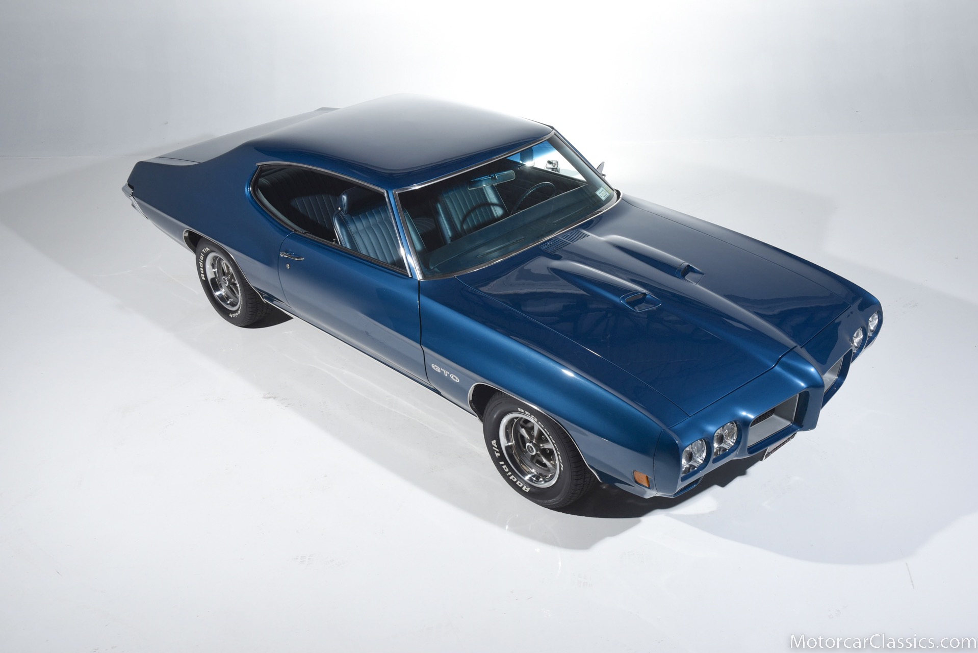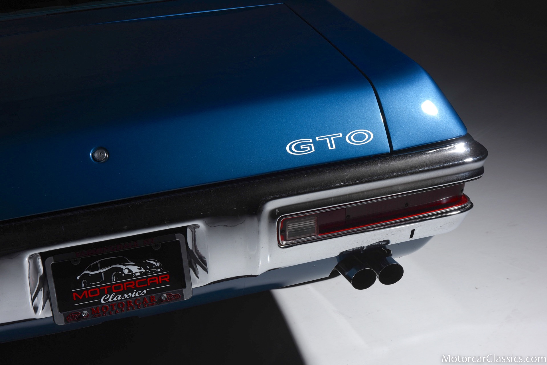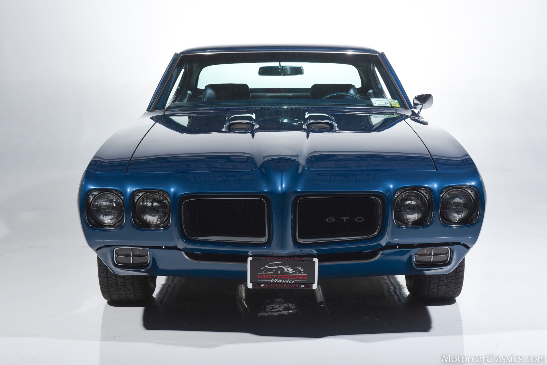 1970 Pontiac GTO for sale! Motorcar Classics is proud to present this stunning 1970 Pontiac GTO featured in Atoll Blue metallic (Code 28) and matching blue interior with bucket seats and a console. This GTO is restored to factory specs as documented in the included PHS report and has been upgraded with desirable Vintage AC. This car is powered by the 400CI WT V8 with the 4-speed manual close ratio transmission and 3.55 rear.