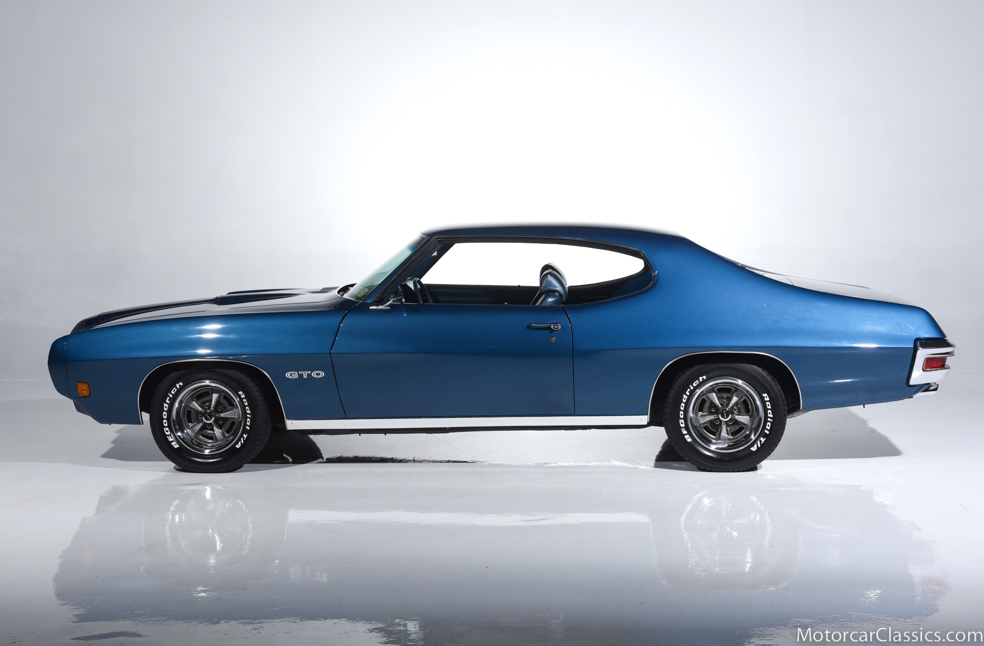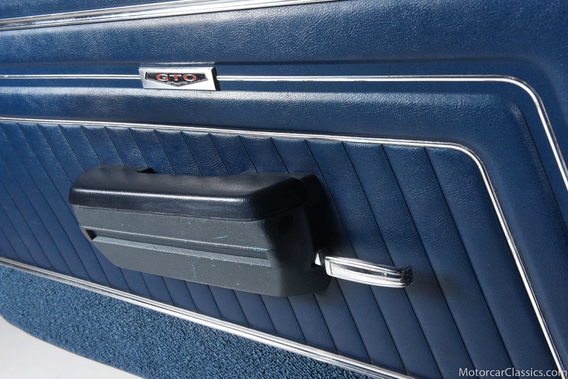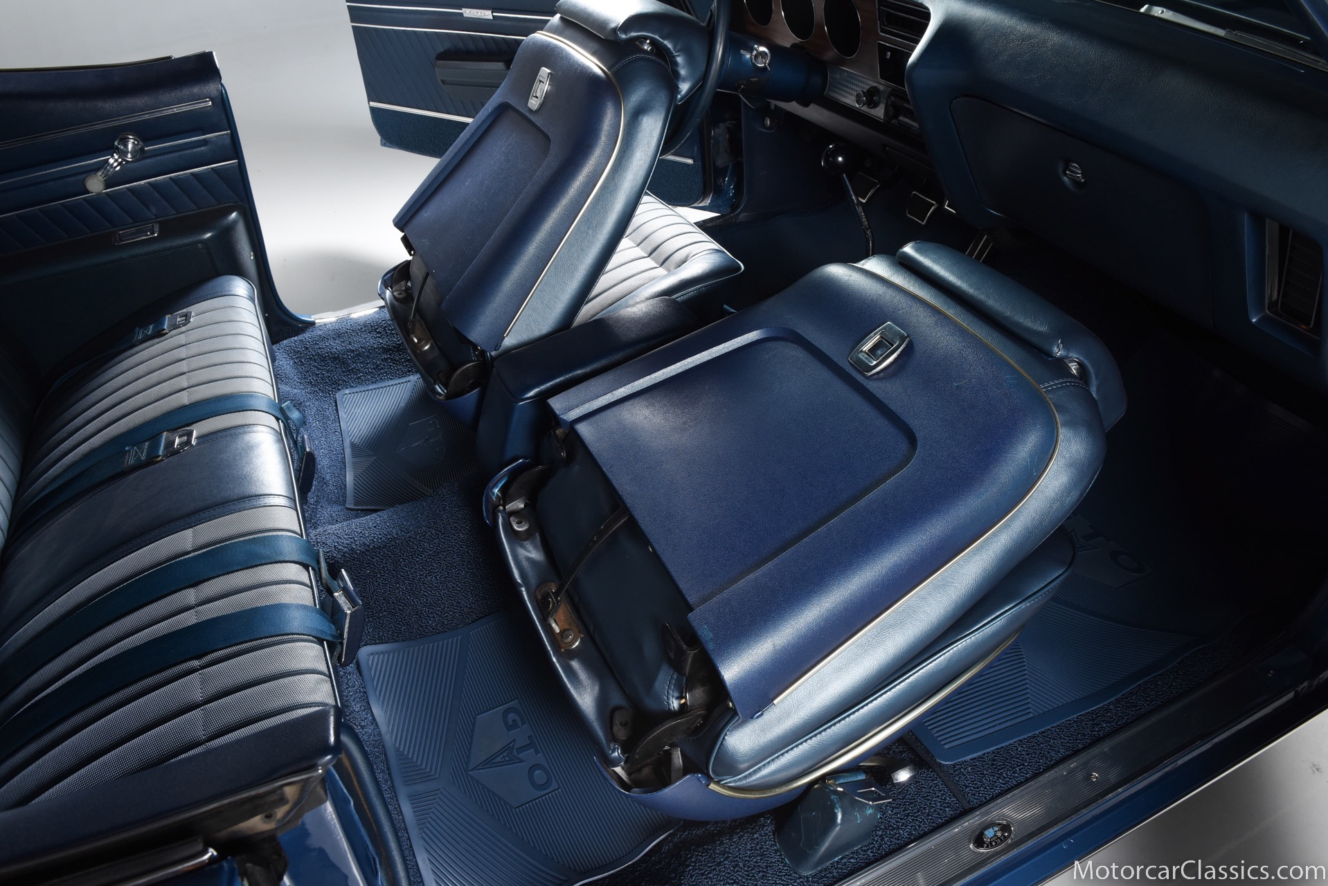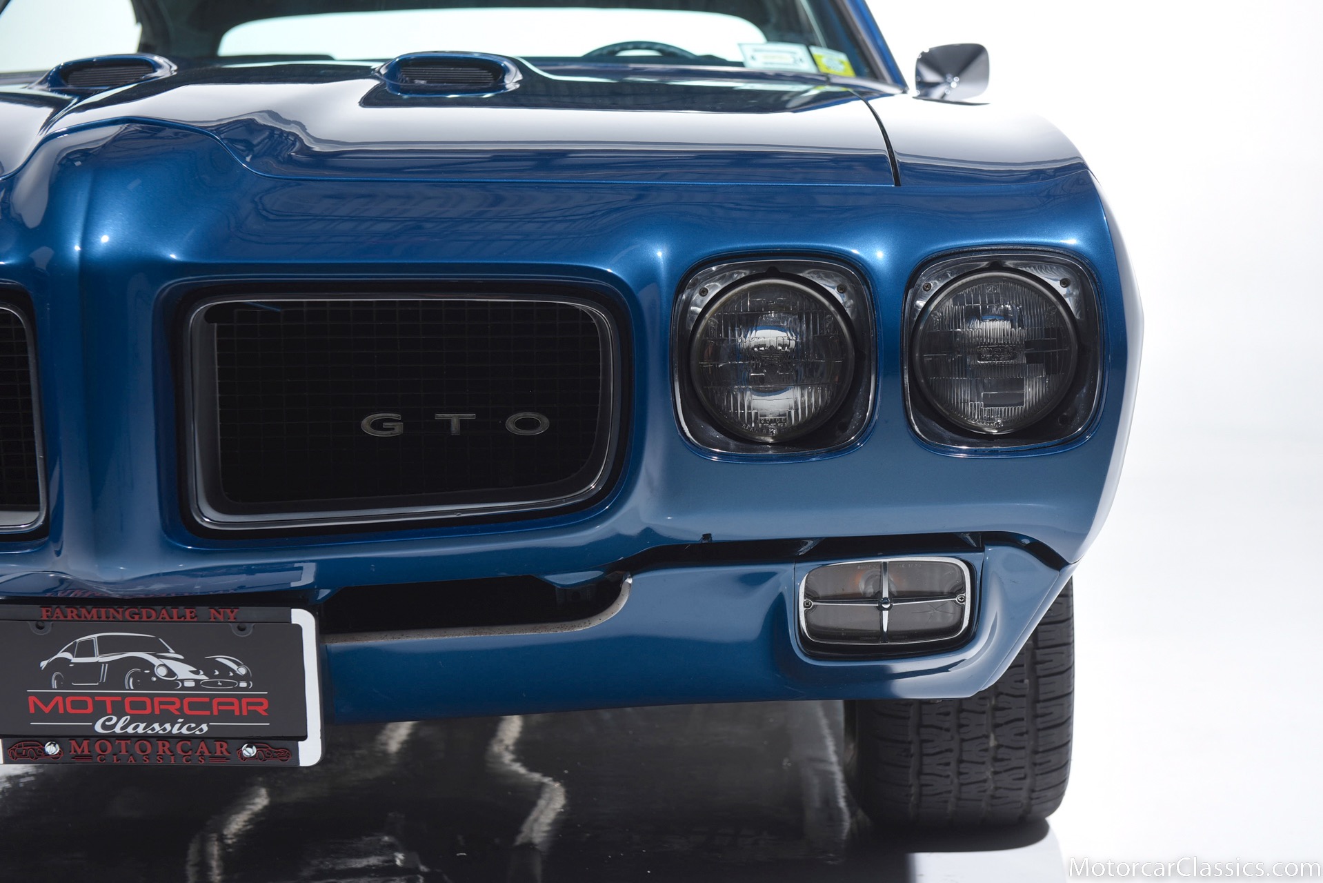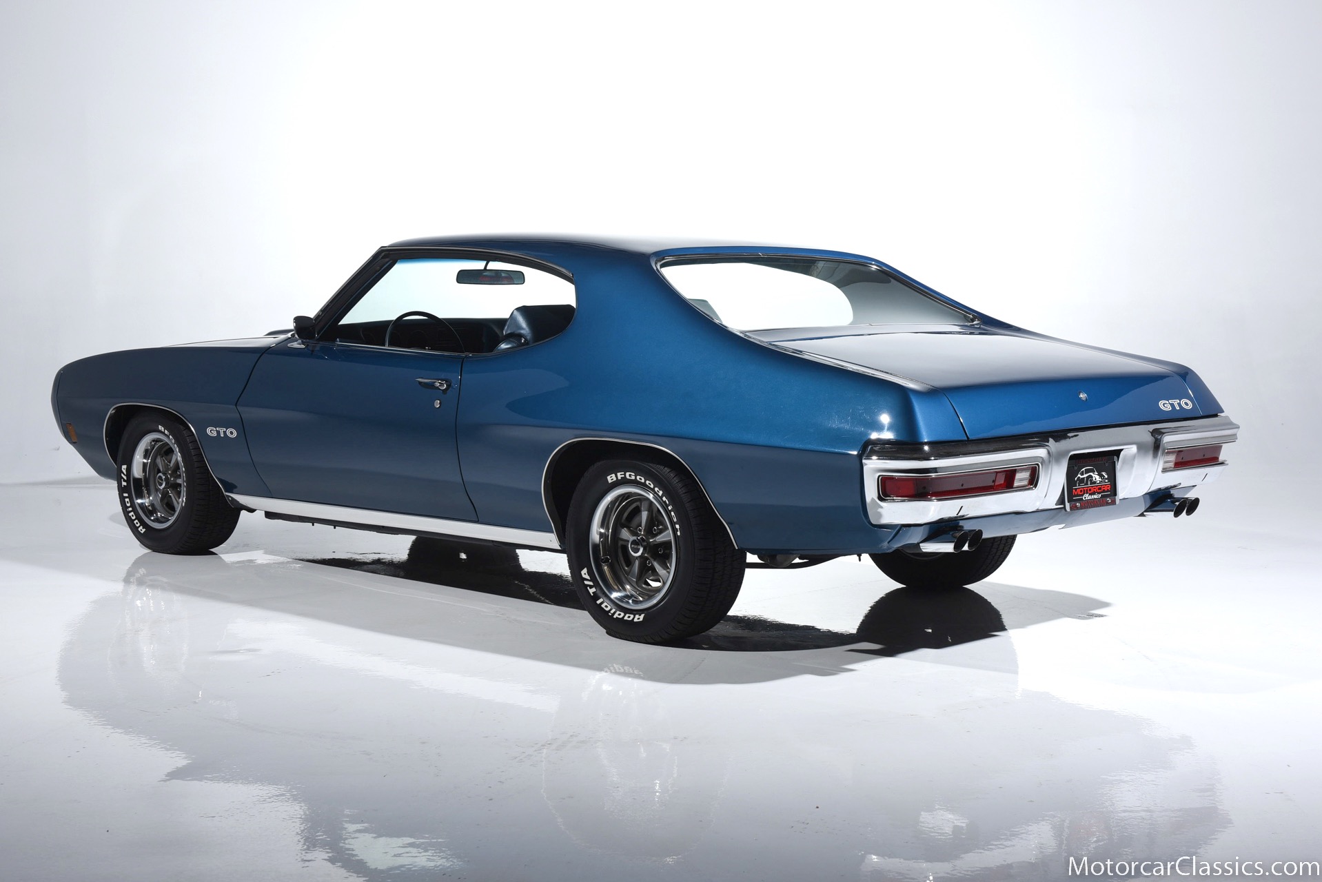 1970 Pontiac GTO for sale! Motorcar Classics is proud to present this stunning 1970 Pontiac GTO featured in Atoll Blue metallic (Code 28) and matching blue interior with bucket seats and a console. This GTO is restored to factory specs as documented in the included PHS report and has been upgraded with desirable Vintage AC. This car is powered by the 400CI WT V8 with the 4-speed manual close ratio transmission and 3.55 rear.