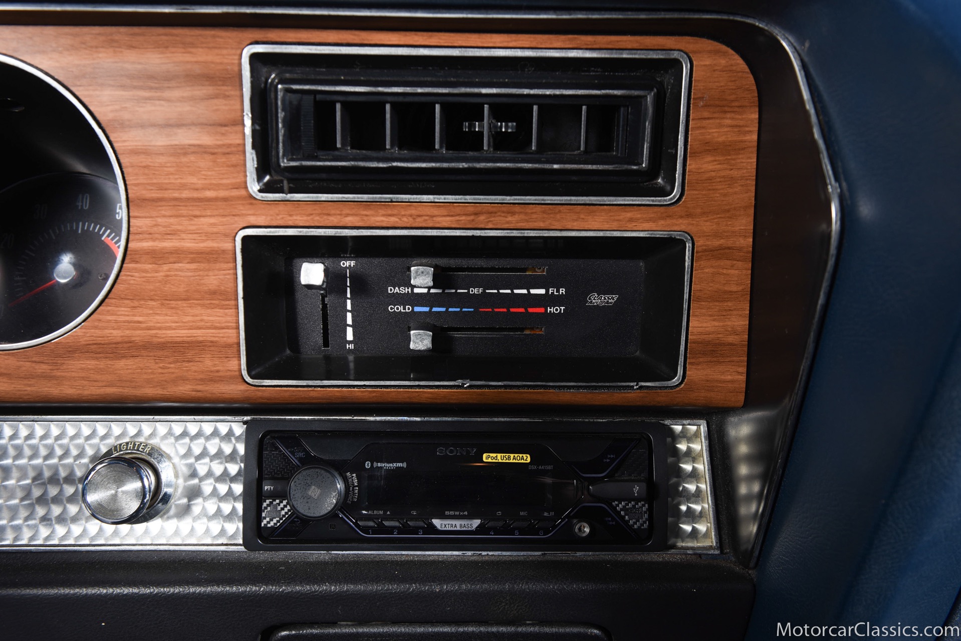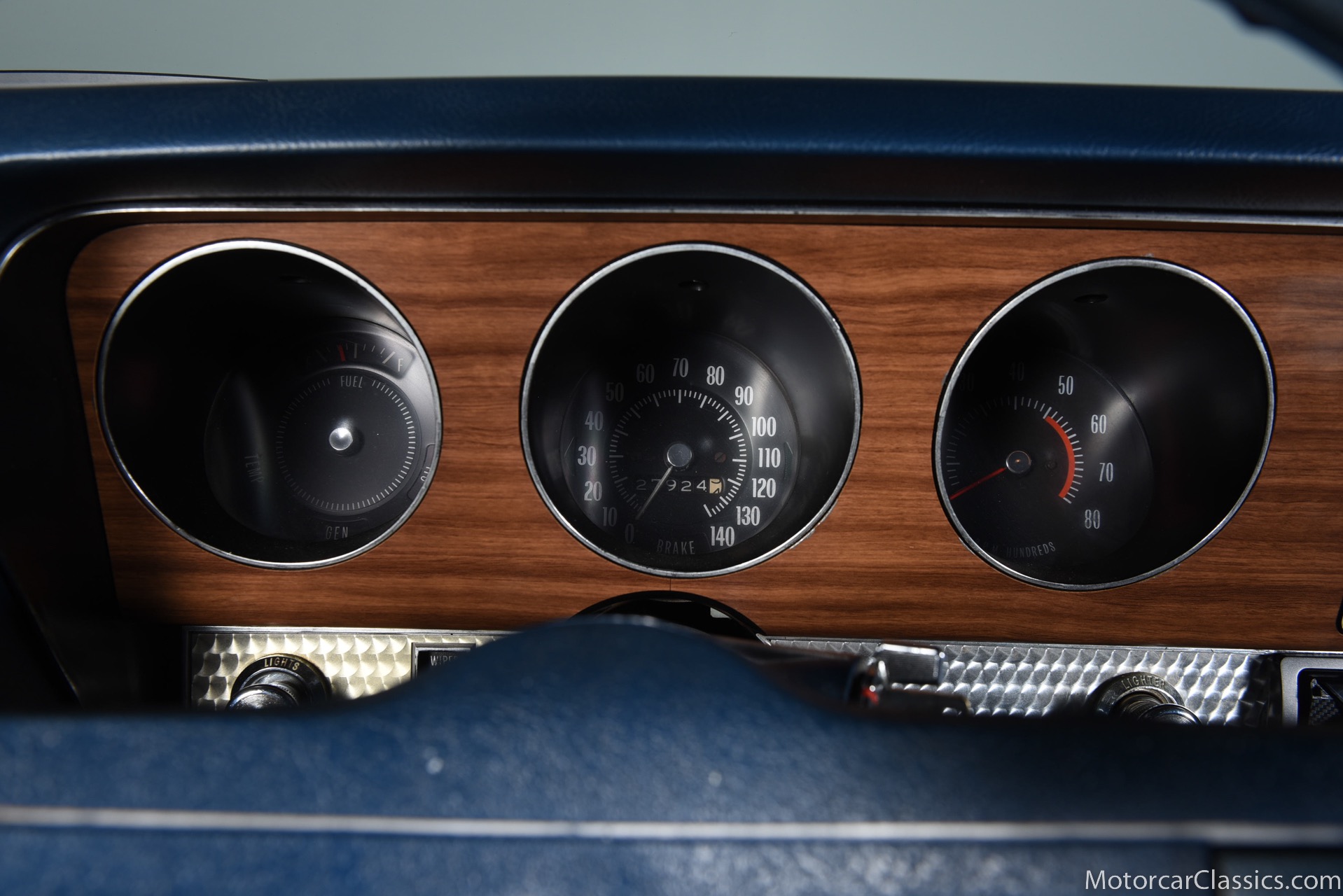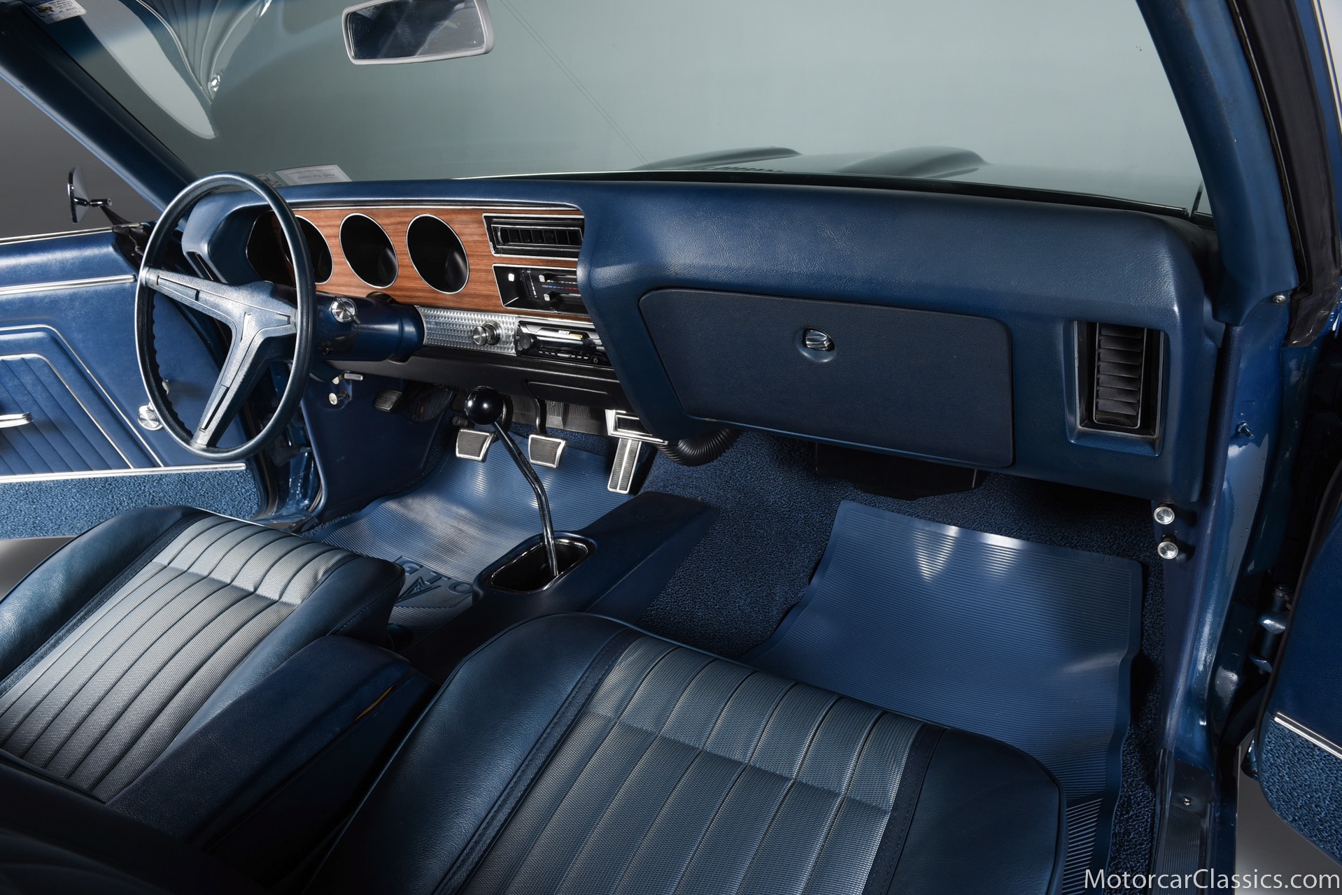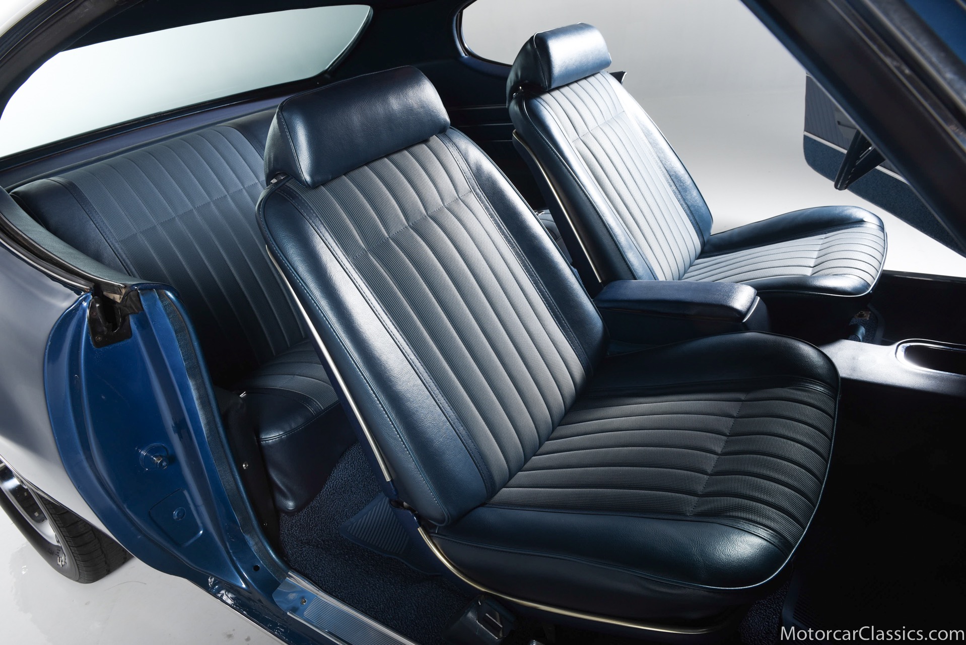 This 1970 GTO is a rust-free car that is straight from every angle. All the gaps are square and flush. The door handles and mirrors have been replaced. The back bumper is original and in good condition. The taillight lenses look new. The weather stripping around the doors and the window seals have been replaced. The front windshield has been replaced. All the tinted glass is in good shape. It sits on a set of 15X7 Pontiac Rally Il wheels with new PMD center caps and correct lug nuts and a set of 245/60/15 BFG T/A radial tires. The original blue interior was completely re-done. The door panels, seat upholstery and cushions, carpet and headliner have been replaced. The dash was recovered. It has factory tach in the dash, new sill plates, AM/FM radio, and factory seat belts (front and rear).