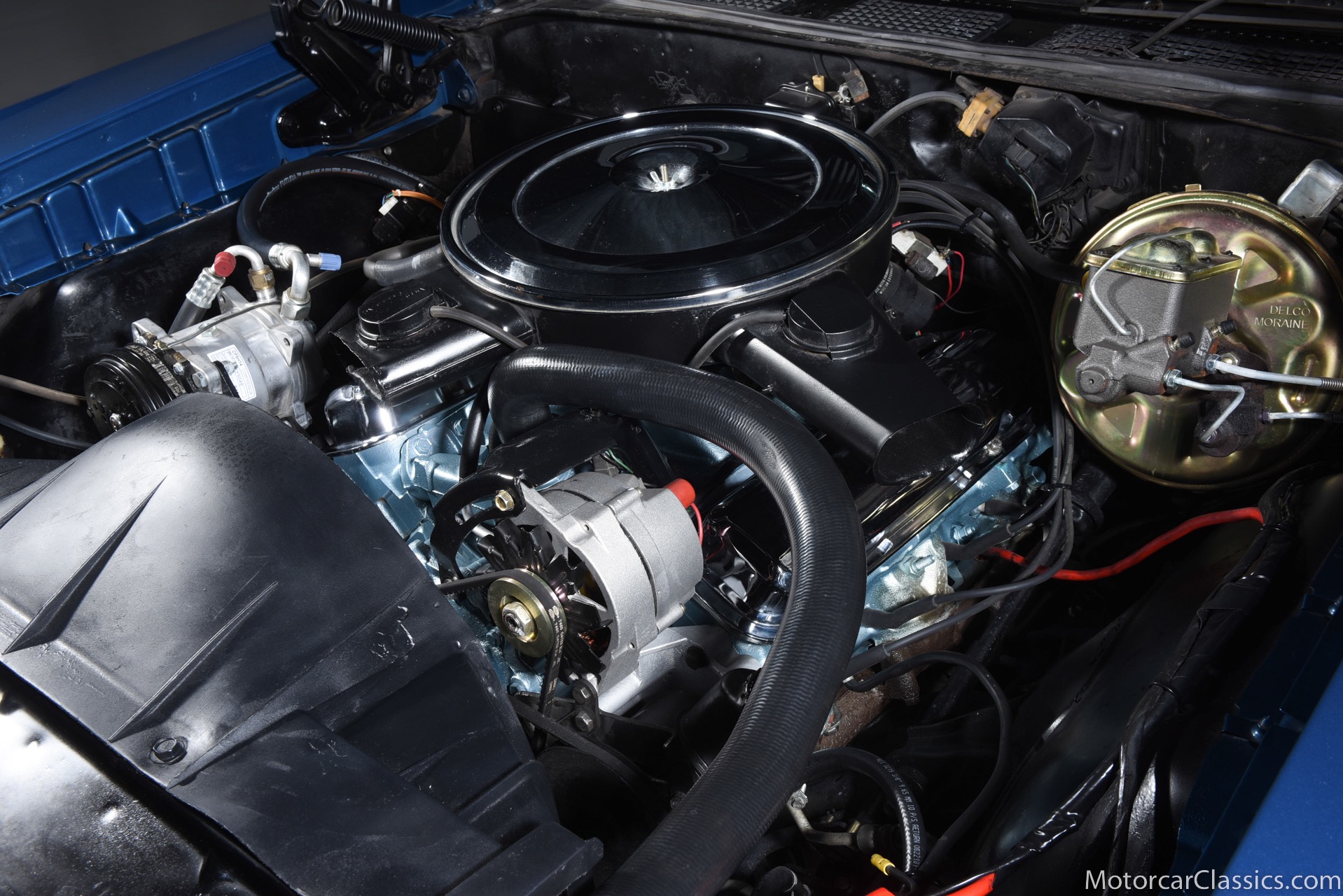 The engine compartment is detailed and correct with its numbers matching WT code 400CI/350 HP motor that has been completely rebuilt. It has factory chrome valve covers, GM hoses, factory manifolds, cadmium plated Delco Moraine brake booster with new dual master cylinder, factory shroud a newer 4-core radiator. The Vintage A/C and heat installation are fully documented and the A/C is blowing COLD!