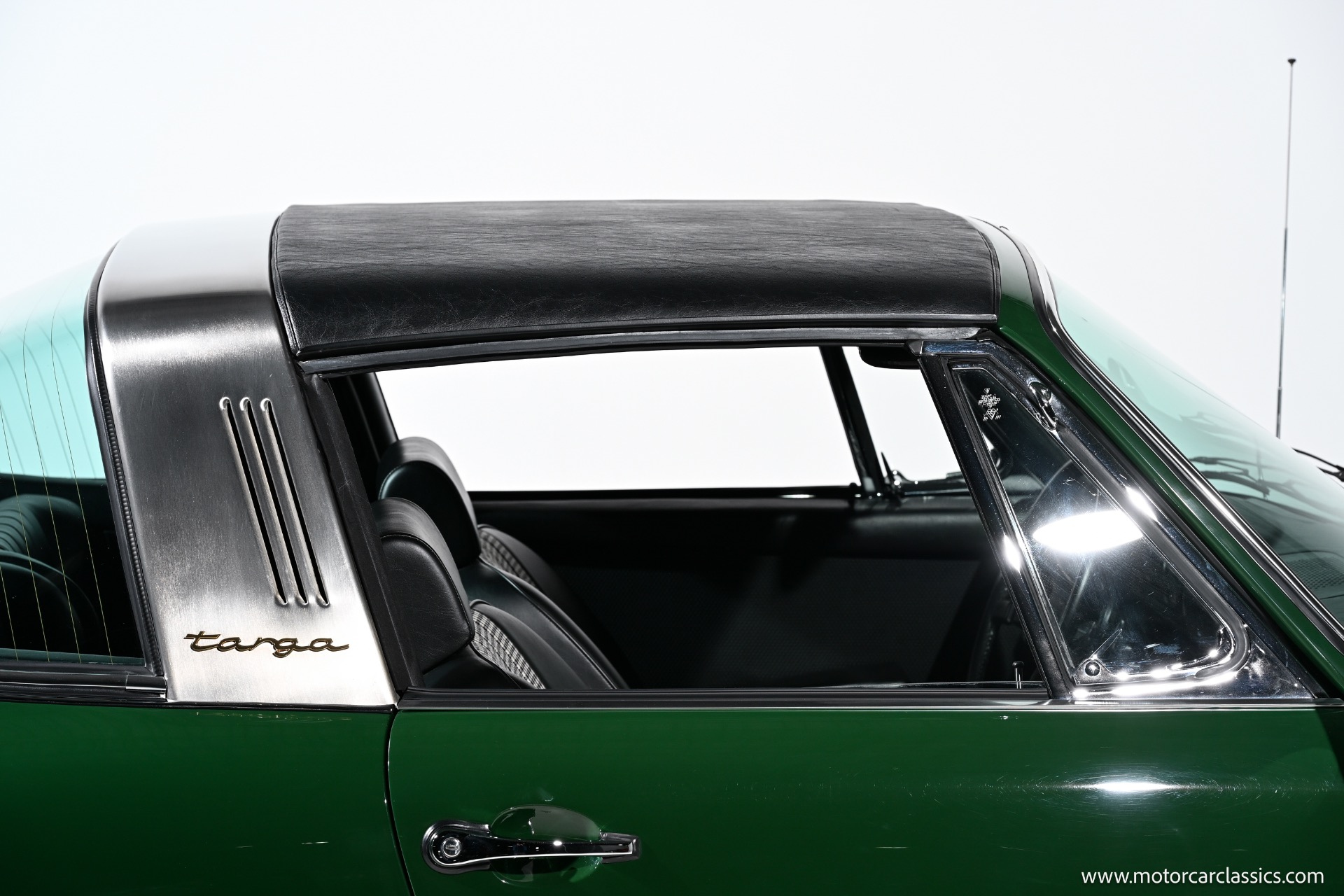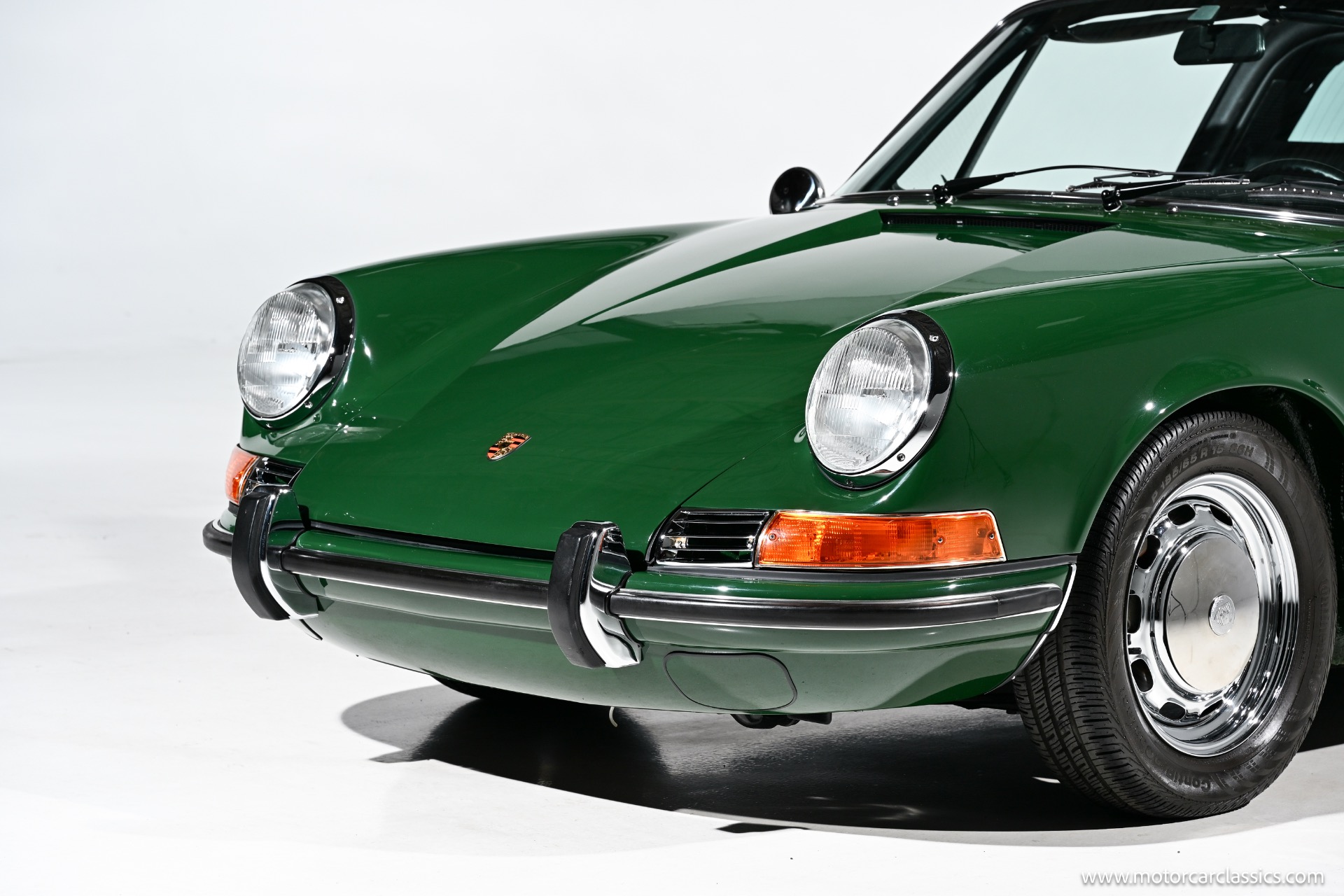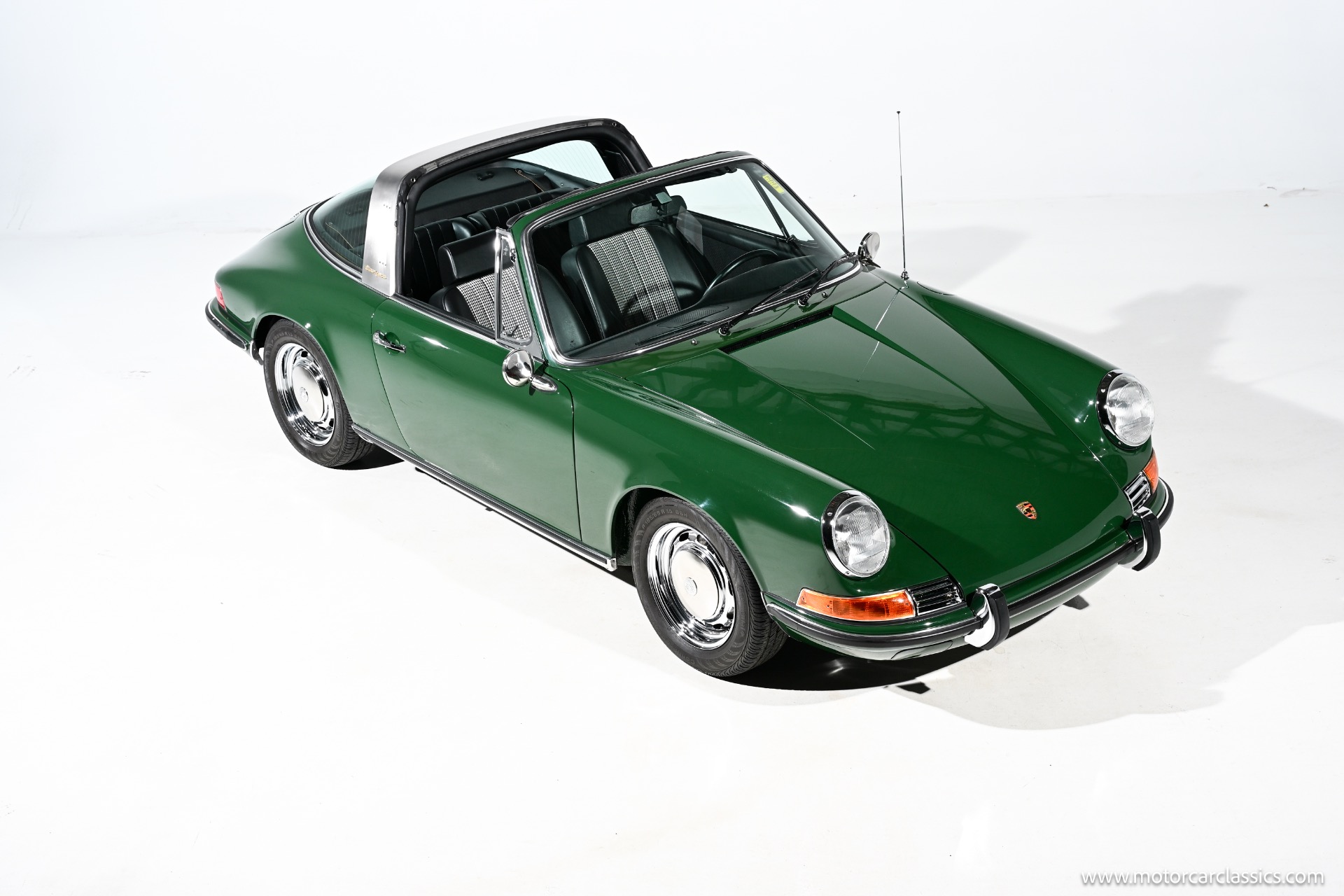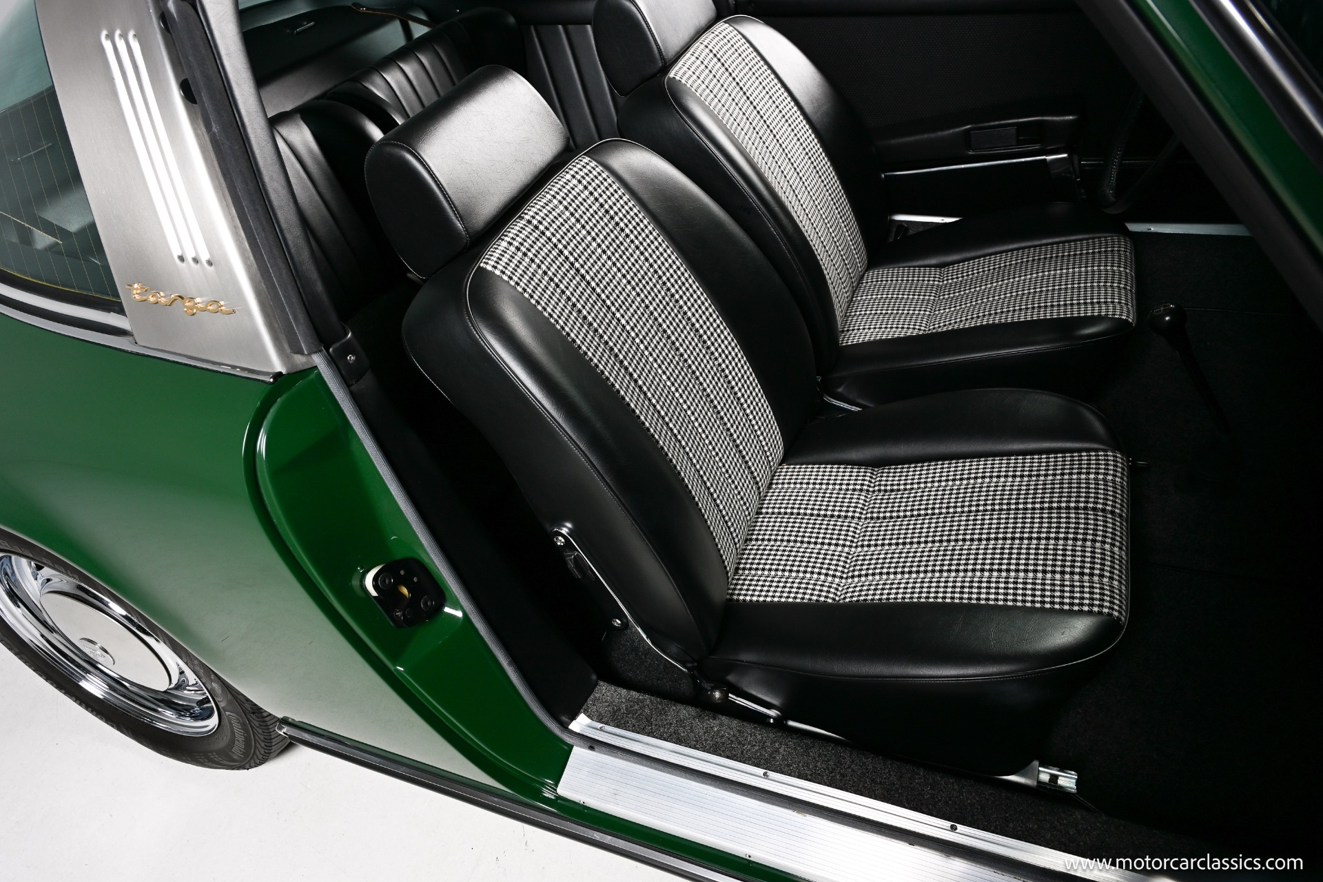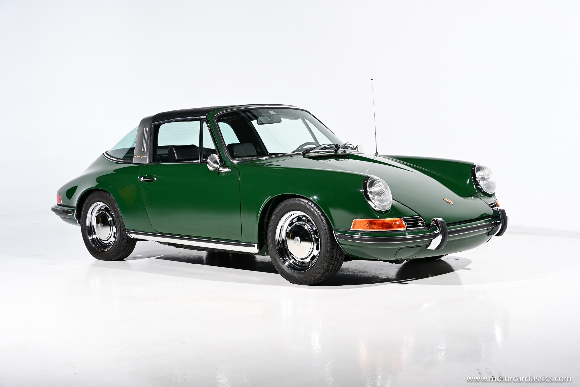 1970 Porsche 911 Targa for sale! This 1970 Porsche 911T Targa is a beautifully restored, matching-numbers example of the classic 2.2-liter C-series 911, presented in the iconic open-roof Targa configuration that has become one of the most recognizable shapes in Porsche history. Chassis 9110112447 retains its original 2.2-liter air-cooled flat-six (engine no. 6104222), delivering approximately 125 hp and 130 lb-ft of torque through a desirable five-speed manual transmission, embodying the responsive, mechanical character that made early long-hood 911s legendary among driving enthusiasts. Originally finished in Pastel Blue over Tan leatherette per factory documentation, the car was taken down to bare metal and restored to a concours standard by the respected Porsche experts at Black Forest Restorations between December 2006 and July 2007, and is now finished in rich Irish Green over a period-correct black interior trimmed with classic houndstooth fabric, a combination that perfectly suits the era and the model's understated sporting character. The comprehensive rotisserie restoration addressed the mechanicals, suspension, undercarriage, bodywork, interior, and chrome plating, resulting in a crisp, highly detailed presentation that reflects careful investment and expert workmanship.