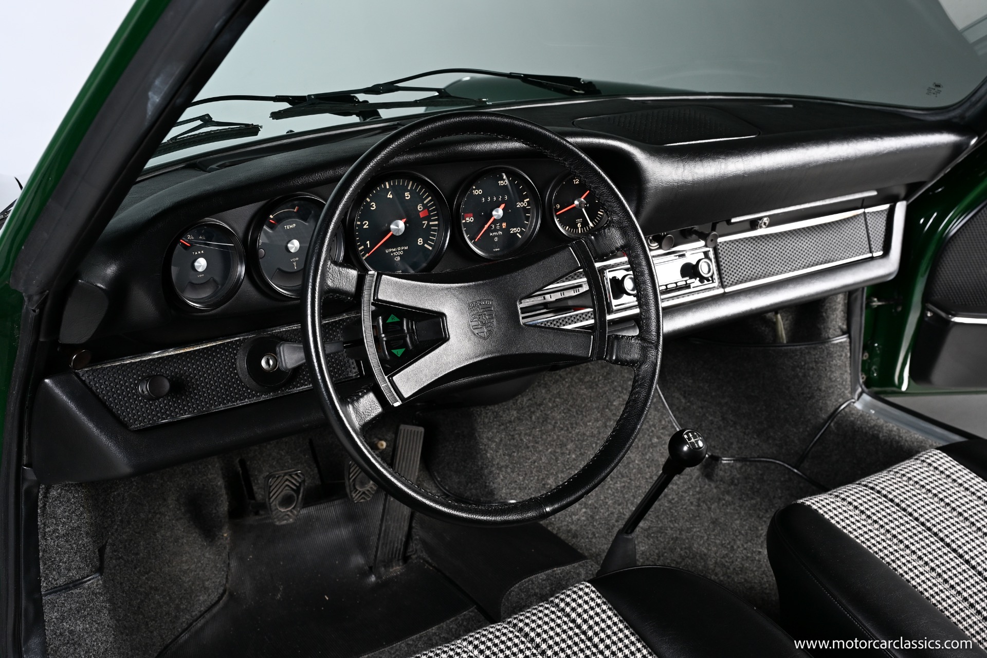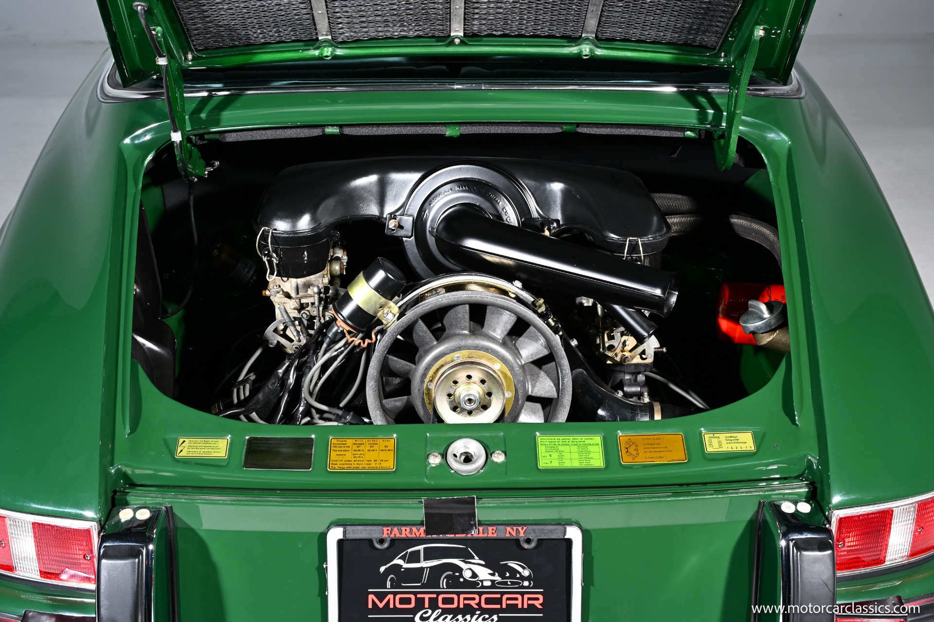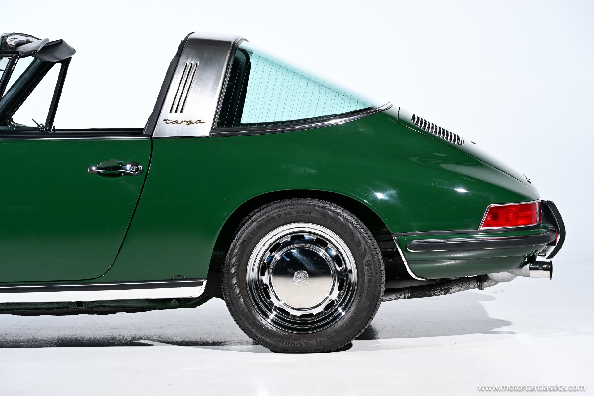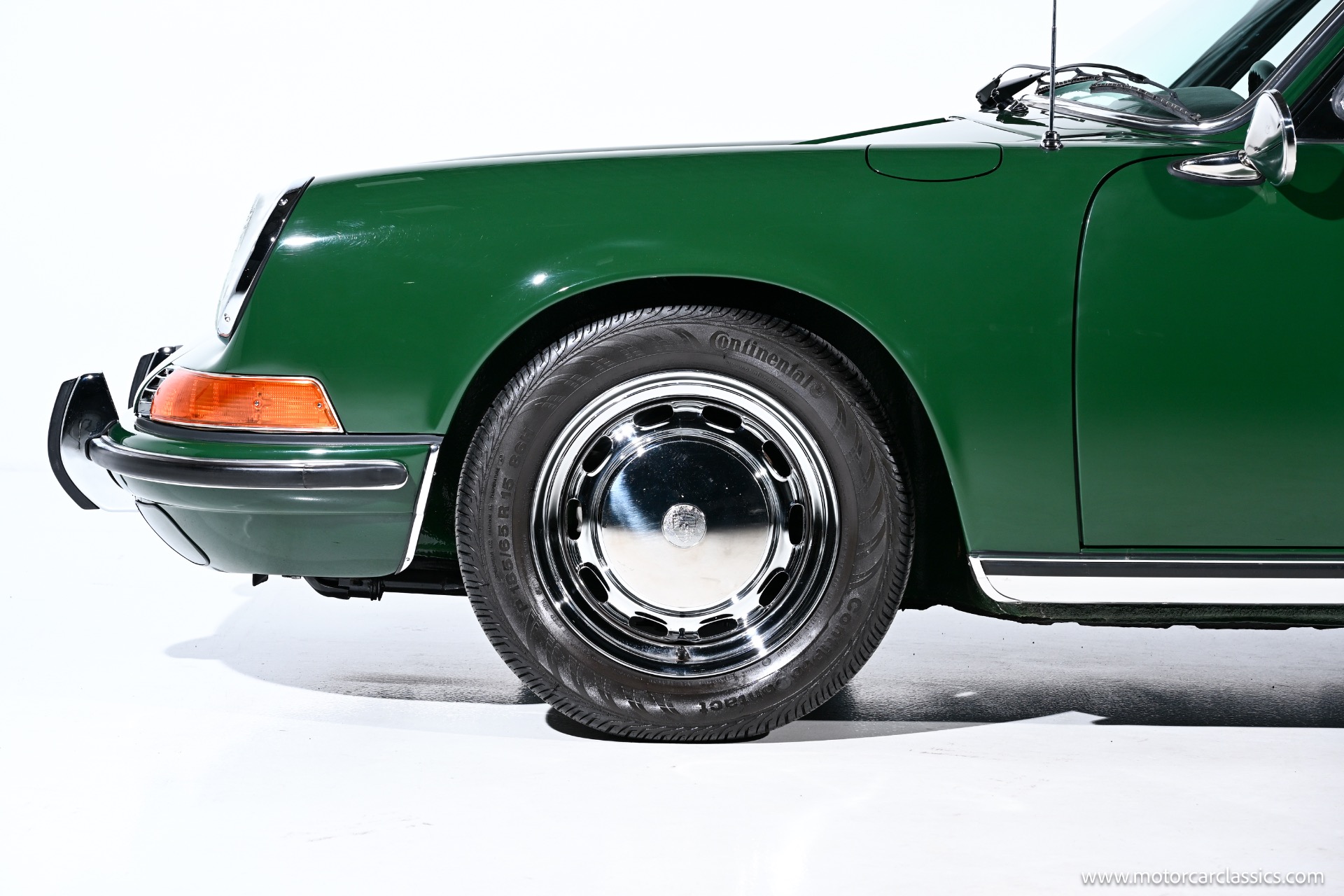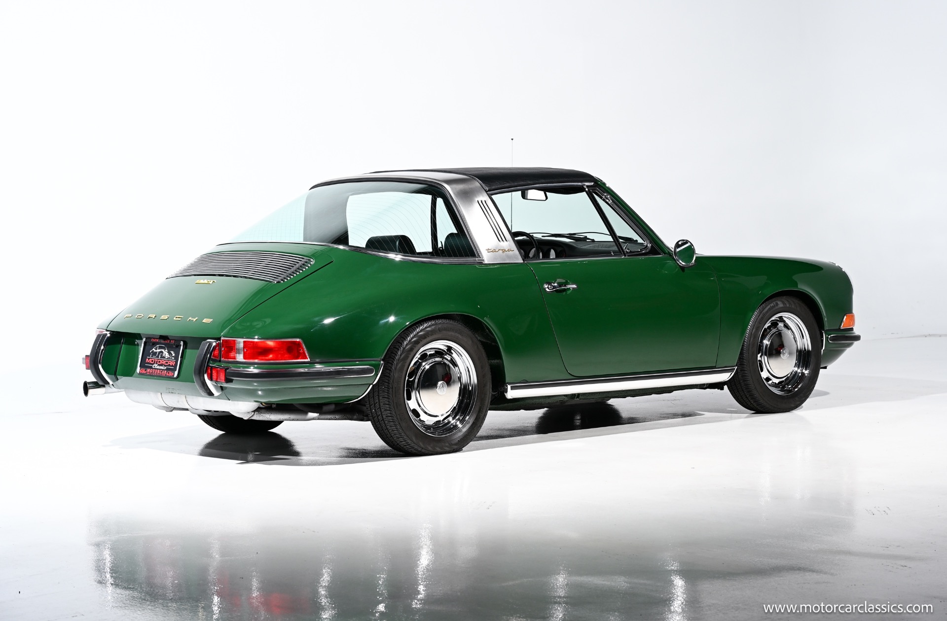 1970 Porsche 911 Targa for sale! This 1970 Porsche 911T Targa is a beautifully restored, matching-numbers example of the classic 2.2-liter C-series 911, presented in the iconic open-roof Targa configuration that has become one of the most recognizable shapes in Porsche history. Chassis 9110112447 retains its original 2.2-liter air-cooled flat-six (engine no. 6104222), delivering approximately 125 hp and 130 lb-ft of torque through a desirable five-speed manual transmission, embodying the responsive, mechanical character that made early long-hood 911s legendary among driving enthusiasts. Originally finished in Pastel Blue over Tan leatherette per factory documentation, the car was taken down to bare metal and restored to a concours standard by the respected Porsche experts at Black Forest Restorations between December 2006 and July 2007, and is now finished in rich Irish Green over a period-correct black interior trimmed with classic houndstooth fabric, a combination that perfectly suits the era and the model's understated sporting character. The comprehensive rotisserie restoration addressed the mechanicals, suspension, undercarriage, bodywork, interior, and chrome plating, resulting in a crisp, highly detailed presentation that reflects careful investment and expert workmanship.