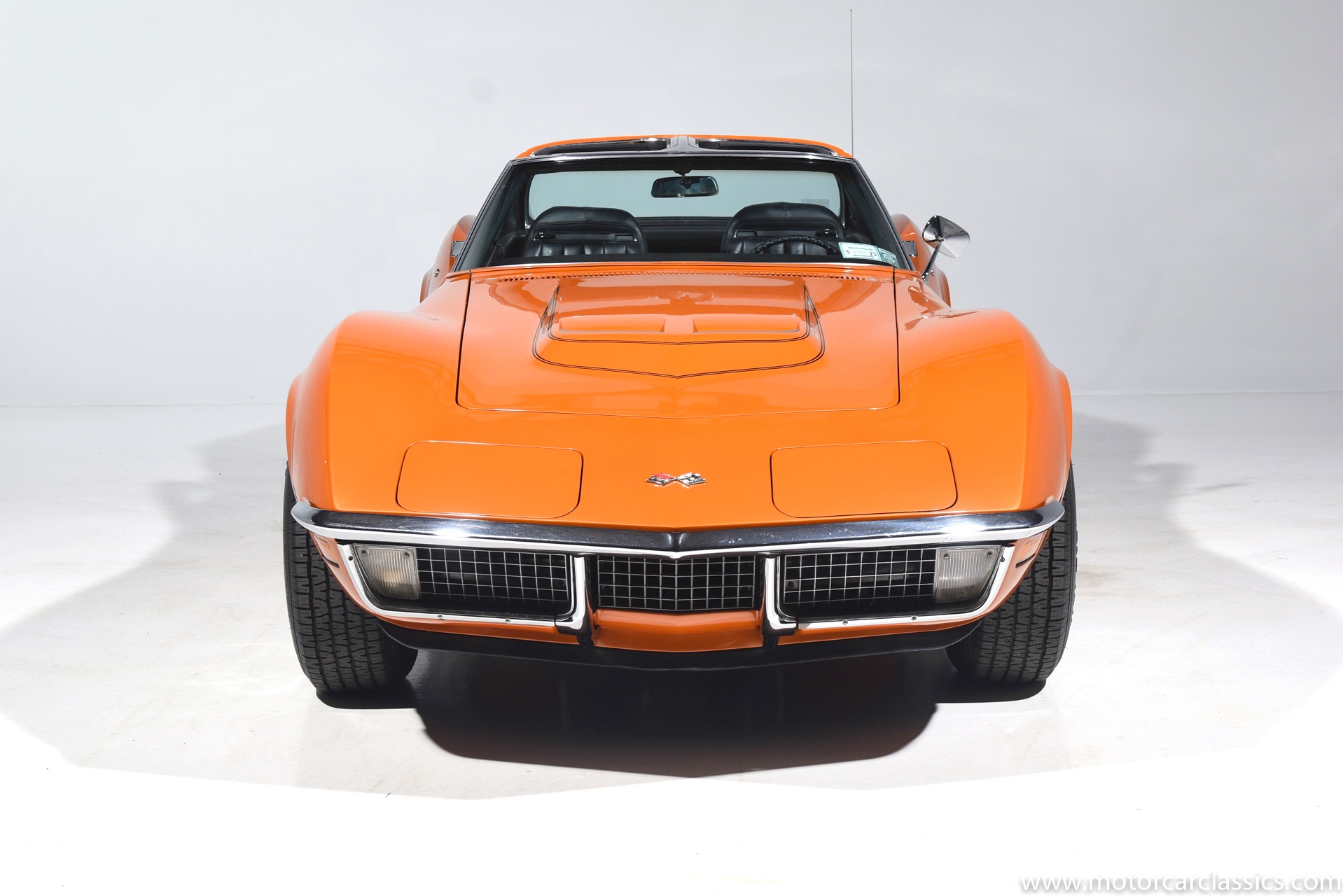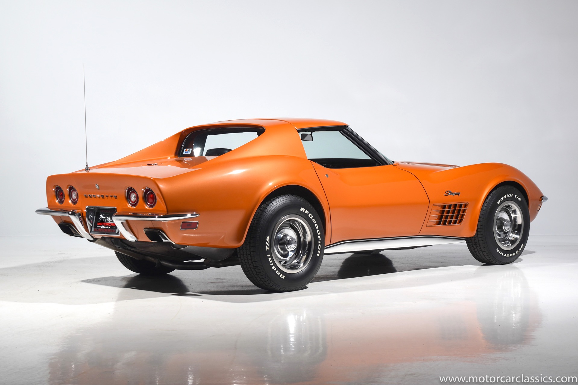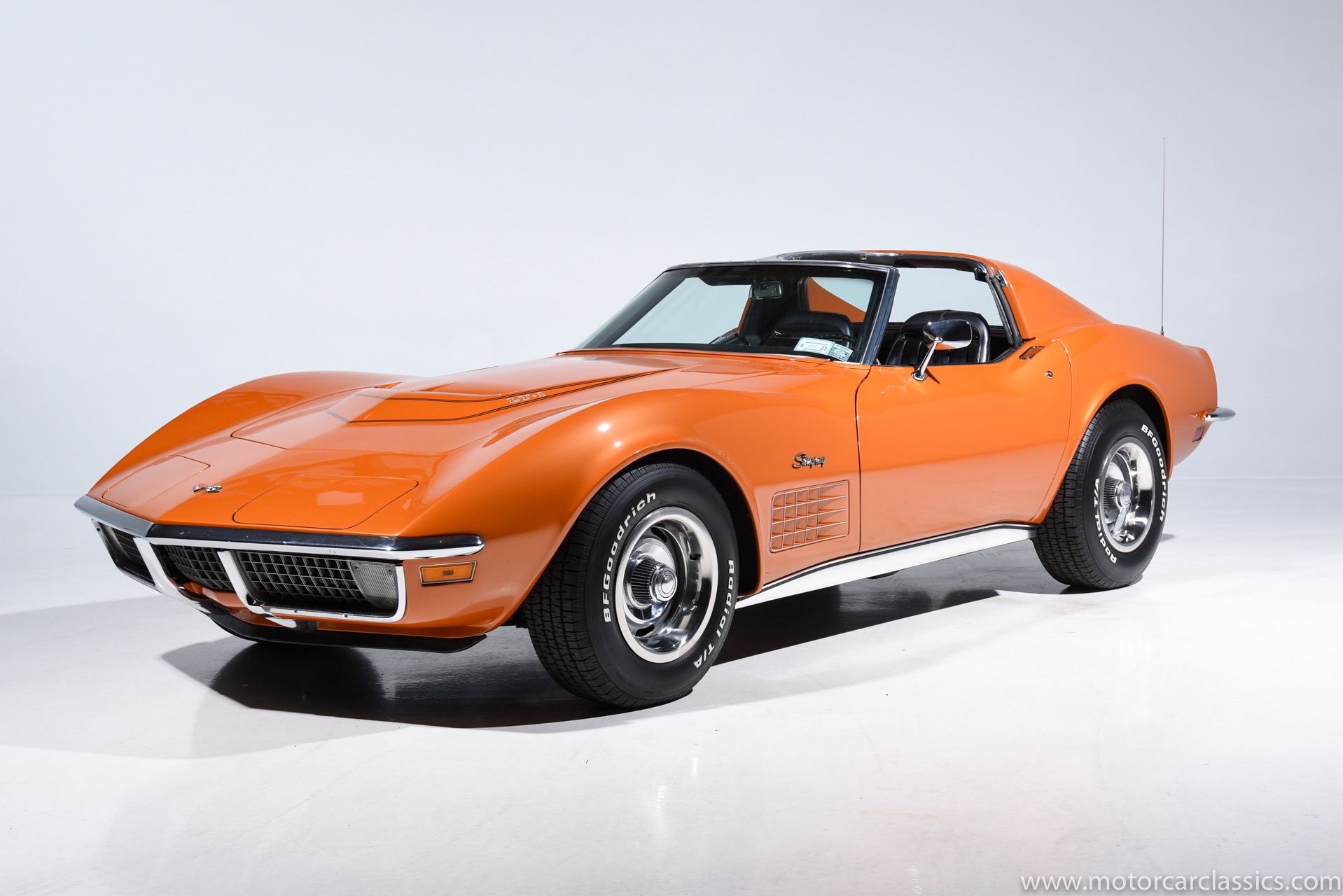 1971 Chevrolet Corvette LT-1 for sale! Motorcar Classics is proud to present this stunning 1971 Chevrolet Corvette LT-1 T-Top Coupe featured in (#937) Ontario Orange with (#403) black leather trim. This Corvette was built on January 12, 1971 and it has been fully and authentically restored to its factory original condition about 8 years ago. This LT-1 is in the C3 Registry and is mentioned in other articles online sufficiently to believe that the indicated 81,098 miles could be original. The LT-1 features Chevrolet's 350CI V8 rated at 330HP with a M21 4-speed close ratio transmission. The only other factory option reported in the Registry is a rear defroster. This Corvette has all of its original components with matching numbers and unique features appropriate to a genuine LT-1. The early C3 with chrome bumpers front and rear is the most attractive, and the LT-1 is among the most desirable of all Corvettes. This is a superb example.