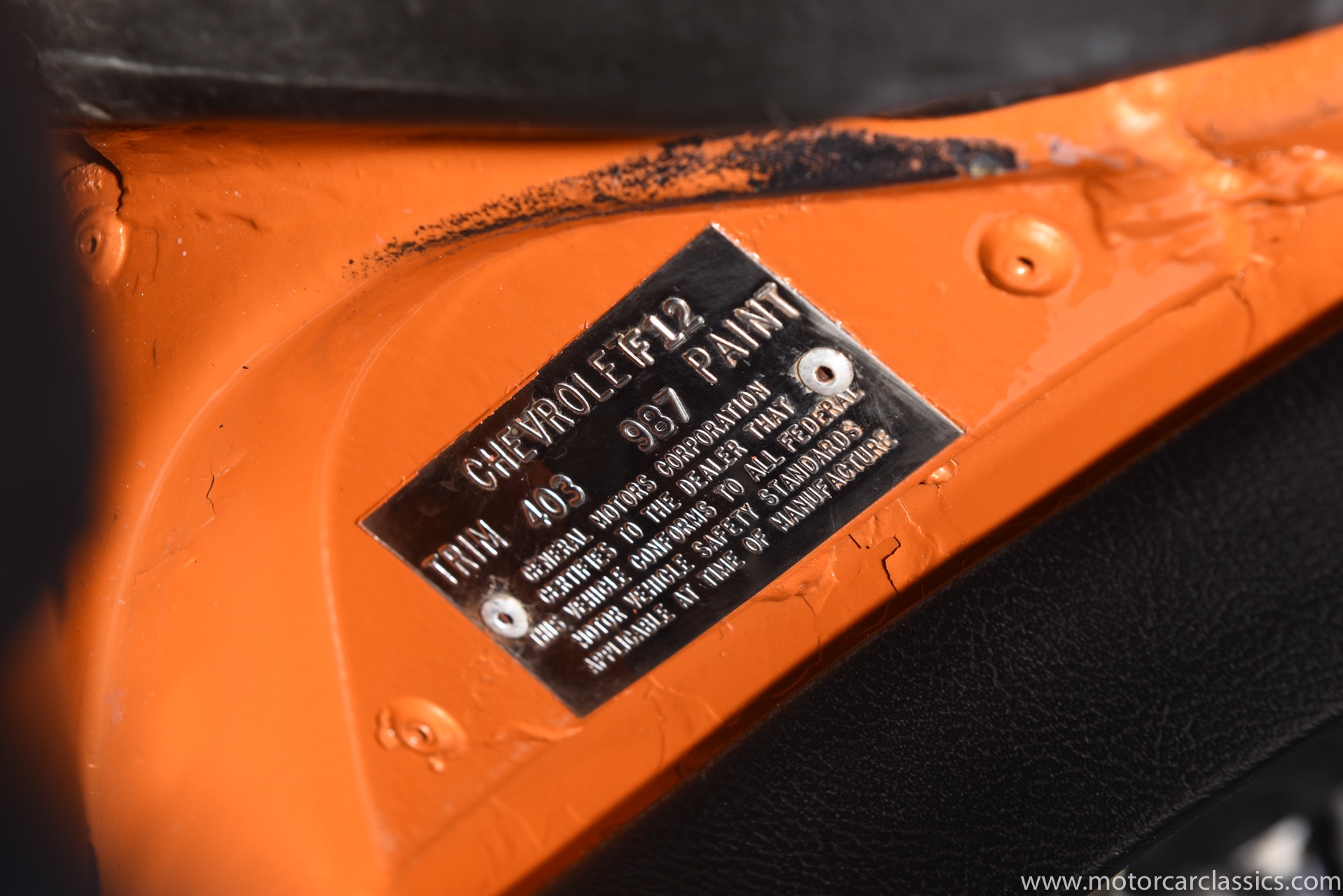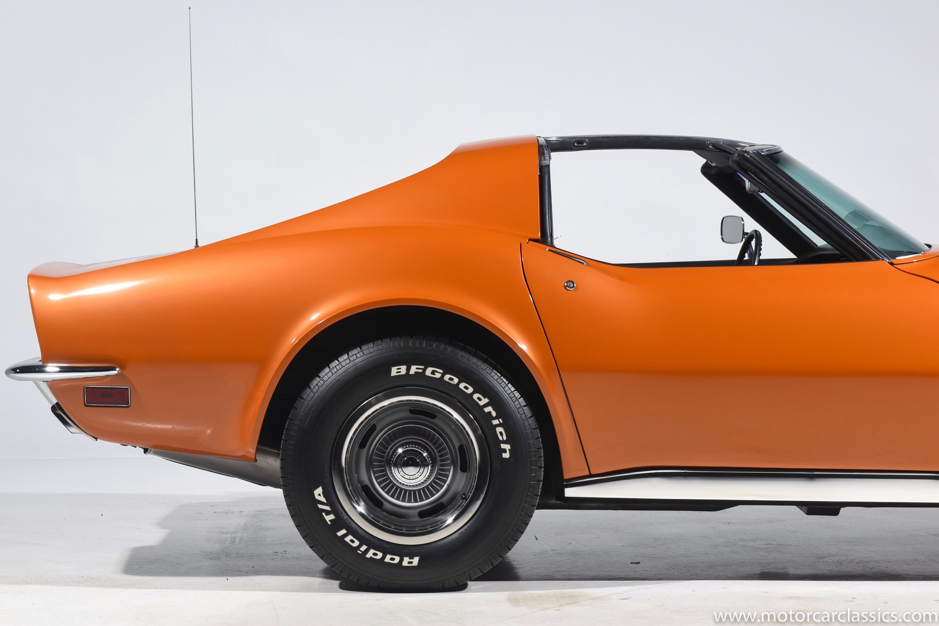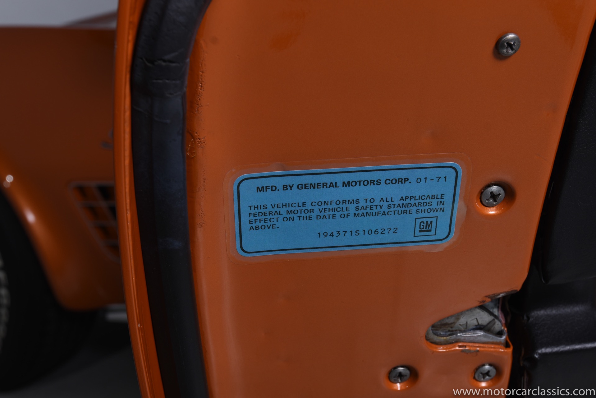 1971 Chevrolet Corvette LT-1 for sale! Motorcar Classics is proud to present this stunning 1971 Chevrolet Corvette LT-1 T-Top Coupe featured in (#937) Ontario Orange with (#403) black leather trim. This Corvette was built on January 12, 1971 and it has been fully and authentically restored to its factory original condition about 8 years ago. This LT-1 is in the C3 Registry and is mentioned in other articles online sufficiently to believe that the indicated 81,098 miles could be original. The LT-1 features Chevrolet's 350CI V8 rated at 330HP with a M21 4-speed close ratio transmission. The only other factory option reported in the Registry is a rear defroster. This Corvette has all of its original components with matching numbers and unique features appropriate to a genuine LT-1. The early C3 with chrome bumpers front and rear is the most attractive, and the LT-1 is among the most desirable of all Corvettes. This is a superb example.