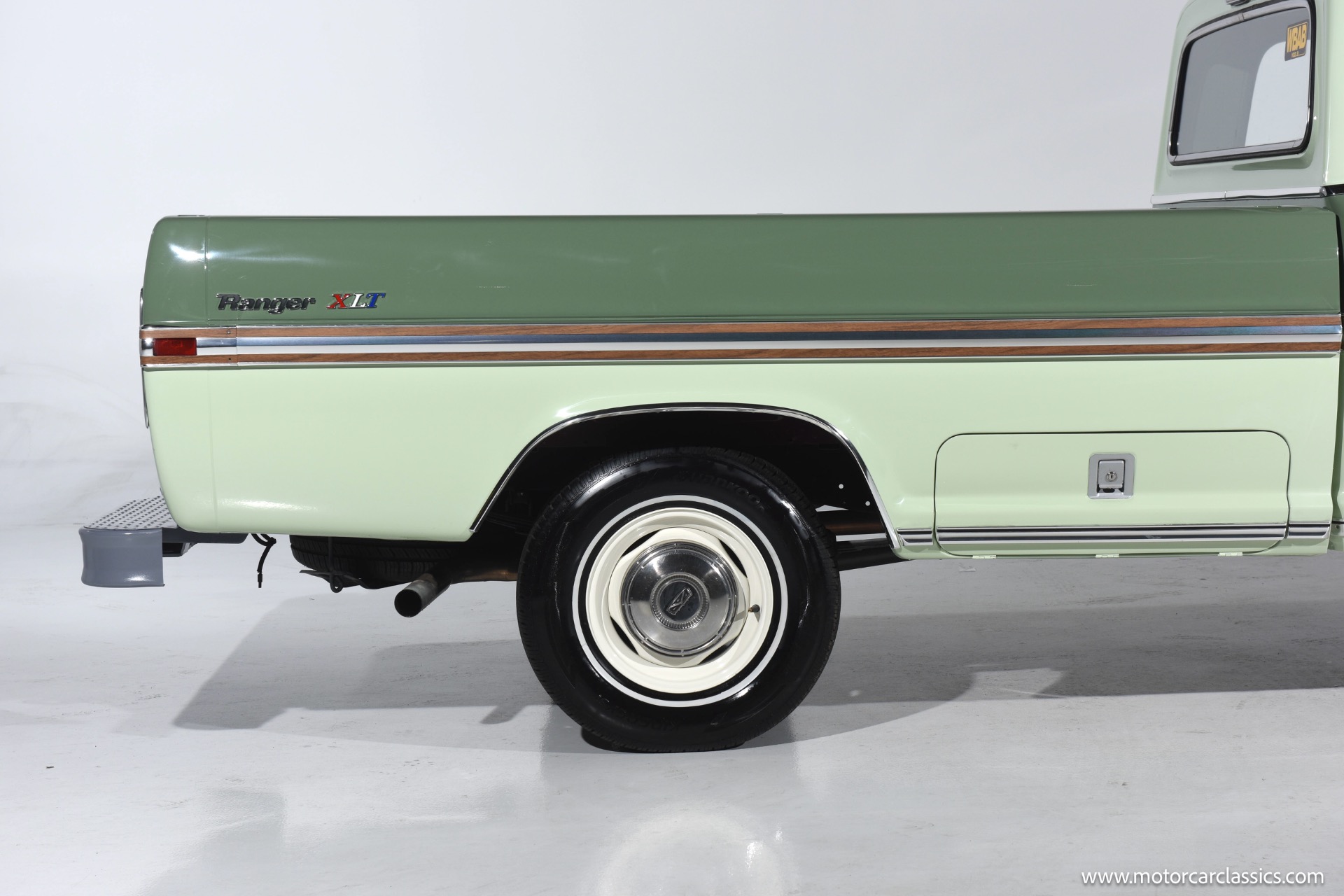 Step inside to admire the factory-original three-tone interior, complete with newly redone seats using authentic materials. The cabin is equipped with the original Delco radio and dealer-option air conditioning for comfort. A factory side toolbox with a lock adds practicality, complemented by the long bed style side design and Ranger XLT trim package. Additional features include a factory second gas tank with switch and fuel gauge, new whitewall tires, and most original Ford factory tags still in place. All fluids have been recently changed, and all hoses, belts, gaskets, and seals have been replaced to ensure reliability.