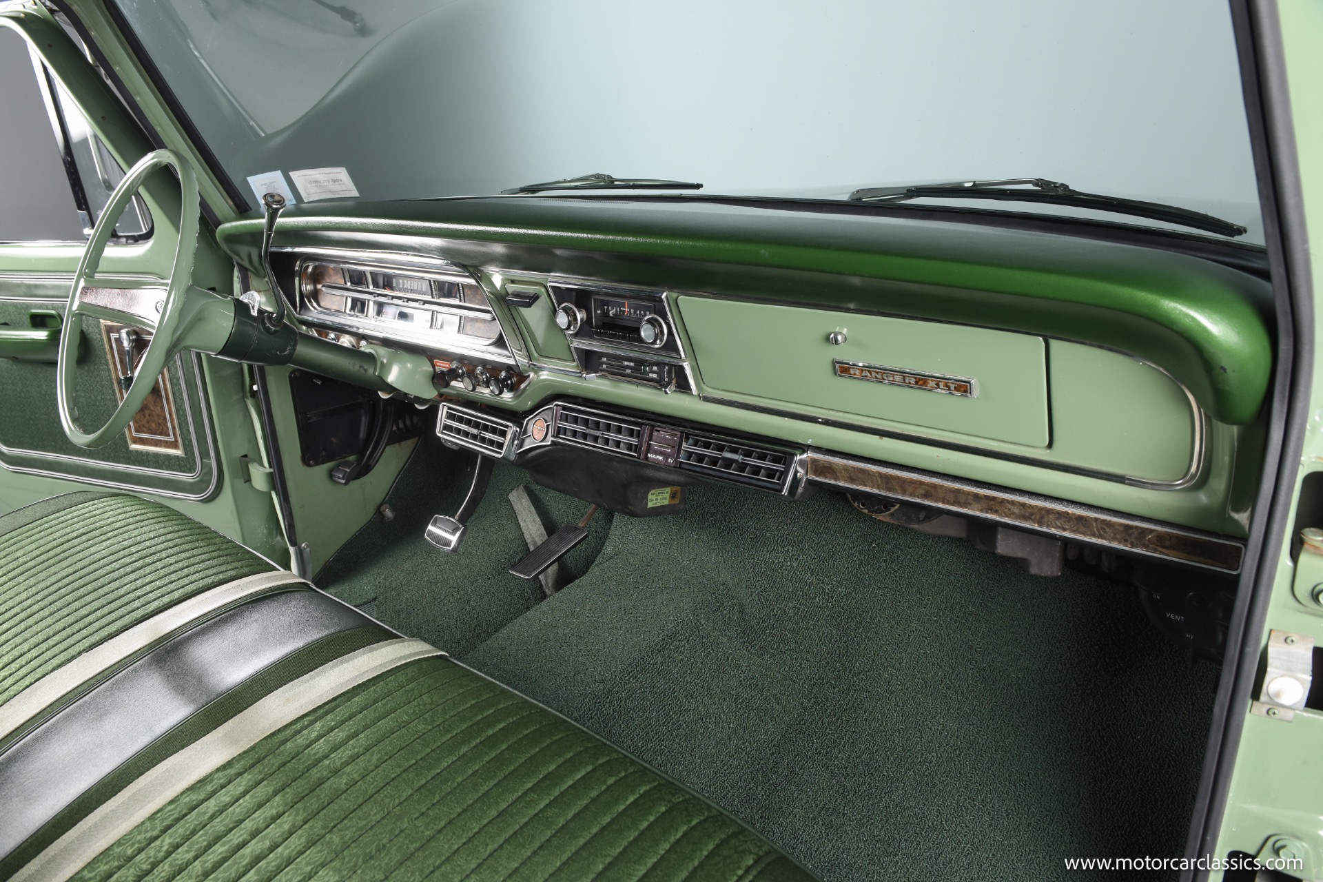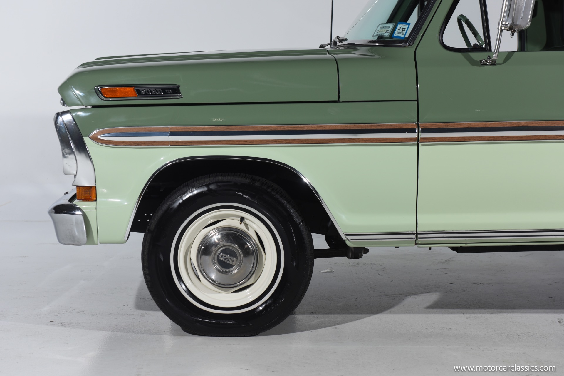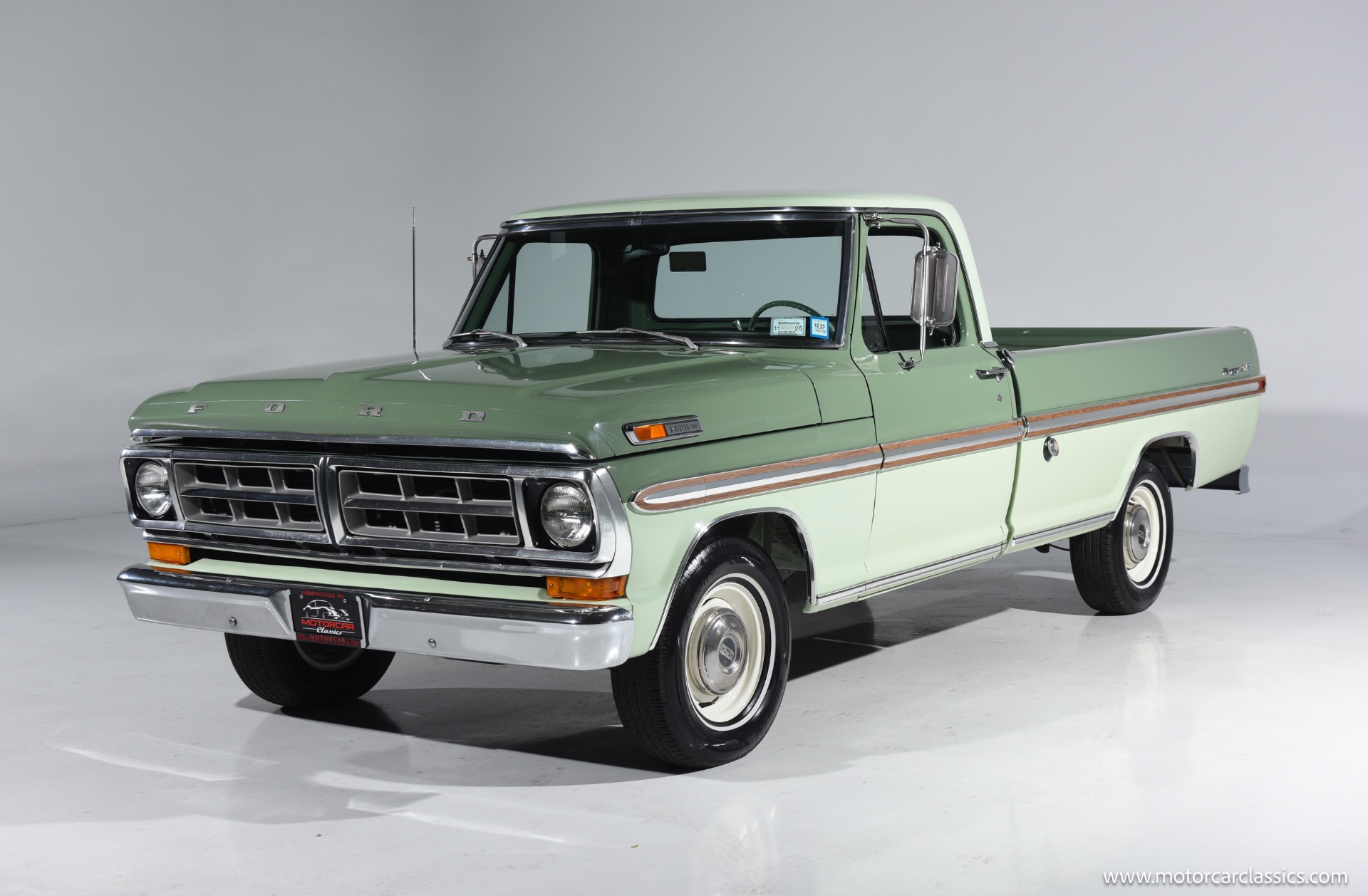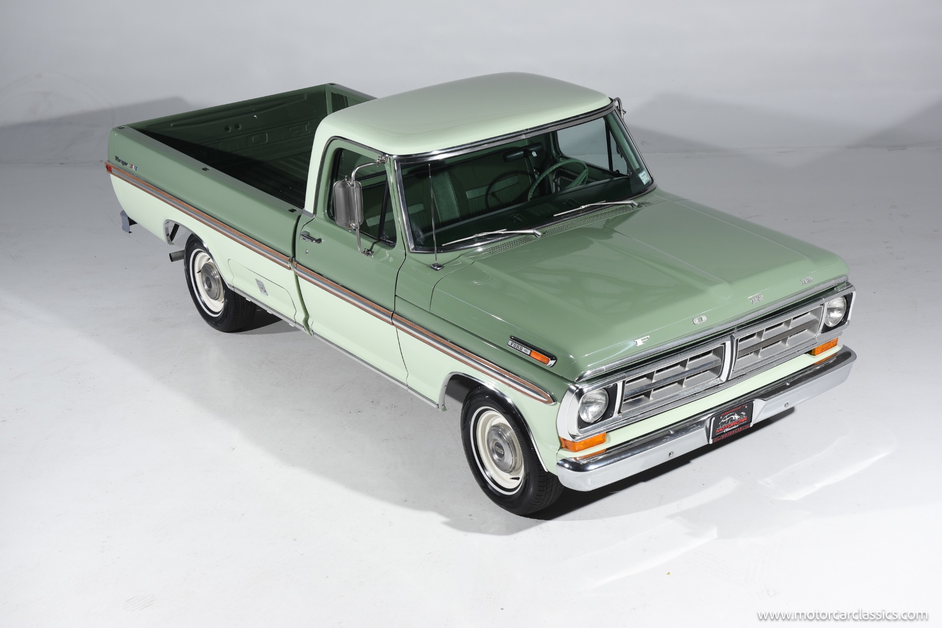 1971 Ford F100 Ranger XLT for sale! Motorcar Classics is pleased to present this meticulously restored 1971 Ford F-100 Ranger XLT. This classic pickup has undergone a frame-off rotisserie restoration, ensuring every detail has been addressed with the utmost care and attention. The truck boasts a stunning two-tone paint job, featuring Scandia Green as the primary color and Seafoam Green as the secondary accent, including the underbody, showcasing its authentic restoration. As a California desert vehicle throughout its life, this F-100 has been spared from harsh weather conditions, preserving its integrity.