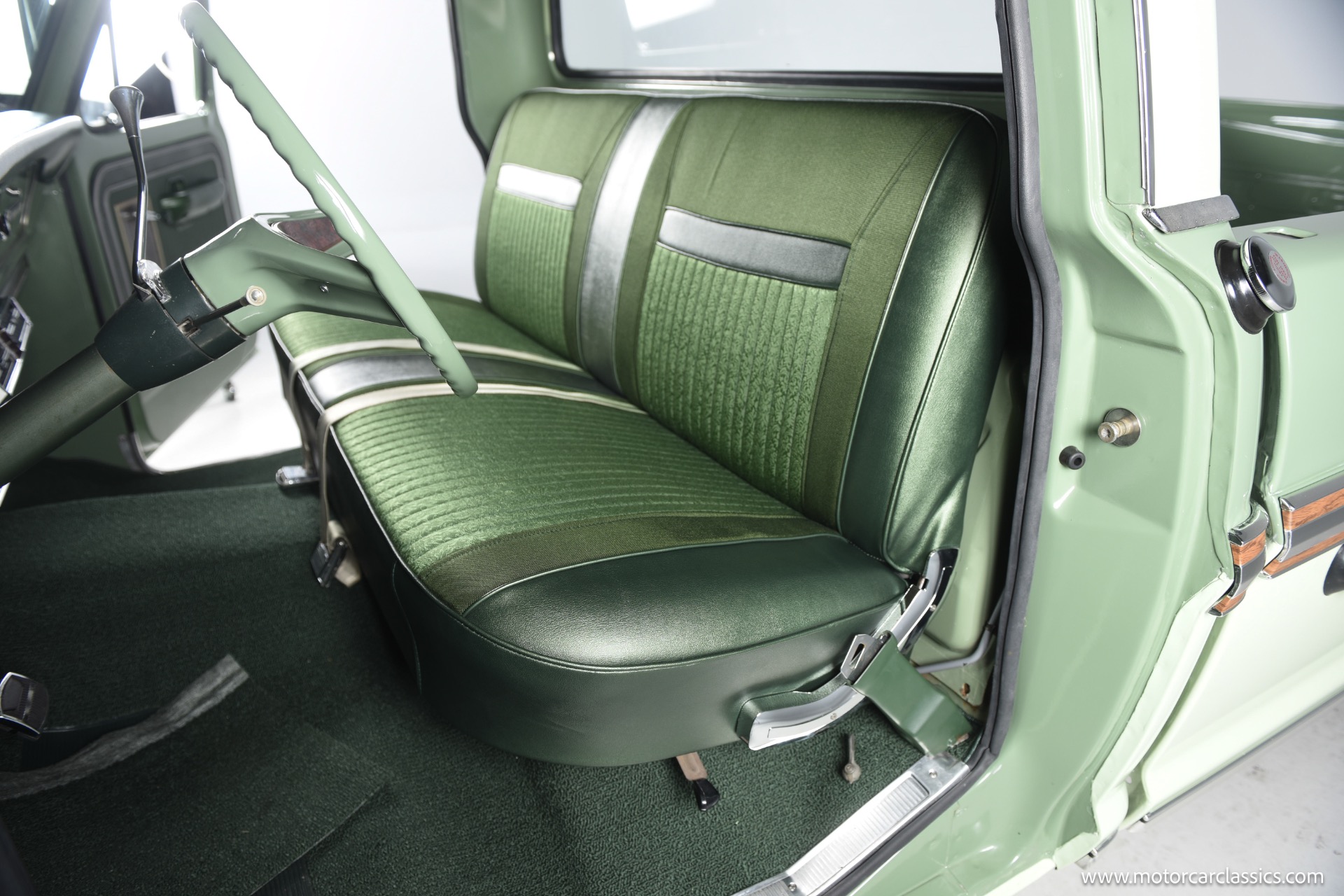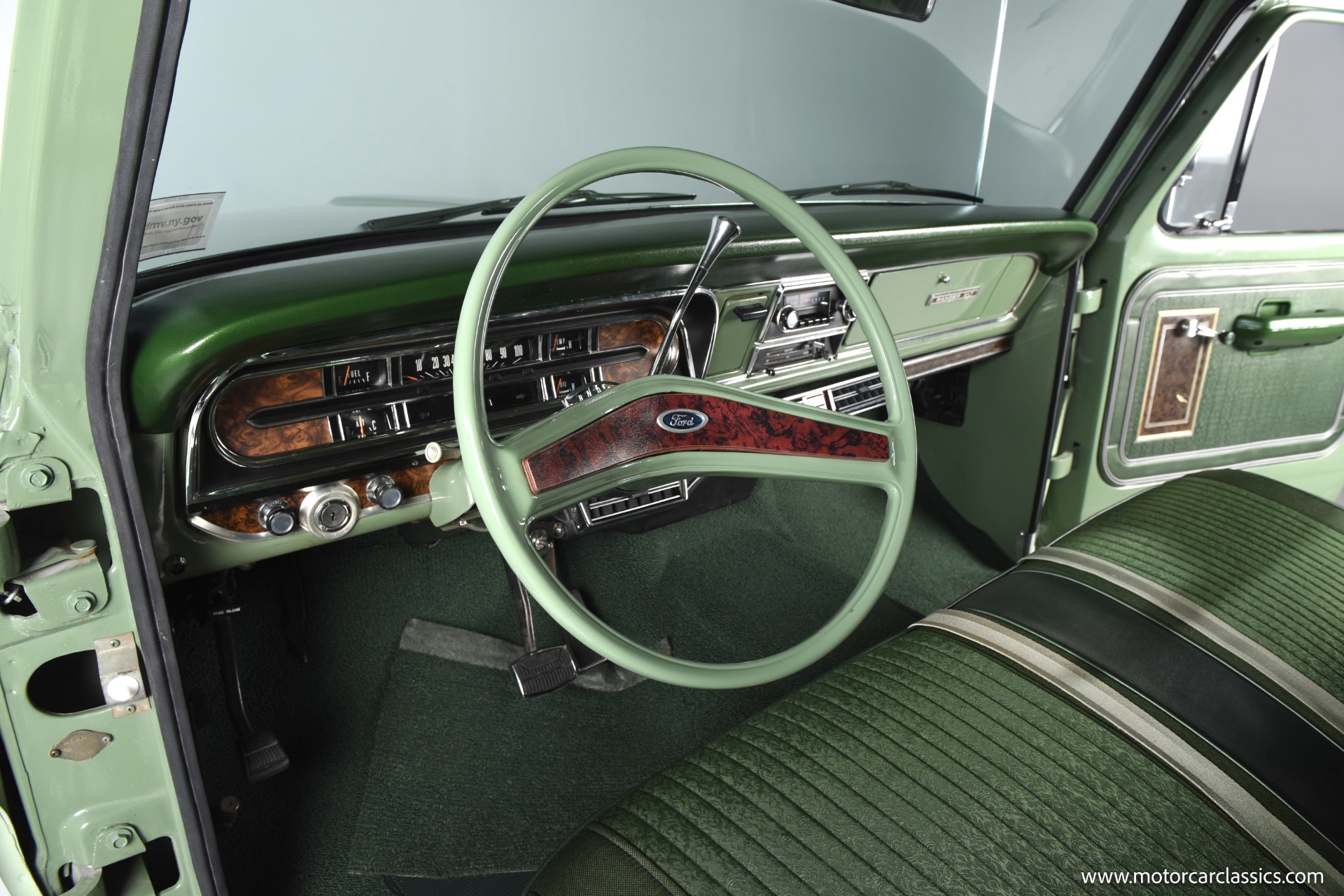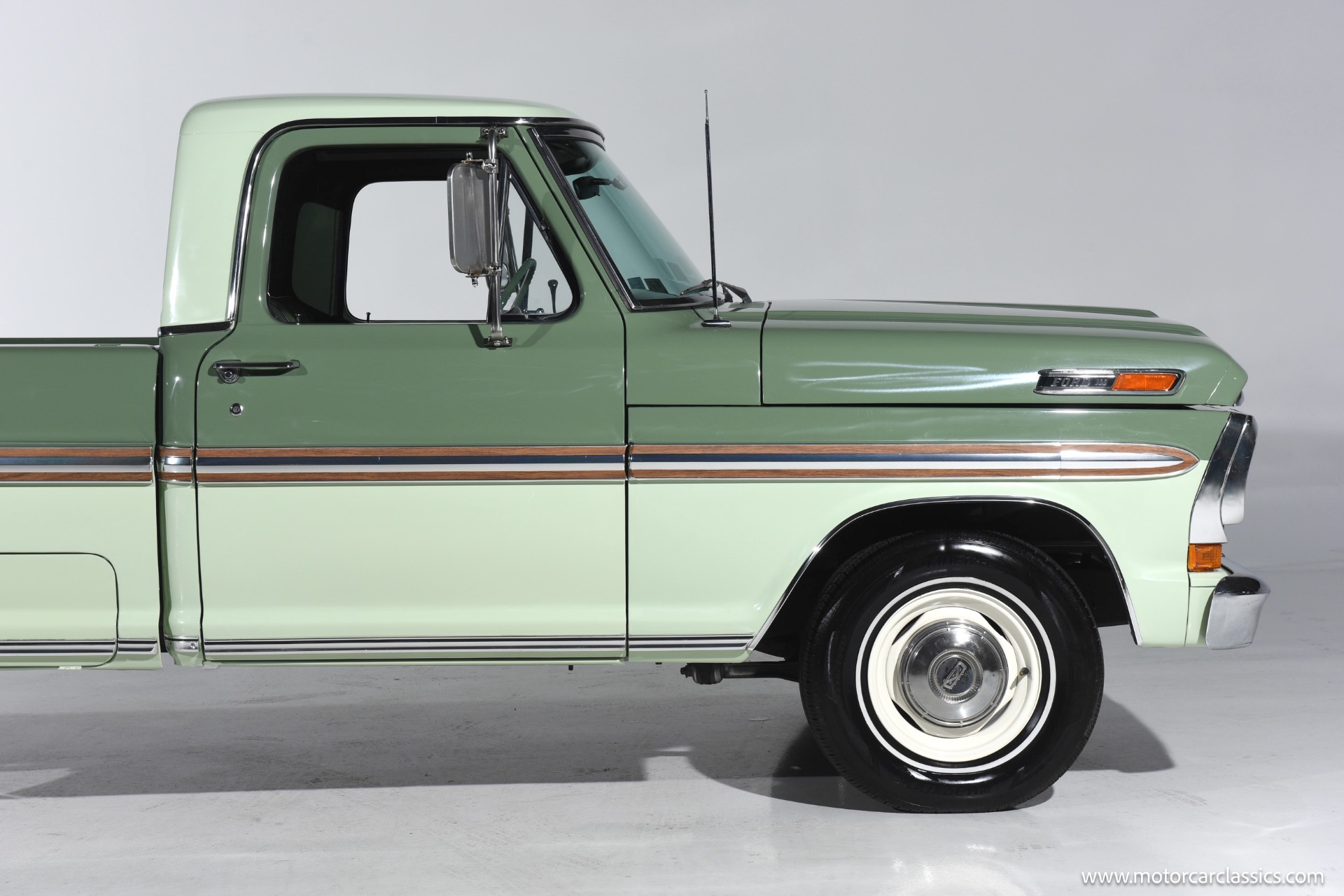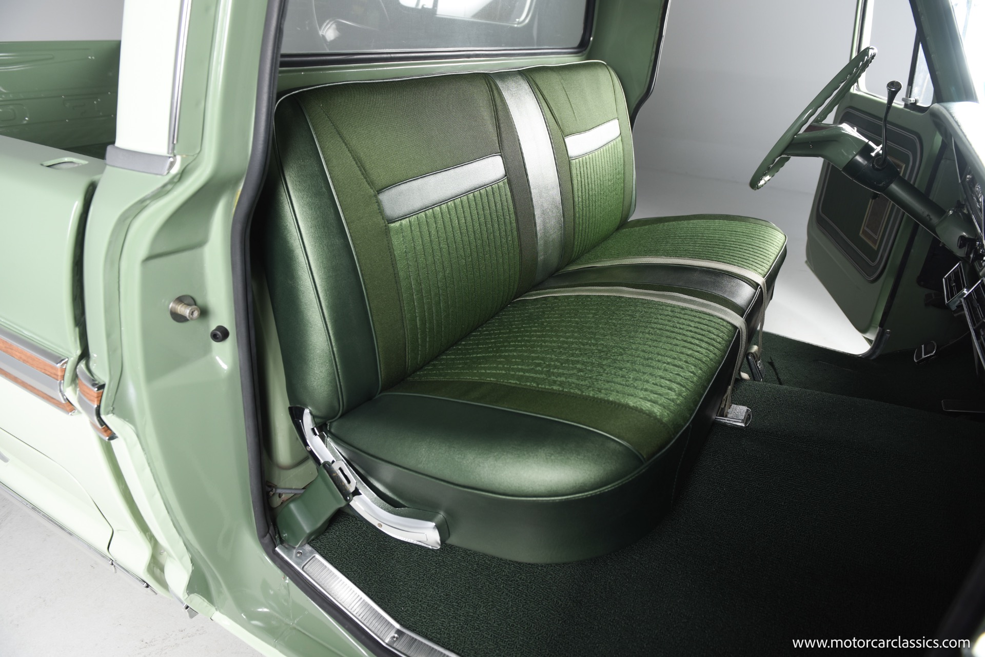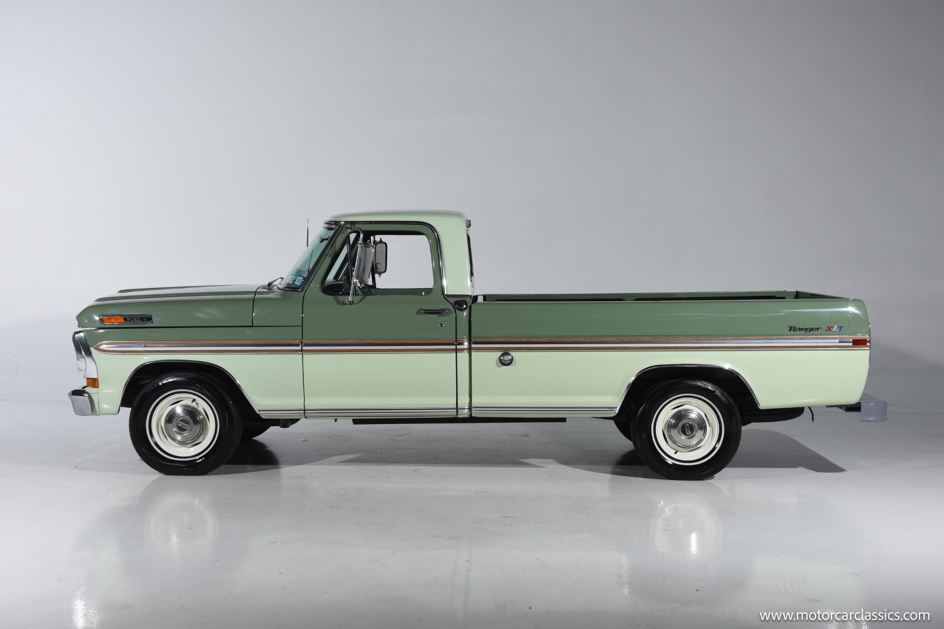 1971 Ford F100 Ranger XLT for sale! Motorcar Classics is pleased to present this meticulously restored 1971 Ford F-100 Ranger XLT. This classic pickup has undergone a frame-off rotisserie restoration, ensuring every detail has been addressed with the utmost care and attention. The truck boasts a stunning two-tone paint job, featuring Scandia Green as the primary color and Seafoam Green as the secondary accent, including the underbody, showcasing its authentic restoration. As a California desert vehicle throughout its life, this F-100 has been spared from harsh weather conditions, preserving its integrity.